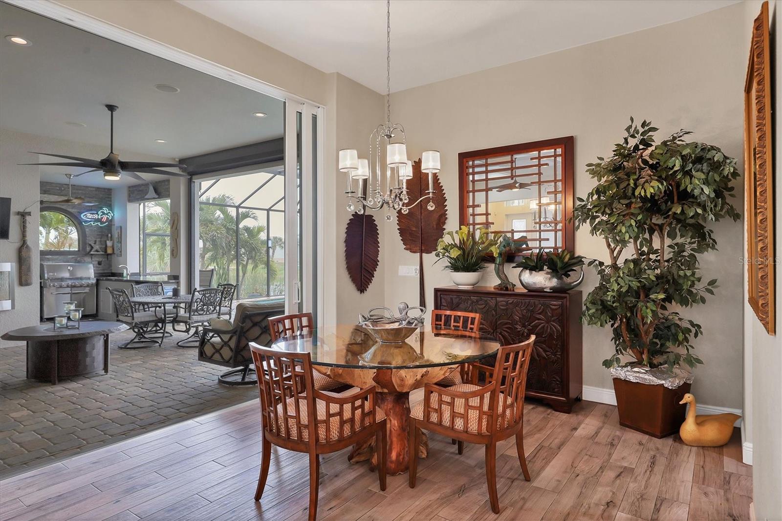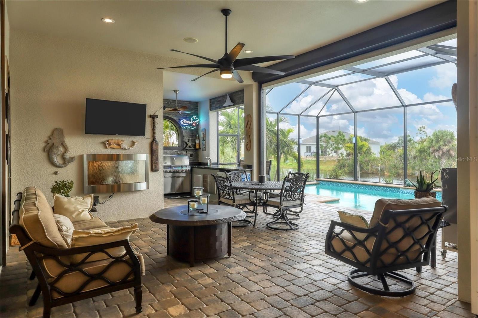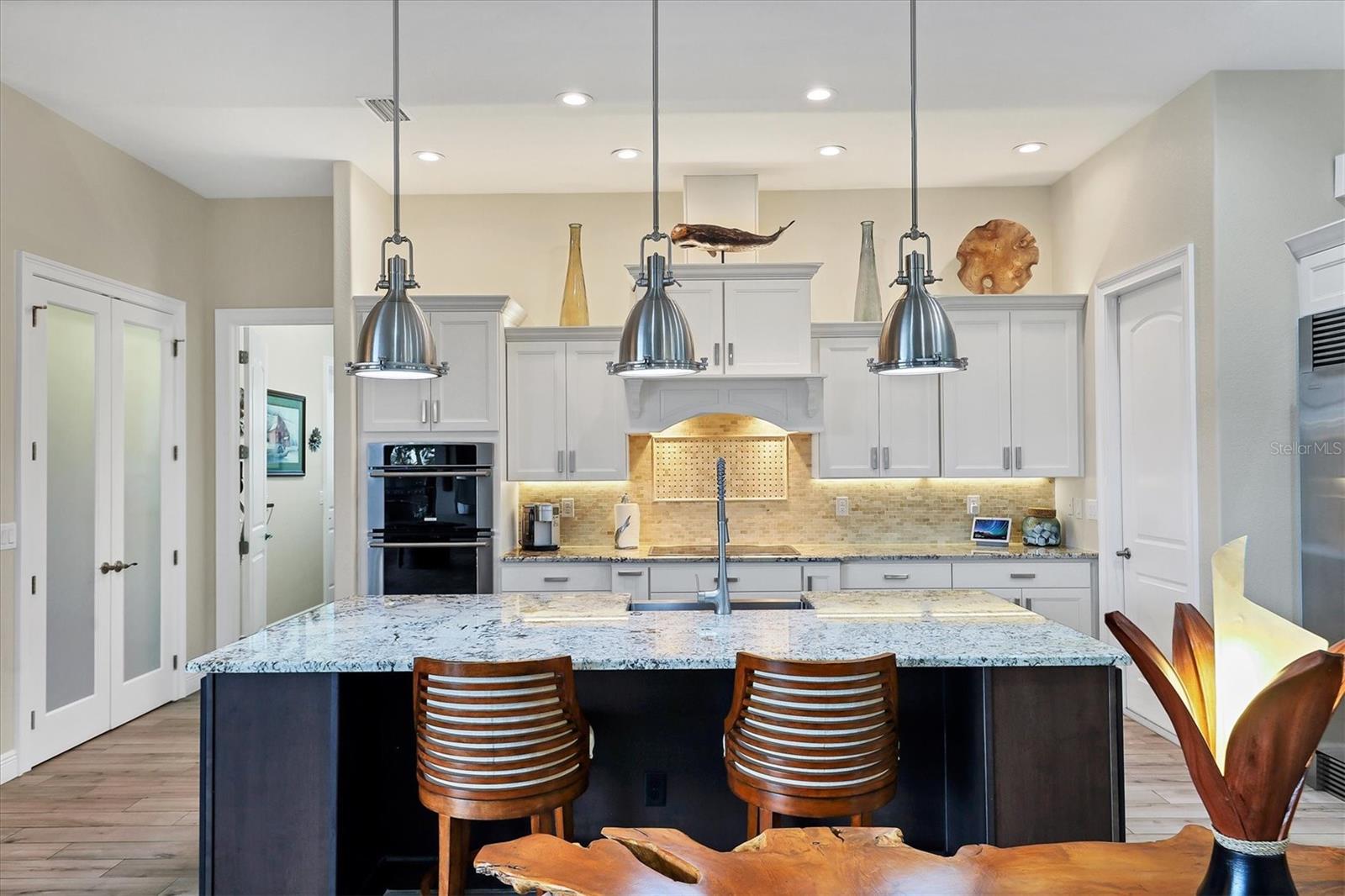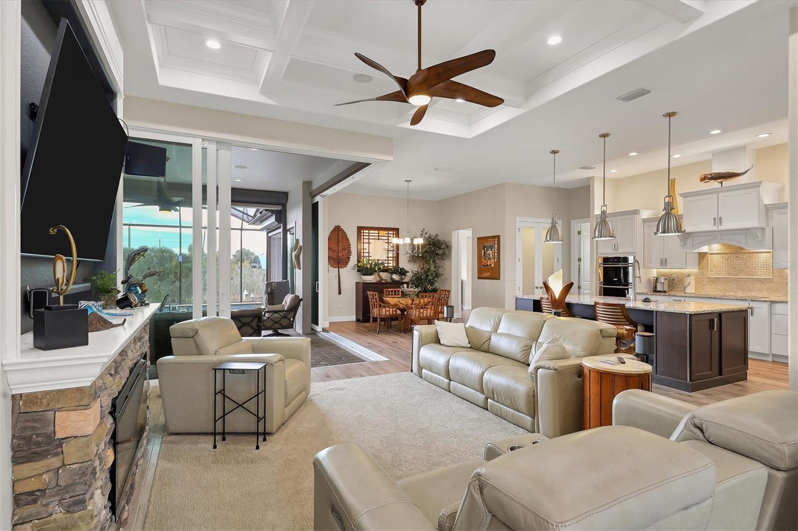 Enjoy Florida living in this elegant waterfront home! This 3 bedroom, 2 bathroom, 3 car tandem garage allows plenty of space for a workshop and/or storage, curb appeal abounds with a paved driveway, travertine front patio/entrance and gorgeous etched double doors. Brand New William Sharman paint exterior (2023). Once you enter you know that you can entertain in style or just spend precious time with family because this home offers luxury and comfort with first class finishes. You will never get tired of that water view through the expanse of sliders in the living areas and master! There is wood tile throughout, custom tray ceilings, electric fireplace in the living room, IST stereo surround sound, top of the line fixtures and accessories. The gourmet kitchen is literally breathtaking, and cooking will be amazing with the Electrolux 5 burner induction cooktop, wall ovens, oversized refrigerator/freezer, 9’ island with farmhouse sink, etc etc! On the practical side- Nest technology, alarm system, icynene insulation, impact glass and electric shutters- just a few of the features in this like-new home. The master suite is an oasis with incredible walk through shower and the13x8 closet could be another room! Hall configurations in this home add flow and space. The large lanai has a heated saltwater pool, brand new pool screens (2023), 5 Hurricane storm automictic shutters (you dont have to move the furniture ), built in ambient water feature, and a summer kitchen with large bar/counter, Webber Summit grill and walk down the lighted captains walk to a 16' composite dock with water and electric for the boaters along with a walk around 10K boat lift for easy boarding. As there are additional features too numerous to mention a comprehensive list is attached. We invite you to view the videos and photo gallery of this stunning home offering the best in luxurious Florida living. Room Feature: Linen Closet In Bath (Primary Bedroom).