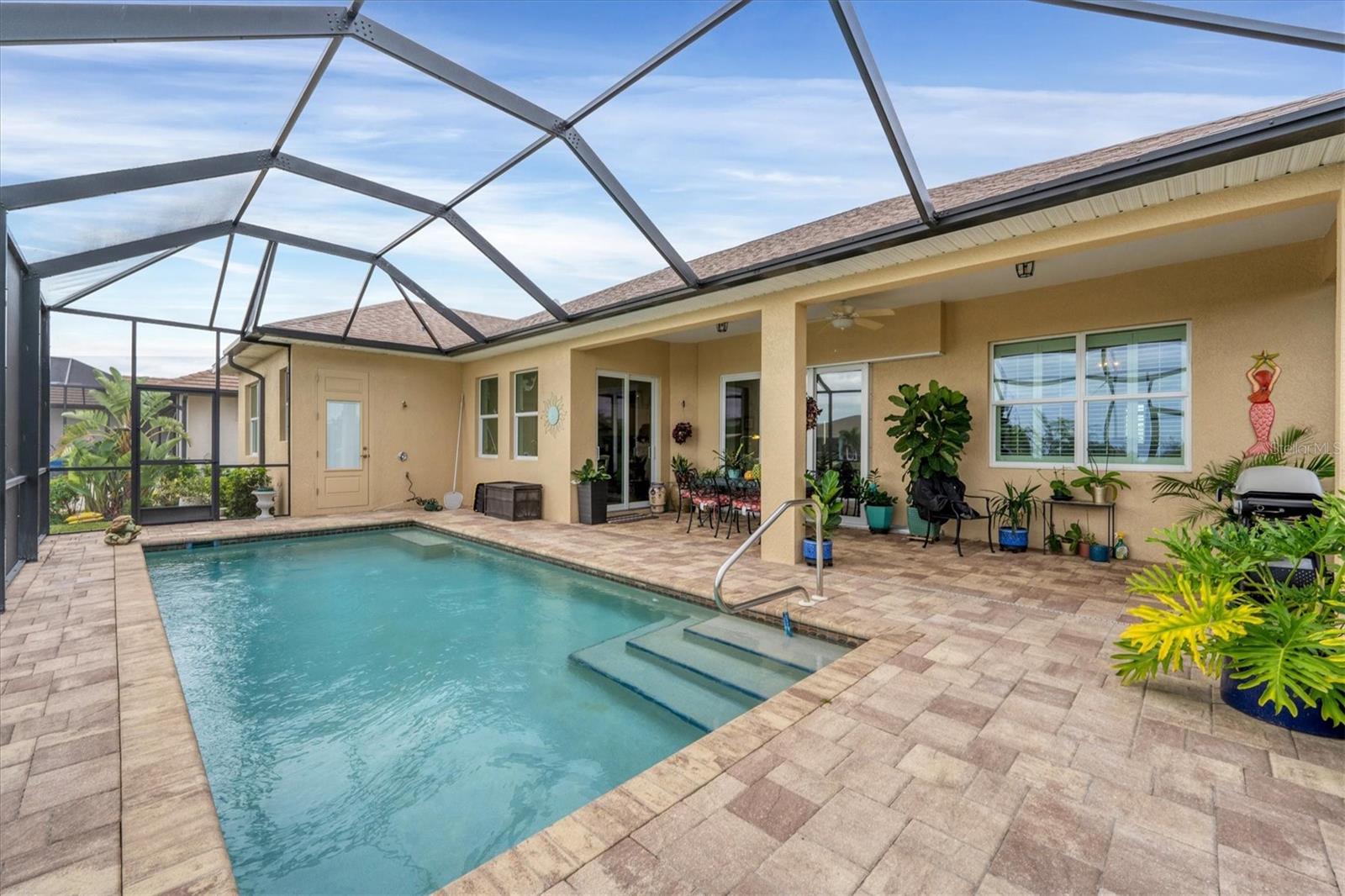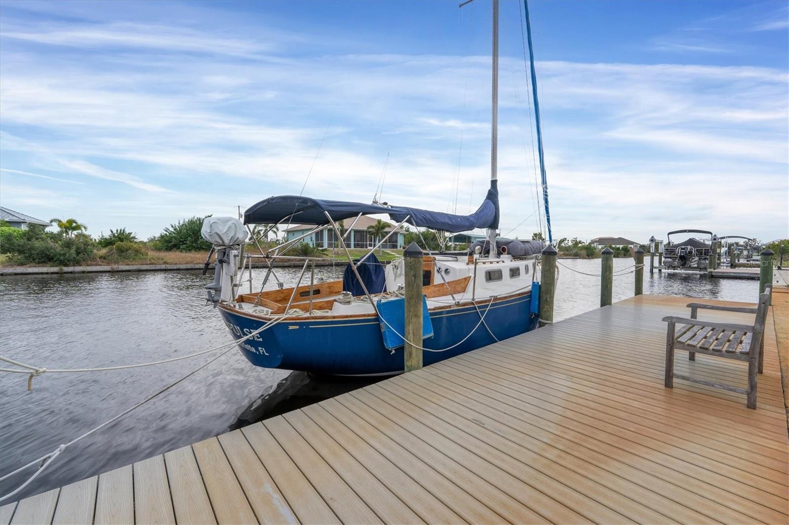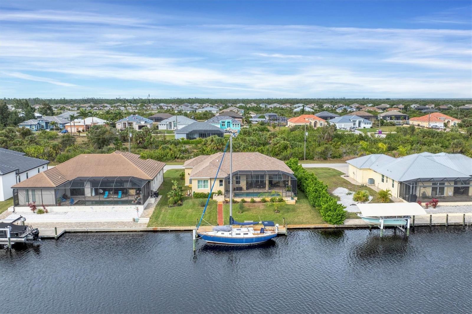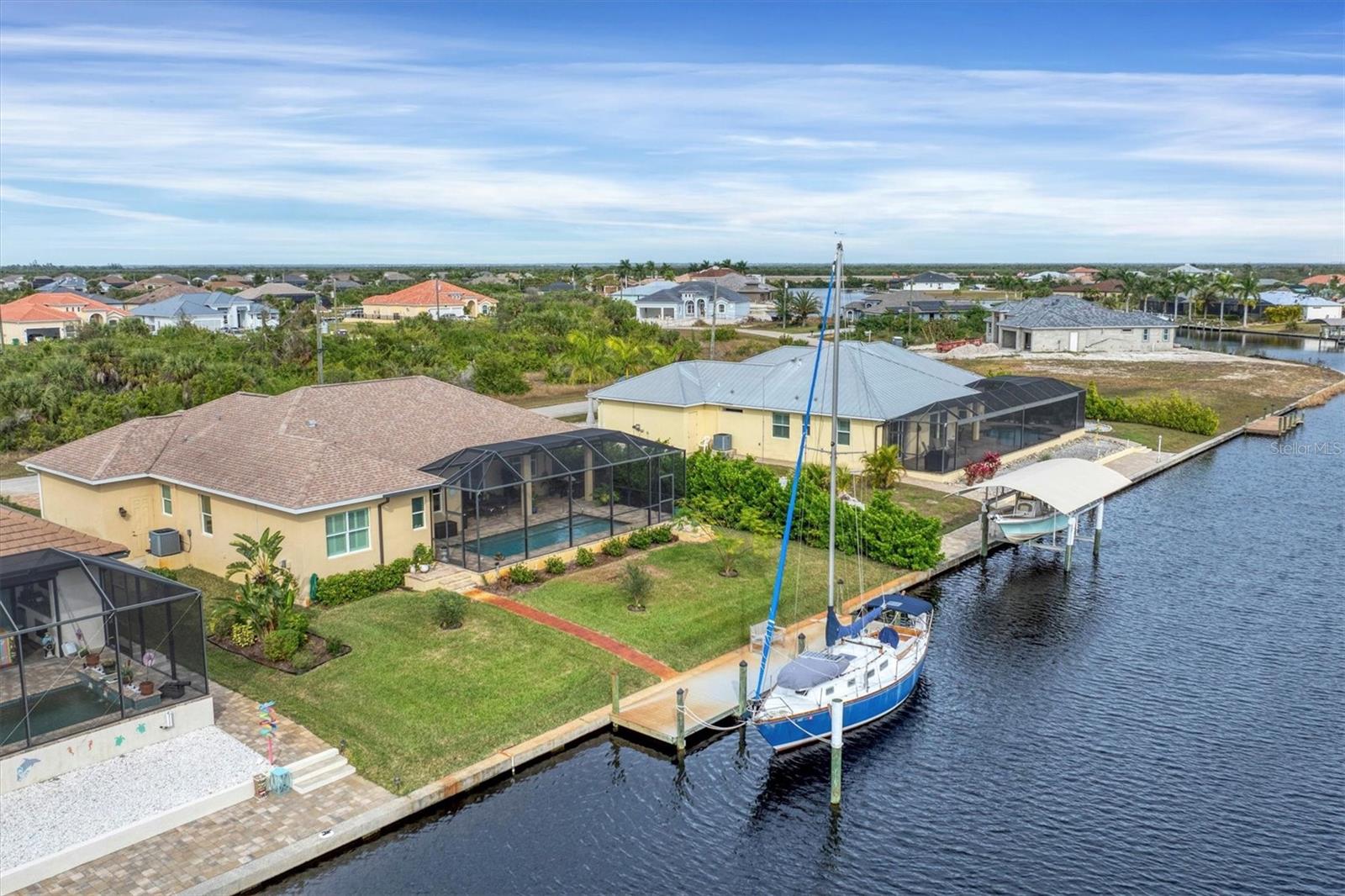 NEW PRICE ADJUSTMENT.... SAILBOAT WATER with a DOCK. Lovely and spacious 3 bedroom, 2 bath in ground pool home built on a canal with deep water and no fixed bridges to open water (Charlotte Harbor, ICW & Gulf of Mexico).This home features a large screened in lanai where you can relax by your pool overlooking the canal after a great day of sailing or fishing. Home is situated in the highly sought after section of South Gulf Cove located close to open water access with no bridges. The open floor plan & modern kitchen is perfect to entertain your guests. The oversized garage gives you plenty of room for storage. This custom-built home is located a short distance to several world class golf courses, beautiful beaches on the Gulf of Mexico and many excellent local neighborhood eateries. 3 major airports make travel to and from this location very convenient.
