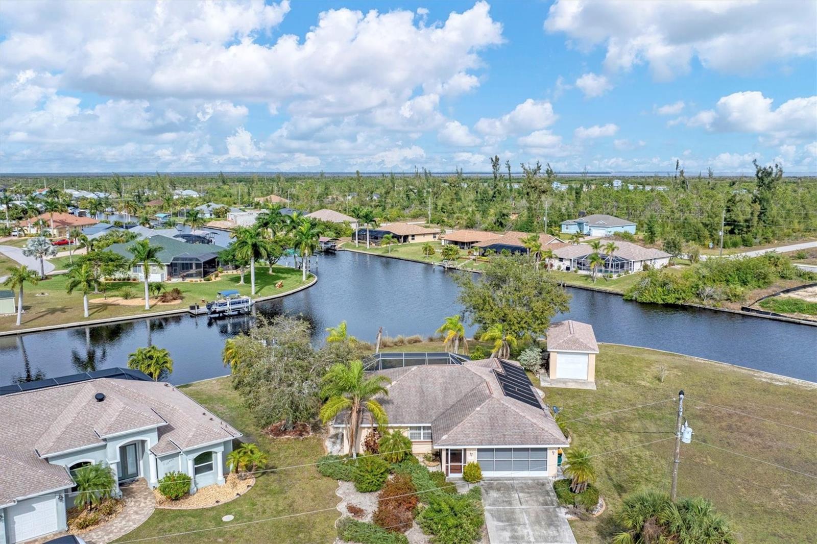 LOCATION * LOCATION * LOCATION * WATERFRONT * POOL HOME * OVERSIZED TIP LOT * 166 ft. of CEMENT SEA WALL * DOCK AND 6K LIFT * SPECTACULAR WATER VIEW !!! In the WATERFRONT BOATING Community of SOUTH GULF COVE With Boating access to the Gulf of Mexico and Surrounding ISLANDS. Only 1 Bridge to a Quick and Easy Out to the Lagoon and Charlotte Harbour. This Home features 3 Spacious Bedrooms, 2 full Baths, OPEN FLOOR PLAN, Vaulted Ceilings, Sliders to LANAI and Spacious POOL area. Living Room has nice Tile floors, Ceiling fans and Light Fixtures. Kitchen has STAINLESS STEEL appliances to include Refrigeator, NEW LG STOVE, NEW LG MICROWAVE, Large PANTRY Closet, Dishwasher, Double Sink, Nice Countertops and Cabinets. BREAKFAST NOOK with large picture window to maximize your WATER VIEW and Sliders to Lanai. Split GUEST BEDROOMS and Full Bath with Tub and Linen Closet. Primary Suite has a Large Walk-in Closet, Vanity, Linen closet, Tiled Shower, NEW plank flooring and Sliders to Lanai. A sparkling SALT WATER POOL to Enjoy and covered outdoor dining and entertaining any day of the year. There is a 16’ BOAT DOCK with WATER, ELECTRIC and 6K LIFT, Nice Spacious back yard with Mature Landscaping and Another very special feature of this property is the 504 sq. feet tandem DETACHED GARAGE, which includes an 8’ tall overhead door which can accommodate your recreational vehicles. This home has FULL HURRICANE PROTECTION with ACCORDION SHUTTERS INSTALLED in 2019, a NEW OVERHEAD DOOR in the main garage installed 2019, NEW ROOF 2016, POOL PUMP 2019 and MORE features include...Screened Garage Door, NEW A/C and HEAT PUMP, NEW WASHER and DRYER. SOUTH GULF COVE is only minutes away from Southwest FLORIDA BEACHES in BOCA GRANDE and MANASOTA KEY with boating access to the Gulf of Mexico and Surrounding ISLANDS. Community offers several nice parks, boat ramp,marinas and a yacht club. With several Golf Courses, WORLD CLASS FISHING, Shopping and Great Restaurants only minutes away!!! HOA is OPTIONAL!!! EXPERIENCE the FLORIDA LIFESTYLE !!!