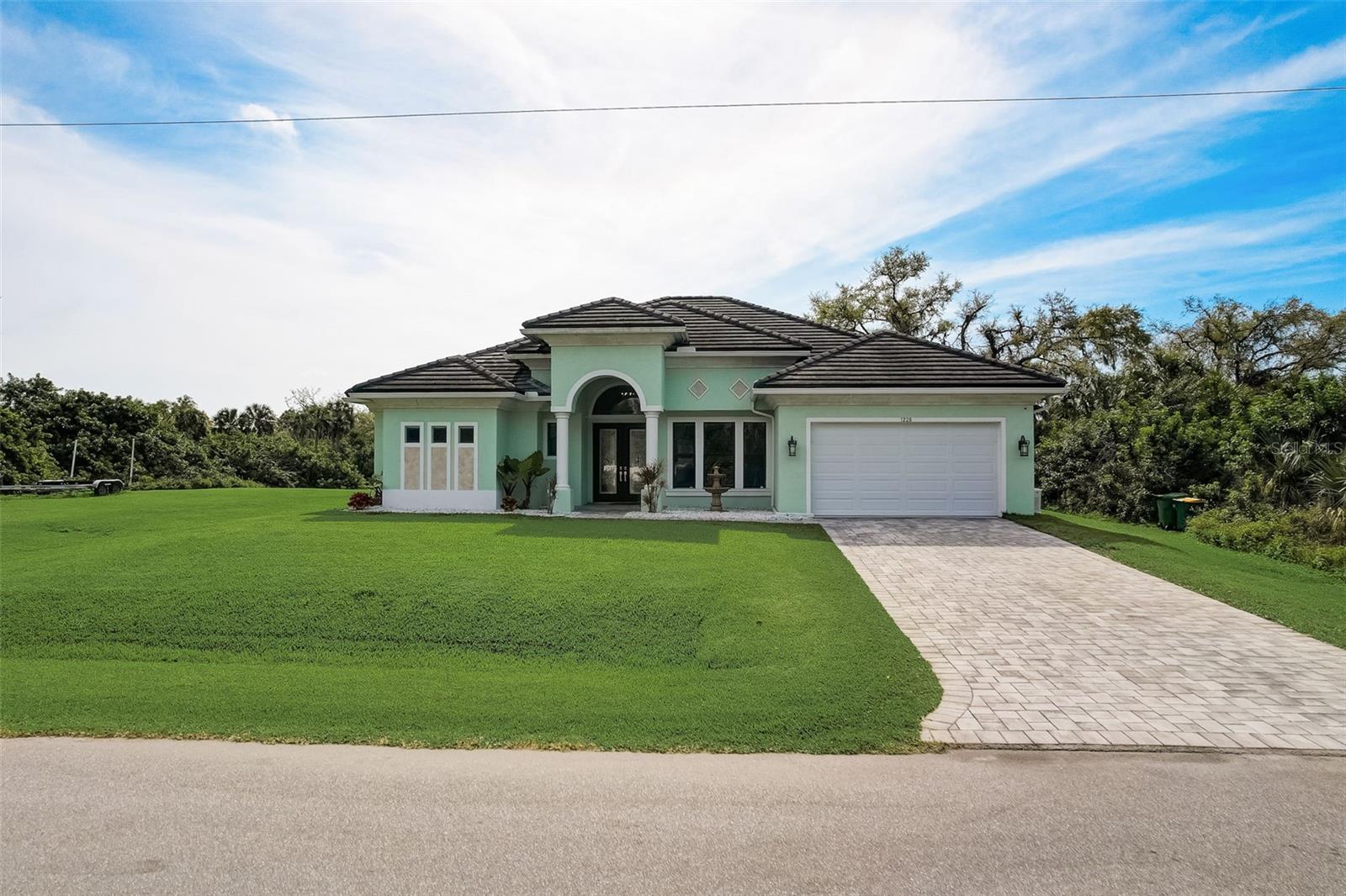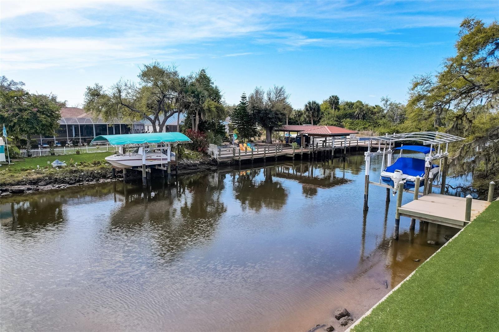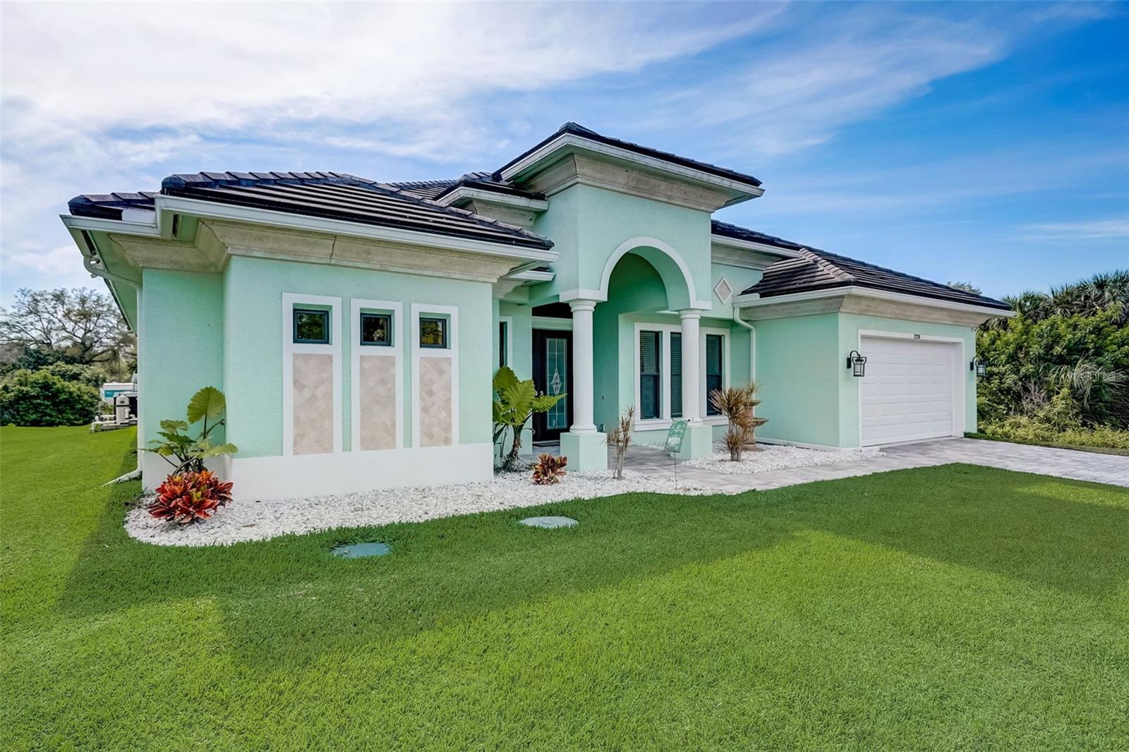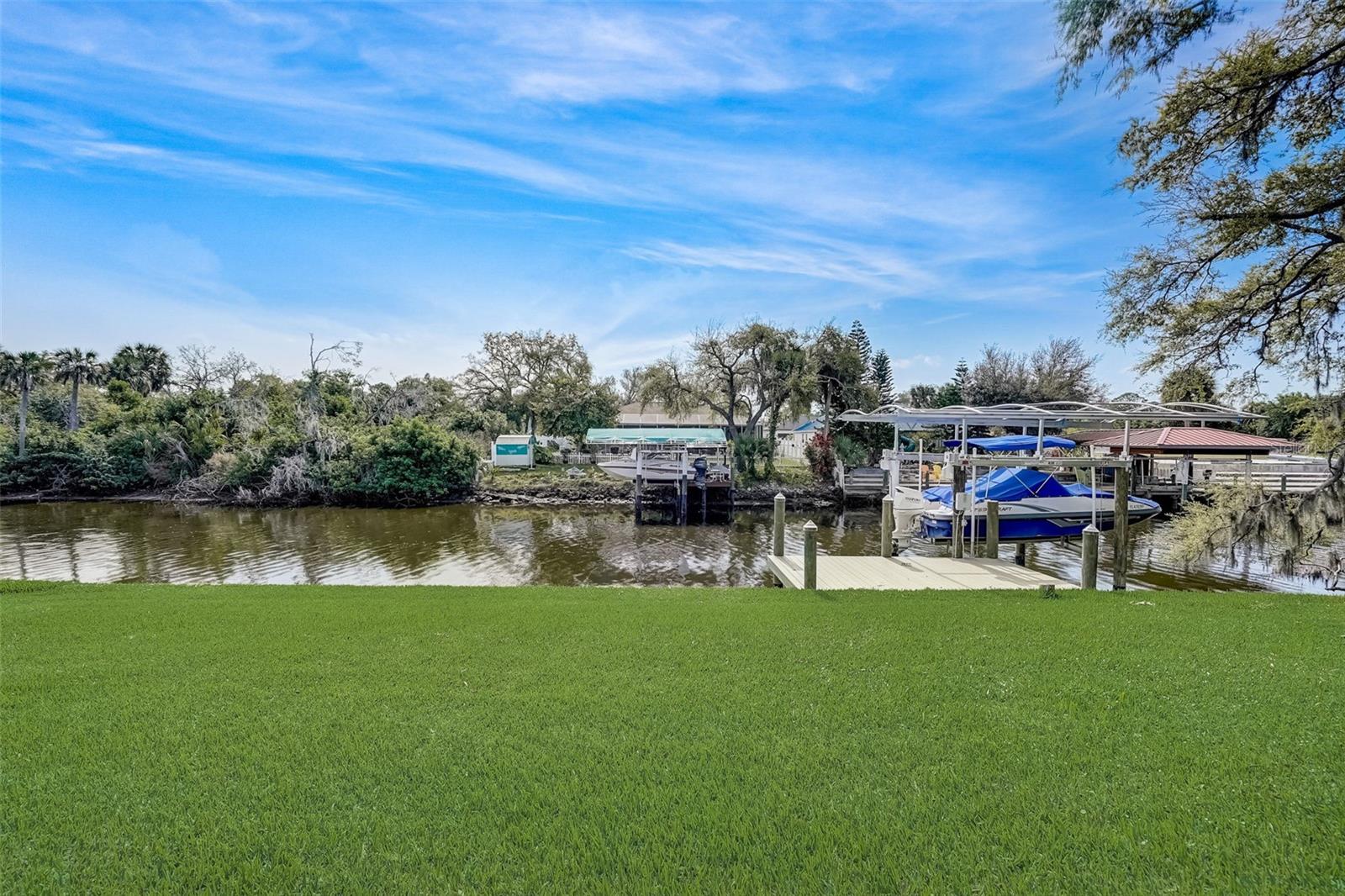 PICTURE PERFECT WATERFRONT POOL HOME ON DOUBLE LOT! 80' Seawall with composite dock & boatlift on The Jupiter Waterway. Enjoy a picturesque ride to the Myakka River, and continue onto Charlotte Harbor & The Gulf of Mexico. (only one bridge to go under) Custom Built Driftwood Model Home completed in 2017. Original owners with all documents and" BUILDERS SPECIFICATIONS" in the "ATTACHMENTS" along with the Model Floor plan with dimensions. This home exudes exceptional detail & craftsmanship through out, starting from the moment you drive up your brick paver driveway, pass under the grand portico, & walk in past the custom leaded designer double doors. Once inside you'll notice the soaring coffered ceilings, expansive view onto the lanai pool deck area, and the beautiful canal waterway. This open-concept floor plan show cases the gourmet chefs kitchen with center island, 42 inch staggered cabinets, pantry, 3 designer lighting pendants, granite counters, pot filler, drink/wine fridge, stainless appliances. Eat in breakfast bar, great room, dining room & flex space are easily accessible with this design. Throughout this home you'll notice the high end crown molding, recessed lighting, and ceiling fans. The primary bedroom retreat has an impressive tray ceiling, crown molding, ceiling fan, and double slider onto the lanai. Dual walk in closets featuring ventilated wood shelving and bonus shelf granting more storage. A spa like en-suite with roman shower with dual heads, custom tile, dual split vanities with granite tops, separate water closet, and extra large linen closet. The flex/study room is currently being used as a home office, tray ceiling, crown molding, ceiling fan & wood plank style flooring. Split floor plan with 2 guest bedrooms, designed tastefully with privacy & comfort, along with a well appointed bathroom. The dining room is currently being used as an entertainment area for pool & ping pong. Leave this up to your imagination with the amazing views to the outside lanai / pool deck. The expansive outdoor living space is designed for relaxation & entertaining. Boasting over 400 Square Feet of covered brick paver area (14'x31') featuring the custom stone stacked chefs outdoor kitchen, it comes fully equipped with a stainless steel "BULL" BBQ grill/rotisserie, refrigerator, sink, concealed propane tanks and prep area. Spacious brick paver lanai oasis, welcoming you into the heated salt water pool /spa with a tranquil waterfall feature, along with soft evening lighting. This entire pool cage is upgraded with No see um screening. The laundry room/utility area is upgraded with 42 inch cabinets, sink with granite counter, frontload washer & dryer. Epoxy coating garage floor, overhead storage, tank less hot water heater, Viega Manabloc plumbing, whole house surge protector. All windows & doors PGT WinGuard impact resistant tinted glass. Impressive whole house 22K "GENERAC" Generator, with a 500 gallon propane tank underground, regularly maintained and serviced. Whole house "KINETICO" reverse osmosis system with a 300 gallon tank. TEAXX pest defense tubes in the walls provided by Hometeam Pest Defense. Irrigation system with timer & rain sensor. Roof material is "cement tile" impressively resistant to weather, pest, and fire. Roof deck area spray foam insulation, rain gutters, home is wired for security system, wired for surround sound 5.1 underground utilities. Perfect location to the Best Beaches & Recreation!!