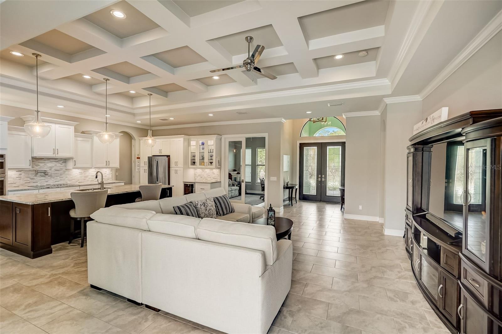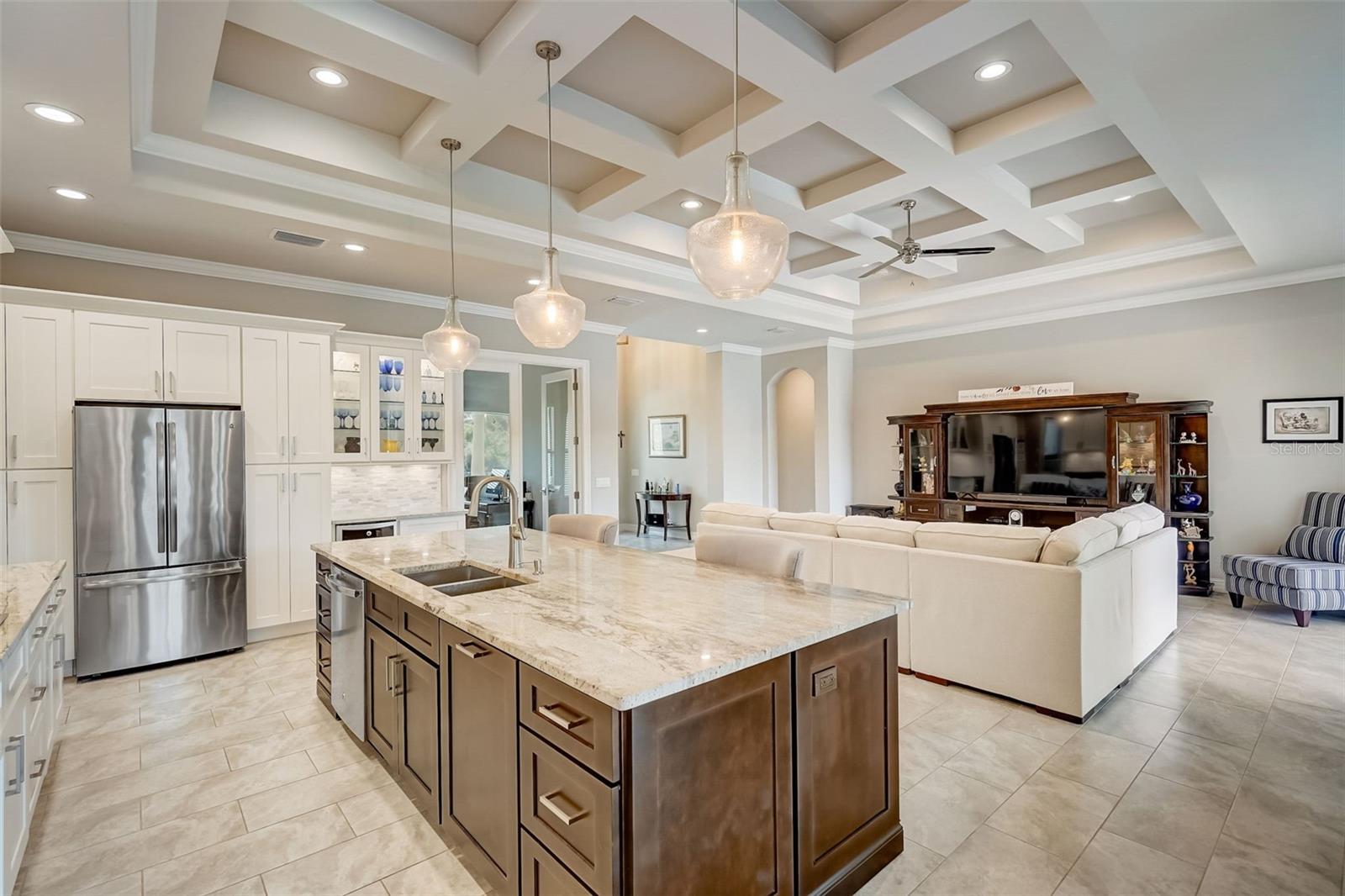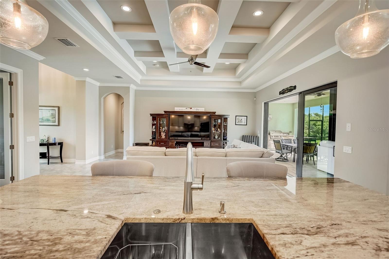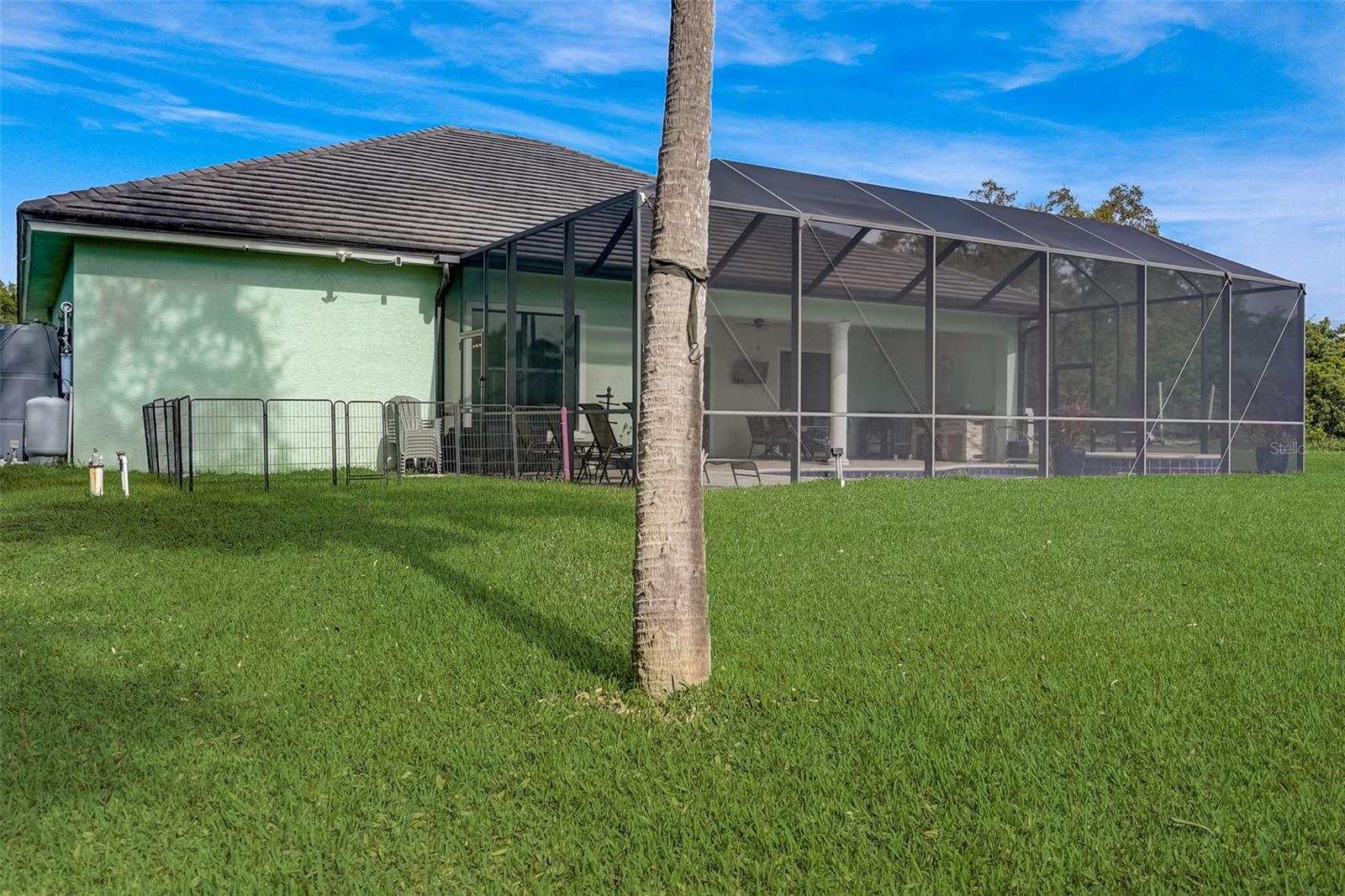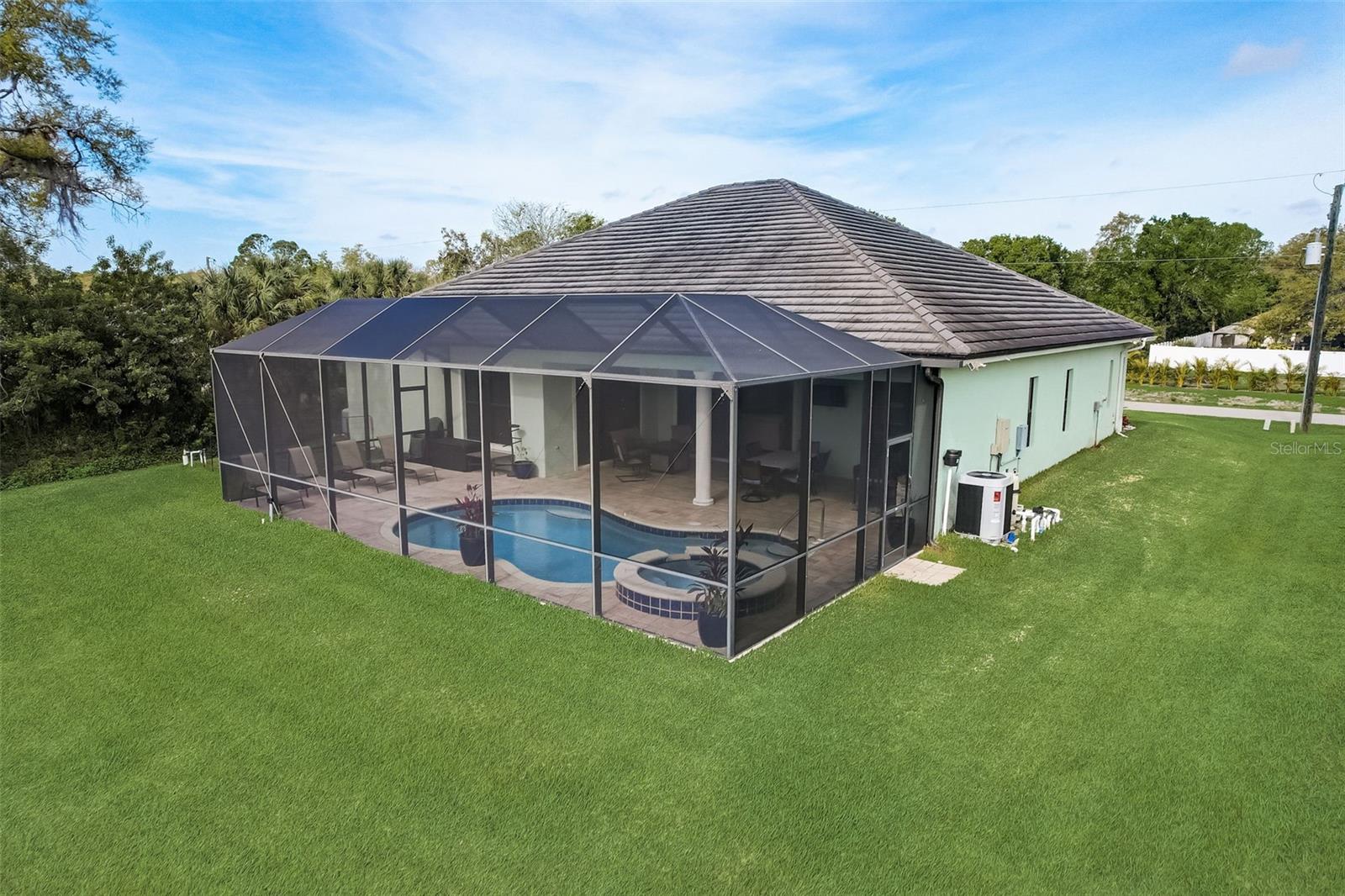 PICTURE PERFECT WATERFRONT POOL HOME ON DOUBLE LOT! 80' Seawall with composite dock & boatlift on The Jupiter Waterway. Enjoy a picturesque ride to the Myakka River, and continue onto Charlotte Harbor & The Gulf of Mexico. (only one bridge to go under) Custom Built Driftwood Model Home completed in 2017. Original owners with all documents and" BUILDERS SPECIFICATIONS" in the "ATTACHMENTS" along with the Model Floor plan with dimensions. This home exudes exceptional detail & craftsmanship through out, starting from the moment you drive up your brick paver driveway, pass under the grand portico, & walk in past the custom leaded designer double doors. Once inside you'll notice the soaring coffered ceilings, expansive view onto the lanai pool deck area, and the beautiful canal waterway. This open-concept floor plan show cases the gourmet chefs kitchen with center island, 42 inch staggered cabinets, pantry, 3 designer lighting pendants, granite counters, pot filler, drink/wine fridge, stainless appliances. Eat in breakfast bar, great room, dining room & flex space are easily accessible with this design. Throughout this home you'll notice the high end crown molding, recessed lighting, and ceiling fans. The primary bedroom retreat has an impressive tray ceiling, crown molding, ceiling fan, and double slider onto the lanai. Dual walk in closets featuring ventilated wood shelving and bonus shelf granting more storage. A spa like en-suite with roman shower with dual heads, custom tile, dual split vanities with granite tops, separate water closet, and extra large linen closet. The flex/study room is currently being used as a home office, tray ceiling, crown molding, ceiling fan & wood plank style flooring. Split floor plan with 2 guest bedrooms, designed tastefully with privacy & comfort, along with a well appointed bathroom. The dining room is currently being used as an entertainment area for pool & ping pong. Leave this up to your imagination with the amazing views to the outside lanai / pool deck. The expansive outdoor living space is designed for relaxation & entertaining. Boasting over 400 Square Feet of covered brick paver area (14'x31') featuring the custom stone stacked chefs outdoor kitchen, it comes fully equipped with a stainless steel "BULL" BBQ grill/rotisserie, refrigerator, sink, concealed propane tanks and prep area. Spacious brick paver lanai oasis, welcoming you into the heated salt water pool /spa with a tranquil waterfall feature, along with soft evening lighting. This entire pool cage is upgraded with No see um screening. The laundry room/utility area is upgraded with 42 inch cabinets, sink with granite counter, frontload washer & dryer. Epoxy coating garage floor, overhead storage, tank less hot water heater, Viega Manabloc plumbing, whole house surge protector. All windows & doors PGT WinGuard impact resistant tinted glass. Impressive whole house 22K "GENERAC" Generator, with a 500 gallon propane tank underground, regularly maintained and serviced. Whole house "KINETICO" reverse osmosis system with a 300 gallon tank. TEAXX pest defense tubes in the walls provided by Hometeam Pest Defense. Irrigation system with timer & rain sensor. Roof material is "cement tile" impressively resistant to weather, pest, and fire. Roof deck area spray foam insulation, rain gutters, home is wired for security system, wired for surround sound 5.1 underground utilities. Perfect location to the Best Beaches & Recreation!!
