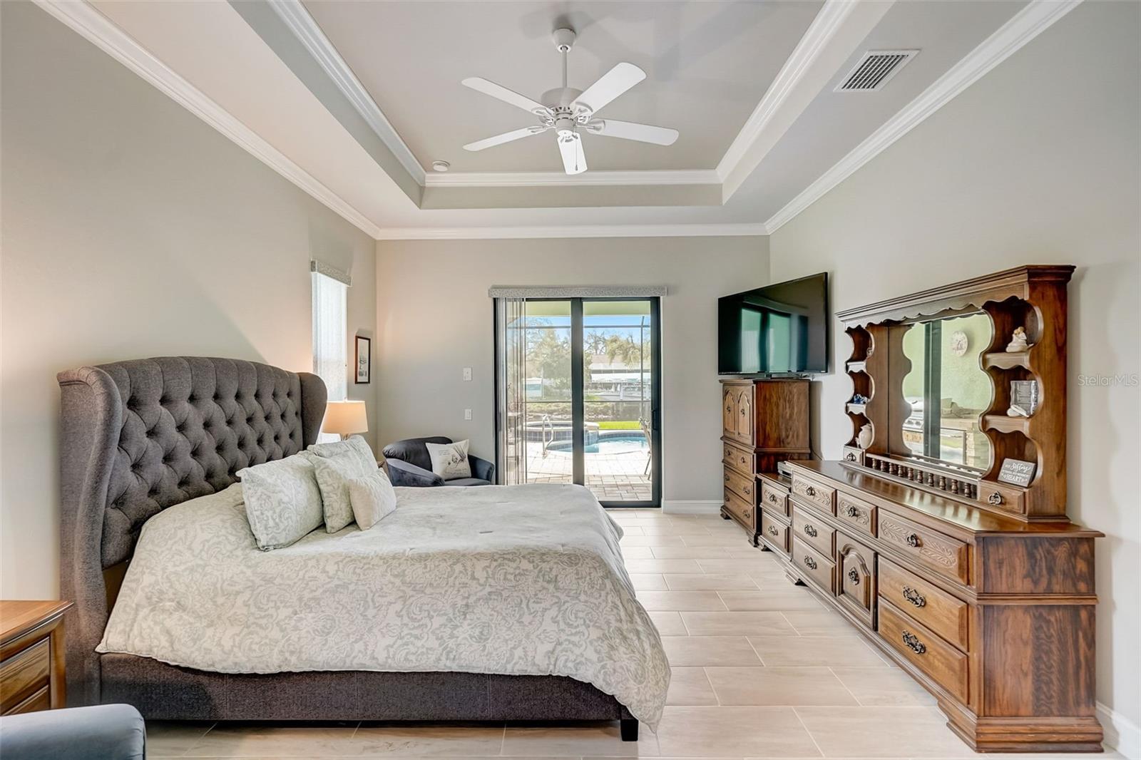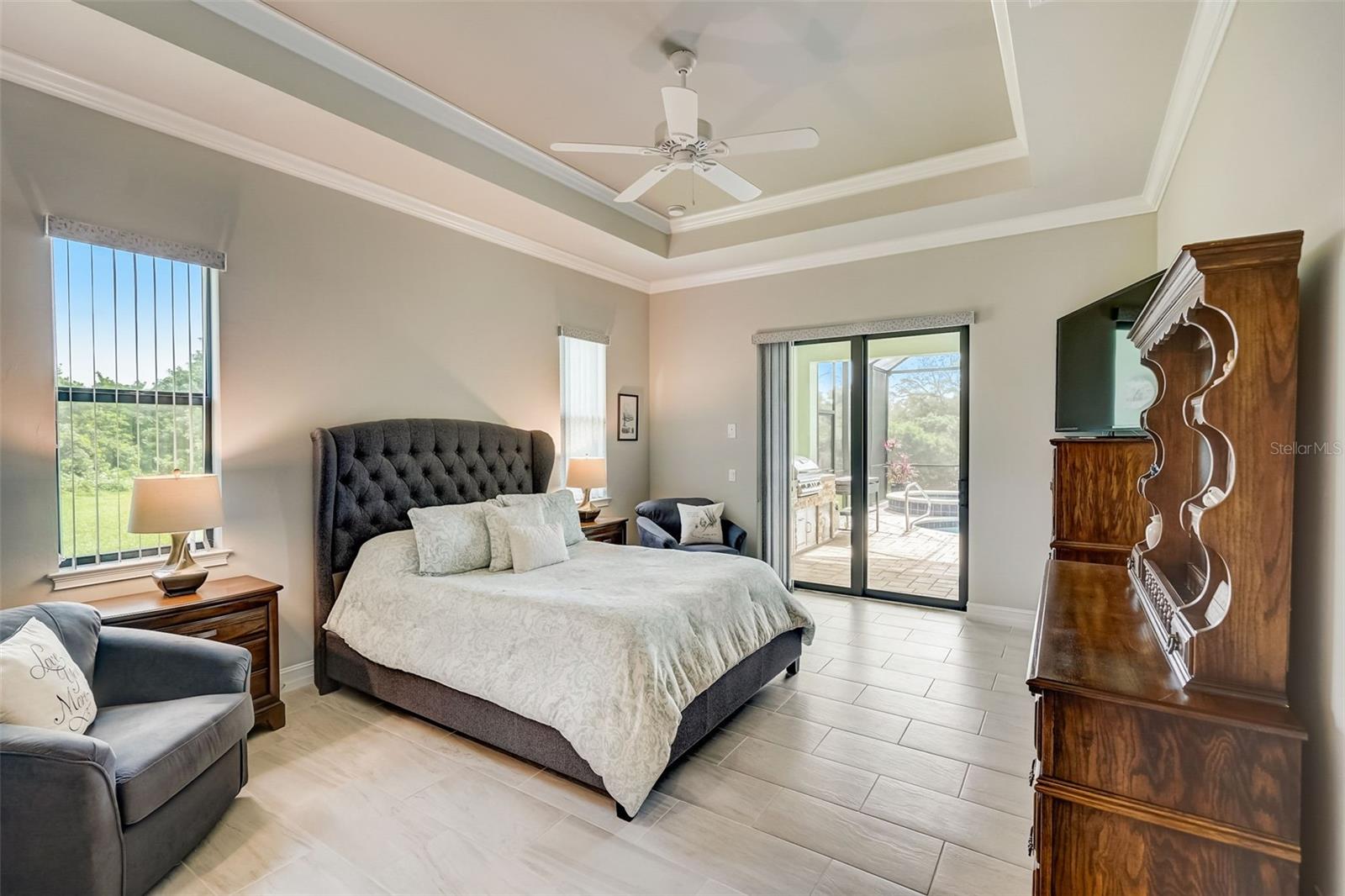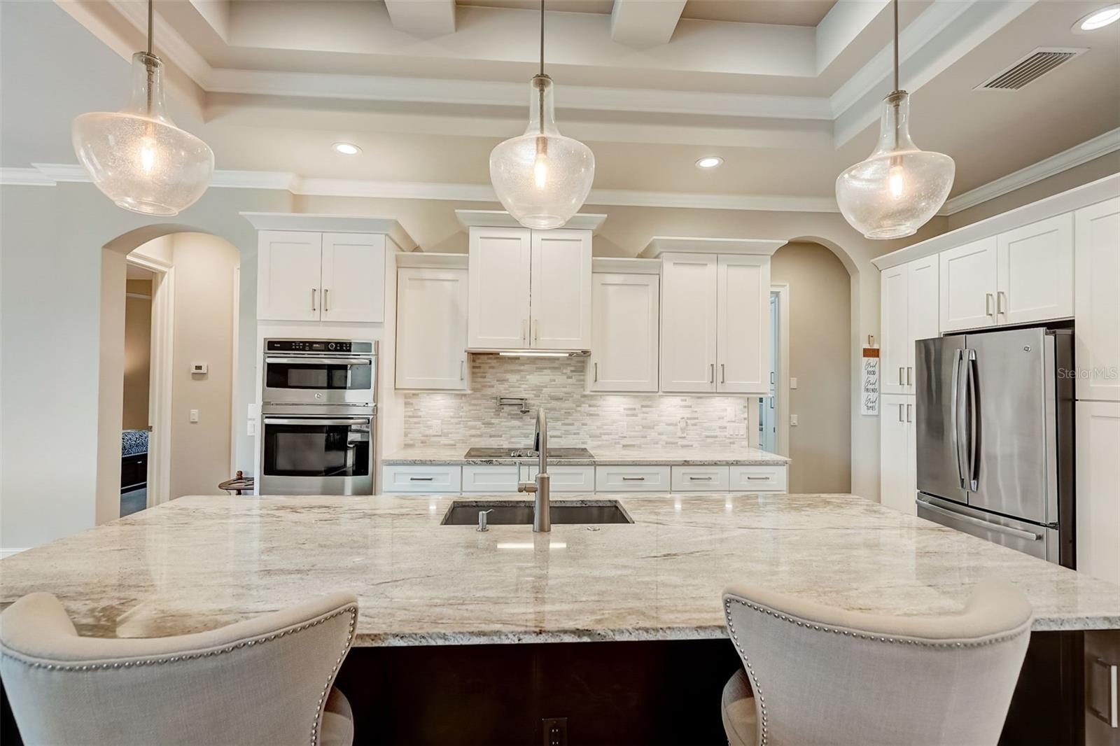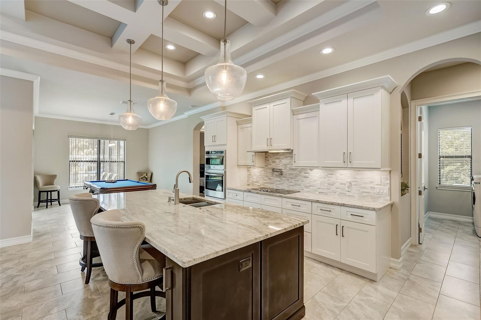 PICTURE PERFECT WATERFRONT POOL HOME ON DOUBLE LOT! 80' Seawall with composite dock & boatlift on The Jupiter Waterway. Enjoy a picturesque ride to the Myakka River, and continue onto Charlotte Harbor & The Gulf of Mexico. (only one bridge to go under) Custom Built Driftwood Model Home completed in 2017. Original owners with all documents and" BUILDERS SPECIFICATIONS" in the "ATTACHMENTS" along with the Model Floor plan with dimensions. This home exudes exceptional detail & craftsmanship through out, starting from the moment you drive up your brick paver driveway, pass under the grand portico, & walk in past the custom leaded designer double doors. Once inside you'll notice the soaring coffered ceilings, expansive view onto the lanai pool deck area, and the beautiful canal waterway. This open-concept floor plan show cases the gourmet chefs kitchen with center island, 42 inch staggered cabinets, pantry, 3 designer lighting pendants, granite counters, pot filler, drink/wine fridge, stainless appliances. Eat in breakfast bar, great room, dining room & flex space are easily accessible with this design. Throughout this home you'll notice the high end crown molding, recessed lighting, and ceiling fans. The primary bedroom retreat has an impressive tray ceiling, crown molding, ceiling fan, and double slider onto the lanai. Dual walk in closets featuring ventilated wood shelving and bonus shelf granting more storage. A spa like en-suite with roman shower with dual heads, custom tile, dual split vanities with granite tops, separate water closet, and extra large linen closet. The flex/study room is currently being used as a home office, tray ceiling, crown molding, ceiling fan & wood plank style flooring. Split floor plan with 2 guest bedrooms, designed tastefully with privacy & comfort, along with a well appointed bathroom. The dining room is currently being used as an entertainment area for pool & ping pong. Leave this up to your imagination with the amazing views to the outside lanai / pool deck. The expansive outdoor living space is designed for relaxation & entertaining. Boasting over 400 Square Feet of covered brick paver area (14'x31') featuring the custom stone stacked chefs outdoor kitchen, it comes fully equipped with a stainless steel "BULL" BBQ grill/rotisserie, refrigerator, sink, concealed propane tanks and prep area. Spacious brick paver lanai oasis, welcoming you into the heated salt water pool /spa with a tranquil waterfall feature, along with soft evening lighting. This entire pool cage is upgraded with No see um screening. The laundry room/utility area is upgraded with 42 inch cabinets, sink with granite counter, frontload washer & dryer. Epoxy coating garage floor, overhead storage, tank less hot water heater, Viega Manabloc plumbing, whole house surge protector. All windows & doors PGT WinGuard impact resistant tinted glass. Impressive whole house 22K "GENERAC" Generator, with a 500 gallon propane tank underground, regularly maintained and serviced. Whole house "KINETICO" reverse osmosis system with a 300 gallon tank. TEAXX pest defense tubes in the walls provided by Hometeam Pest Defense. Irrigation system with timer & rain sensor. Roof material is "cement tile" impressively resistant to weather, pest, and fire. Roof deck area spray foam insulation, rain gutters, home is wired for security system, wired for surround sound 5.1 underground utilities. Perfect location to the Best Beaches & Recreation!!
