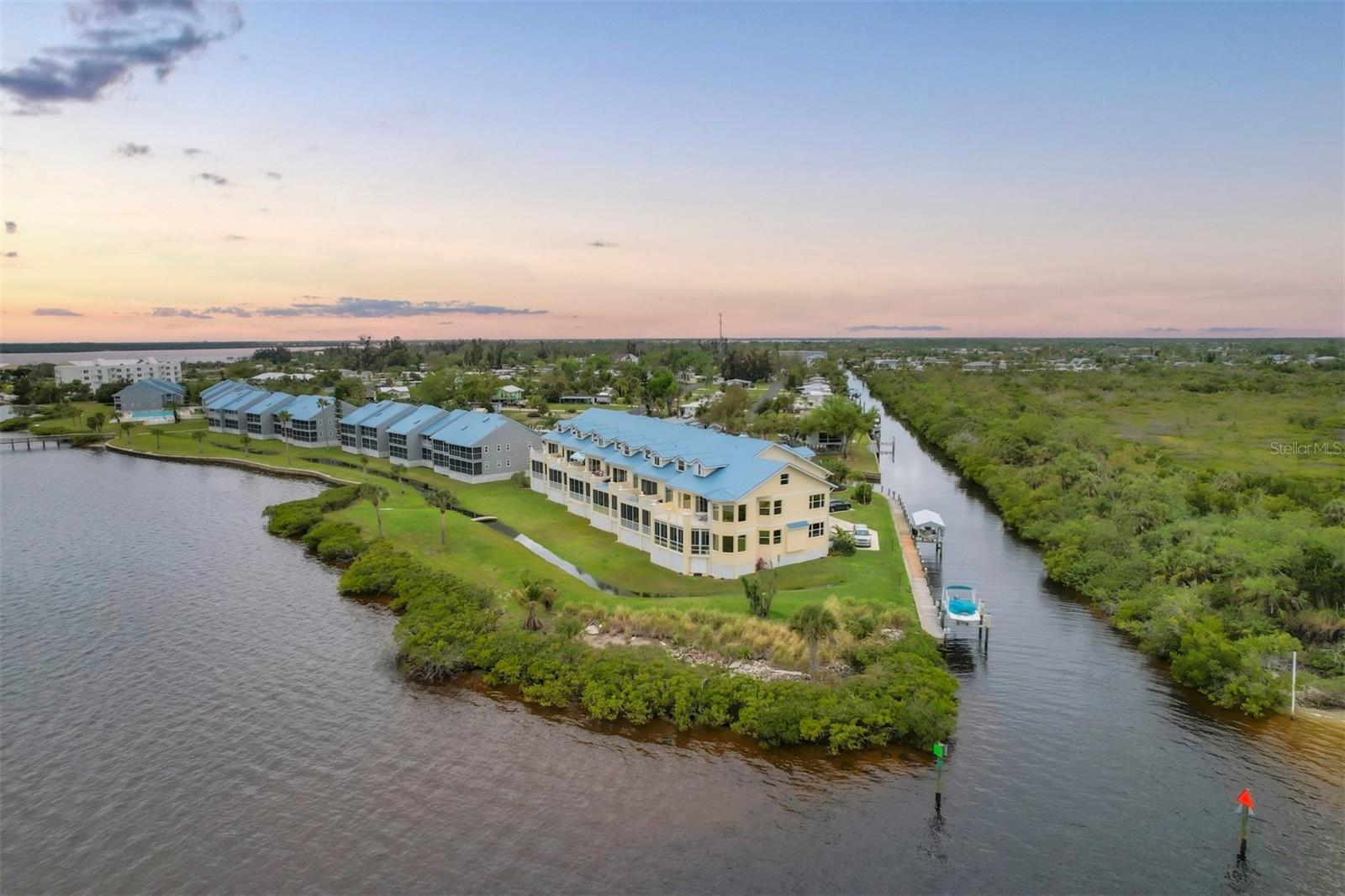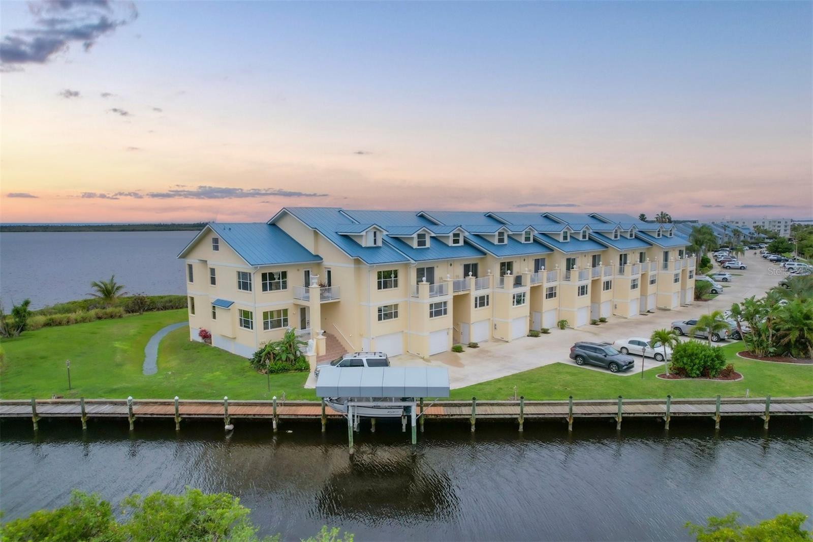 GREAT WATER VIEW, without spending millions! The townhome is in a great location between Port Charlotte, Englewood & North Port only 20 minutes to many stunning beaches! This 4 story townhome has a ELEVATOR, TO EVERY LEVEL NO WORRIES! Every level has a balcony with outdoor seating to enjoy the wonderful water views from each side! The first level of the home has a garage that is extra deep for storage. The second level of the home has a large living room, spacious kitchen with plenty of cabinets for storage & nice large balcony to take in the view and sunsets! The third level is the primary bedroom, walk in closet, large bathroom with double sinks, tub and shower. The other end of the third level has a guest bedroom & their own private bath. The fourth level of the home is finished with a huge area for game room for grandchildren, or another nice area for guests to enjoy their own privacy. The association has a 65" boat dock first come first serve, Olympic size pool (heated) a clubhouse, out door grills, exercise room, picnic area, tennis courts & large pier for fishing. THERE IS ALSO A OPTIONAL DEEDED DOCK AVAILABLE TO PURCHASE! If baseball is your passion, the Tampa Bay Rays and Atlanta Braves both are within a few minutes of this association when in Spring training. There are many nice restaurants on and off the water, live entertainment, kayaking, boating, swimming, several public parks for hiking, birding etc. This area is know for Tarpon fishing, and other types of fishing just minutes to the Gulf. The water in Gulf along our beaches is absolutely stunning colors of turquoise , blue with beautiful white sand & plenty of shells. CALL TODAY TO VIEW THIS PROPERTY! ONLY 25 MINUTES TO PUNTA GORDA AIRPORT, 45 TO FT. MYERS AIRPORT AND 45 MINUTES TO SARASOTA..... Direct flights on Allegiant from several locations thoughout the United States, making it easy travel that is reasonably priced.