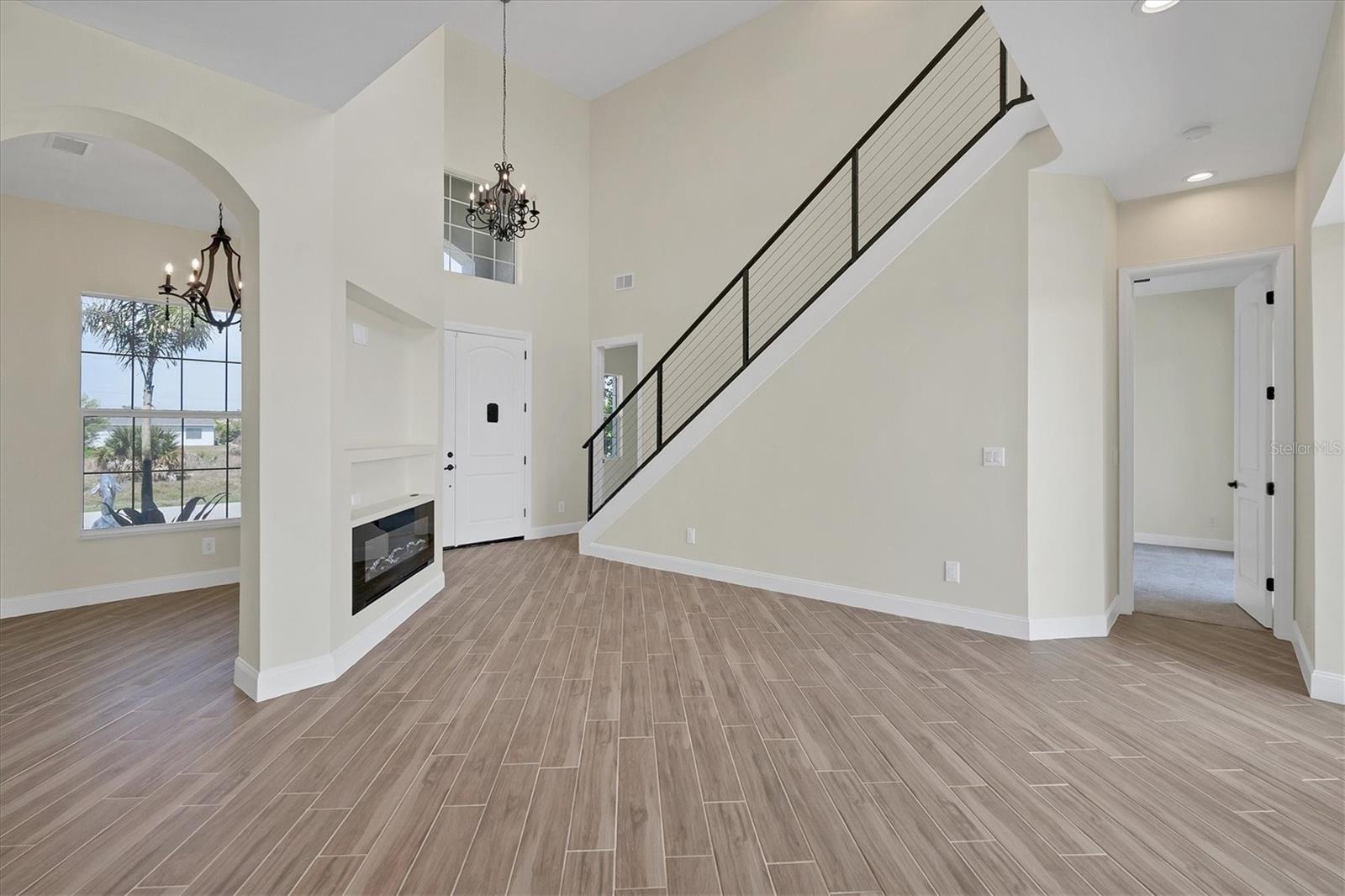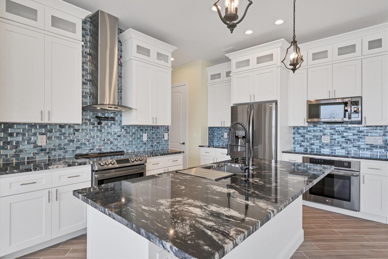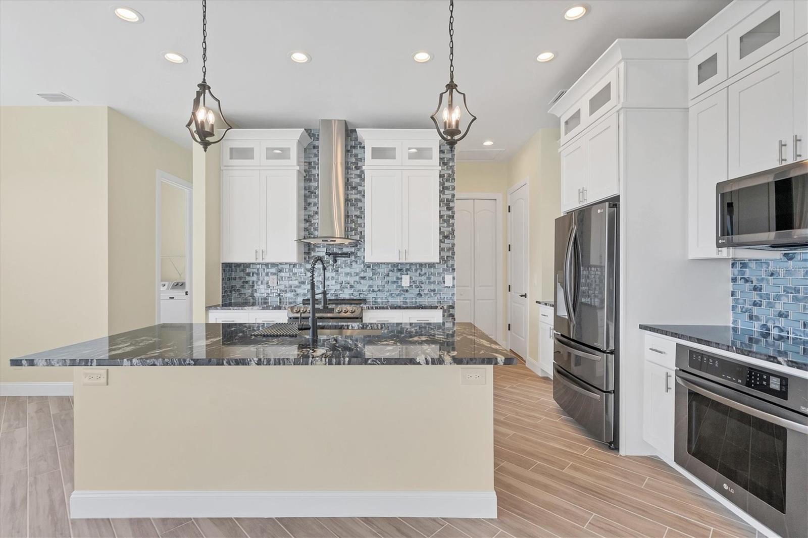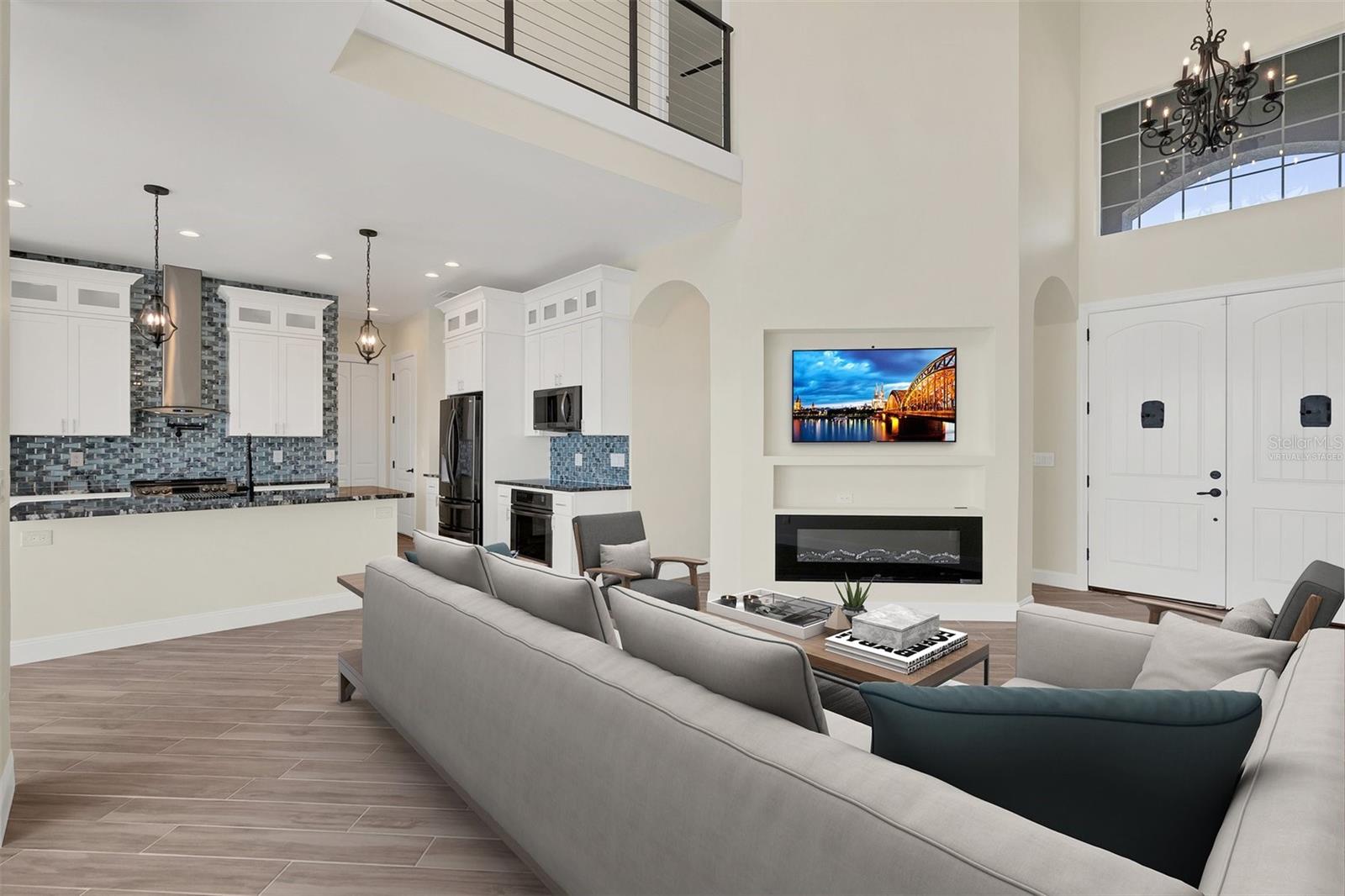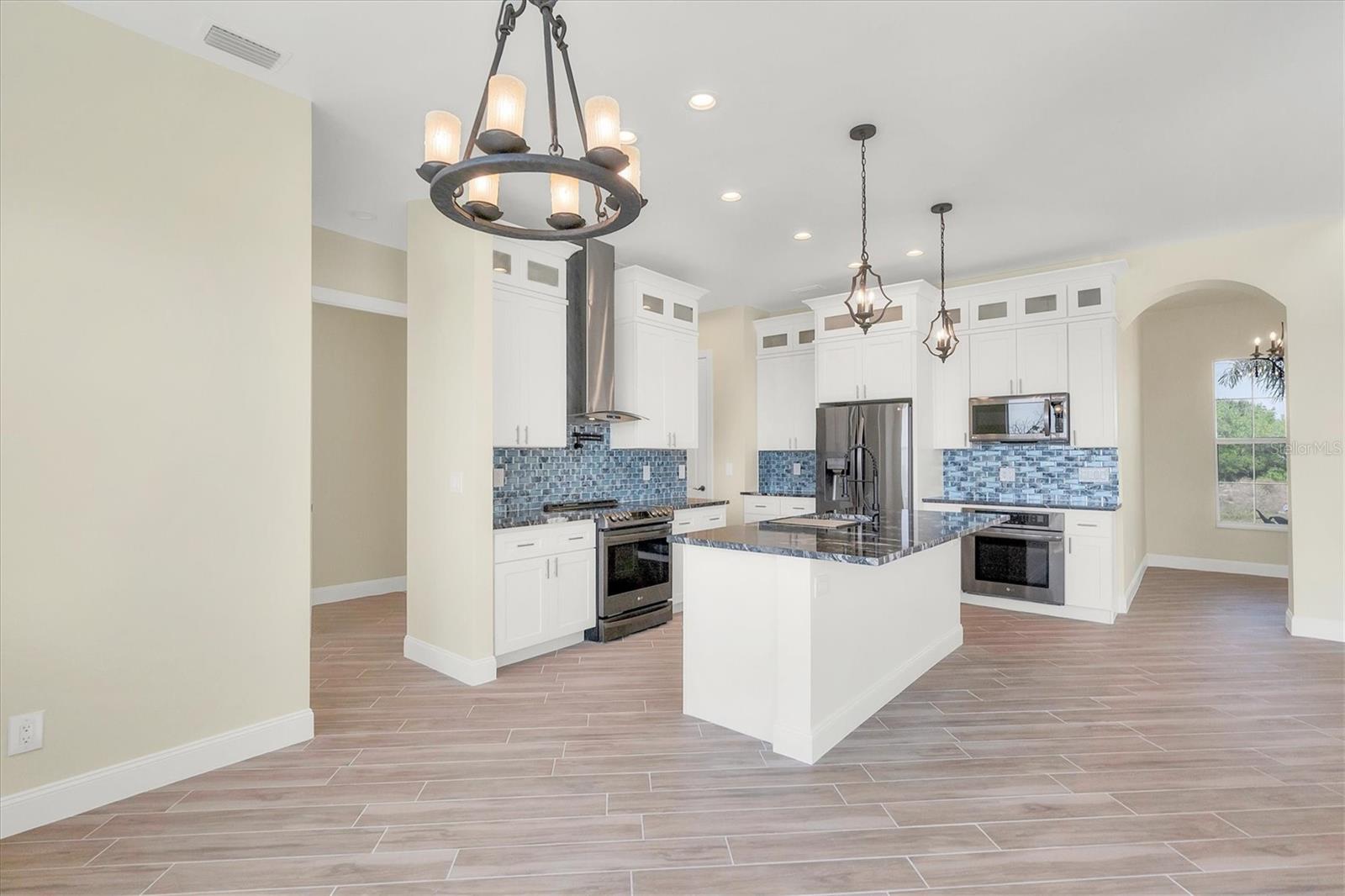 Welcome to waterfront luxury living at its finest! This custom 5-bedroom, 3-1/2-bathroom haven boasts 80 feet of frontage on the serene Manchester Waterway, offering breathtaking wide water views and coveted southern rear exposure. Sailboat access to Charlotte Harbor ensures endless opportunities for aquatic adventures right from your doorstep. Impeccably renovated after Hurricane Ian, this home exudes modern elegance and comfort. A 2023 roof, new drywall, porcelain tile, all new gorgeous lighting and fans and carpet throughout set the stage for a fresh, inviting ambiance. Step into the heart of the home, where a brand-new kitchen awaits with sleek granite counters, a stunning glass tile backsplash, and black stainless-steel appliances including two ovens, one of which is convection. The large island with breakfast bar, walk-in closet pantry, and exquisite details like pot filler for the stove showcase the meticulous attention to detail. The living room offers an electric fireplace with built-in space for a 75" TV and amazing views over the pool and beyond to the canal. The first floor features bedrooms sharing a convenient Jack and Jill bathroom, while a beautiful open staircase leads to the master suite and additional bedrooms. The expansive master suite is a sanctuary unto itself, boasting a large balcony, two walk-in closets, and a spa-like master bath with an extraordinary master shower featuring dual control shower heads with an additional rain head and double glass sinks. Other bedrooms share a spacious guest bath with tub/shower combo and access to a sizable storage area. Entertain in style outdoors on the brick paver lanai, where a heated saltwater pool and spa beckon for relaxation. An outdoor kitchen and shower add convenience and luxury to your al fresco gatherings. Plus, a 13 x 15 insulated shed with A/C offers versatile bonus space for hobbies or storage. This home is not just beautiful—it's built to withstand the elements with hurricane impact windows and 14.8kw solar system for energy efficiency. With an attached two-car garage and an additional RV garage with a 12-foot door, there's ample space for all your vehicles and toys. The fenced backyard ensures privacy and security in your own slice of paradise. Don't miss your chance to experience waterfront living at its finest in this meticulously crafted retreat!