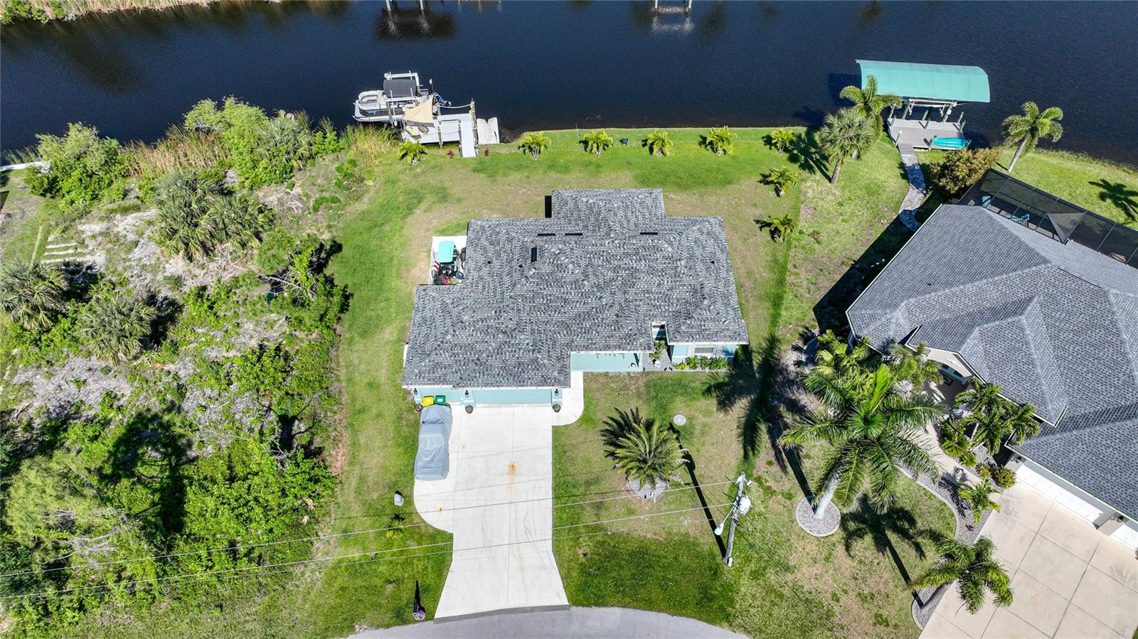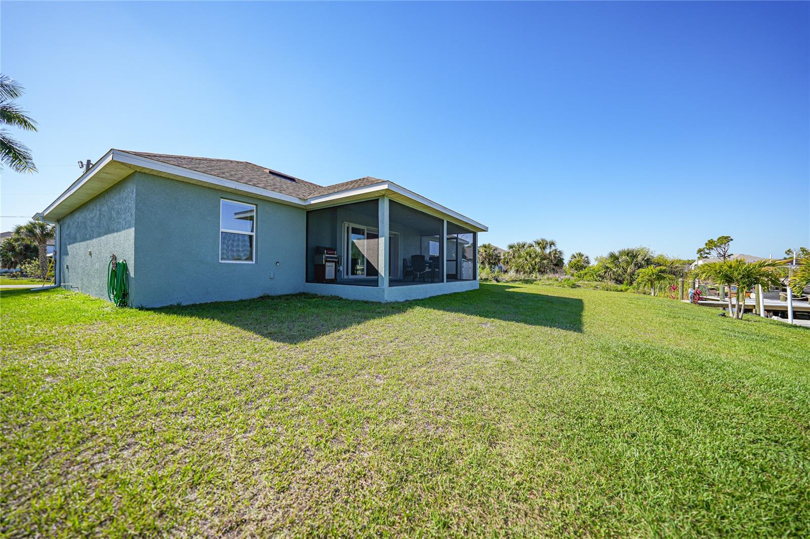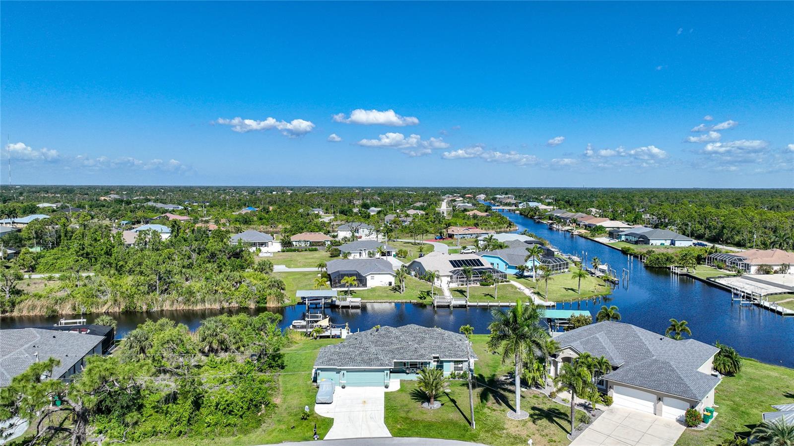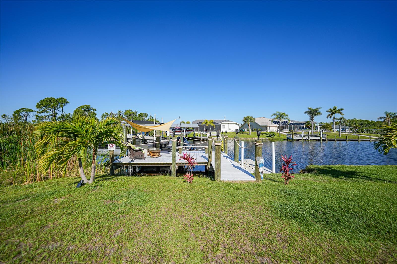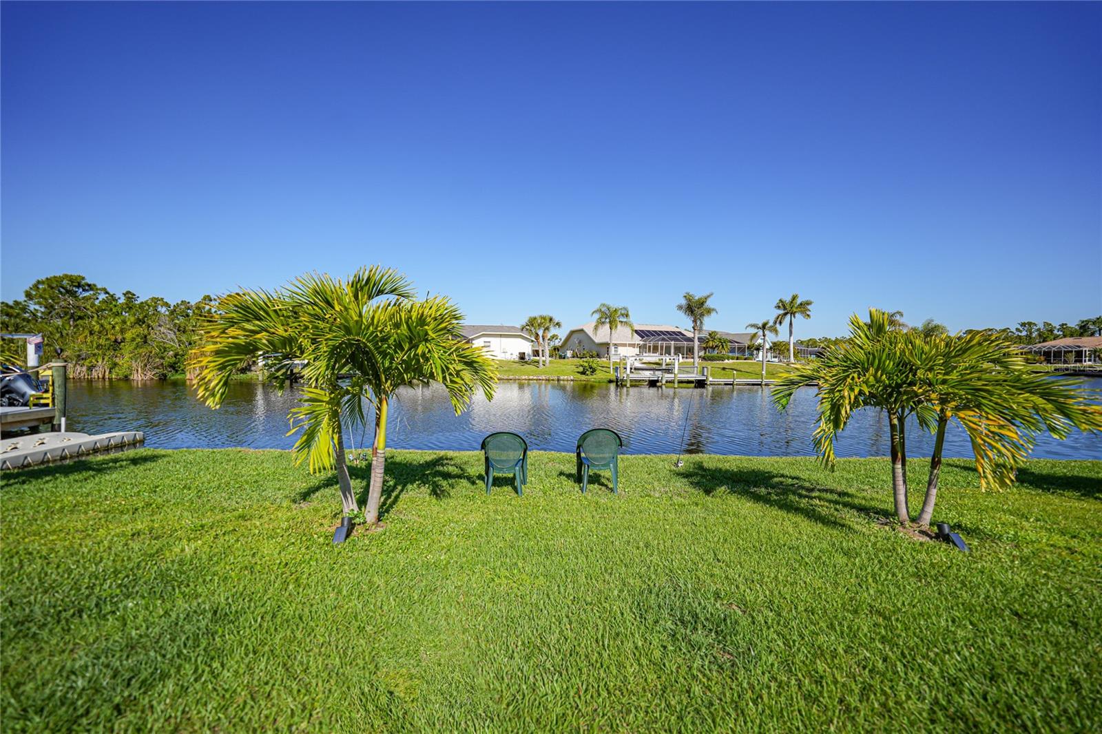 $20k PRICE REDUCTION!! Welcome to this recently constructed home from 2022 situated on a SPACIOUS SEMI-TIP LOT boasting a remarkable 135 FEET OF WATERFRONT VIEWS where the IMPALA and ZEPHYR WATERWAYS intersect in the highly desirable South Gulf Cove Community! Featuring 3 bedrooms, 2 bathrooms and a THREE CAR GARAGE, BOAT LIFT and TREX DOCK this home impresses with it's lofty cathedral ceilings, an airy open layout with sleek ceramic plank tile in the main living spaces, an indoor laundry area and a spacious covered and screened lanai where you can relish STUNNING SUNSETS with a northwestern facing exposure! <br> <br> Step inside this elegantly adorned home to discover a contemporary atmosphere accentuated by stylish kitchen cupboards and cabinets in a charming slate hue, ample granite countertop space, stainless steel appliances and a generously sized breakfast bar perfect for hosting gatherings. Additionally, a newly constructed pantry/buffet and coffee bar provide additional storage and convenience. The primary suite exudes space and luxury with plush upgraded carpeting, a tray ceiling, a sizable walk-in closet and a private en-suite bathroom matching the kitchen's elegance, complete with a garden tub/shower combination. The remaining two bedrooms have ample space, built-in closets and updated quality carpeting. Other notable interior features are elegant wooden blinds, an electric shade for the 9 foot glass pocket slider leading to the lanai, 4" baseboards, recessed lighting and a state of the art GENERAC FULL HOUSE GENERATOR! Also a MINI SPLIT AC was just added to the 700 sq ft GARAGE for added convenience!! <br> <br> Outside, the living space becomes an enchanting retreat with a recently installed expansive TREX DOCK equipped with electricity and water, an 8000 LB BOAT LIFT and a durable riprap seawall. The exterior also boasts motion sensor lights, landscape lighting, front and back rain gutters, and ample space for a potential pool! The owner has meticulously adjusted the culvert at the left side of the house to ensure proper rainwater drainage. Furthermore, the garage is extended an additional 6 feet in depth to accommodate larger vehicles! <br> <br> So bring your boat, kayaks and fishing gear so you can enjoy all the fresh catches of snapper, tarpon, redfish and snook right from your backyard or take your boat just a short 10 minutes to the lagoon (one bridge) and head out to the harbor or into the Gulf of Mexico! This home is on city water/sewer and in an OPTIONAL HOA for $120/year. The community offers a park, playground, a private boat ramp, clubhouse and all major roads have multi-use path sidewalks for peace of mind. Plenty of things to do here such as enjoying the PRISTINE BEACHES of Boca Grande or Englewood or if golfing is your thing, there are several golf courses nearby. Historic downtown Punta Gorda or Dearborn Street are both worth a visit for their charming shops, eateries and Farmer's Markets. Also the recently opened Sunseeker Resort is another destination with endless entertainment, refreshing pools and day spa! This area has a small town feel but if you need a dose of big city life, Ft Myers and Sarasota are not far. Close proximity to regional and international airports! Make your appointment today....this home won't disappoint!