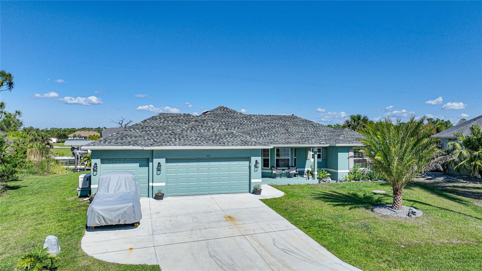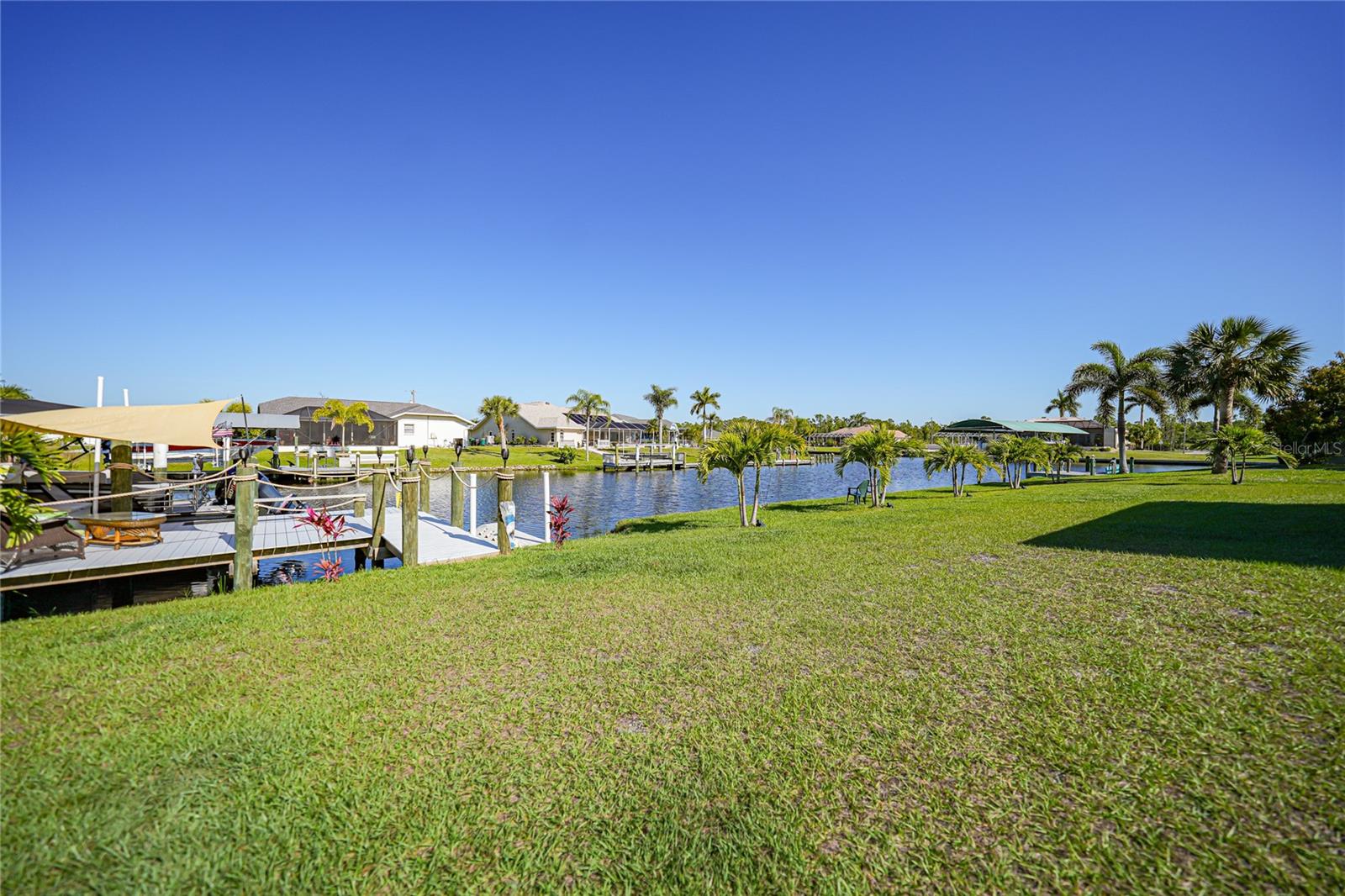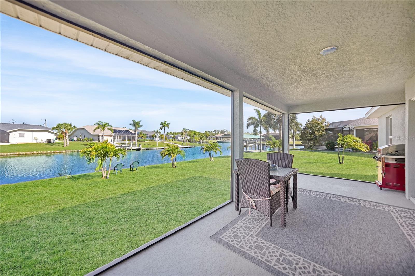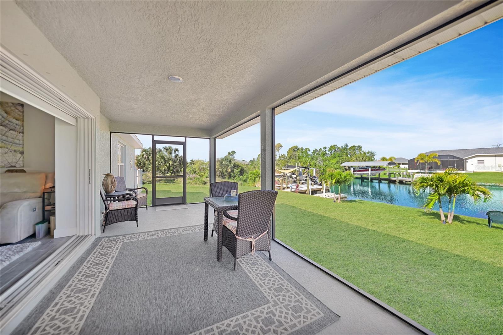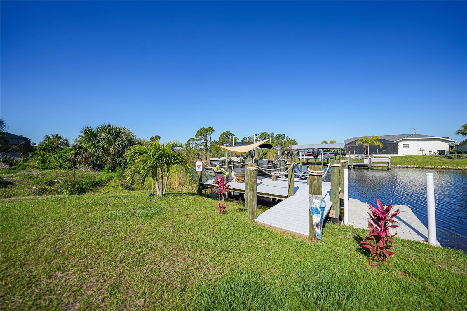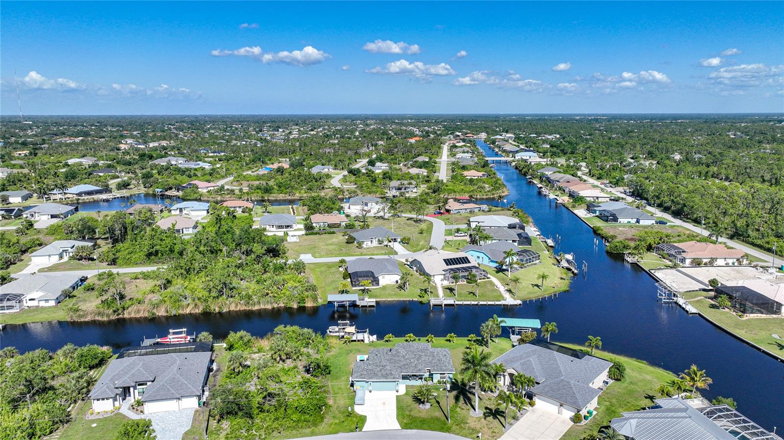 $20k PRICE REDUCTION!! Welcome to this recently constructed home from 2022 situated on a SPACIOUS SEMI-TIP LOT boasting a remarkable 135 FEET OF WATERFRONT VIEWS where the IMPALA and ZEPHYR WATERWAYS intersect in the highly desirable South Gulf Cove Community! Featuring 3 bedrooms, 2 bathrooms and a THREE CAR GARAGE, BOAT LIFT and TREX DOCK this home impresses with it's lofty cathedral ceilings, an airy open layout with sleek ceramic plank tile in the main living spaces, an indoor laundry area and a spacious covered and screened lanai where you can relish STUNNING SUNSETS with a northwestern facing exposure! <br> <br> Step inside this elegantly adorned home to discover a contemporary atmosphere accentuated by stylish kitchen cupboards and cabinets in a charming slate hue, ample granite countertop space, stainless steel appliances and a generously sized breakfast bar perfect for hosting gatherings. Additionally, a newly constructed pantry/buffet and coffee bar provide additional storage and convenience. The primary suite exudes space and luxury with plush upgraded carpeting, a tray ceiling, a sizable walk-in closet and a private en-suite bathroom matching the kitchen's elegance, complete with a garden tub/shower combination. The remaining two bedrooms have ample space, built-in closets and updated quality carpeting. Other notable interior features are elegant wooden blinds, an electric shade for the 9 foot glass pocket slider leading to the lanai, 4" baseboards, recessed lighting and a state of the art GENERAC FULL HOUSE GENERATOR! Also a MINI SPLIT AC was just added to the 700 sq ft GARAGE for added convenience!! <br> <br> Outside, the living space becomes an enchanting retreat with a recently installed expansive TREX DOCK equipped with electricity and water, an 8000 LB BOAT LIFT and a durable riprap seawall. The exterior also boasts motion sensor lights, landscape lighting, front and back rain gutters, and ample space for a potential pool! The owner has meticulously adjusted the culvert at the left side of the house to ensure proper rainwater drainage. Furthermore, the garage is extended an additional 6 feet in depth to accommodate larger vehicles! <br> <br> So bring your boat, kayaks and fishing gear so you can enjoy all the fresh catches of snapper, tarpon, redfish and snook right from your backyard or take your boat just a short 10 minutes to the lagoon (one bridge) and head out to the harbor or into the Gulf of Mexico! This home is on city water/sewer and in an OPTIONAL HOA for $120/year. The community offers a park, playground, a private boat ramp, clubhouse and all major roads have multi-use path sidewalks for peace of mind. Plenty of things to do here such as enjoying the PRISTINE BEACHES of Boca Grande or Englewood or if golfing is your thing, there are several golf courses nearby. Historic downtown Punta Gorda or Dearborn Street are both worth a visit for their charming shops, eateries and Farmer's Markets. Also the recently opened Sunseeker Resort is another destination with endless entertainment, refreshing pools and day spa! This area has a small town feel but if you need a dose of big city life, Ft Myers and Sarasota are not far. Close proximity to regional and international airports! Make your appointment today....this home won't disappoint!