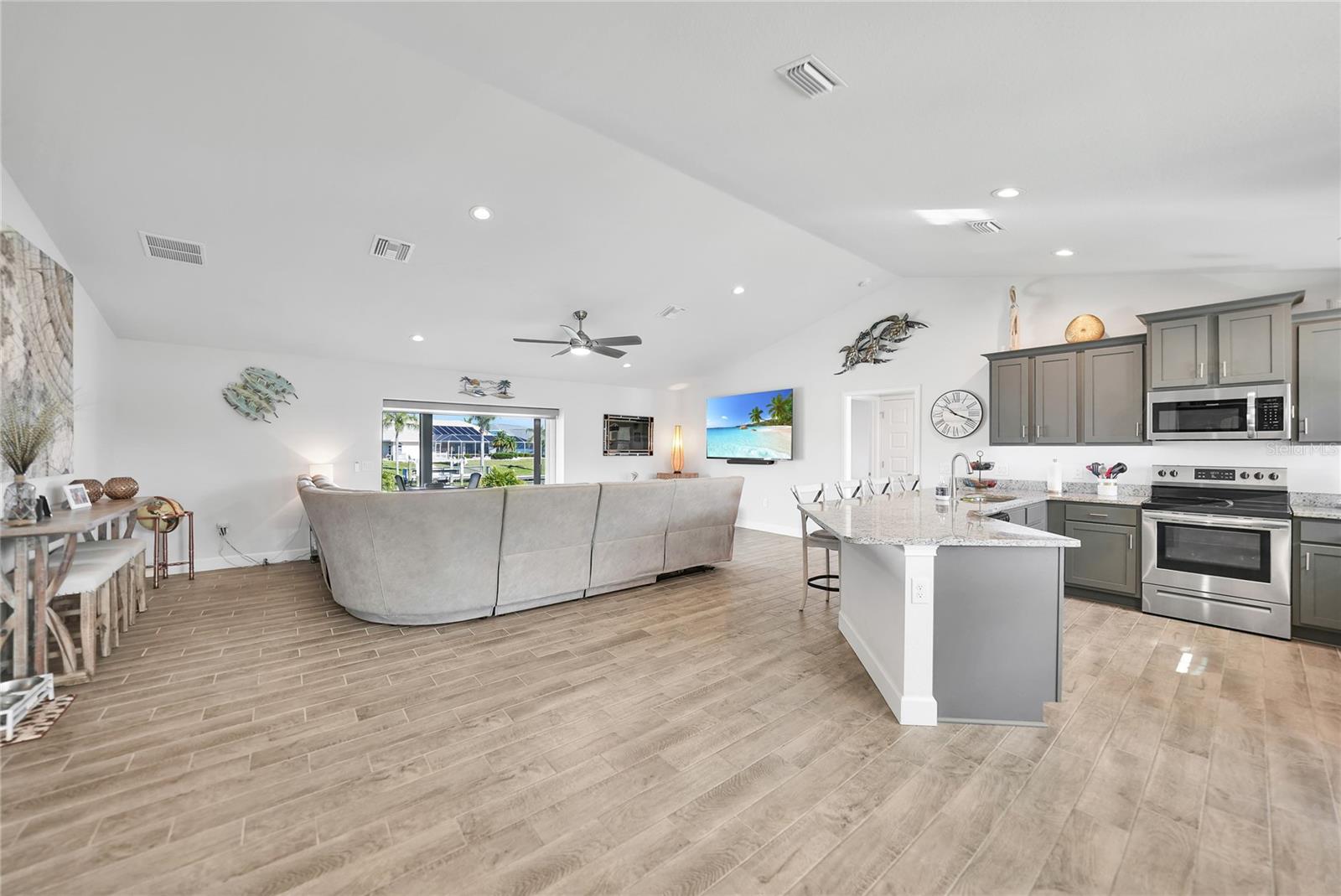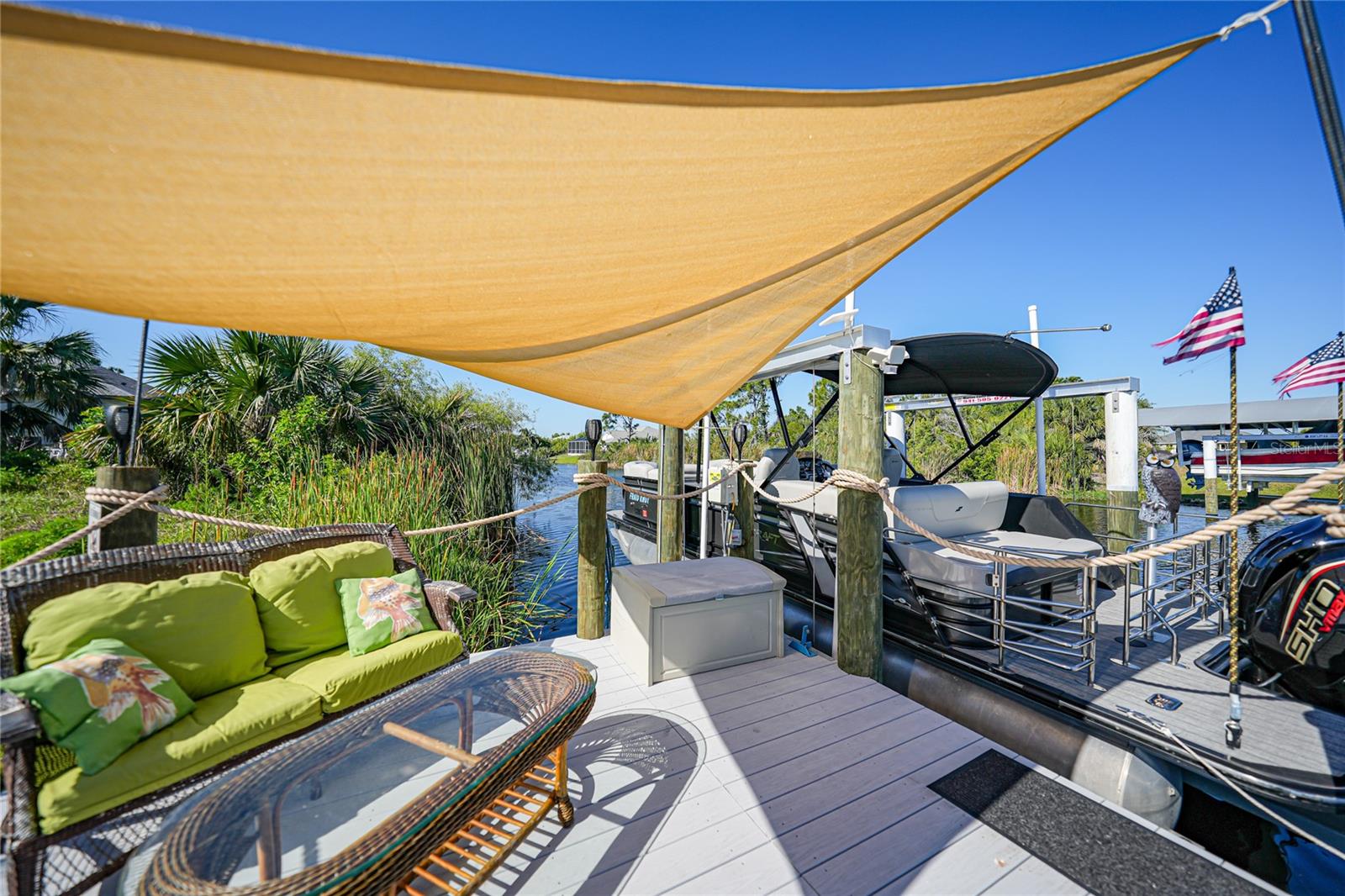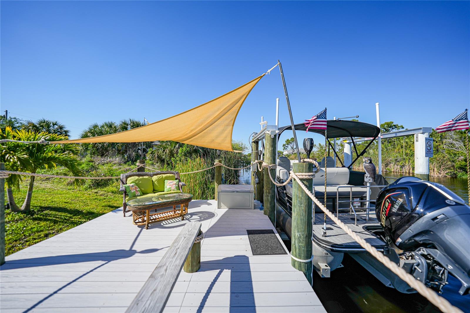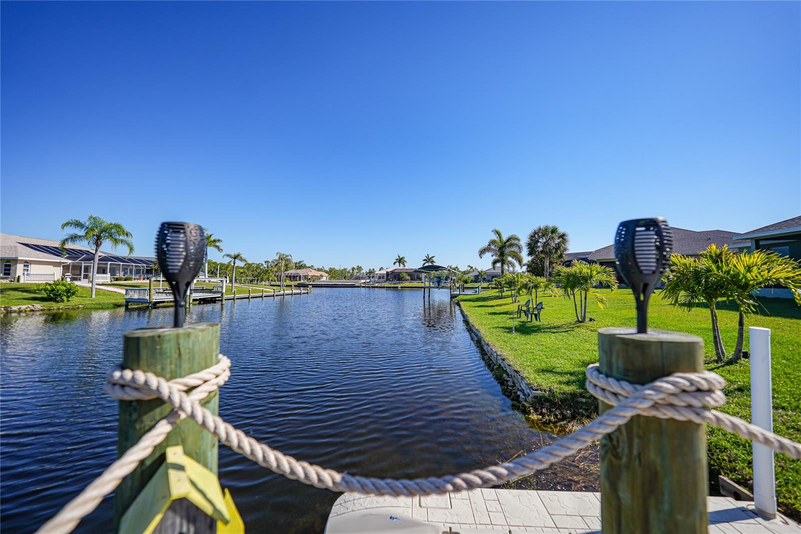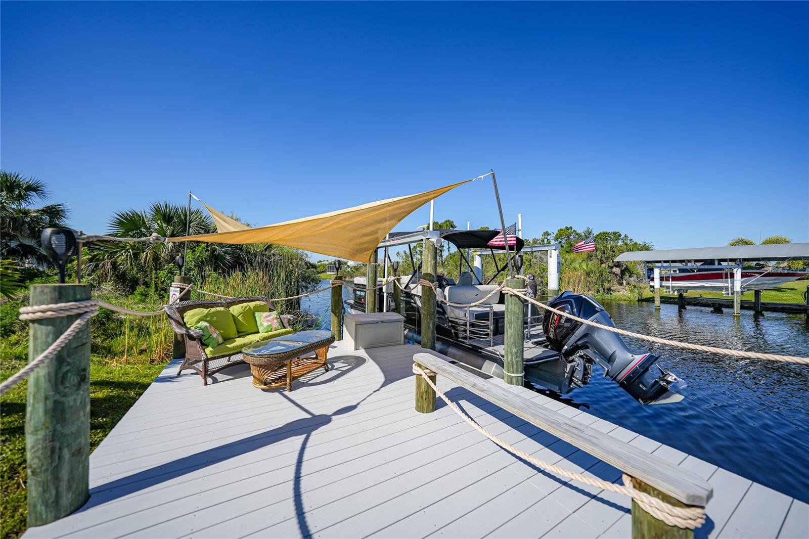 $20k PRICE REDUCTION!! Welcome to this recently constructed home from 2022 situated on a SPACIOUS SEMI-TIP LOT boasting a remarkable 135 FEET OF WATERFRONT VIEWS where the IMPALA and ZEPHYR WATERWAYS intersect in the highly desirable South Gulf Cove Community! Featuring 3 bedrooms, 2 bathrooms and a THREE CAR GARAGE, BOAT LIFT and TREX DOCK this home impresses with it's lofty cathedral ceilings, an airy open layout with sleek ceramic plank tile in the main living spaces, an indoor laundry area and a spacious covered and screened lanai where you can relish STUNNING SUNSETS with a northwestern facing exposure! <br> <br> Step inside this elegantly adorned home to discover a contemporary atmosphere accentuated by stylish kitchen cupboards and cabinets in a charming slate hue, ample granite countertop space, stainless steel appliances and a generously sized breakfast bar perfect for hosting gatherings. Additionally, a newly constructed pantry/buffet and coffee bar provide additional storage and convenience. The primary suite exudes space and luxury with plush upgraded carpeting, a tray ceiling, a sizable walk-in closet and a private en-suite bathroom matching the kitchen's elegance, complete with a garden tub/shower combination. The remaining two bedrooms have ample space, built-in closets and updated quality carpeting. Other notable interior features are elegant wooden blinds, an electric shade for the 9 foot glass pocket slider leading to the lanai, 4" baseboards, recessed lighting and a state of the art GENERAC FULL HOUSE GENERATOR! Also a MINI SPLIT AC was just added to the 700 sq ft GARAGE for added convenience!! <br> <br> Outside, the living space becomes an enchanting retreat with a recently installed expansive TREX DOCK equipped with electricity and water, an 8000 LB BOAT LIFT and a durable riprap seawall. The exterior also boasts motion sensor lights, landscape lighting, front and back rain gutters, and ample space for a potential pool! The owner has meticulously adjusted the culvert at the left side of the house to ensure proper rainwater drainage. Furthermore, the garage is extended an additional 6 feet in depth to accommodate larger vehicles! <br> <br> So bring your boat, kayaks and fishing gear so you can enjoy all the fresh catches of snapper, tarpon, redfish and snook right from your backyard or take your boat just a short 10 minutes to the lagoon (one bridge) and head out to the harbor or into the Gulf of Mexico! This home is on city water/sewer and in an OPTIONAL HOA for $120/year. The community offers a park, playground, a private boat ramp, clubhouse and all major roads have multi-use path sidewalks for peace of mind. Plenty of things to do here such as enjoying the PRISTINE BEACHES of Boca Grande or Englewood or if golfing is your thing, there are several golf courses nearby. Historic downtown Punta Gorda or Dearborn Street are both worth a visit for their charming shops, eateries and Farmer's Markets. Also the recently opened Sunseeker Resort is another destination with endless entertainment, refreshing pools and day spa! This area has a small town feel but if you need a dose of big city life, Ft Myers and Sarasota are not far. Close proximity to regional and international airports! Make your appointment today....this home won't disappoint!