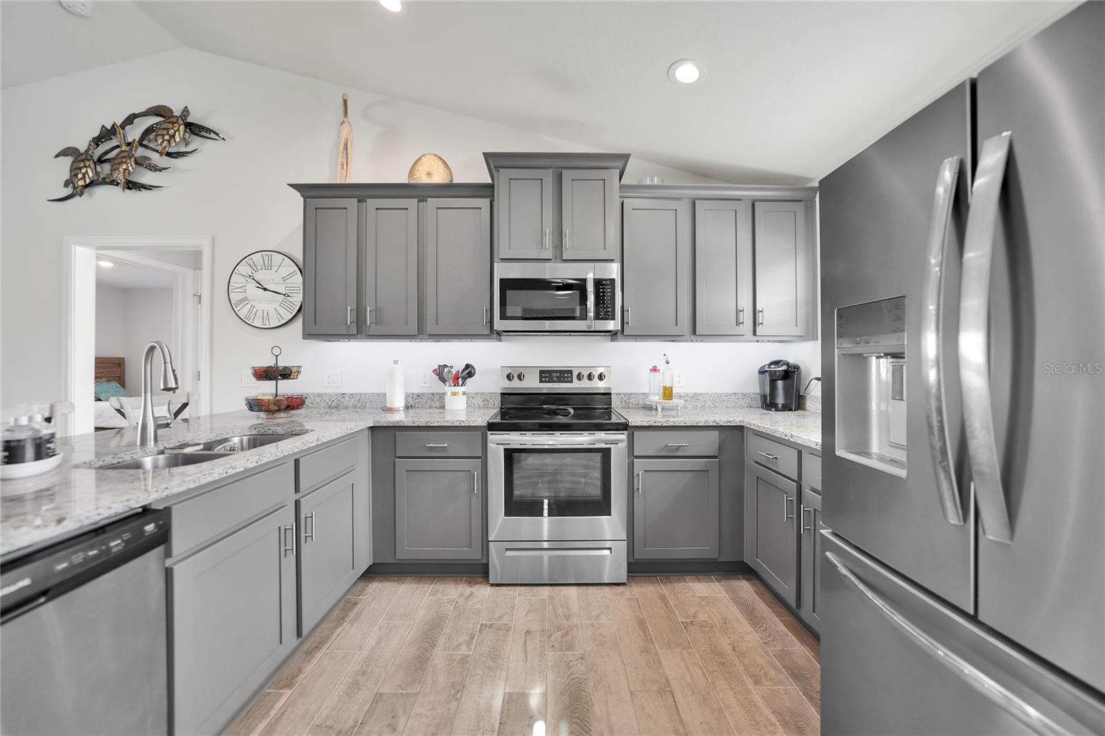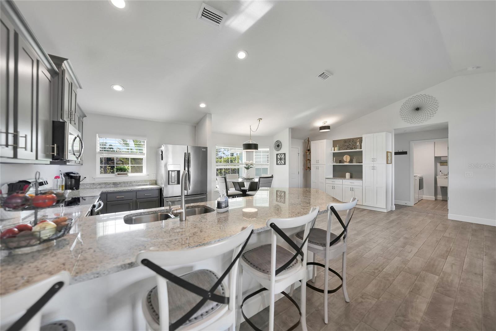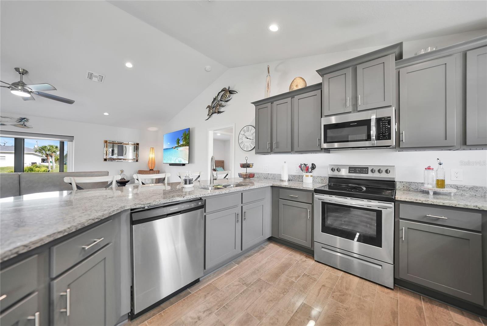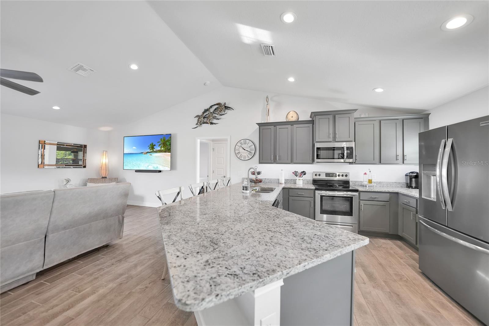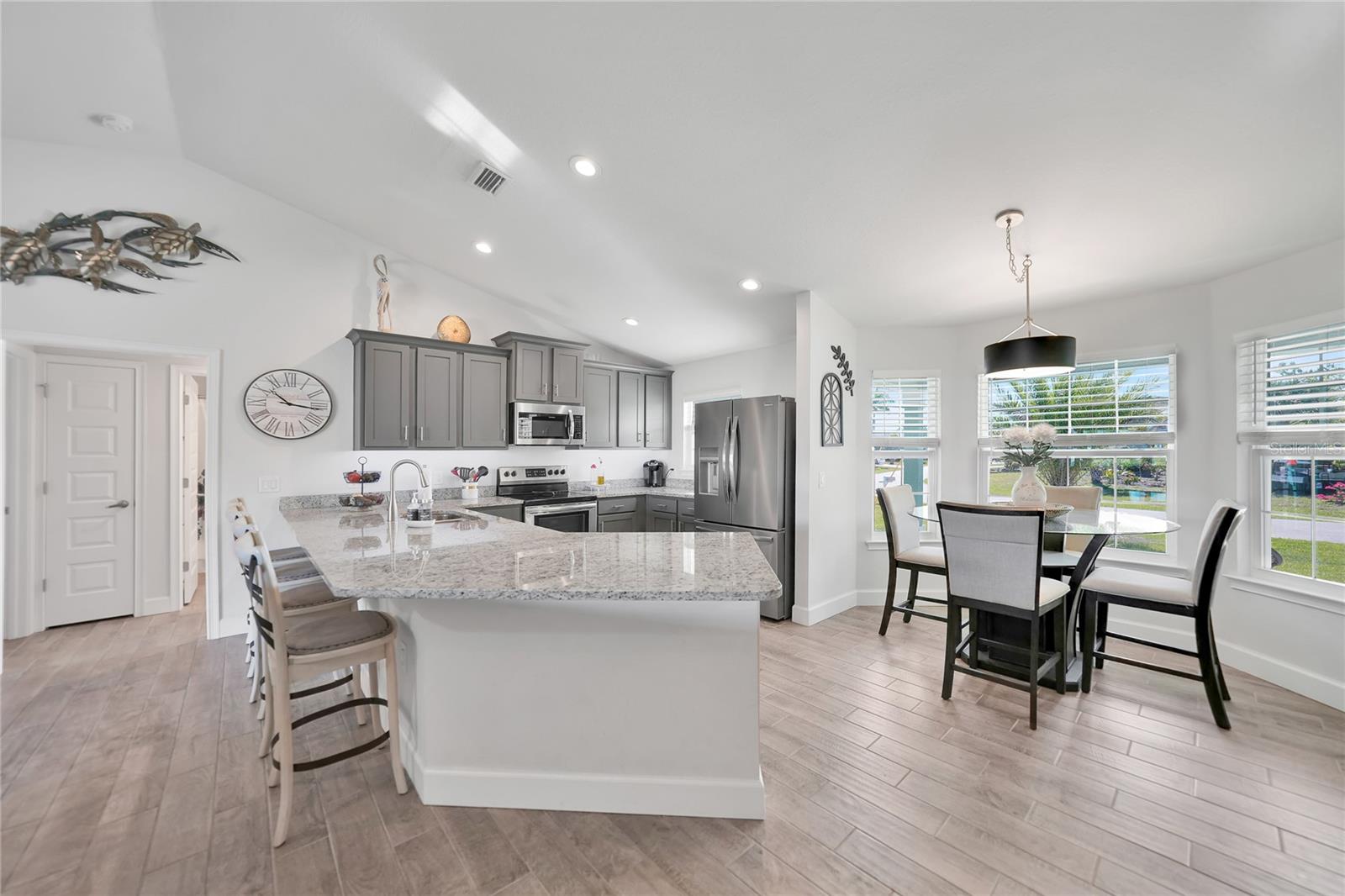 $20k PRICE REDUCTION!! Welcome to this recently constructed home from 2022 situated on a SPACIOUS SEMI-TIP LOT boasting a remarkable 135 FEET OF WATERFRONT VIEWS where the IMPALA and ZEPHYR WATERWAYS intersect in the highly desirable South Gulf Cove Community! Featuring 3 bedrooms, 2 bathrooms and a THREE CAR GARAGE, BOAT LIFT and TREX DOCK this home impresses with it's lofty cathedral ceilings, an airy open layout with sleek ceramic plank tile in the main living spaces, an indoor laundry area and a spacious covered and screened lanai where you can relish STUNNING SUNSETS with a northwestern facing exposure! <br> <br> Step inside this elegantly adorned home to discover a contemporary atmosphere accentuated by stylish kitchen cupboards and cabinets in a charming slate hue, ample granite countertop space, stainless steel appliances and a generously sized breakfast bar perfect for hosting gatherings. Additionally, a newly constructed pantry/buffet and coffee bar provide additional storage and convenience. The primary suite exudes space and luxury with plush upgraded carpeting, a tray ceiling, a sizable walk-in closet and a private en-suite bathroom matching the kitchen's elegance, complete with a garden tub/shower combination. The remaining two bedrooms have ample space, built-in closets and updated quality carpeting. Other notable interior features are elegant wooden blinds, an electric shade for the 9 foot glass pocket slider leading to the lanai, 4" baseboards, recessed lighting and a state of the art GENERAC FULL HOUSE GENERATOR! Also a MINI SPLIT AC was just added to the 700 sq ft GARAGE for added convenience!! <br> <br> Outside, the living space becomes an enchanting retreat with a recently installed expansive TREX DOCK equipped with electricity and water, an 8000 LB BOAT LIFT and a durable riprap seawall. The exterior also boasts motion sensor lights, landscape lighting, front and back rain gutters, and ample space for a potential pool! The owner has meticulously adjusted the culvert at the left side of the house to ensure proper rainwater drainage. Furthermore, the garage is extended an additional 6 feet in depth to accommodate larger vehicles! <br> <br> So bring your boat, kayaks and fishing gear so you can enjoy all the fresh catches of snapper, tarpon, redfish and snook right from your backyard or take your boat just a short 10 minutes to the lagoon (one bridge) and head out to the harbor or into the Gulf of Mexico! This home is on city water/sewer and in an OPTIONAL HOA for $120/year. The community offers a park, playground, a private boat ramp, clubhouse and all major roads have multi-use path sidewalks for peace of mind. Plenty of things to do here such as enjoying the PRISTINE BEACHES of Boca Grande or Englewood or if golfing is your thing, there are several golf courses nearby. Historic downtown Punta Gorda or Dearborn Street are both worth a visit for their charming shops, eateries and Farmer's Markets. Also the recently opened Sunseeker Resort is another destination with endless entertainment, refreshing pools and day spa! This area has a small town feel but if you need a dose of big city life, Ft Myers and Sarasota are not far. Close proximity to regional and international airports! Make your appointment today....this home won't disappoint!