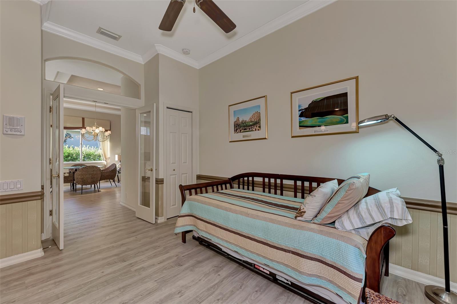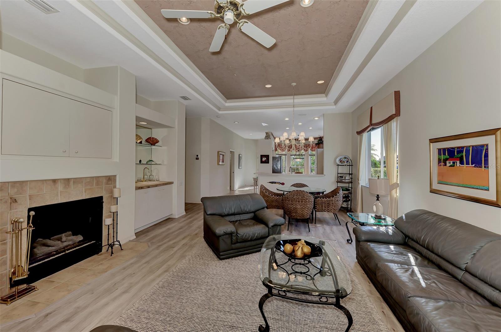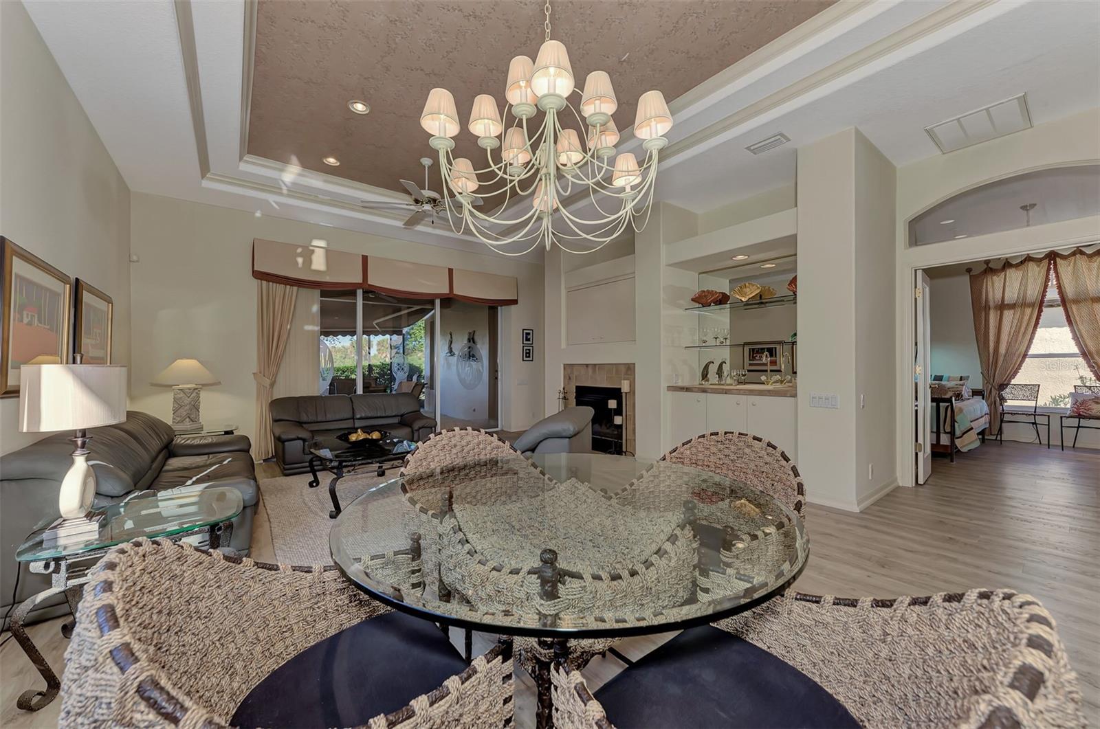 PRICE IMPROVEMENT! NEW ROOF 2023! A lovely custom Arthur Rutenberg TURNKEY furnished home in the much sought after popular Riverwood Community. Enjoy your new home in a maintenancee free neighborhood with all the perks of a gated community. This well-appointed former model home features updated vinyl flooring throughout the living room, bedrooms/office and primary bath. The flow of the home from the kitchen to the lanai affords you a beautiful view of the 17th fairway. A desirable open floor plan with high ceilings, crown molding and a wet bar for preparing those happy hour cocktails. The sliding glass doors will lead you to a generous size lanai with an inviting spa and outdoor kitchen area. The large primary bedroom, with access to the lanai, includes a walk-in closet and bathroom en-suite with a soaking tub and separate shower. The third bedroom/office features unique built-ins. The laundry room is complete with updated washer/dryer. Other features include a central vac system, updated refrigerator and Bosh dishwasher. New Bromeliades plantings around the Spa and an updated Stainless Steel Built-in Outdoor Electric Grill. FIREPLACE DOES NOT WORK, IT IS FOR DECORATIVE PURPOSE ONLY. PICTURE OF SANDHILL CRANE ABOVE TUB IN THE PRIMARY BATH AND TWO BIRD PICTURES ABOVE NIGHTSTANDS IN PRIMARY BEDROOM DO NOT CONVEY WITH THE PROPERTY. Schedule a showing today and begin living the grand Florida lifestyle you've been dreaming of! Property taxes include an annual CDD fee. Riverwood stands as a premier community in Southwest Florida, offering an exquisitely landscaped setting along the tranquil Myakka River, nestled between Fort Myers and Sarasota in Port Charlotte. Spanning 1300 acres, Riverwood's master-planned community seamlessly blends natural beauty with modern living trends. Enjoy an array of lifestyle amenities, including a recreational center equipped with state-of-the-art fitness facilities, a Lap Pool and Resort Style pool, 6 har-tru tennis courts, Pickell Ball Courts, Lawn croquet, and a Dog Park, among others! Riverwood Golf Club is recognized as a Golf Digest-rated 4 ½ star Golf Course, and Riverwood Beach Club on the Gulf of Mexico offers memberships based on availability. Conveniently located near the new Sunseeker Resort, which boasts a variety of restaurants, the Tampa Rays and Atlanta Braves Spring Training facilities, Boating, World-Class Fishing, and the pristine beaches of Southwest Florida, Riverwood’s location provides easy access to a wealth of cultural and lifestyle opportunities.