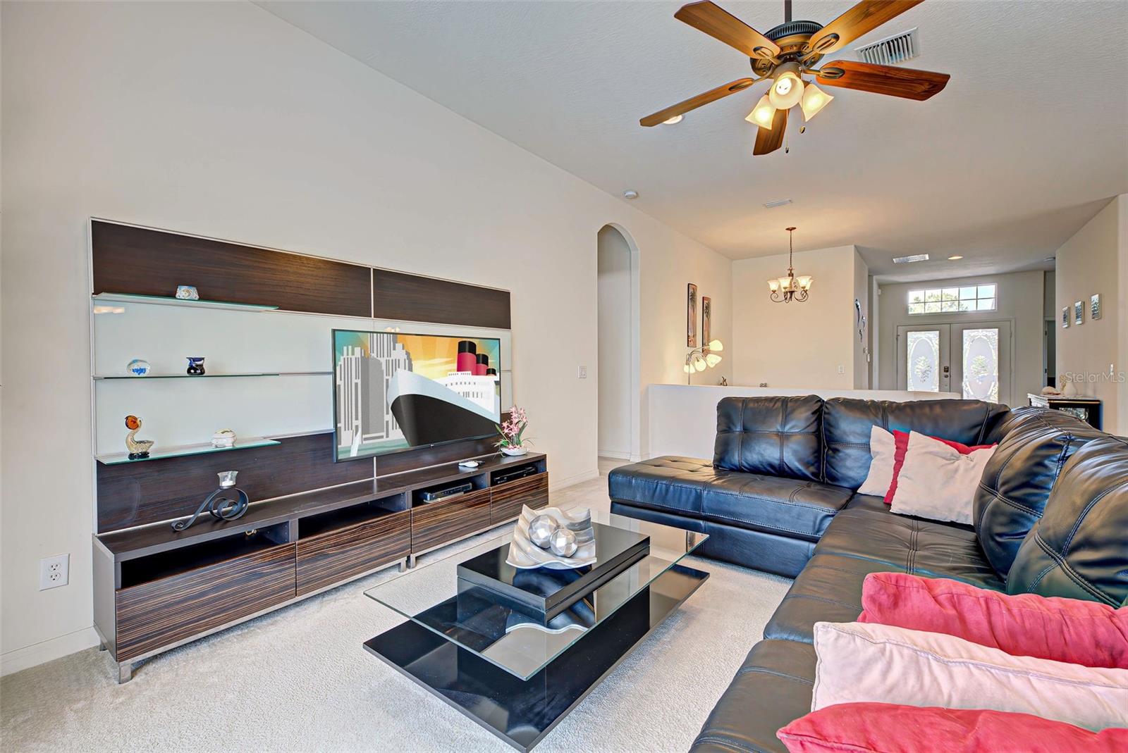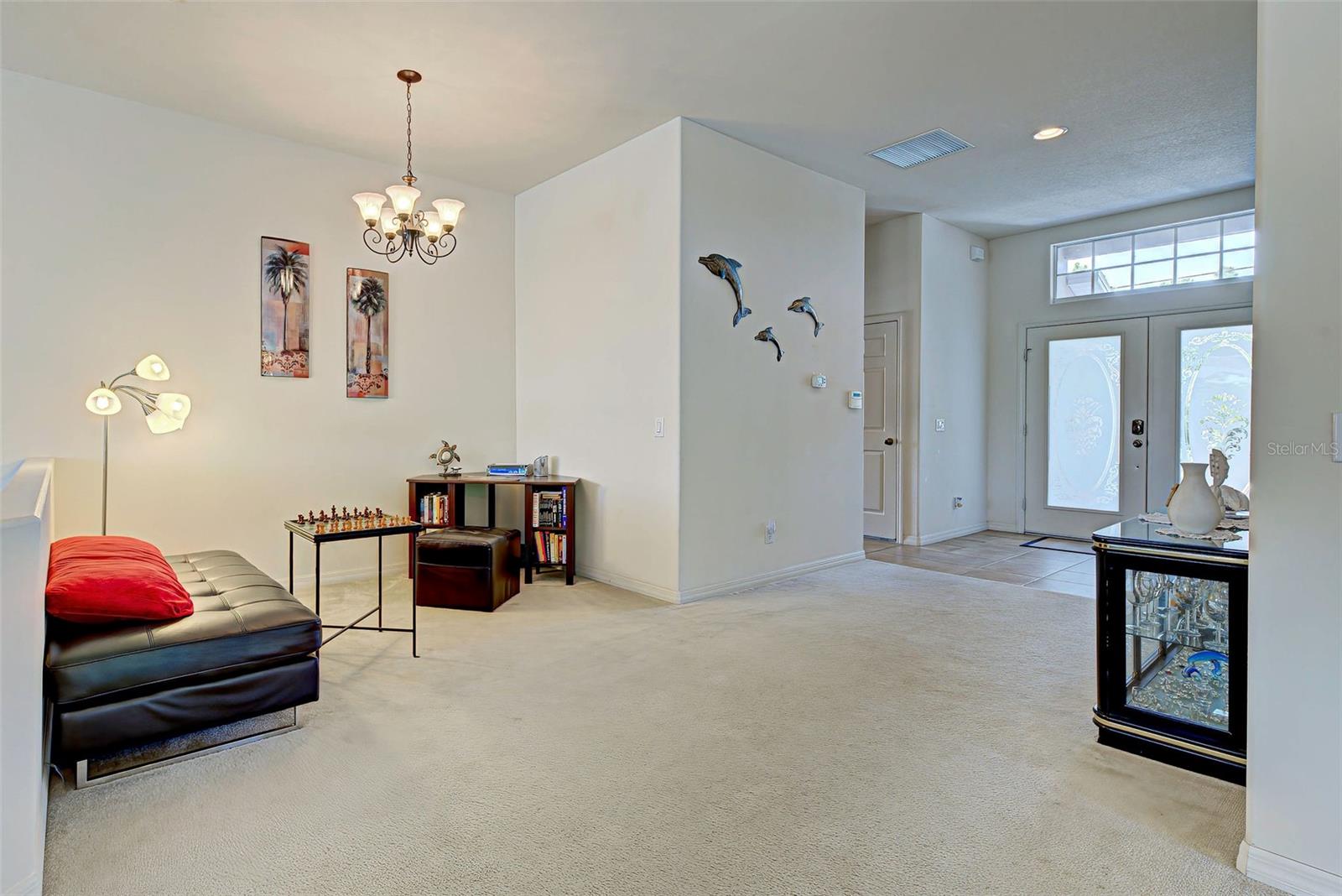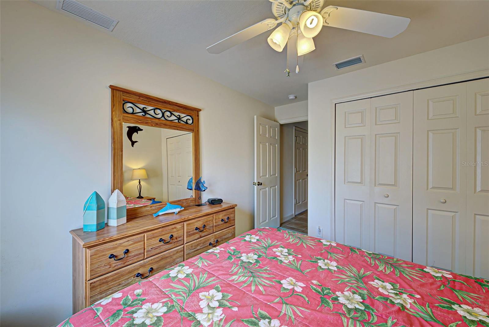 This is the one you have been waiting for! FURNISHED AND WELL EQUIPPED 4 BEDROOM / 2 BATH / 3 CAR GARAGE / POOL HOME in a great location with quiet green belt views. This spacious well-maintained Pool Home can be found within the highly desired South Gulf Cove Community. Home comes with a new Roof 2023, new SAMSUNG Washer 2021, new Water Heater 2019. Open split floorplan with large kitchen with pantry, bar and stools, morning nook and living room with newer sectional sofa, large Flatscreen TV on contemporary TV stand with, all with high ceilings, pool views and lots of natural light. Formal dining room with lots of window space, large dining table for 6 and side console piece. Family room chess game table and desk. Main Bedroom with King set and adjacent spacious bathroom with double vanity, Roman shower, Tub and walk-in closet. Guest Room 1: Queen bed, Guest Room 2: Queen bed, Guest Room 3: 2 Twin Beds, sharing a bathroom with single vanity and shower/tub combination. Let’s step outside on to your lanai, where you will probably spend most of your time. The lanai area has a large, covered area with dining set and sun loungers. Your large 28x12 FT heated pool with baby safety fence is embedded in a concrete deck. There is the possibility to extend those calming greenbelt views right behind the pool area of this home with the purchase (separate contract) of the vacant lot behind. The 3rd garage stall offers valuable storage lacking in most Florida homes. Laundry room, storm shutters.