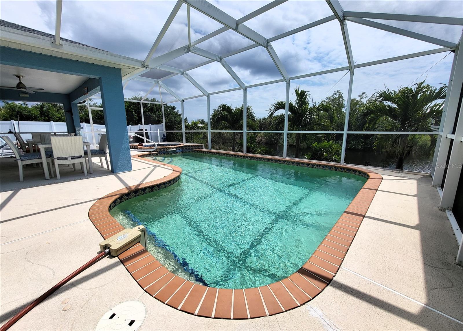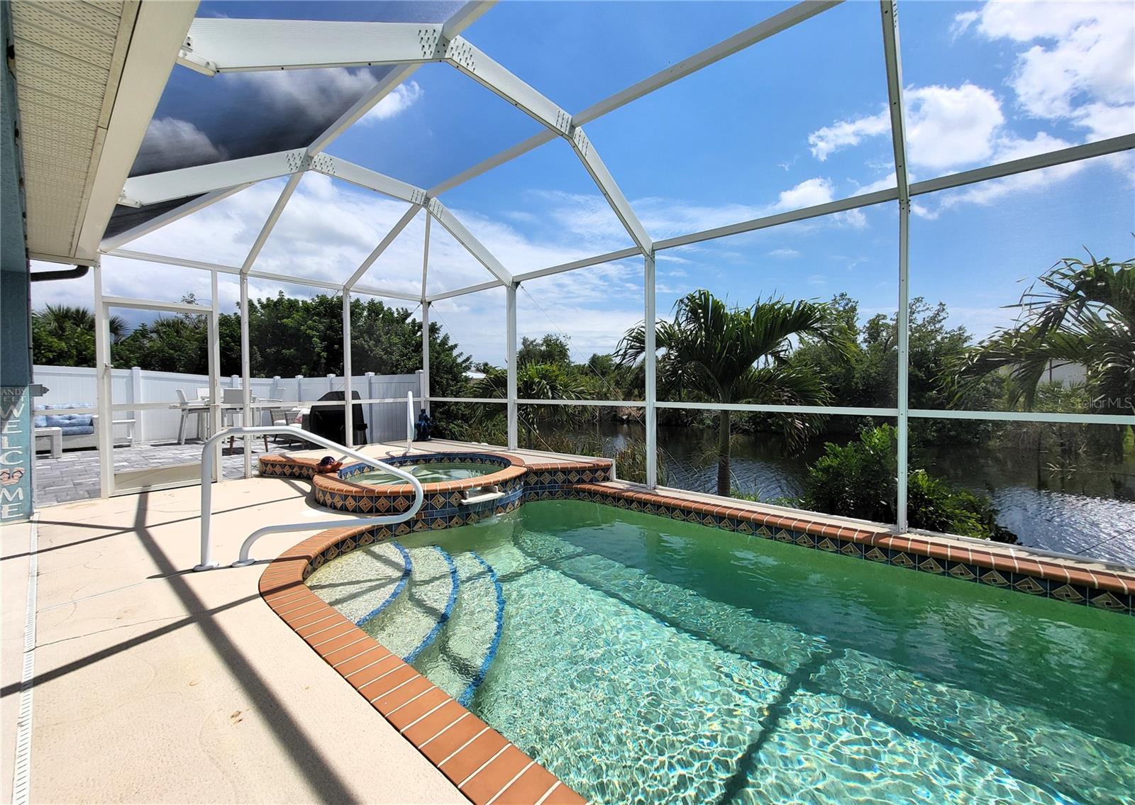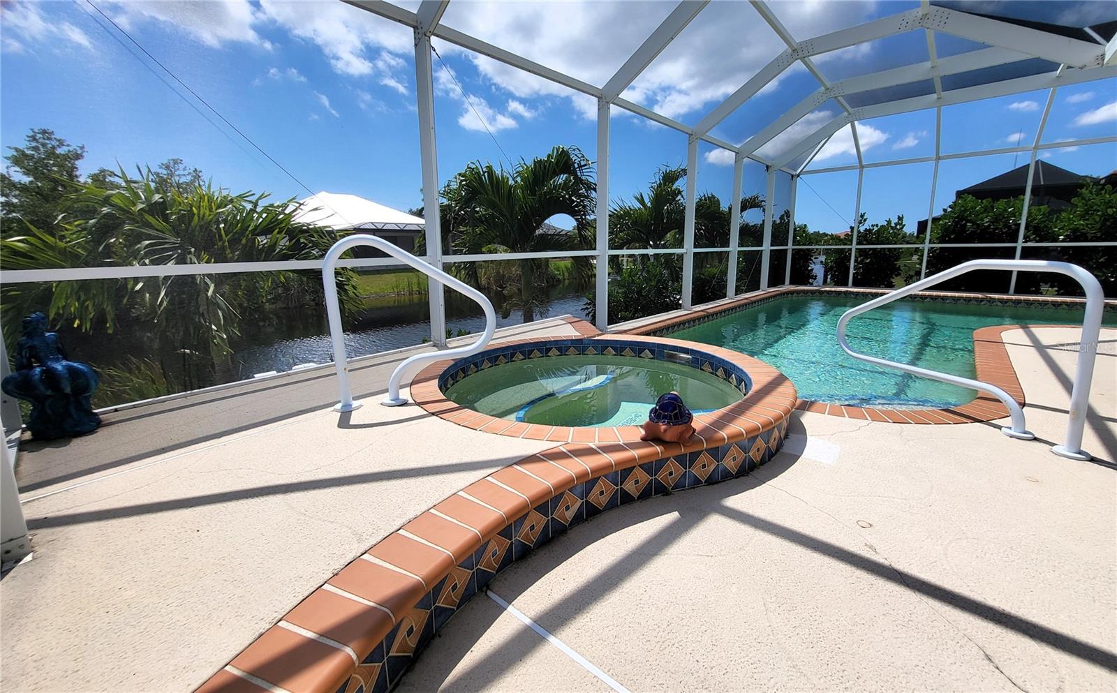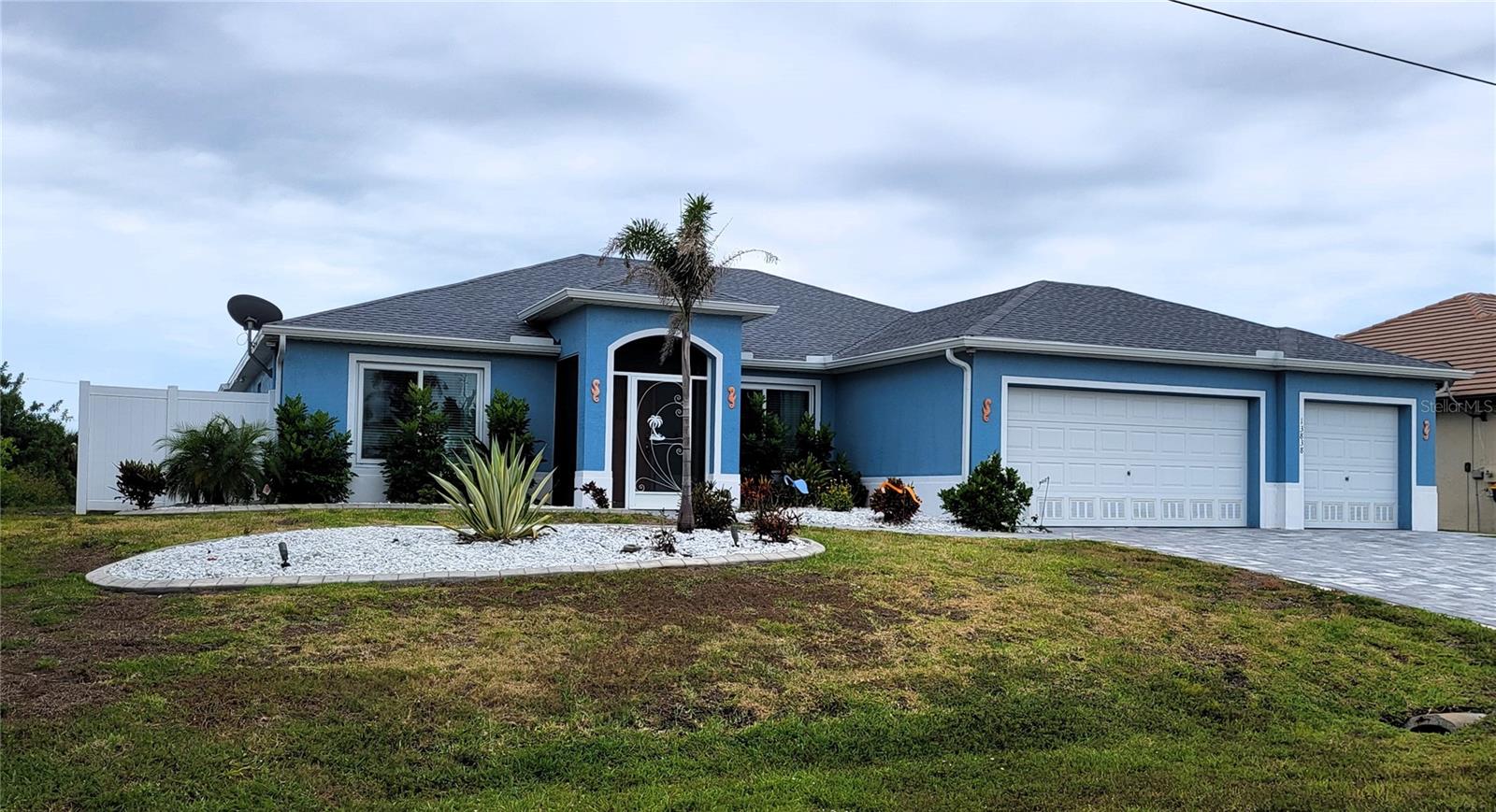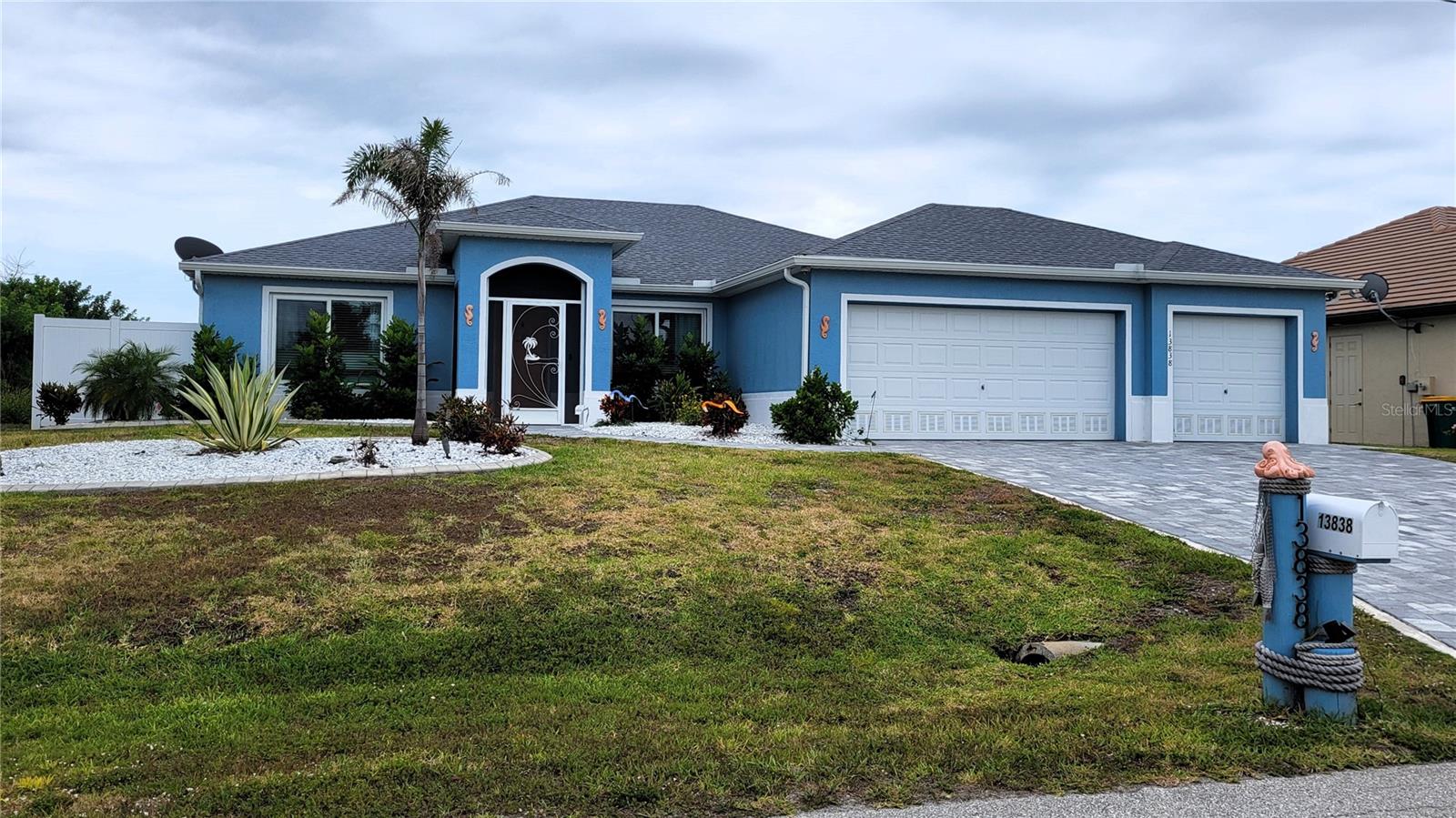 MOTIVATED SELLER! Tranquility is just one of the many desirable features this lovely home offers. Located on a quiet street, with other newer homes nearby, this could be your own piece of paradise! The seller has made several updates and improvements in the past few years, including replacing the concrete driveway with pavers, which continue with a pathway down the right side of the home, and installing landscape curbing. The front entry was screened, and exterior painted in a coastal color scheme that is echoed throughout the home. New impact windows in July 2022, and the roof replaced in January 2023, mean less worries for a new owner. Upon entering, you will notice the bright, open feel, high ceilings, crown molding, recessed lighting, tile floors, and tasteful decor in modern, neutral colors. *Some furniture and artwork have been removed since photos were taken. Note that all the ceiling fans throughout the home have lights and are remote controlled. On your right is the dining room, now open to the updated kitchen. On your left is the relocated entrance to the first of the three guestrooms, which could serve as a home office. Move on to the remodeled kitchen, with beautiful granite counters, and an abundance of 'soft-close' cabinetry. Stainless Frigidaire appliances, all less than three years old, include a large French door refrigerator with two freezer drawers, low-profile glass-top stove, and sleek dishwasher, as well as a 30" Bosch under-counter microwave. The door at the far end leads to the laundry room, with large, stacked LG washer and dryer, and access to the 3-car garage, which offers plenty of room for vehicles and storage, and houses the 3-year old Rheem water heater. Crossing back through the kitchen, the archway on the left leads to a unique feature not found in many homes today - a Butler's pantry! The extra cabinets and counter space are perfect for storing small appliances, extra dinnerware, the 'good silver', and more! The hallway also leads to the other two guestrooms, a linen closet, and guest bathroom. Across from the large living area, another archway, with wall niche, directs you to the master bedroom. This generous space is big enough for a king-sized bed and sitting area. Note the additional wall-mounted AC unit, installed by a previous owner for health reasons. Two walk-in closets flank the hallway to the master bath. Here you will find a double vanity, soaking tub, separate shower, and linen closet. Back in the living room, enjoy the view through the triple glass sliding doors, which have remote controlled shades. Step outside to the covered lanai, and take in the L-shaped, heated, saltwater pool and spa that can be controlled from an app. You can also enjoy the serene view over the canal through tropical landscaping. The waterfront is seawalled, with water and power connections for your future dock. South Gulf Cove is a boating community, with Gulf access and 55 miles of canals to cruise! However, your eyes will no doubt be drawn to the large private, paved, vinyl-fenced patio. This is the perfect spot for entertaining, grilling, sunbathing, get-togethers with family and friend, etc. There is also a grassy area along the side of the house that can serve as an area for your pets or children's play equipment. So much to offer, and definitely worth seeing in person. Seller is relocating out of state and will consider reasonable offers. Schedule a showing today!