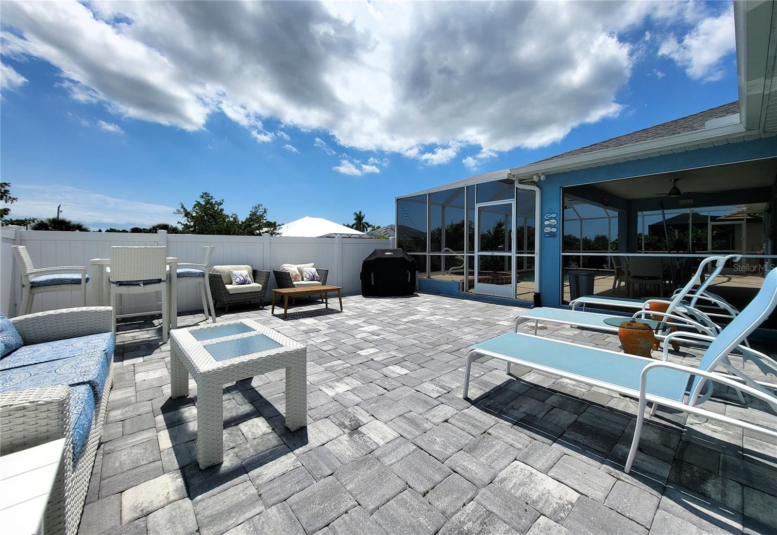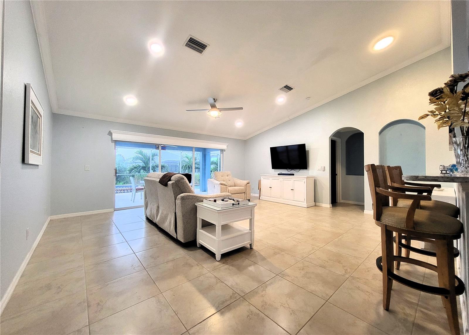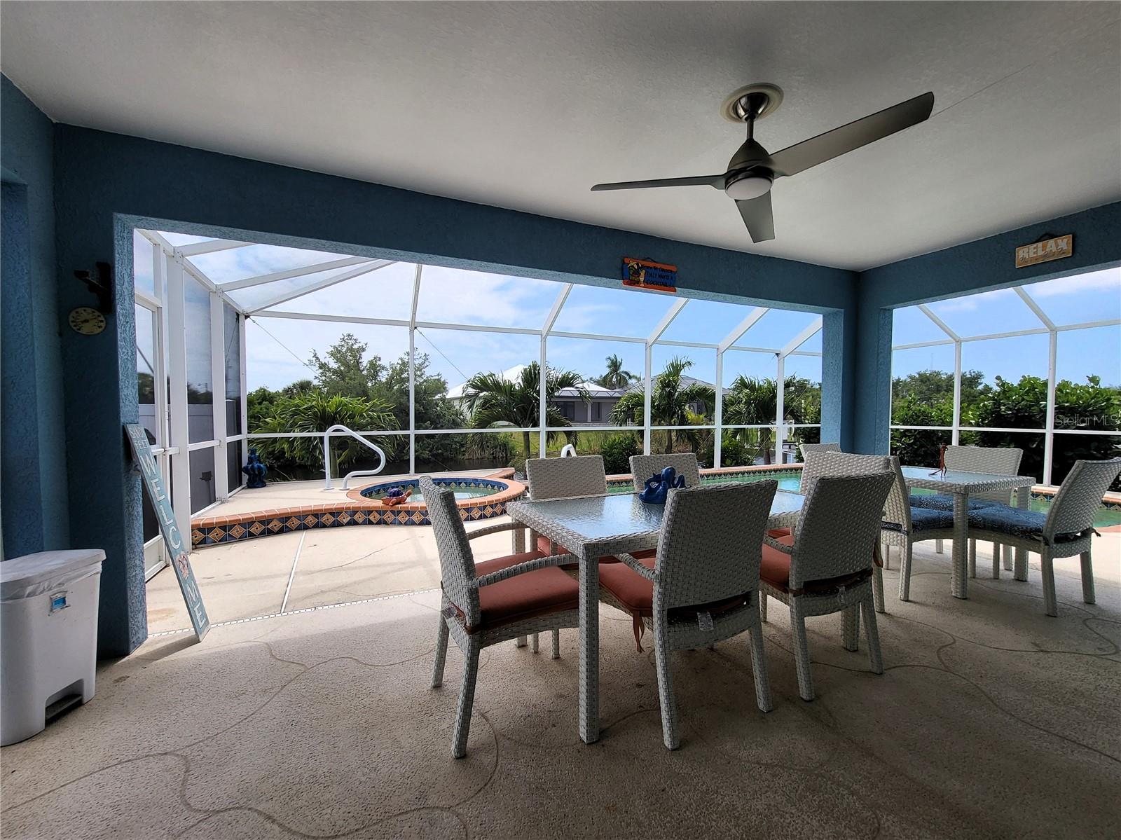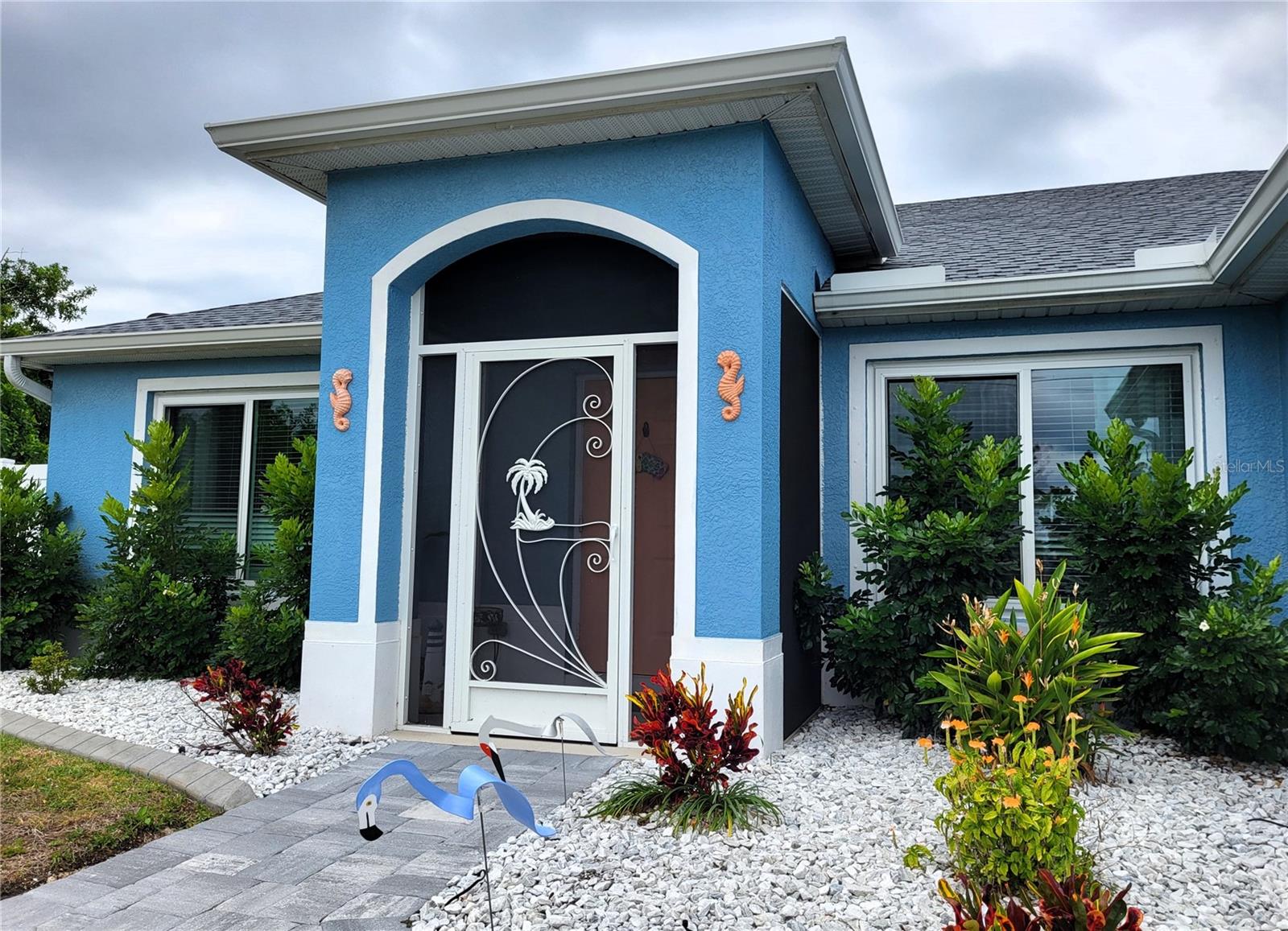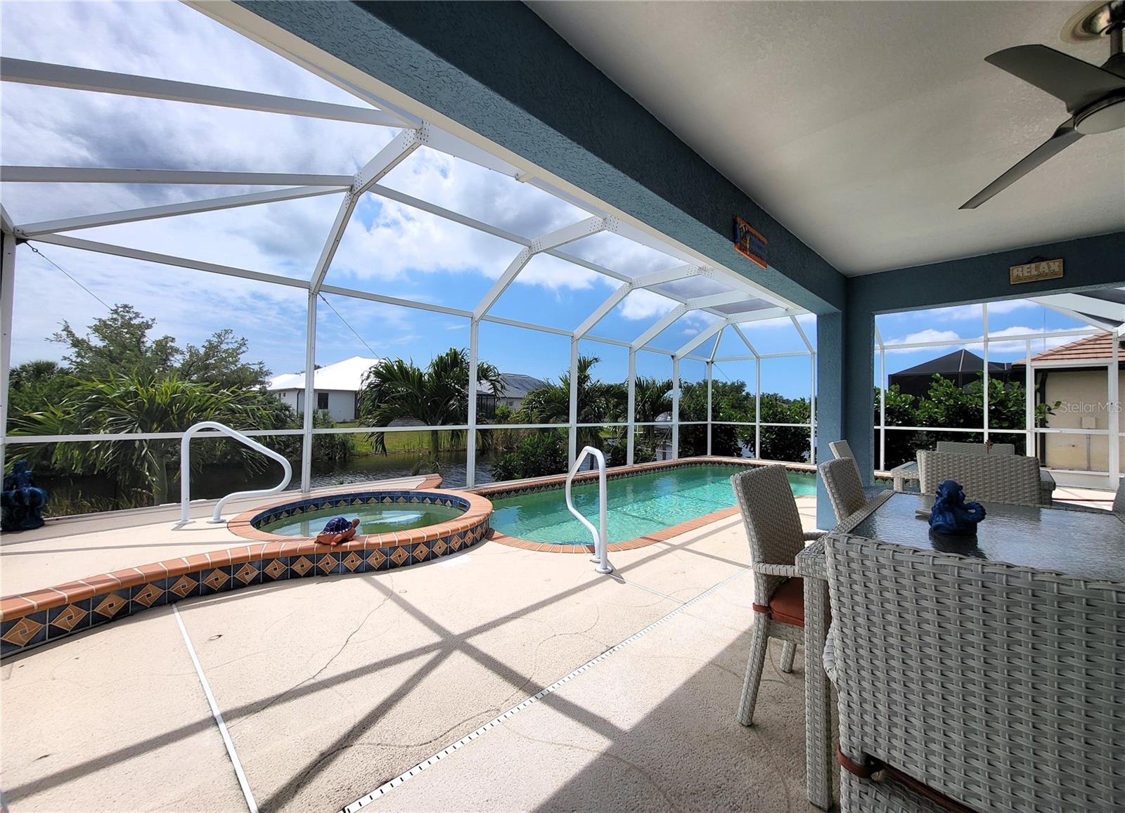 MOTIVATED SELLER! Tranquility is just one of the many desirable features this lovely home offers. Located on a quiet street, with other newer homes nearby, this could be your own piece of paradise! The seller has made several updates and improvements in the past few years, including replacing the concrete driveway with pavers, which continue with a pathway down the right side of the home, and installing landscape curbing. The front entry was screened, and exterior painted in a coastal color scheme that is echoed throughout the home. New impact windows in July 2022, and the roof replaced in January 2023, mean less worries for a new owner. Upon entering, you will notice the bright, open feel, high ceilings, crown molding, recessed lighting, tile floors, and tasteful decor in modern, neutral colors. *Some furniture and artwork have been removed since photos were taken. Note that all the ceiling fans throughout the home have lights and are remote controlled. On your right is the dining room, now open to the updated kitchen. On your left is the relocated entrance to the first of the three guestrooms, which could serve as a home office. Move on to the remodeled kitchen, with beautiful granite counters, and an abundance of 'soft-close' cabinetry. Stainless Frigidaire appliances, all less than three years old, include a large French door refrigerator with two freezer drawers, low-profile glass-top stove, and sleek dishwasher, as well as a 30" Bosch under-counter microwave. The door at the far end leads to the laundry room, with large, stacked LG washer and dryer, and access to the 3-car garage, which offers plenty of room for vehicles and storage, and houses the 3-year old Rheem water heater. Crossing back through the kitchen, the archway on the left leads to a unique feature not found in many homes today - a Butler's pantry! The extra cabinets and counter space are perfect for storing small appliances, extra dinnerware, the 'good silver', and more! The hallway also leads to the other two guestrooms, a linen closet, and guest bathroom. Across from the large living area, another archway, with wall niche, directs you to the master bedroom. This generous space is big enough for a king-sized bed and sitting area. Note the additional wall-mounted AC unit, installed by a previous owner for health reasons. Two walk-in closets flank the hallway to the master bath. Here you will find a double vanity, soaking tub, separate shower, and linen closet. Back in the living room, enjoy the view through the triple glass sliding doors, which have remote controlled shades. Step outside to the covered lanai, and take in the L-shaped, heated, saltwater pool and spa that can be controlled from an app. You can also enjoy the serene view over the canal through tropical landscaping. The waterfront is seawalled, with water and power connections for your future dock. South Gulf Cove is a boating community, with Gulf access and 55 miles of canals to cruise! However, your eyes will no doubt be drawn to the large private, paved, vinyl-fenced patio. This is the perfect spot for entertaining, grilling, sunbathing, get-togethers with family and friend, etc. There is also a grassy area along the side of the house that can serve as an area for your pets or children's play equipment. So much to offer, and definitely worth seeing in person. Seller is relocating out of state and will consider reasonable offers. Schedule a showing today!