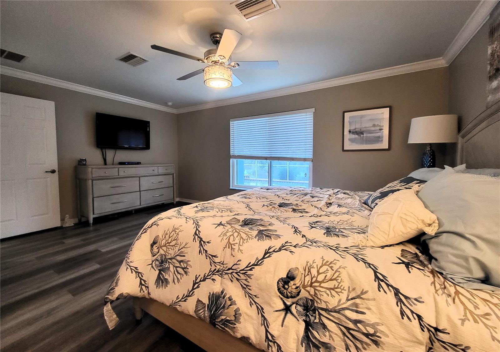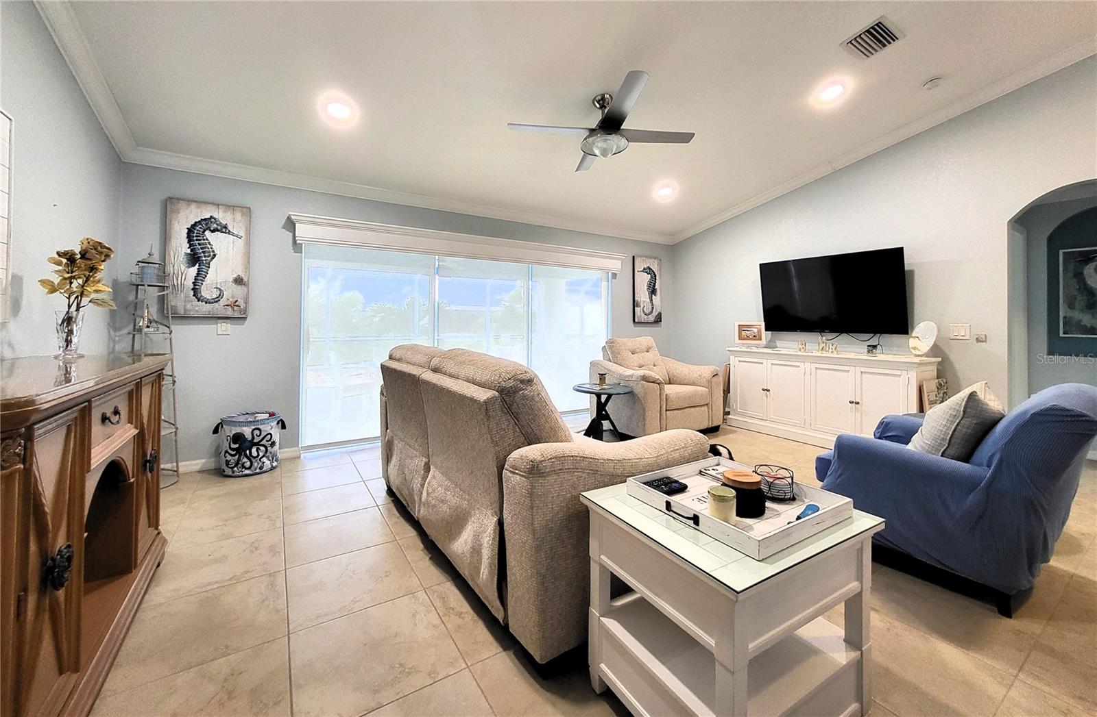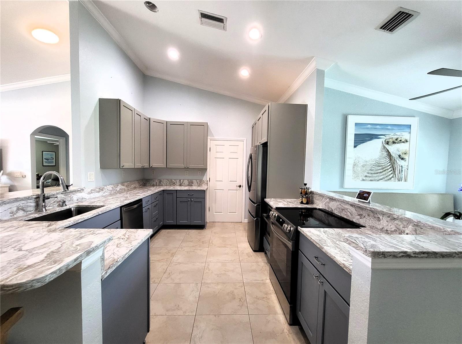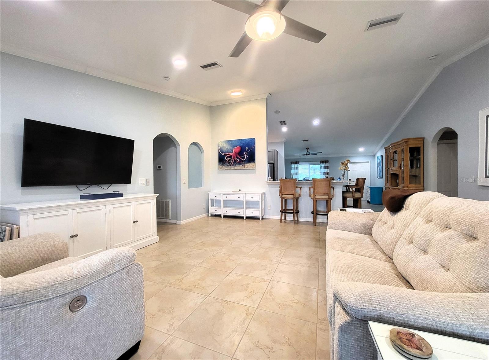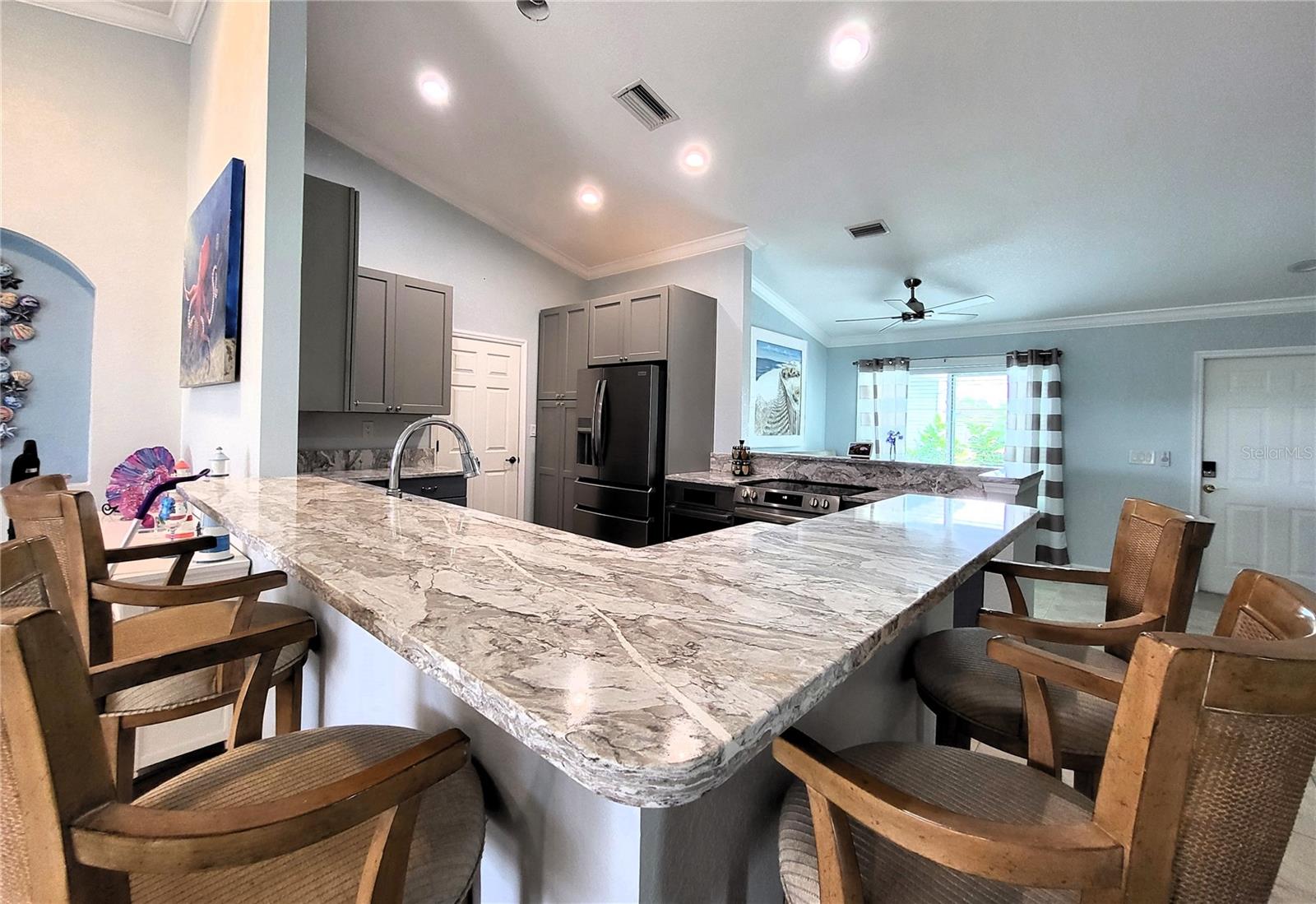 MOTIVATED SELLER! Tranquility is just one of the many desirable features this lovely home offers. Located on a quiet street, with other newer homes nearby, this could be your own piece of paradise! The seller has made several updates and improvements in the past few years, including replacing the concrete driveway with pavers, which continue with a pathway down the right side of the home, and installing landscape curbing. The front entry was screened, and exterior painted in a coastal color scheme that is echoed throughout the home. New impact windows in July 2022, and the roof replaced in January 2023, mean less worries for a new owner. Upon entering, you will notice the bright, open feel, high ceilings, crown molding, recessed lighting, tile floors, and tasteful decor in modern, neutral colors. *Some furniture and artwork have been removed since photos were taken. Note that all the ceiling fans throughout the home have lights and are remote controlled. On your right is the dining room, now open to the updated kitchen. On your left is the relocated entrance to the first of the three guestrooms, which could serve as a home office. Move on to the remodeled kitchen, with beautiful granite counters, and an abundance of 'soft-close' cabinetry. Stainless Frigidaire appliances, all less than three years old, include a large French door refrigerator with two freezer drawers, low-profile glass-top stove, and sleek dishwasher, as well as a 30" Bosch under-counter microwave. The door at the far end leads to the laundry room, with large, stacked LG washer and dryer, and access to the 3-car garage, which offers plenty of room for vehicles and storage, and houses the 3-year old Rheem water heater. Crossing back through the kitchen, the archway on the left leads to a unique feature not found in many homes today - a Butler's pantry! The extra cabinets and counter space are perfect for storing small appliances, extra dinnerware, the 'good silver', and more! The hallway also leads to the other two guestrooms, a linen closet, and guest bathroom. Across from the large living area, another archway, with wall niche, directs you to the master bedroom. This generous space is big enough for a king-sized bed and sitting area. Note the additional wall-mounted AC unit, installed by a previous owner for health reasons. Two walk-in closets flank the hallway to the master bath. Here you will find a double vanity, soaking tub, separate shower, and linen closet. Back in the living room, enjoy the view through the triple glass sliding doors, which have remote controlled shades. Step outside to the covered lanai, and take in the L-shaped, heated, saltwater pool and spa that can be controlled from an app. You can also enjoy the serene view over the canal through tropical landscaping. The waterfront is seawalled, with water and power connections for your future dock. South Gulf Cove is a boating community, with Gulf access and 55 miles of canals to cruise! However, your eyes will no doubt be drawn to the large private, paved, vinyl-fenced patio. This is the perfect spot for entertaining, grilling, sunbathing, get-togethers with family and friend, etc. There is also a grassy area along the side of the house that can serve as an area for your pets or children's play equipment. So much to offer, and definitely worth seeing in person. Seller is relocating out of state and will consider reasonable offers. Schedule a showing today!
