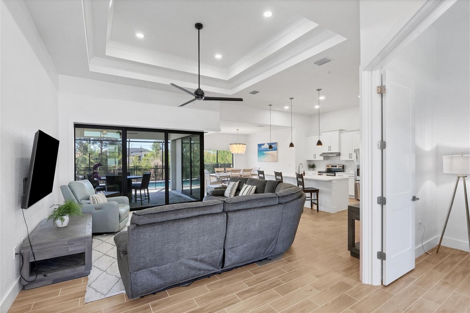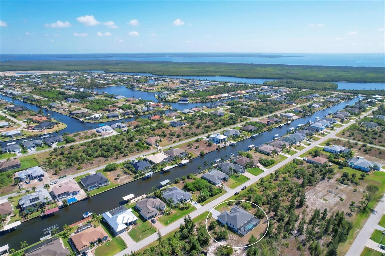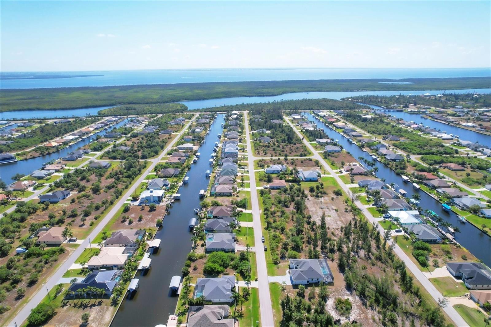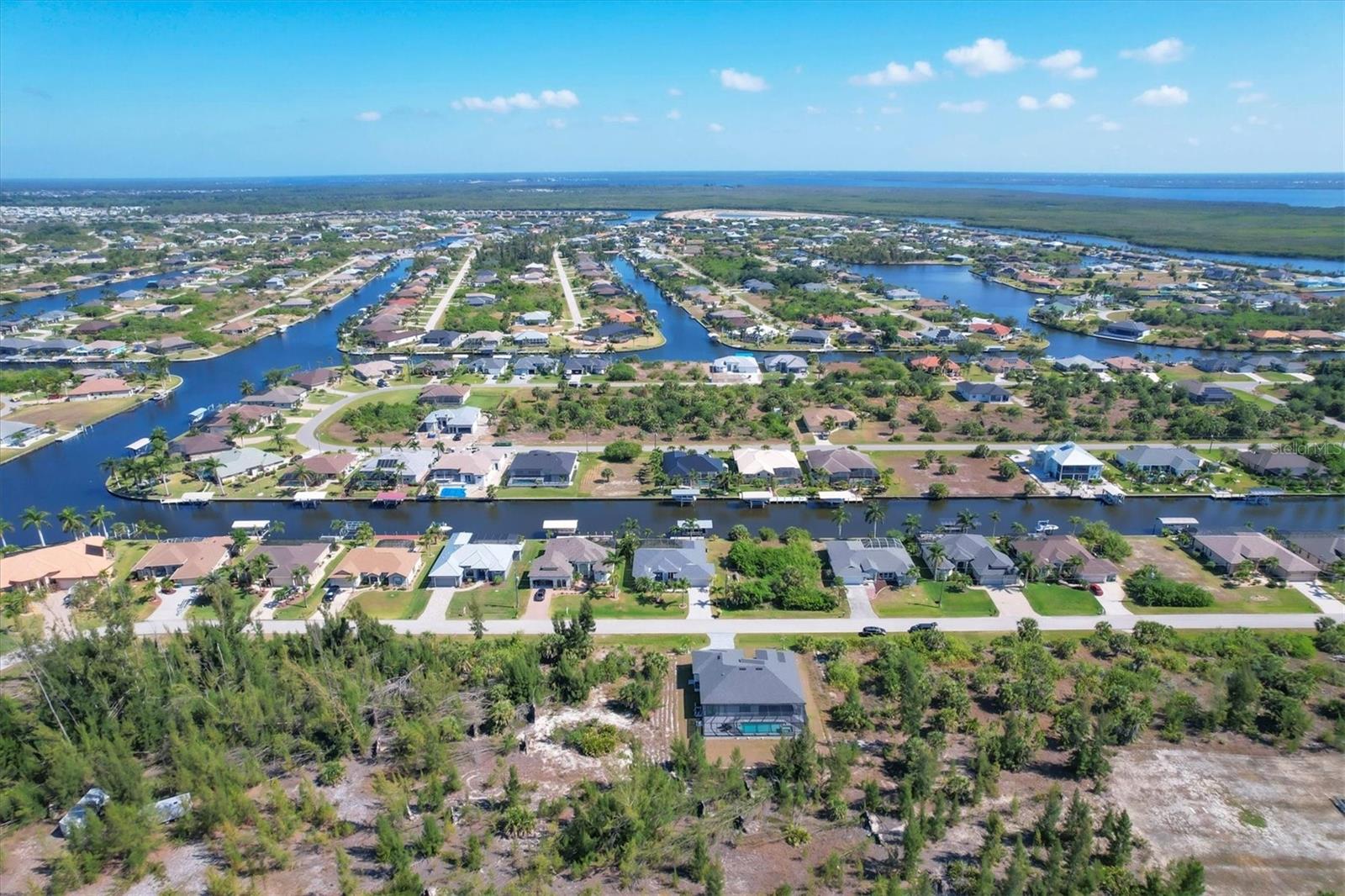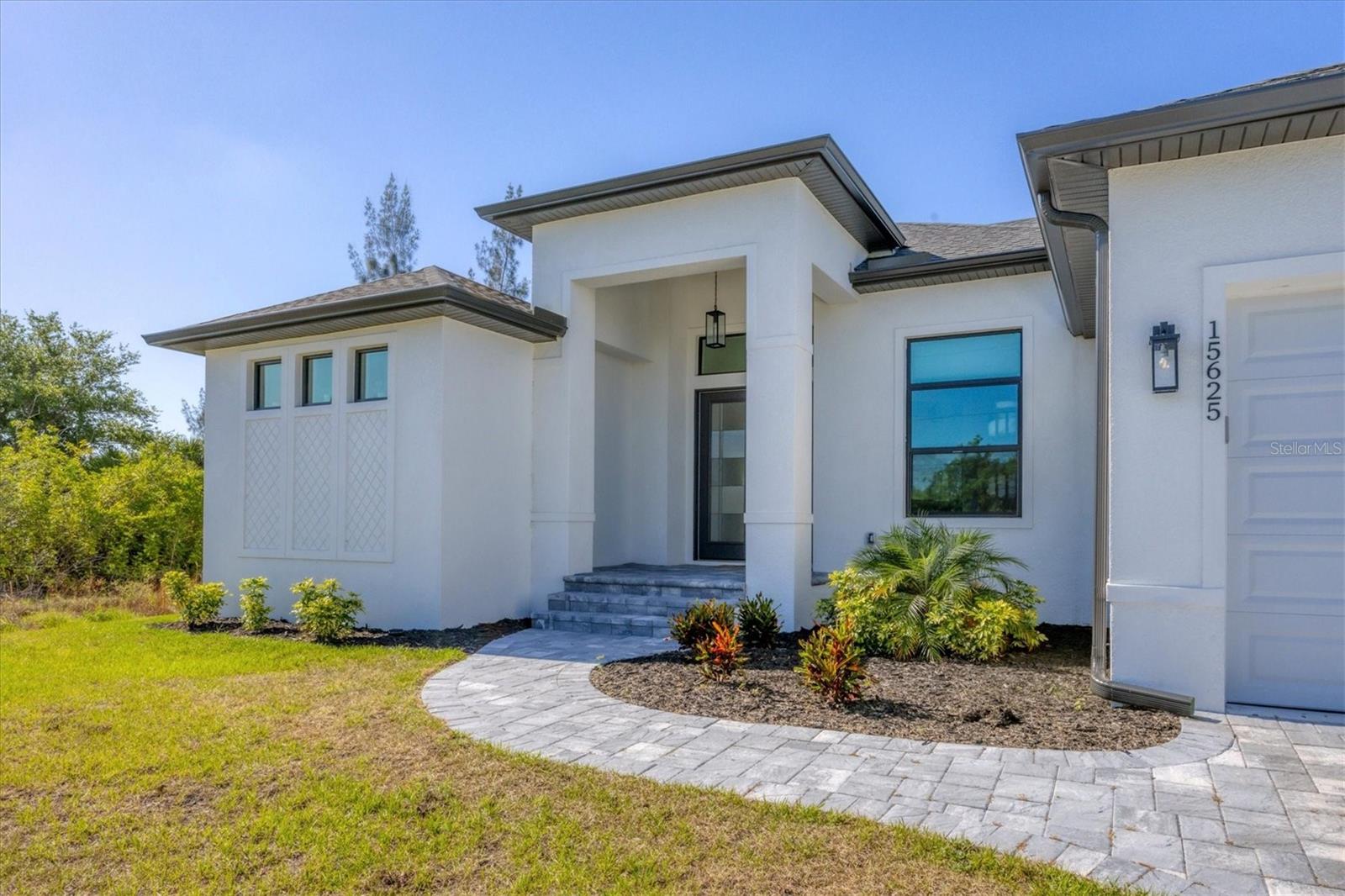 DREAMS DO COME TRUE! Almost new, this well-appointed residence is a 2023 custom built Tradewinds Luxury Home. Meticulously maintained and designed, this 3-bedroom with den, 2-bathroom home spans 2116 square feet of living space, where comfort and style unite seamlessly, and the 3-car garage allows ample room for your vehicles and storage needs! This location is unparallel and is in the sought-after waterfront community of South Gulf Cove! Just bring your toothbrush; FURNITURE AND FURNISHINGS ARE NEGOIABLE! With stunning curb appeal, the paver drive and walkway lead to the stylish double doors that welcome you to your dream of Florida living! Once inside, you are immediately taken in by the sheer volume of the room and the abundance of natural light pouring in! This open, great room concept is further enhanced by the double tray ceiling and a wall of 8 ft glass sliders, which integrate indoor and outdoor living and offer waterfront views from almost every room. The porcelain tile throughout brings together all the designer elements with style and uniformity and the neutral palette allows you to easily personalize this home to make it yours. The kitchen is no exception and will leave you wanting to indulge in your culinary delights! Not only is it beautiful, but it’s practical, from the quartz countertops and subway tile backsplash to the abundancy of cabinetry and finally to the stainless appliances. The massive 9 ft quartz island is the star of the show making it a pleasurable and convenient spot for engaging with all family and friends! Or if work is on your mind, there is a dedicated den/office (currently utilized as another bedroom) with a large window to close yourself off behind glass French doors. The primary suite in this split plan has a volume tray ceiling and 8ft sliding glass doors making the room even more spacious and able to accommodate the largest furniture. The ensuite is equally impressive with dual vanities, walk through porcelain tile shower and 2 ample walk-in closets. The two guest bedrooms are generously sized and are privately located along with a full bathroom on the opposite side of this home. The guest bathroom is conveniently located with access to the lanai and pool area, giving family and friends the ability to utilize it without disturbing the rest of the household. Outdoor living is nothing short of spectacular and this tropical area is sure to impress! This sizable outdoor space is another great spot where family and friends can spread out and visit in luxury! So, sit back, relax, and dine, all while being shielded from the hot Florida rays!But if sun is what you prefer, the paver pool deck offers ample space for sunbathing and the sparkling pool is the perfect place to cool off or arm up in the heated spa on those cool winter days! There is additional plumbing and electric in place where you can easily add a summer kitchen of your own design! Also in place is a large, screened window which is great for capturing breezes on those hot Florida days! Additionally, all doors and windows are IMPACT glass, all counter tops are quartz, and all cabinet doors and drawers are soft close. We invite you to view the pictures and attached video. Reserve your showing today!