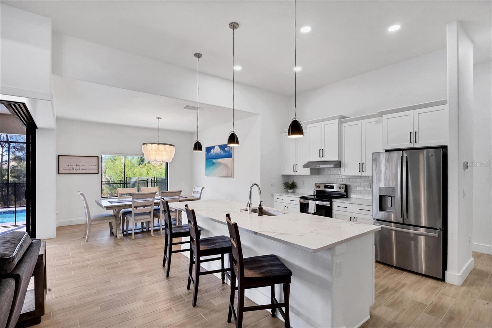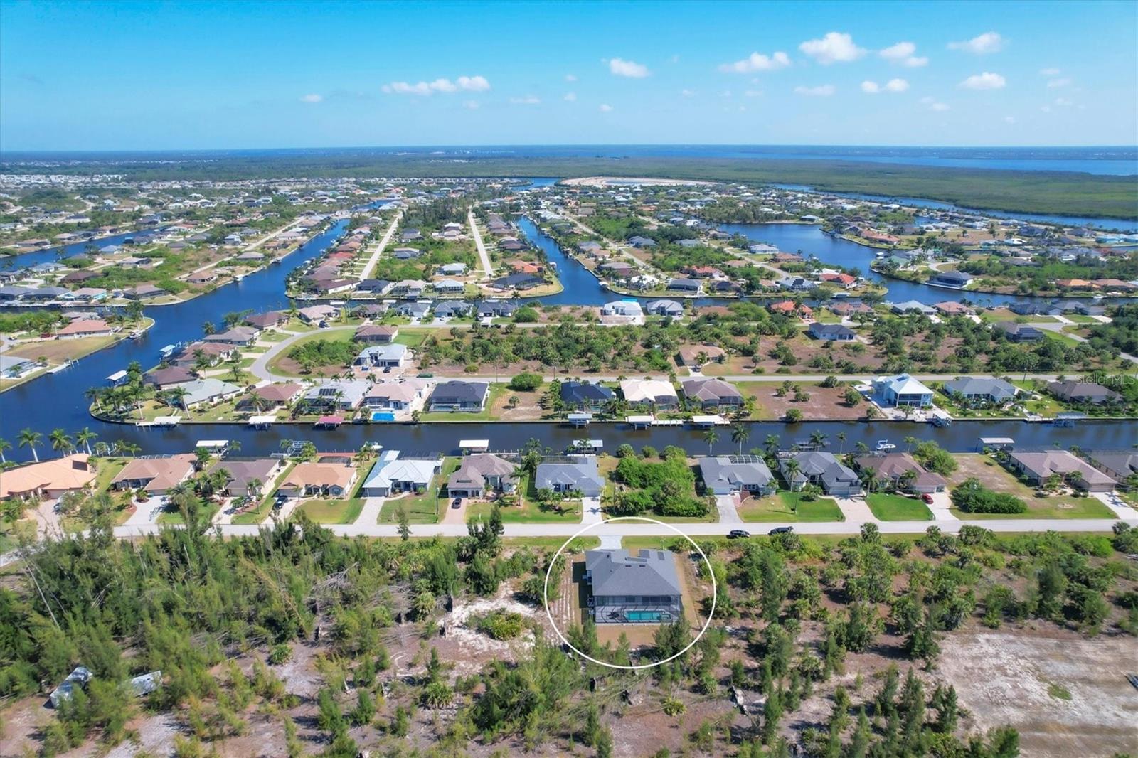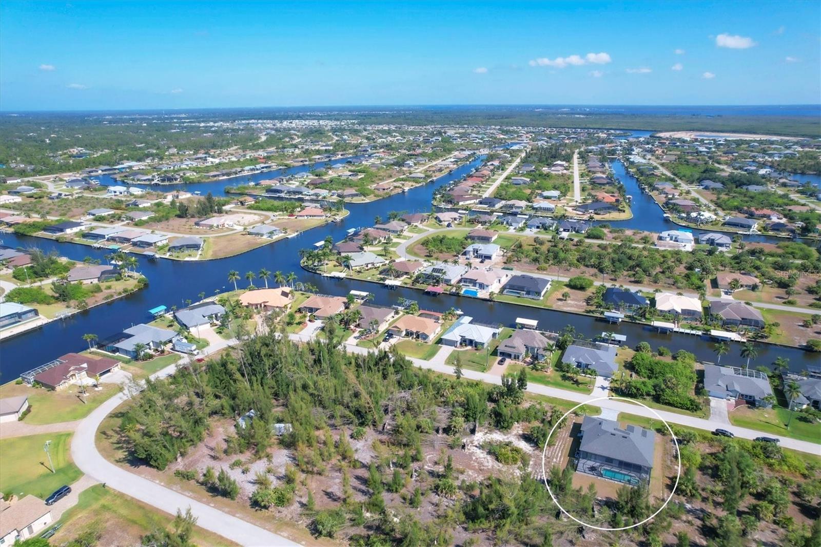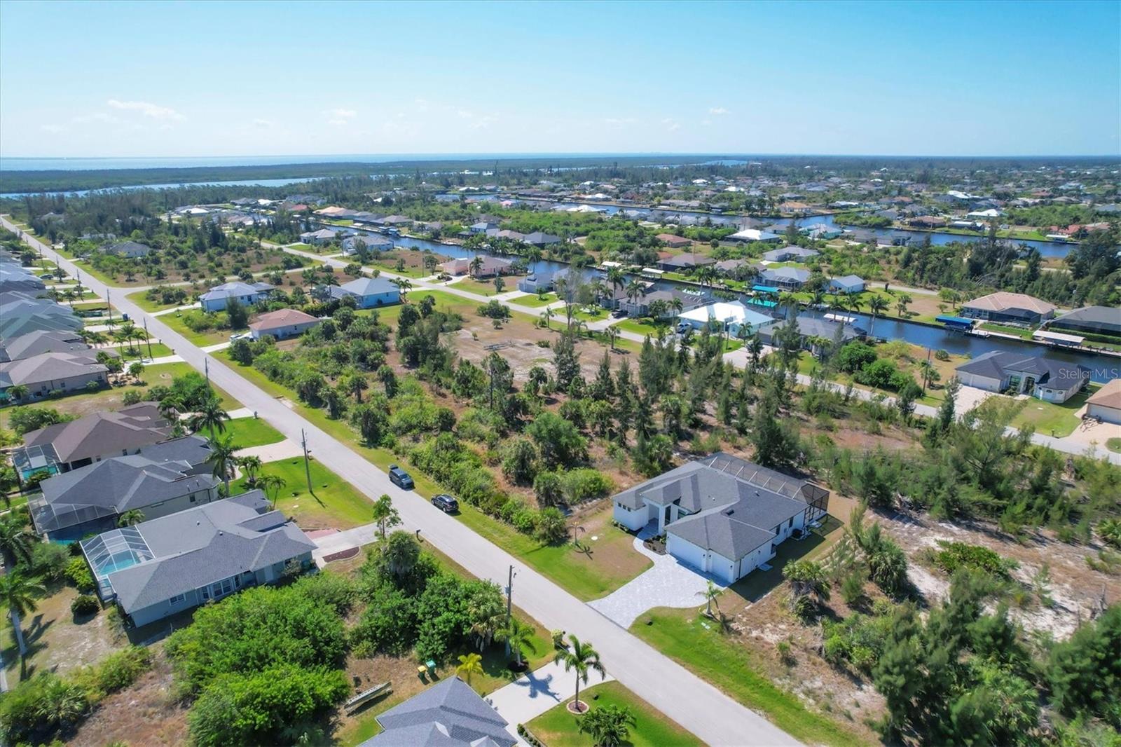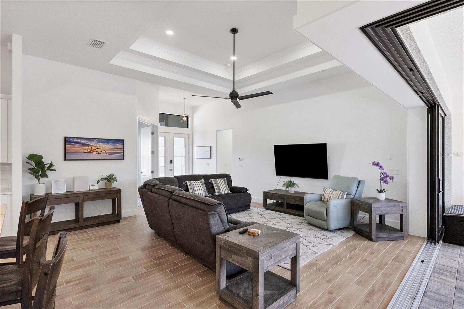 DREAMS DO COME TRUE! Almost new, this well-appointed residence is a 2023 custom built Tradewinds Luxury Home. Meticulously maintained and designed, this 3-bedroom with den, 2-bathroom home spans 2116 square feet of living space, where comfort and style unite seamlessly, and the 3-car garage allows ample room for your vehicles and storage needs! This location is unparallel and is in the sought-after waterfront community of South Gulf Cove! Just bring your toothbrush; FURNITURE AND FURNISHINGS ARE NEGOIABLE! With stunning curb appeal, the paver drive and walkway lead to the stylish double doors that welcome you to your dream of Florida living! Once inside, you are immediately taken in by the sheer volume of the room and the abundance of natural light pouring in! This open, great room concept is further enhanced by the double tray ceiling and a wall of 8 ft glass sliders, which integrate indoor and outdoor living and offer waterfront views from almost every room. The porcelain tile throughout brings together all the designer elements with style and uniformity and the neutral palette allows you to easily personalize this home to make it yours. The kitchen is no exception and will leave you wanting to indulge in your culinary delights! Not only is it beautiful, but it’s practical, from the quartz countertops and subway tile backsplash to the abundancy of cabinetry and finally to the stainless appliances. The massive 9 ft quartz island is the star of the show making it a pleasurable and convenient spot for engaging with all family and friends! Or if work is on your mind, there is a dedicated den/office (currently utilized as another bedroom) with a large window to close yourself off behind glass French doors. The primary suite in this split plan has a volume tray ceiling and 8ft sliding glass doors making the room even more spacious and able to accommodate the largest furniture. The ensuite is equally impressive with dual vanities, walk through porcelain tile shower and 2 ample walk-in closets. The two guest bedrooms are generously sized and are privately located along with a full bathroom on the opposite side of this home. The guest bathroom is conveniently located with access to the lanai and pool area, giving family and friends the ability to utilize it without disturbing the rest of the household. Outdoor living is nothing short of spectacular and this tropical area is sure to impress! This sizable outdoor space is another great spot where family and friends can spread out and visit in luxury! So, sit back, relax, and dine, all while being shielded from the hot Florida rays!But if sun is what you prefer, the paver pool deck offers ample space for sunbathing and the sparkling pool is the perfect place to cool off or arm up in the heated spa on those cool winter days! There is additional plumbing and electric in place where you can easily add a summer kitchen of your own design! Also in place is a large, screened window which is great for capturing breezes on those hot Florida days! Additionally, all doors and windows are IMPACT glass, all counter tops are quartz, and all cabinet doors and drawers are soft close. We invite you to view the pictures and attached video. Reserve your showing today!