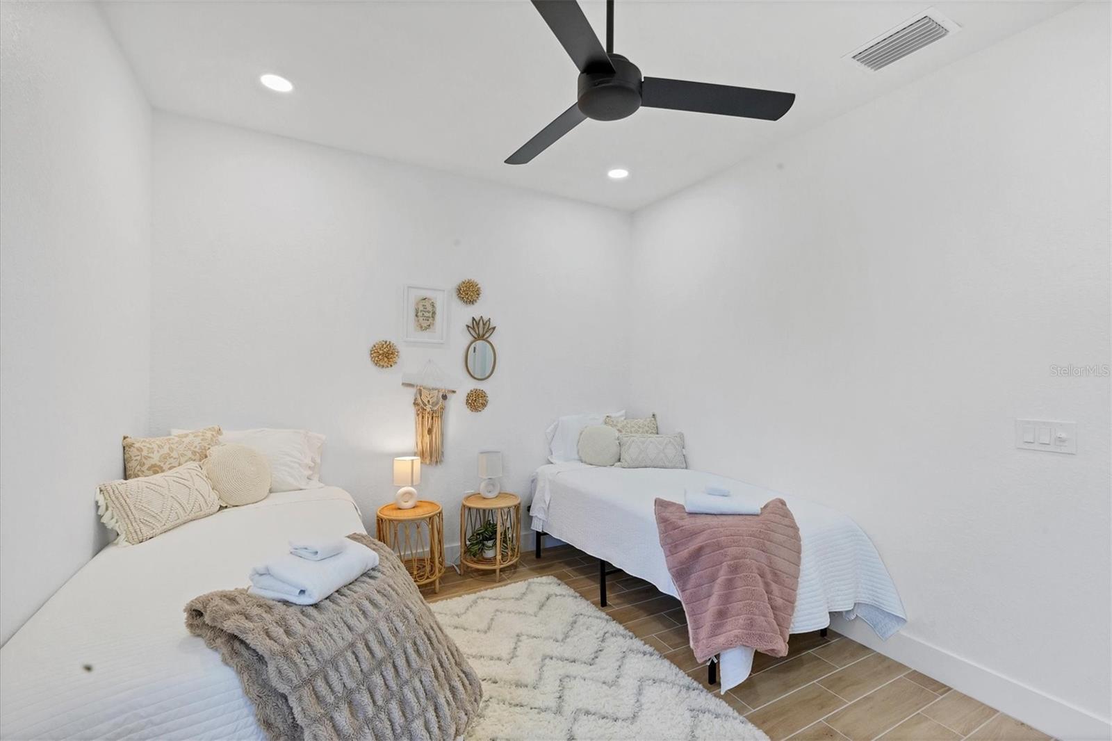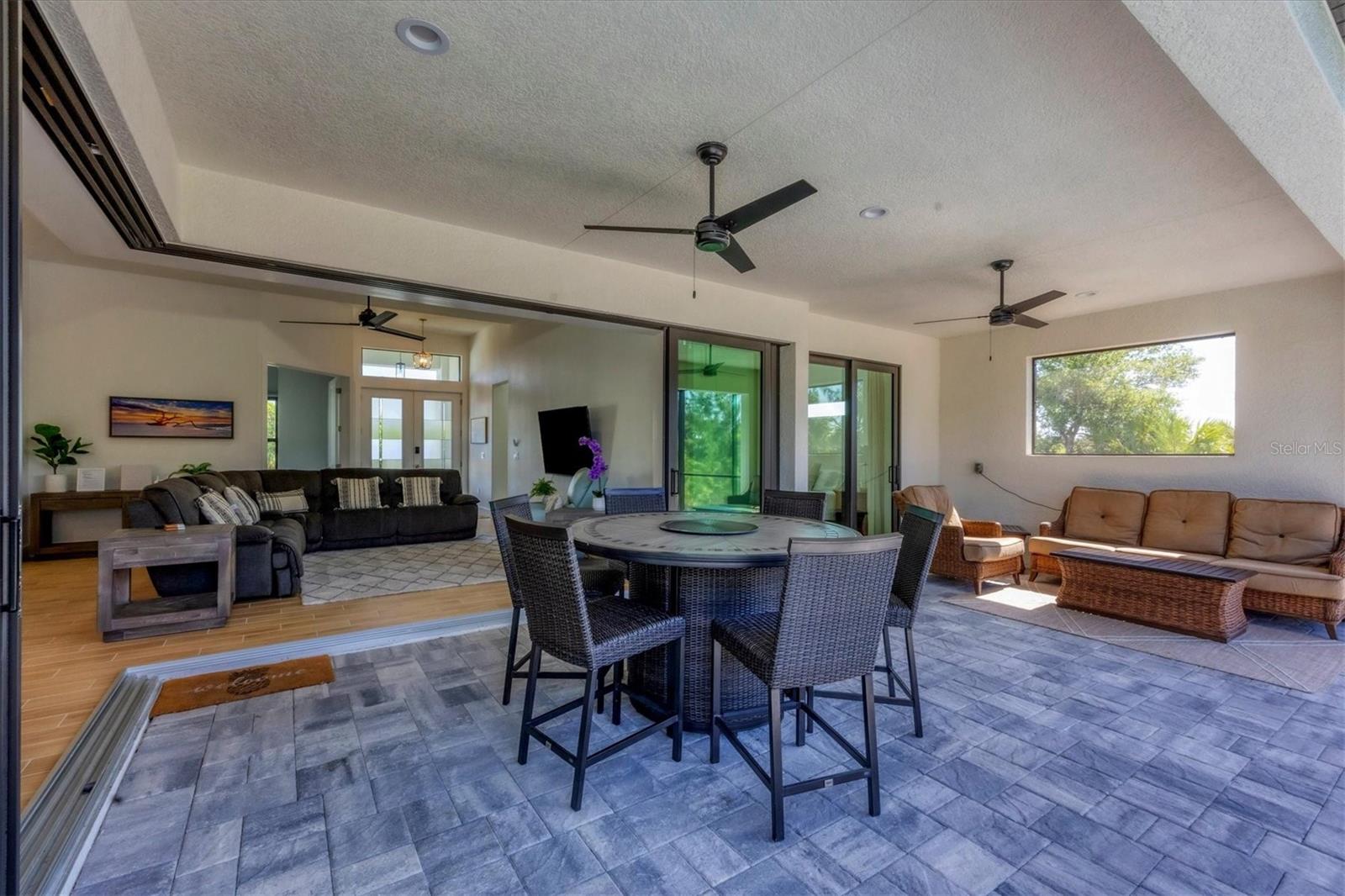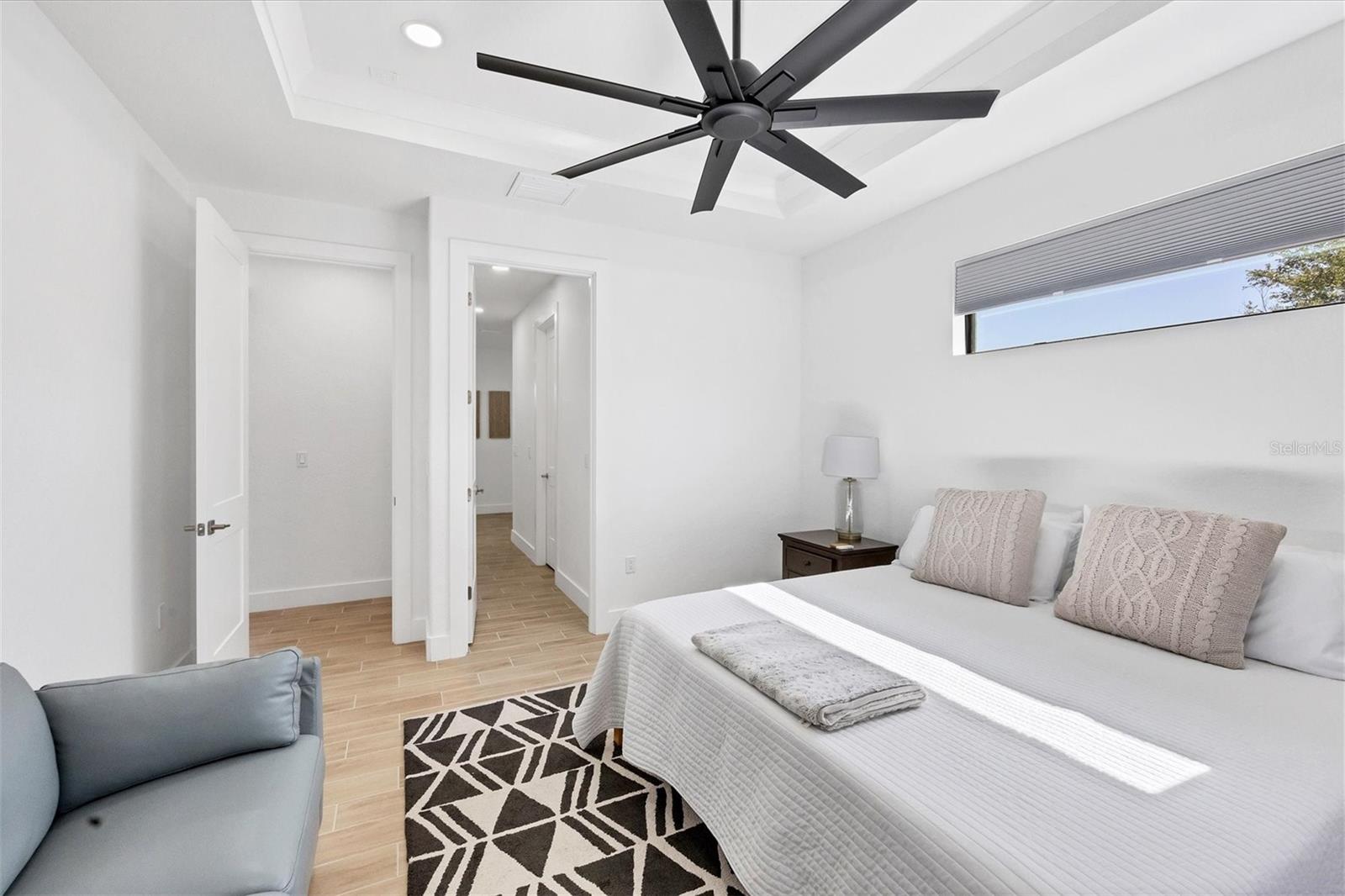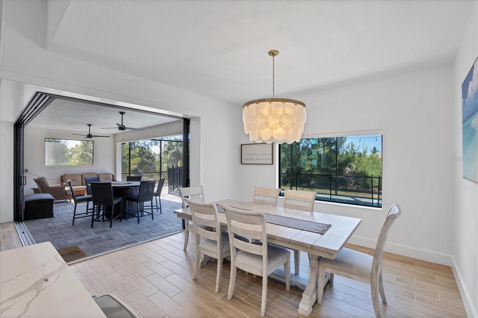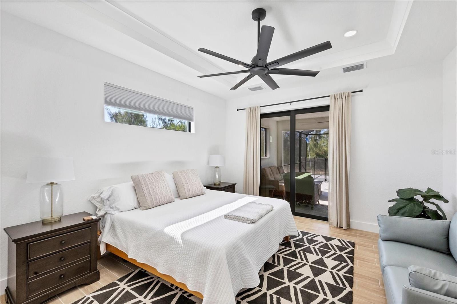 DREAMS DO COME TRUE! Almost new, this well-appointed residence is a 2023 custom built Tradewinds Luxury Home. Meticulously maintained and designed, this 3-bedroom with den, 2-bathroom home spans 2116 square feet of living space, where comfort and style unite seamlessly, and the 3-car garage allows ample room for your vehicles and storage needs! This location is unparallel and is in the sought-after waterfront community of South Gulf Cove! Just bring your toothbrush; FURNITURE AND FURNISHINGS ARE NEGOIABLE! With stunning curb appeal, the paver drive and walkway lead to the stylish double doors that welcome you to your dream of Florida living! Once inside, you are immediately taken in by the sheer volume of the room and the abundance of natural light pouring in! This open, great room concept is further enhanced by the double tray ceiling and a wall of 8 ft glass sliders, which integrate indoor and outdoor living and offer waterfront views from almost every room. The porcelain tile throughout brings together all the designer elements with style and uniformity and the neutral palette allows you to easily personalize this home to make it yours. The kitchen is no exception and will leave you wanting to indulge in your culinary delights! Not only is it beautiful, but it’s practical, from the quartz countertops and subway tile backsplash to the abundancy of cabinetry and finally to the stainless appliances. The massive 9 ft quartz island is the star of the show making it a pleasurable and convenient spot for engaging with all family and friends! Or if work is on your mind, there is a dedicated den/office (currently utilized as another bedroom) with a large window to close yourself off behind glass French doors. The primary suite in this split plan has a volume tray ceiling and 8ft sliding glass doors making the room even more spacious and able to accommodate the largest furniture. The ensuite is equally impressive with dual vanities, walk through porcelain tile shower and 2 ample walk-in closets. The two guest bedrooms are generously sized and are privately located along with a full bathroom on the opposite side of this home. The guest bathroom is conveniently located with access to the lanai and pool area, giving family and friends the ability to utilize it without disturbing the rest of the household. Outdoor living is nothing short of spectacular and this tropical area is sure to impress! This sizable outdoor space is another great spot where family and friends can spread out and visit in luxury! So, sit back, relax, and dine, all while being shielded from the hot Florida rays!But if sun is what you prefer, the paver pool deck offers ample space for sunbathing and the sparkling pool is the perfect place to cool off or arm up in the heated spa on those cool winter days! There is additional plumbing and electric in place where you can easily add a summer kitchen of your own design! Also in place is a large, screened window which is great for capturing breezes on those hot Florida days! Additionally, all doors and windows are IMPACT glass, all counter tops are quartz, and all cabinet doors and drawers are soft close. We invite you to view the pictures and attached video. Reserve your showing today!
