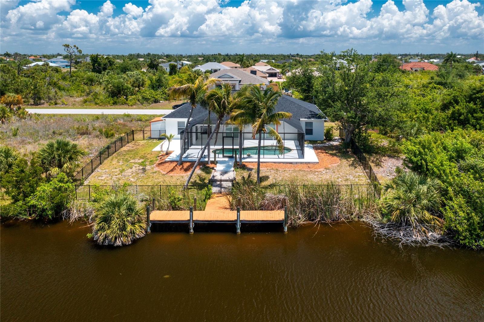 Welcome to your dream waterfront retreat on this waterfront property. Nestled on a serene canal with direct access to the sparkling waters of the Gulf of Mexico, this stunning residence offers the epitome of luxury living in a paradise setting. Step inside, and you'll be captivated by the spacious and airy interior, meticulously designed with a seamless blend of comfort. The heart of this home is undoubtedly the expansive living area, boasting breathtaking views of the waterway through large IMPACT slider doors that flood the space with natural light. Imagine lounging in the comfort of your living room while being mesmerized by the tranquil waterfront vistas. The true highlight of this property lies outdoors. Step through the sliding glass doors onto the expansive screened-in lanai, where you'll find your private oasis. Take a refreshing dip in the sparkling pool, bask in the Florida sunshine on the spacious deck, or dine al fresco under the covered patio while taking in the picturesque views. For boating enthusiasts, this home is a dream come true. With its own private dock, you'll have direct access to the Gulf of Mexico, allowing you to explore the endless waterways and discover hidden treasures along the coastline at your leisure. Situated on a quiet street, this property offers ample space and privacy, making it the perfect retreat for those seeking a peaceful waterfront lifestyle without sacrificing convenience. With its prime location, luxurious amenities, and unparalleled waterfront views, this is more than just a home—it's a waterfront paradise awaiting your personal touch. For the safety of your fur babies, there is a fenced backyard. The house has IMPACT sliding doors, and shutters for all other windows to give you that peace of mind. The gutters have gutter protectors over them for easy cleaning. For fun and entertainment, you couldn't be closer to all the accommodations we've grown accustomed to. You are within minutes of beautiful beaches, great restaurants, music, Seasonal Farmers markets, shopping, and close to airports for easy travel. This area has so much to offer, it's up to you to come and enjoy life as it should be... right here in the Sunshine State. To enhance your property, the lot next door 9668 Miami is also for sale. Drive by and check it out Schedule your private showing today and make your waterfront dreams a reality!
