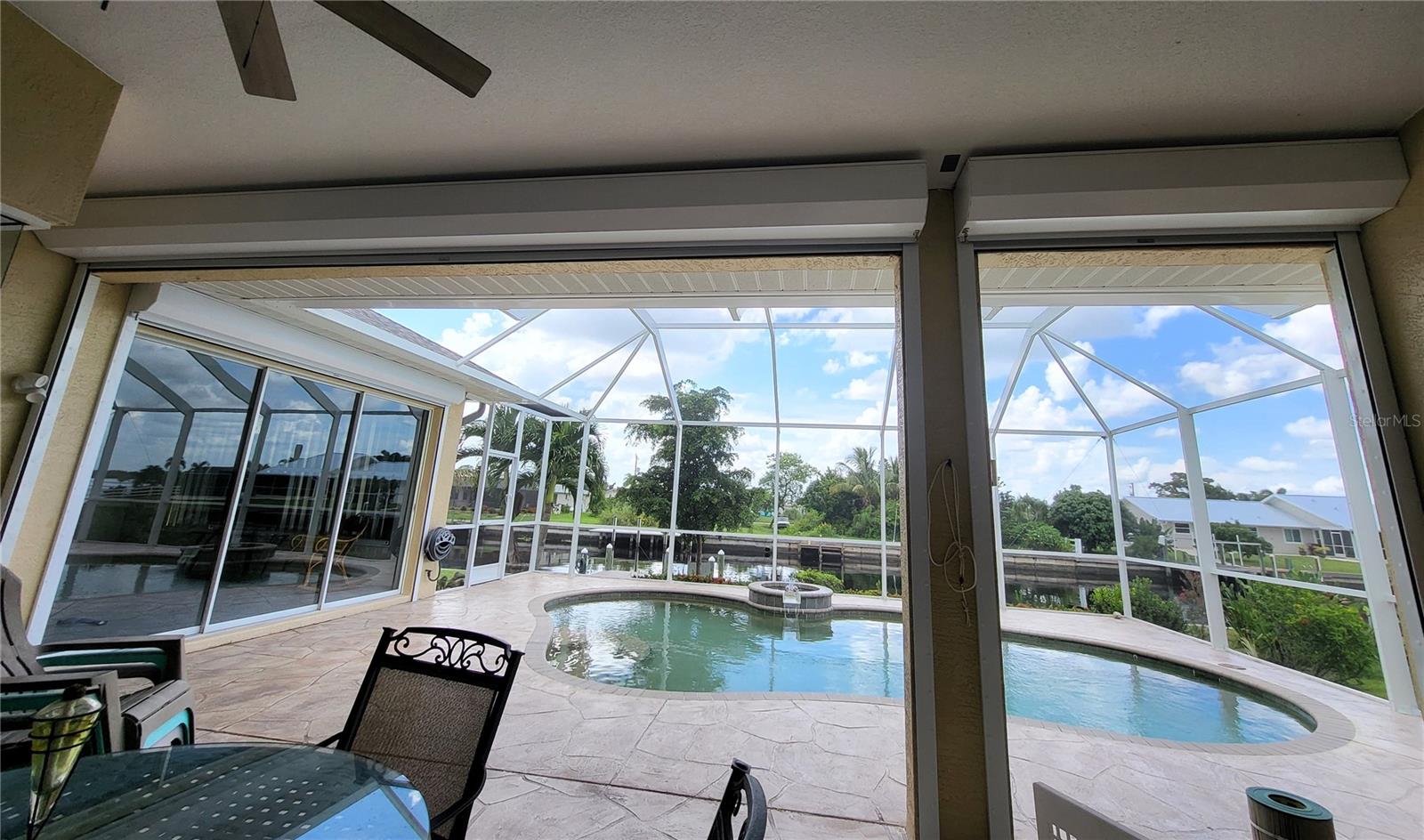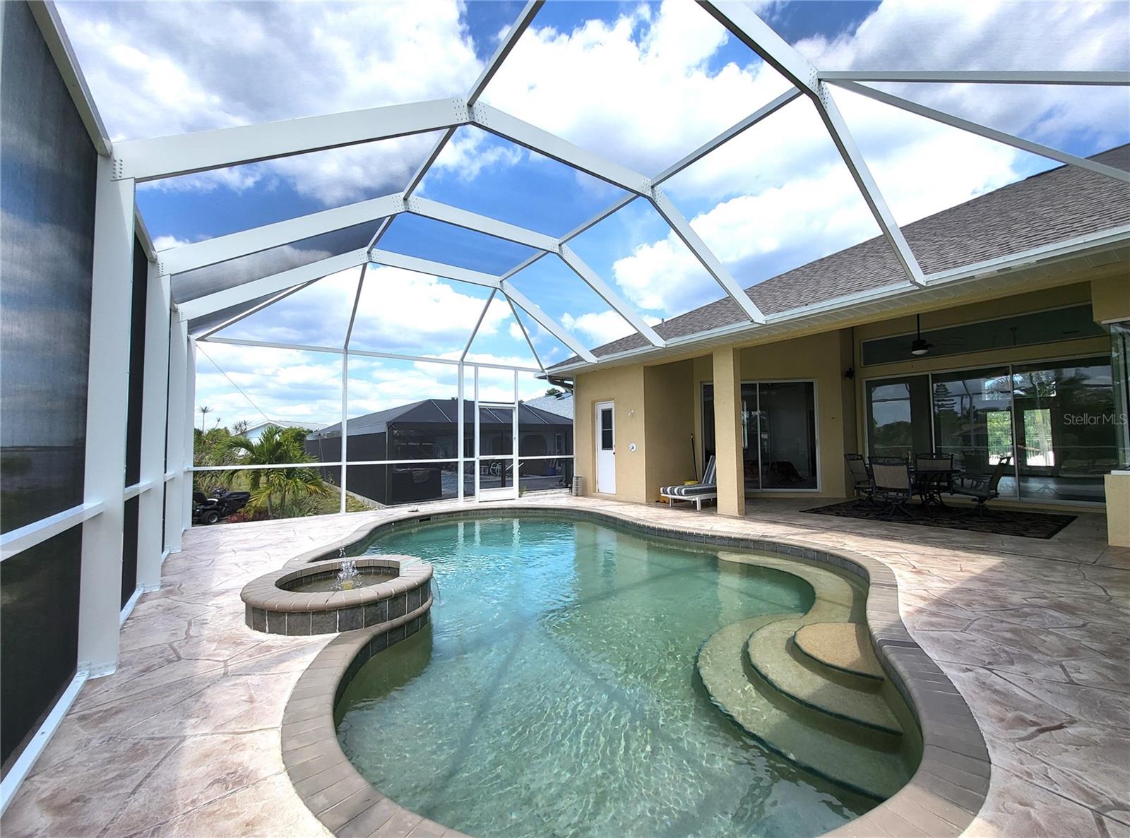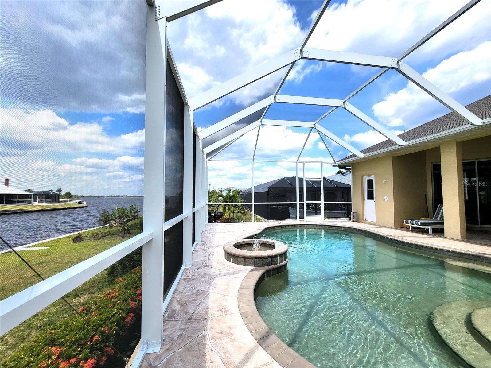 This beautiful, custom-built, one-owner waterfront home, with a captivating view of the Myakka River, and Gulf access, could be your NEW residence! Extensive updates, all completed this year, make it 'move-in ready' to enjoy! It has 3 bedrooms, 2.5 baths, a 3-car garage, an in-ground pool, an open outdoor patio, and a dock with water & power for your boat! NEW 24” ceramic tile, laid diagonally throughout, and NEW interior paint, in neutral tones, welcome you. The spacious, open floor plan, with elevated ceilings, NEW ceiling fans, large windows, and sliding glass doors, allows plenty of natural light to flow throughout the home. A large Great room, and separate large Family room, with delightful views of the river, give you plenty of space for family and friends. The BRAND-NEW custom-designed kitchen, with soft-close, staggered, crown-topped white cabinetry, tasteful coordinating granite counters, deep under-mount stainless sink, and NEW GE stainless appliances, is ready for preparation of every meal. The nearby breakfast nook, with aquarium glass window, is positioned to enjoy relaxing views and access to the pool and canal. A short hallway leads to the walk-in pantry, laundry room, and 3-car garage, with built-in workbench and lots of storage. Split-plan bedrooms have the Master suite to the right of the entrance. The large en-suite offers a soaking tub, separate tiled, walk-in shower, two vanities, toilet, and a linen closet. A hallway passes the 'his & hers' walk-in closets, with built-in shelving, and leads to the large primary bedroom. Ample room for a king-sized bed, with space for a sitting or exercise area. Double sliding glass doors have a view of the pool and access to the lanai. The two good sized guest bedrooms and bath, with a tub/shower combo, are located off the family room on the other side of the home, and a pocket door can provide privacy. The lanai overlooks the sparkling pool, and NEW pool cage. A pool bath, with NEW toilet and vanity, and outdoor shower, are convenient features. Stepping down from the pool area, you find an open paved patio, with a fire-pit, perfect for a grill/bar area. Walk out into the yard, which is a good size as the lot is deeper than standard, and down to the seawall and dock. Grab a chair and your fishing pole, and catch tonight's dinner! Or picture heading out on your boat for the day! Front door, and all sliding glass doors on lanai, are protected with electric roll-down hurricane shutters, and other windows have aluminum panels. Just installed in July 2024! The roof was replaced in 2021, as was the water heater. AC is just 1-year old, (May 2023). Paar Circle is a quiet cul-de-sac, with well-maintained homes, and friendly neighbors. Would you like to join them? Well, schedule a showing of this home today, and it could happen. Seeing is believing!!