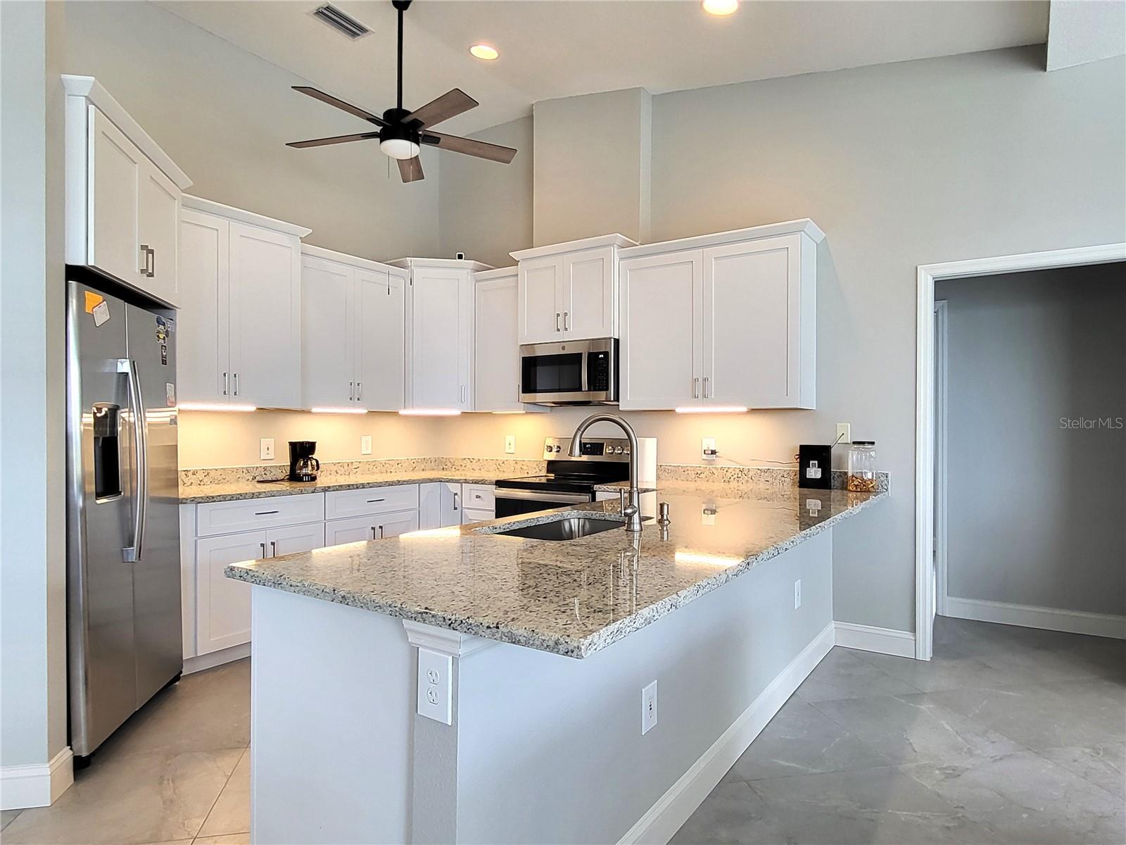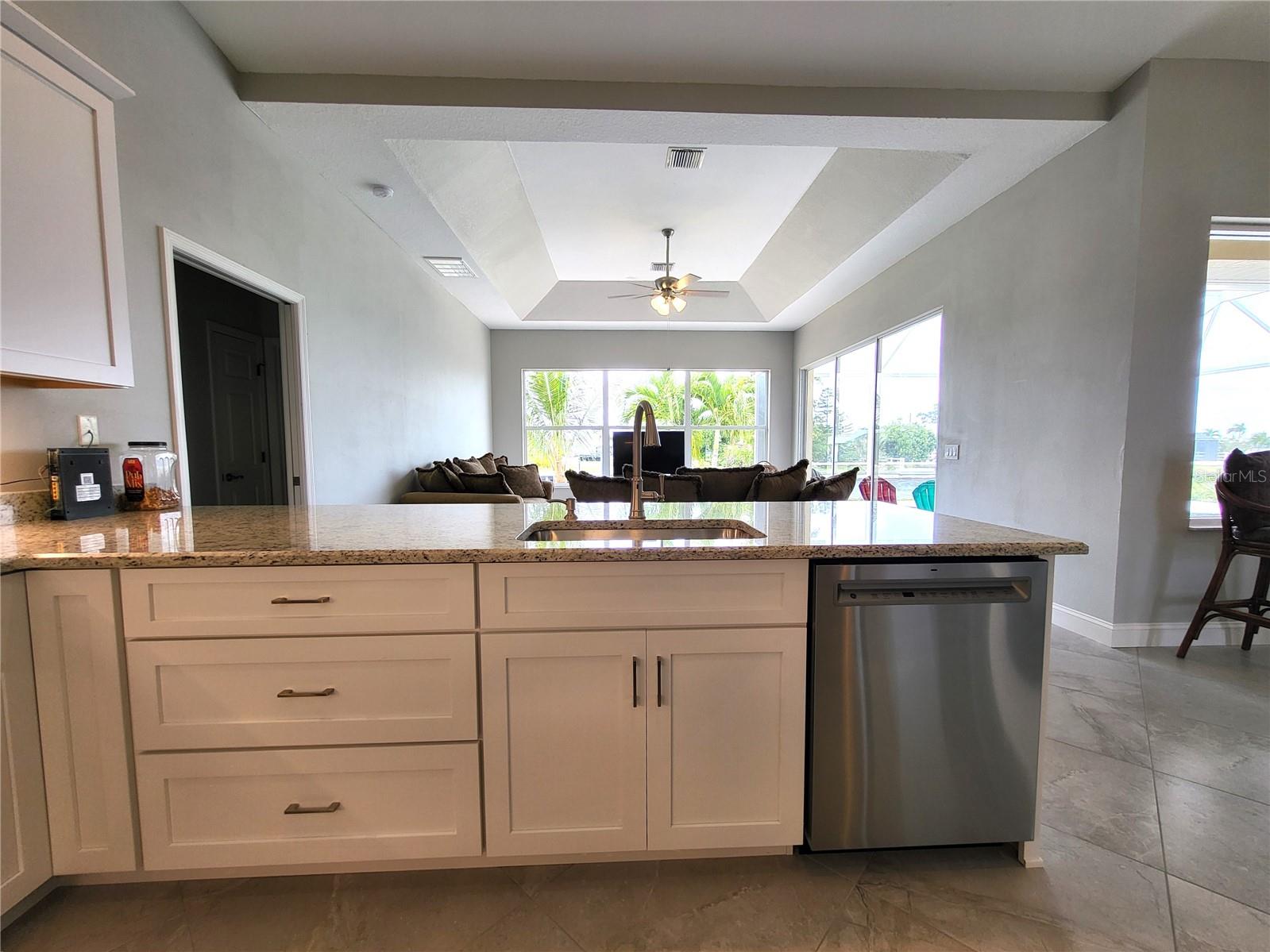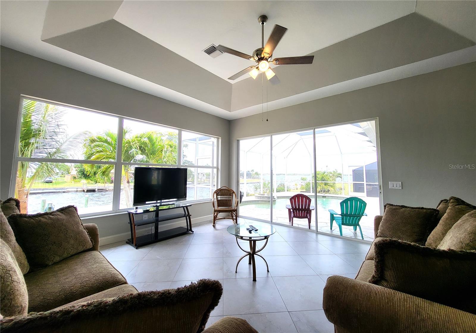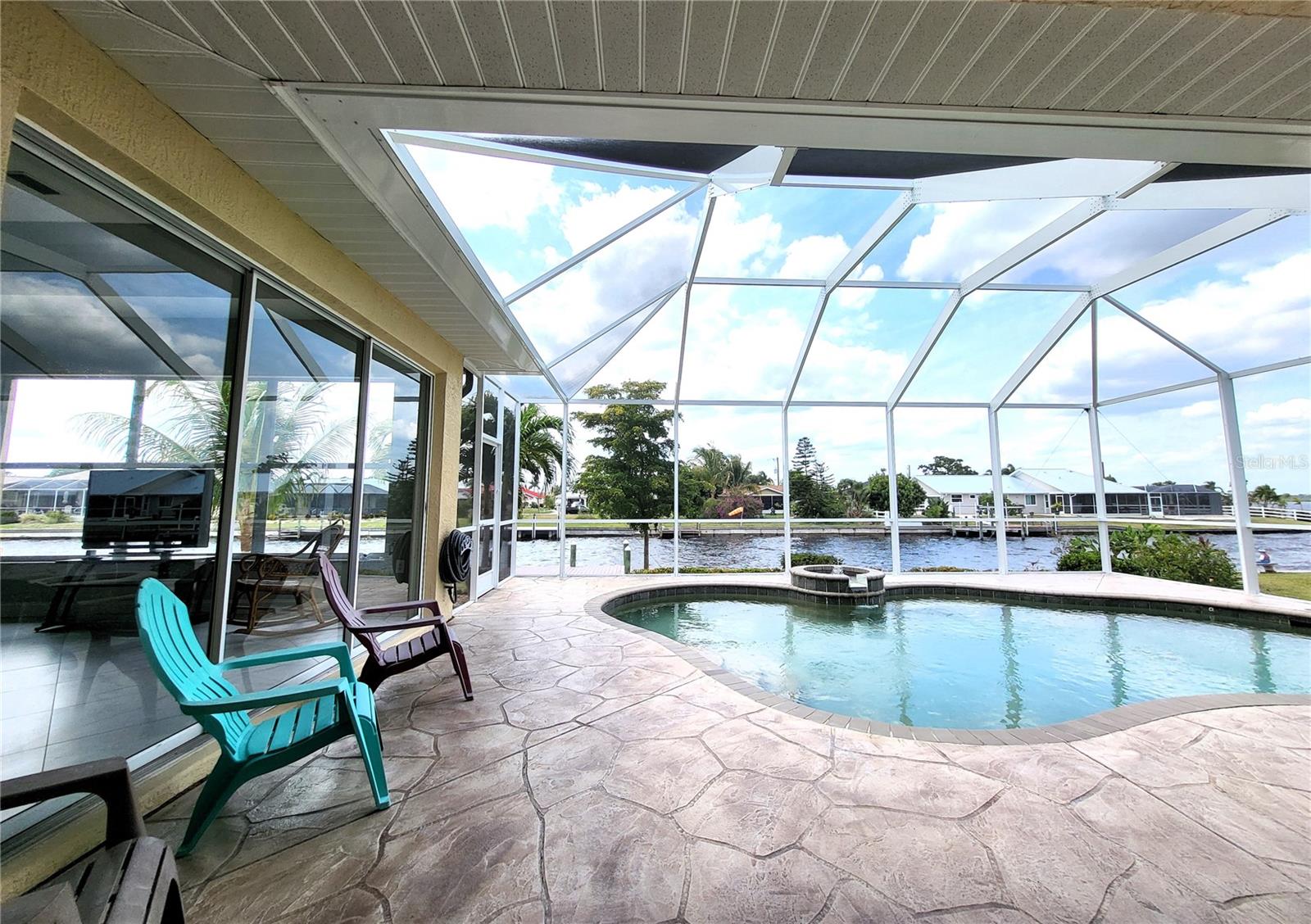 This beautiful, custom-built, one-owner waterfront home, with a captivating view of the Myakka River, and Gulf access, could be your NEW residence! Extensive updates, all completed this year, make it 'move-in ready' to enjoy! It has 3 bedrooms, 2.5 baths, a 3-car garage, an in-ground pool, an open outdoor patio, and a dock with water & power for your boat! NEW 24” ceramic tile, laid diagonally throughout, and NEW interior paint, in neutral tones, welcome you. The spacious, open floor plan, with elevated ceilings, NEW ceiling fans, large windows, and sliding glass doors, allows plenty of natural light to flow throughout the home. A large Great room, and separate large Family room, with delightful views of the river, give you plenty of space for family and friends. The BRAND-NEW custom-designed kitchen, with soft-close, staggered, crown-topped white cabinetry, tasteful coordinating granite counters, deep under-mount stainless sink, and NEW GE stainless appliances, is ready for preparation of every meal. The nearby breakfast nook, with aquarium glass window, is positioned to enjoy relaxing views and access to the pool and canal. A short hallway leads to the walk-in pantry, laundry room, and 3-car garage, with built-in workbench and lots of storage. Split-plan bedrooms have the Master suite to the right of the entrance. The large en-suite offers a soaking tub, separate tiled, walk-in shower, two vanities, toilet, and a linen closet. A hallway passes the 'his & hers' walk-in closets, with built-in shelving, and leads to the large primary bedroom. Ample room for a king-sized bed, with space for a sitting or exercise area. Double sliding glass doors have a view of the pool and access to the lanai. The two good sized guest bedrooms and bath, with a tub/shower combo, are located off the family room on the other side of the home, and a pocket door can provide privacy. The lanai overlooks the sparkling pool, and NEW pool cage. A pool bath, with NEW toilet and vanity, and outdoor shower, are convenient features. Stepping down from the pool area, you find an open paved patio, with a fire-pit, perfect for a grill/bar area. Walk out into the yard, which is a good size as the lot is deeper than standard, and down to the seawall and dock. Grab a chair and your fishing pole, and catch tonight's dinner! Or picture heading out on your boat for the day! Front door, and all sliding glass doors on lanai, are protected with electric roll-down hurricane shutters, and other windows have aluminum panels. Just installed in July 2024! The roof was replaced in 2021, as was the water heater. AC is just 1-year old, (May 2023). Paar Circle is a quiet cul-de-sac, with well-maintained homes, and friendly neighbors. Would you like to join them? Well, schedule a showing of this home today, and it could happen. Seeing is believing!!