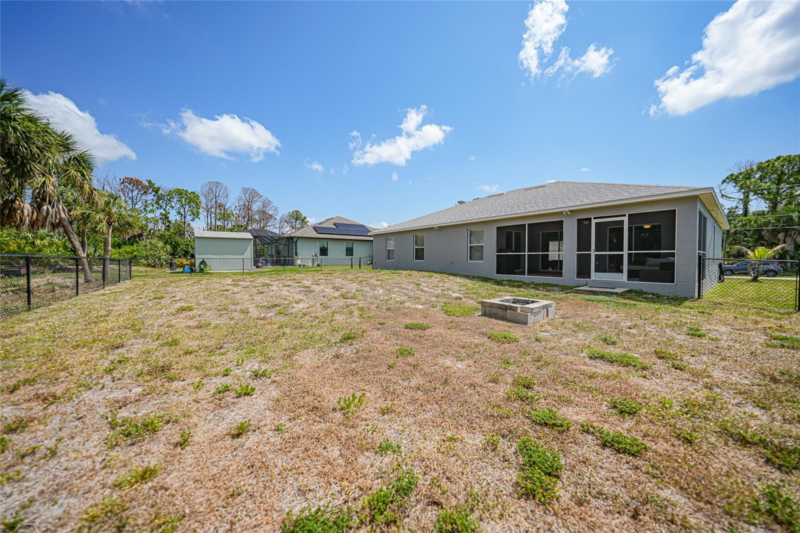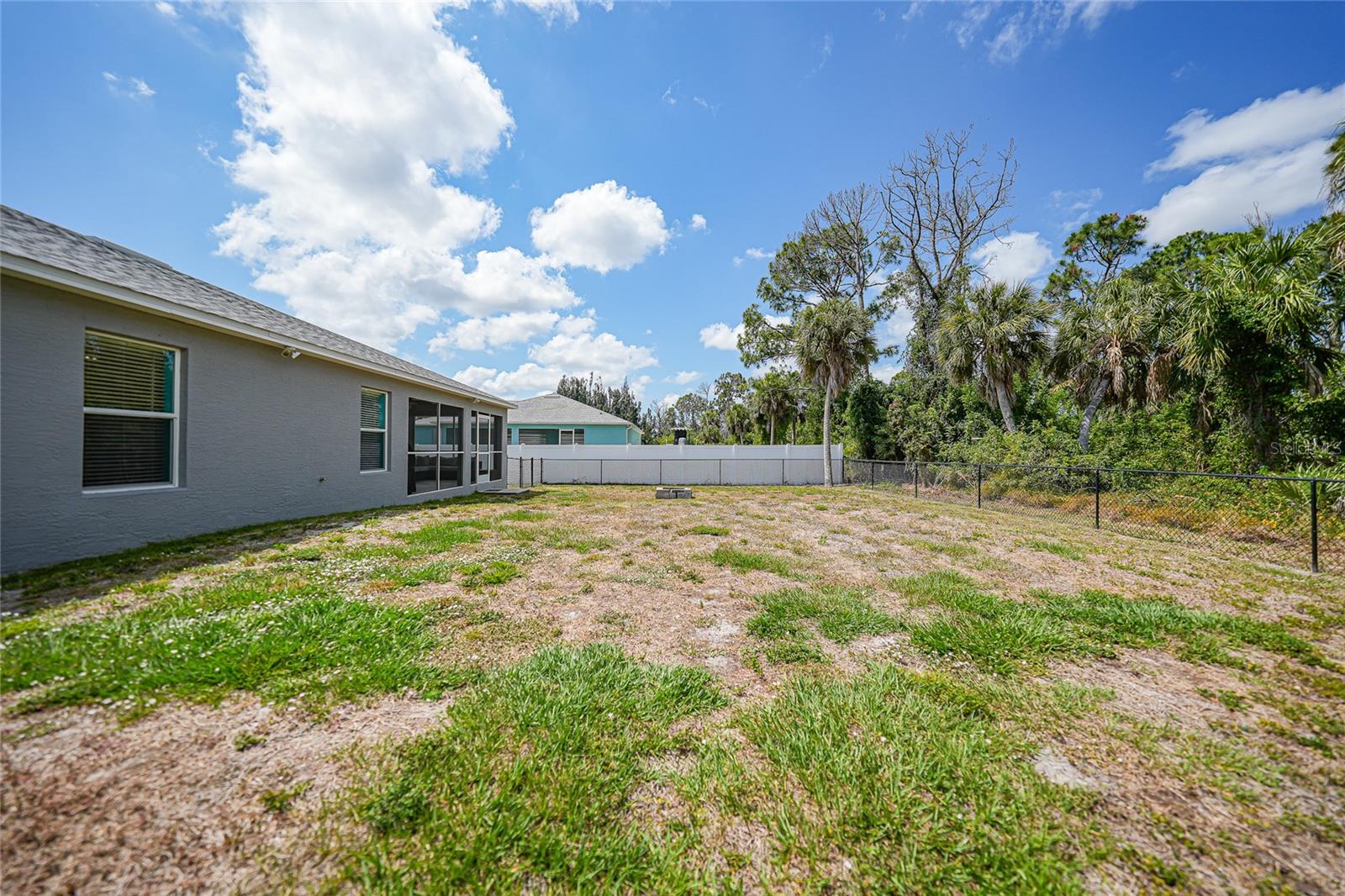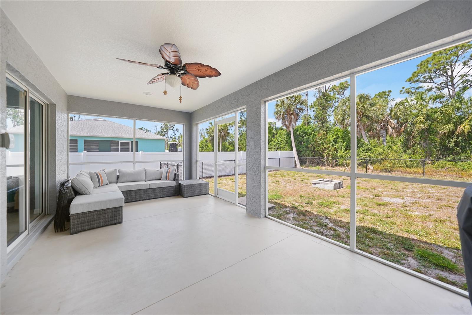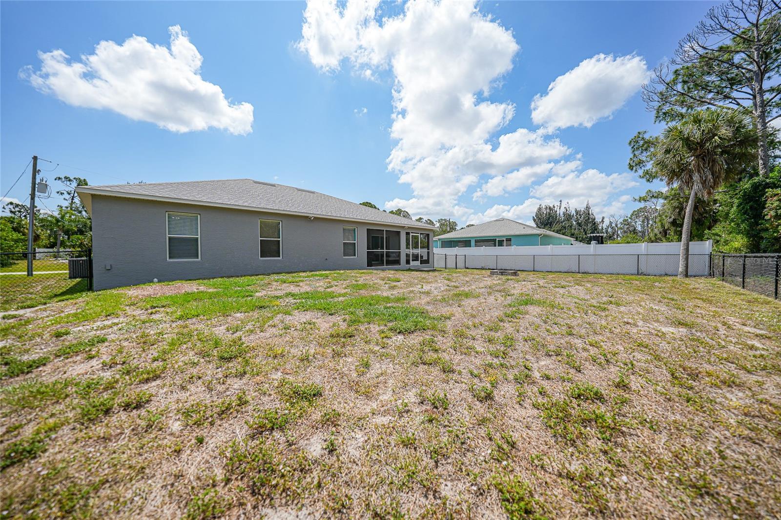 3 bedroom PLUS DEN, 2 bathroom home with X FLOOD zone and NO HOA has so many updates with an awesome open floor plan. UPDATES: (2024) Garbage disposal, (2023) Exterior painted, New Roof, (2022) New A/C system ,(2020) Kitchen appliances, whole home surge protection, washing machine, Interior painting including baseboards and trim, fence, fans in primary bedroom-den and dining room. With soaring ceilings and tiled floors throughout, cleanup is a breeze, leaving you more time to relax. Entertaining is a delight in the spacious dining room and living area, ensuring there's always room for gatherings. Imagine the possibilities for this 13 x 11 den - whether it's a tranquil work-from-home office, a lively game room, or a cozy sanctuary or additional bedroom. The master suite is a retreat in itself, boasting a generously sized walk-in closet, a double vanity, and a luxurious tiled step-in shower. Convenience is key with an indoor laundry room leading to a pristine two-car garage, complete with epoxy floor surface. Relaxation continues outdoors on the screened-in patio, with vacant lots behind for added privacy. And for peace of mind during storm season, rest assured knowing hurricane shutters are available for every opening, easily deployable when needed. Conveniently located near Boca Grande (about 11 miles) , Englewood Beach (less than 8 miles), and Port Charlotte (less than 10 miles), with their array of shopping, dining options, over 5 golf courses within 5 miles and not one, but two spring training baseball stadiums nearby! Furnishings & electronics in the home can be negotiable.