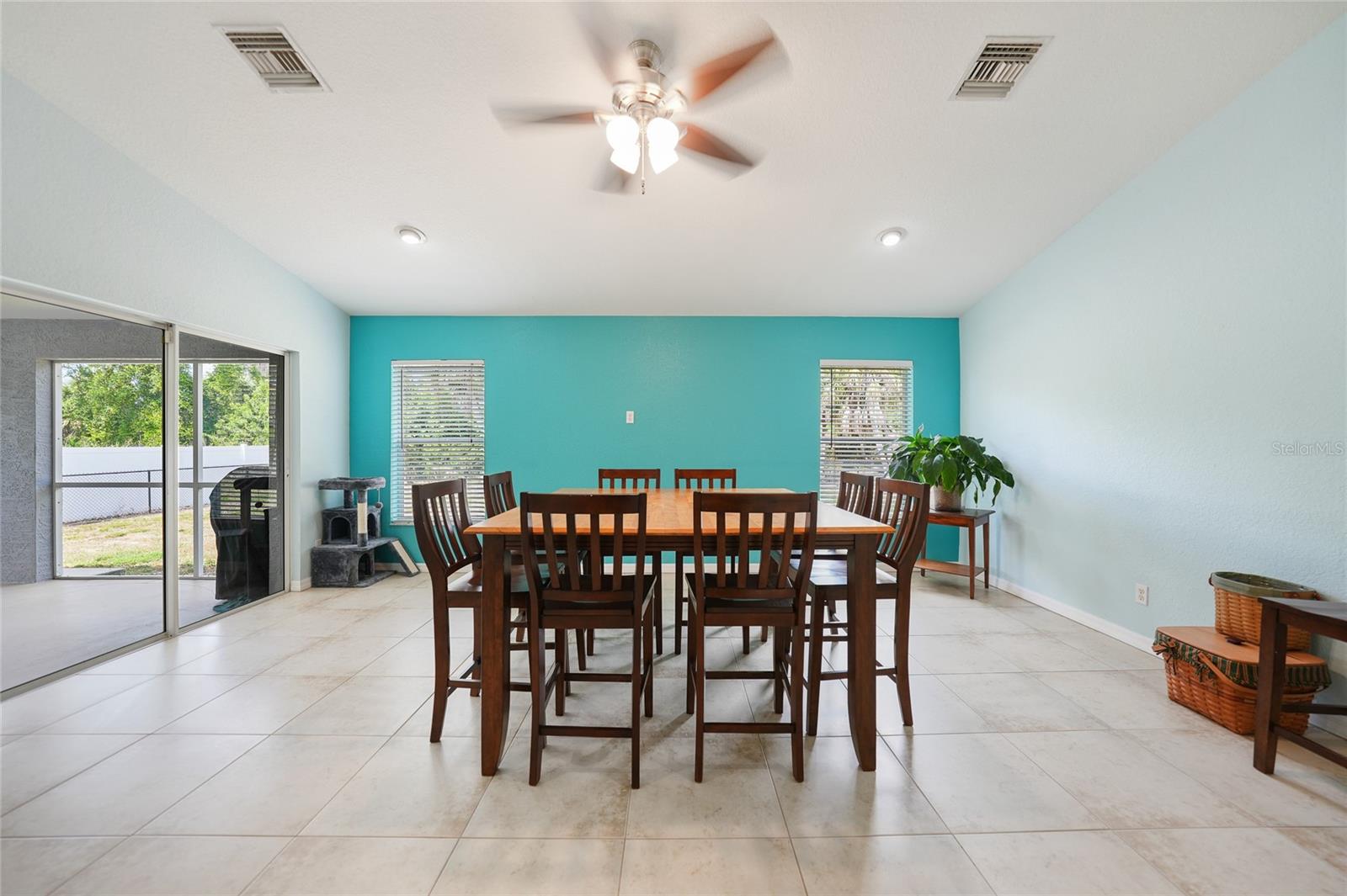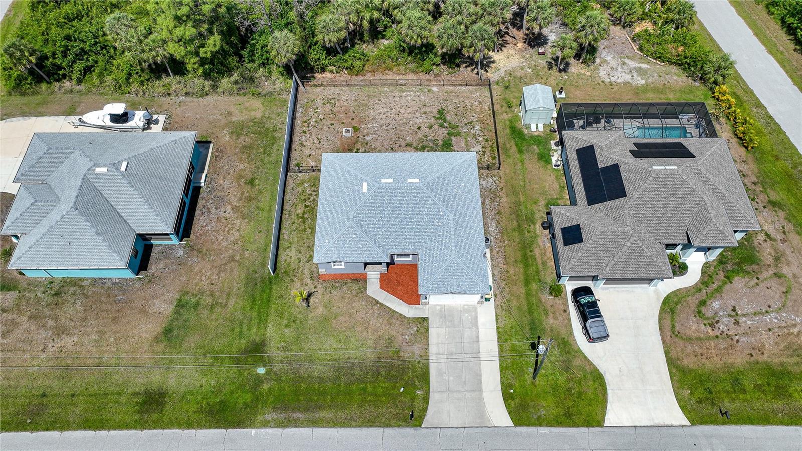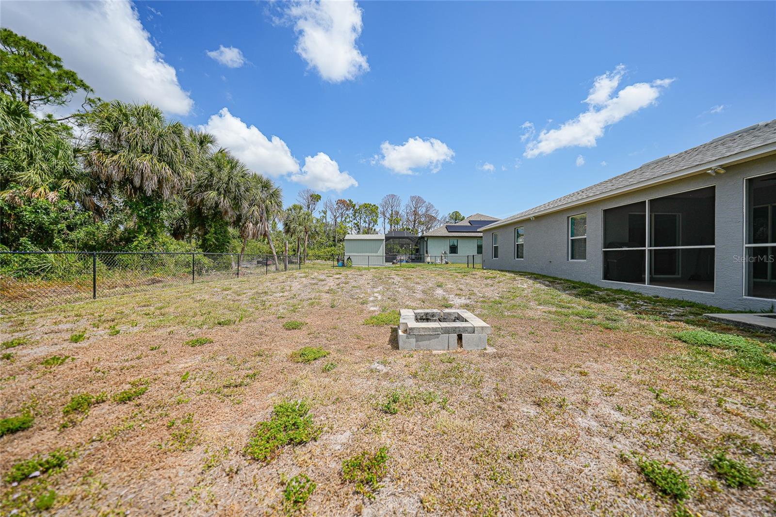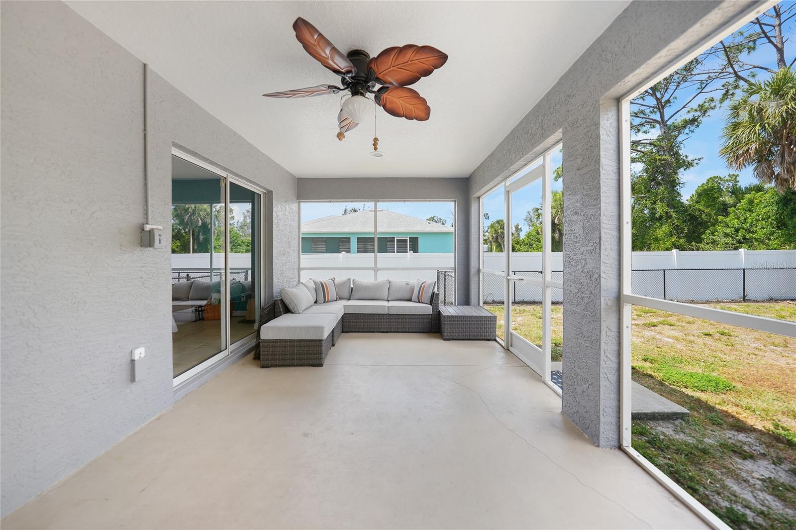 3 bedroom PLUS DEN, 2 bathroom home with X FLOOD zone and NO HOA has so many updates with an awesome open floor plan. UPDATES: (2024) Garbage disposal, (2023) Exterior painted, New Roof, (2022) New A/C system ,(2020) Kitchen appliances, whole home surge protection, washing machine, Interior painting including baseboards and trim, fence, fans in primary bedroom-den and dining room. With soaring ceilings and tiled floors throughout, cleanup is a breeze, leaving you more time to relax. Entertaining is a delight in the spacious dining room and living area, ensuring there's always room for gatherings. Imagine the possibilities for this 13 x 11 den - whether it's a tranquil work-from-home office, a lively game room, or a cozy sanctuary or additional bedroom. The master suite is a retreat in itself, boasting a generously sized walk-in closet, a double vanity, and a luxurious tiled step-in shower. Convenience is key with an indoor laundry room leading to a pristine two-car garage, complete with epoxy floor surface. Relaxation continues outdoors on the screened-in patio, with vacant lots behind for added privacy. And for peace of mind during storm season, rest assured knowing hurricane shutters are available for every opening, easily deployable when needed. Conveniently located near Boca Grande (about 11 miles) , Englewood Beach (less than 8 miles), and Port Charlotte (less than 10 miles), with their array of shopping, dining options, over 5 golf courses within 5 miles and not one, but two spring training baseball stadiums nearby! Furnishings & electronics in the home can be negotiable.