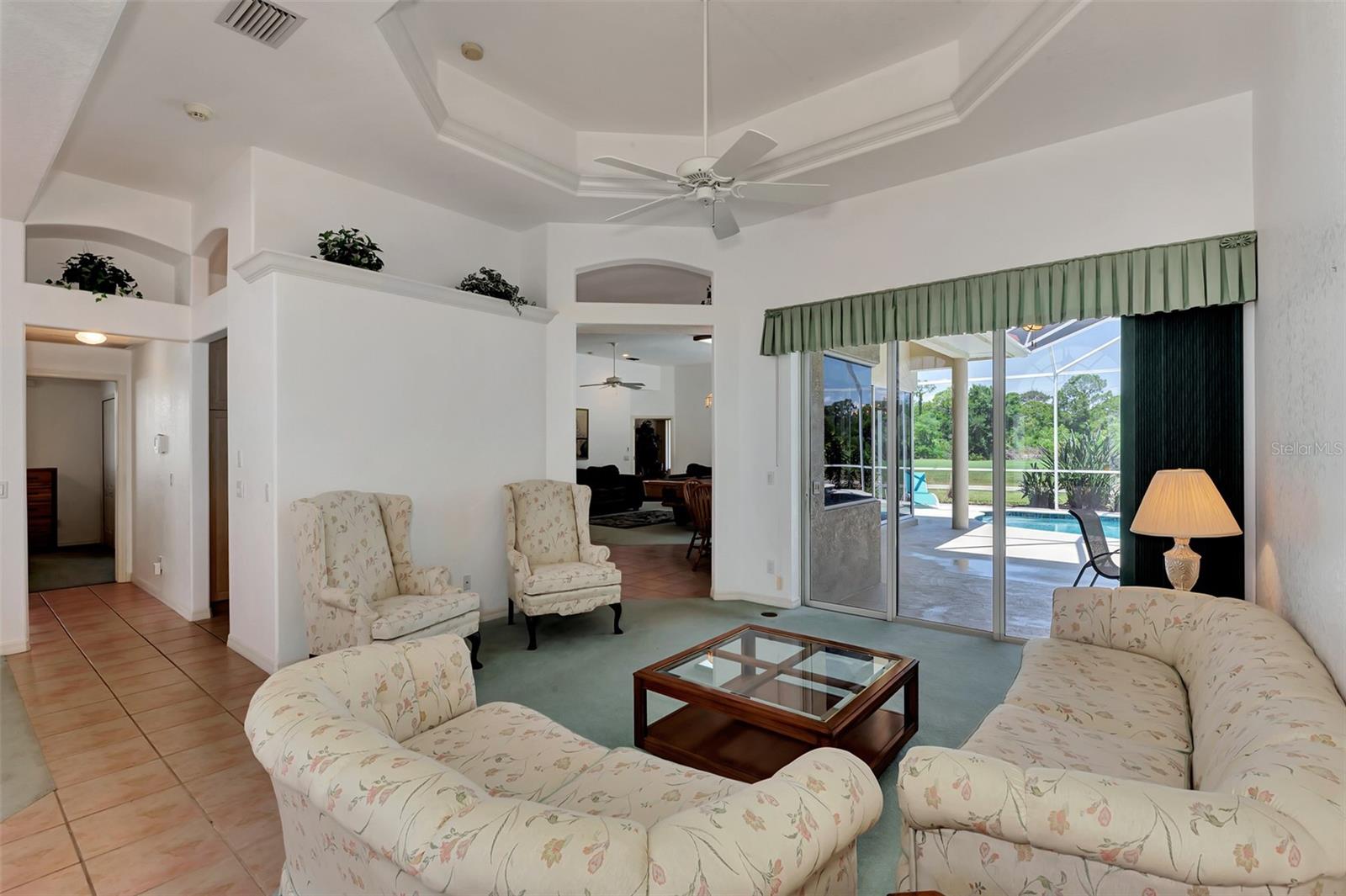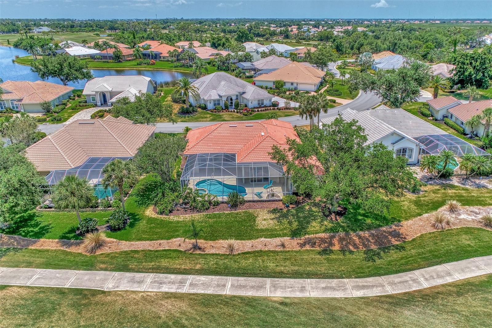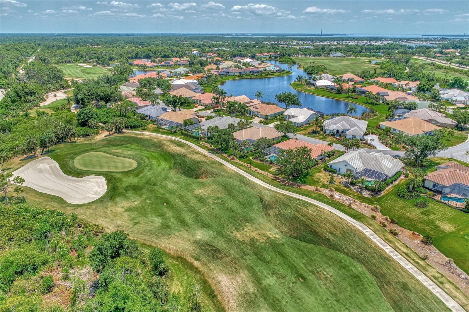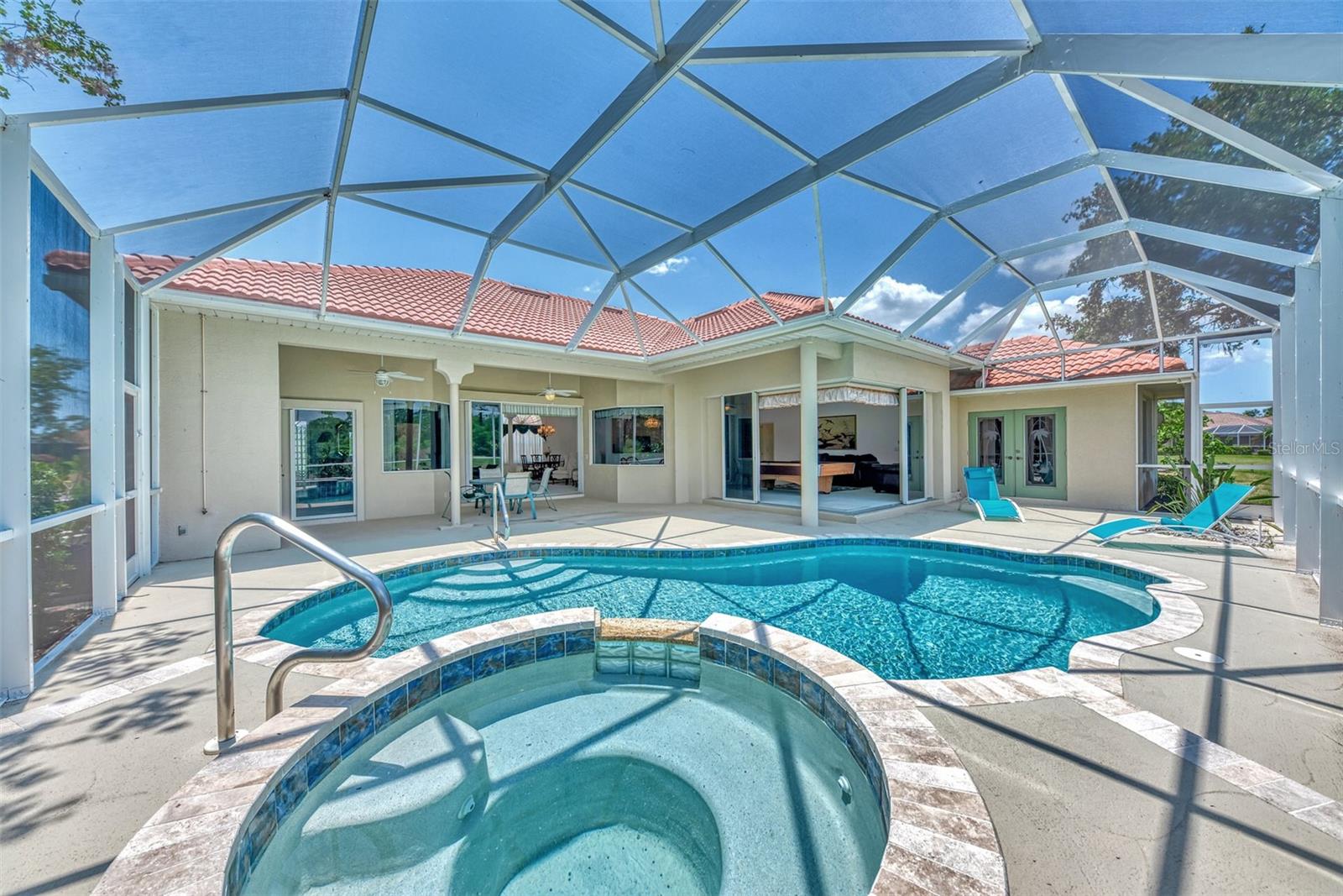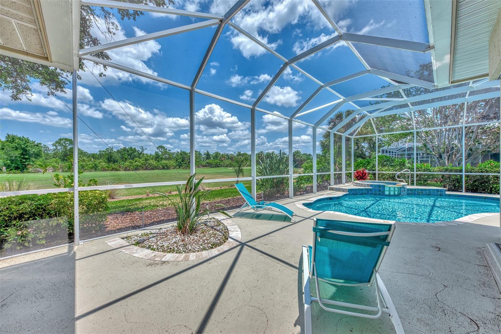 Nestled on the lush Fairway of a par 5 3rd hole of the highly acclaimed Riverwood Golf Course in Port Charlotte, Florida, this 1997-built estate home is reminiscent of that time and offers a blend of comfort, and serenity. This home has 2,400 square feet of indoor space and a classic design that can be updated to suit modern preferences and trends in home design, making it both fashionable and practical for today’s way of living. As you step inside, you are greeted by a traditional layout featuring a formal dining room and a living room that exudes the sophistication of the 1990’s. The heart of the home is the large family room/great room with a kitchen and dinette, ideal for entertaining and family gatherings. The family room boasts corner sliding glass doors that seamlessly integrate indoor and outdoor living, opening up to an expansive lanai and pool deck enclosed by a screened cage. The outdoor oasis is highlighted by a refreshing pool with a raised spa and spillway, inviting you to relax and enjoy the Florida sunshine. The primary bedroom is a private retreat, complete with an ensuite bathroom featuring a soaking tub, separate shower with glass block enclosure, and a huge walk-in closet. It also has its own hot water heater for ultimate convenience. The guest suite includes two large bedrooms connected by a Jack and Jill bathroom with a walk-in shower, providing comfort and privacy for your guests. Additional features include an updated roof, pool cage, and AC system, ensuring peace of mind for years to come. Completing this home is a two-car garage with a separate golf cart garage door, perfect for the golf enthusiast. This home is not just a residence; it’s a lifestyle waiting for you to embrace. This could be your ideal home on the golf course, where you can enjoy a relaxing lifestyle every day. Seize the chance to claim this slice of paradise in Port Charlotte, Florida. It's a must-see for golf enthusiasts and those who value life's finer aspects in Riverwood! A RESORT LIFESTYLE COMMUNITY FEATURING: RIVERWOOD GOLF CLUB NAMED *GOLFER’S CHOICE 2021 #1 FLORIDA COURSE* *GOLFER’S CHOICE 2021 TOP 15 US COURSES* *GOLF ADVISOR*, ACTIVITY CENTER CAMPUS OFFERING LAP & RESORT STYLE POOLS, FITNESS CENTER, PICKLEBALL COURTS, SMALL AND LARGE DOG PARKS, TENNIS COURTS, LAWN CROQUET, BOCCE COURTS, ART CLASSROOM, LIBRARY, AND SOCIAL EVENTS! Additional fees apply for Riverwood Golf Club, Private Beach Club on Manasota Key, and on-site RV/Boat storage. Riverwood is close to Tampa Bay Rays Spring Training Facility, Atlanta Braves Spring Training Facility, Gulf Beaches, Charlotte Harbor (2nd largest estuary in FL), Myakka River (FL Scenic River), Punta Gorda, Englewood, and Boca Grande. Riverwood, a Perfect Blend of Florida’s Nature, and Resort Style Living. Start Living the Dream today! Call for your private tour!