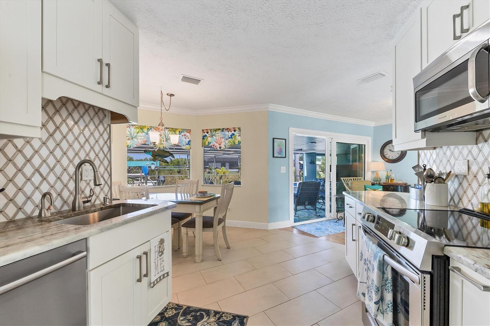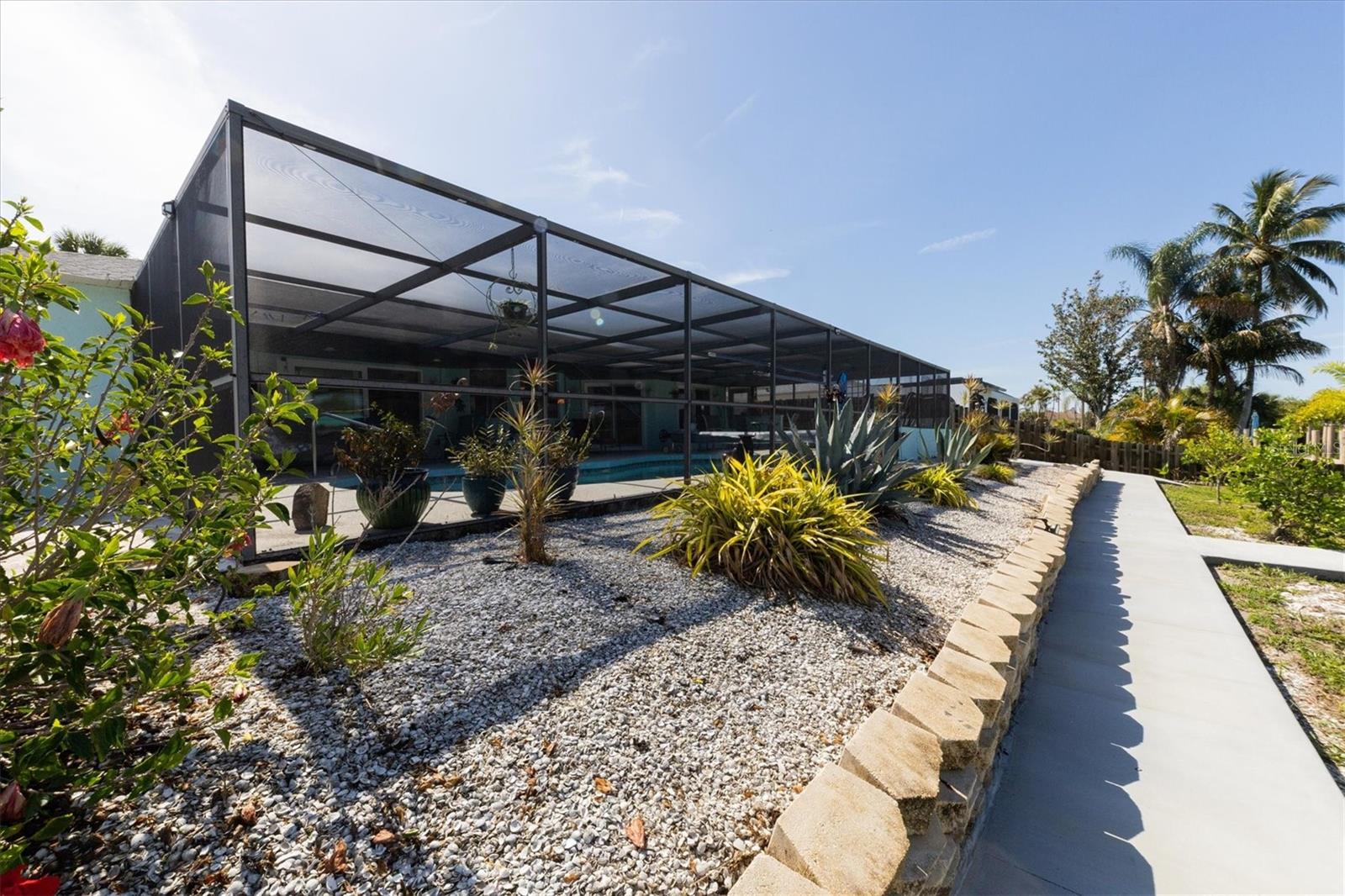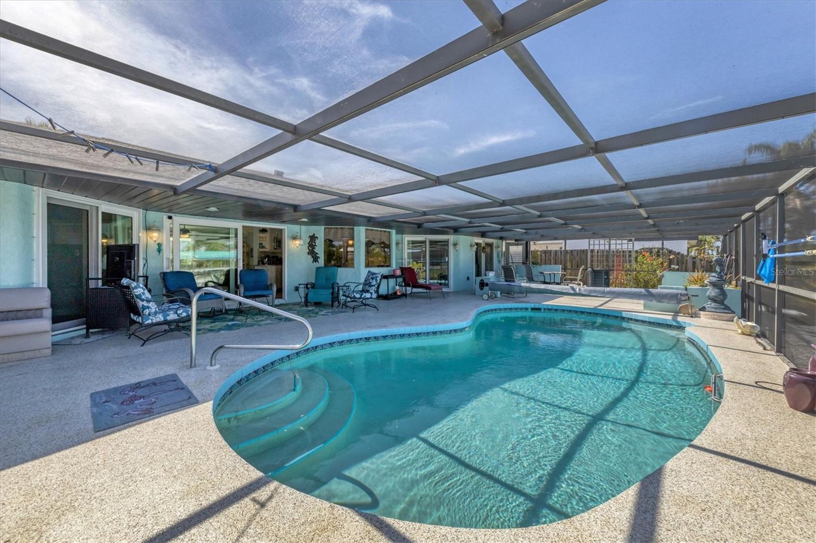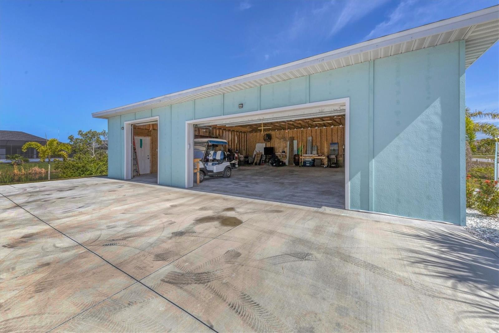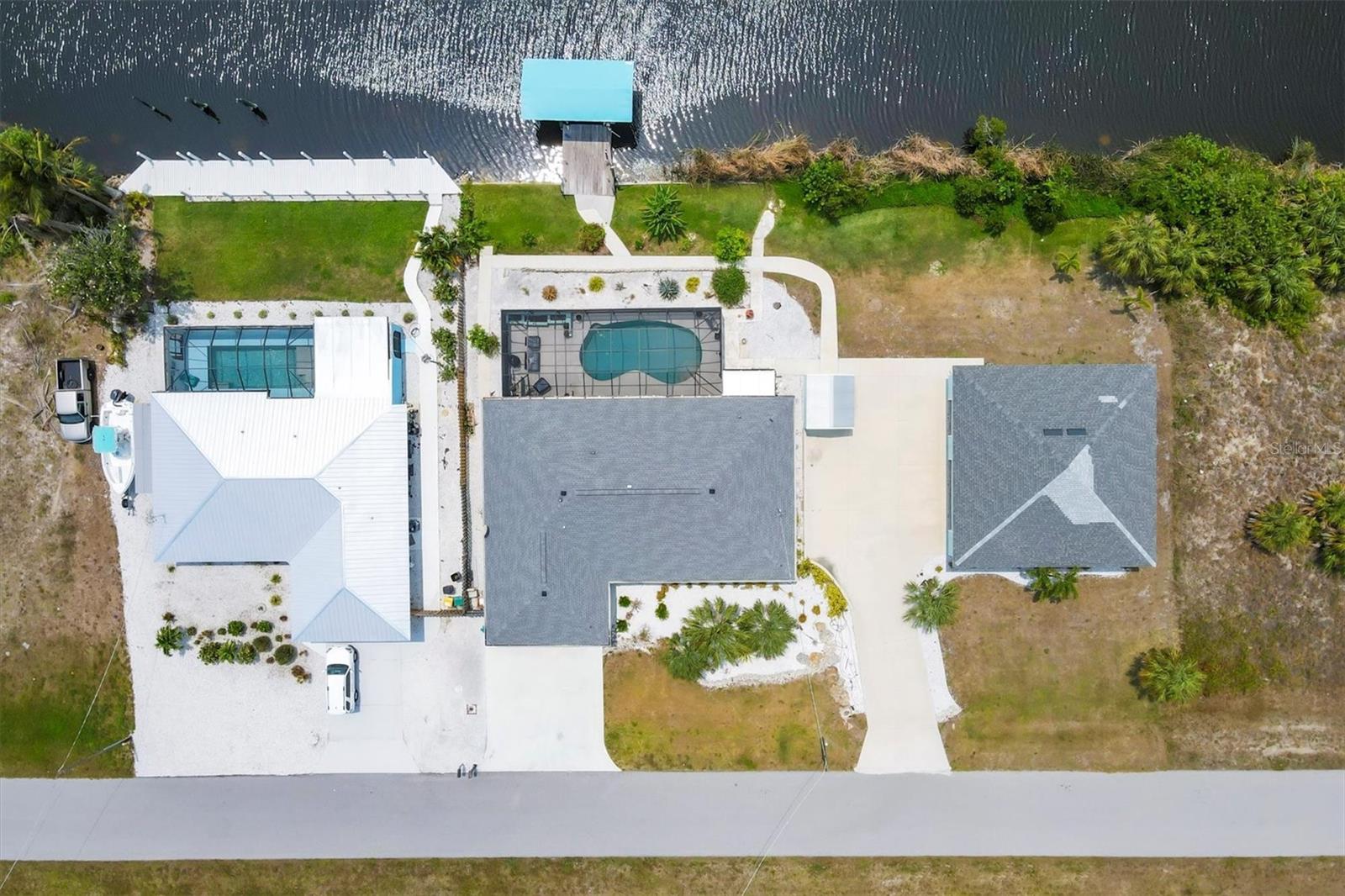 It's time to call this slice of Paradise in the beautiful Waterfront Community of South Gulf Cove your own. This amazing property has it all. This 3/2 waterfront home sits on a double lot with 160 ft. of water frontage with a cement walk way down to your dock and covered boat lift, and boasts a huge 40 x 40 detached garage for that car enthusiast, toy collector, woodworker etc. The possibilities are endless. Enjoy the mature landscaping of your tropical oasis. Walking through the updated decorative etched double front door (hurricane rated) you will notice the natural lighting through out the rooms. The spacious living room is enhanced by the large window and sliders that go out to the lanai/pool area. The beautifully renovated kitchen has been upgraded with gorgeous granite countertops, new tile backsplash, soft close cabinets with pull out shelves, hot water dispenser faucet and soap dispenser and newer stainless steel appliances. The natural light to the kitchen comes from the 3 large windows in the breakfast nook that overlook the pool/lanai area. The popular Florida split floor plan takes you into two nice size guest bedrooms on one side of the home that share the newly renovated oversized bath with a gorgeous tiled walk in shower and tiled bench that is accessible from the pool lanai. The oversized main bedroom is located on the opposite side of the home and features two sliders that take you out to the pool/lanai area. Off the main bedroom you walk into your newly remodeled main bath featuring a newly tiled walk in shower with a tiled bench. The laundry area is located down the hall from the Main Bedroom. If you are looking for an outdoor oasis, possibilities are endless with this property both in the lanai and outside of the lanai. The oversized lanai features a 14 x 28 size pool with an upgraded high efficiency pool heater. There is plenty of entertaining space to envision an outdoor bar area, outdoor kitchen, outside tiki bar area etc. There is plenty of parking with the added cement driveway for the detached garage, and additional storage in the 120 sq.ft. pre-built shed. Some of the additional upgrades to this property are: New roof (3/22), replaced AC (2017), Hurricane sliding doors (2019), New cement sidewalks across and behind the house, garage & Dock (2022), whole house repiped with PVC PEX tubing and fittings (2021), Garage and House painted (2020), Hot water heater (2019) This property has a lot to offer, make your appointment today.
