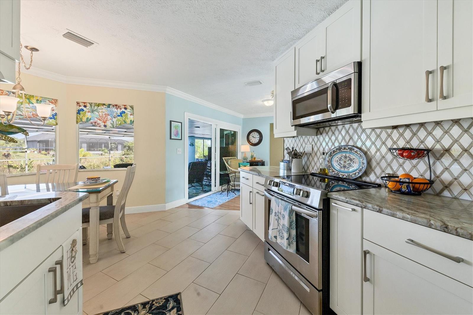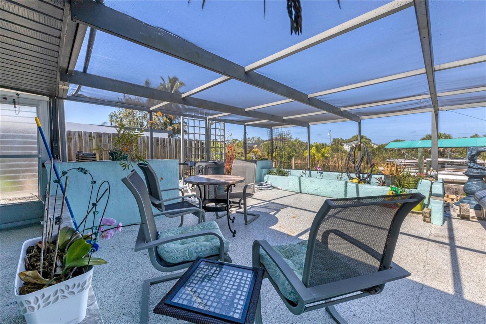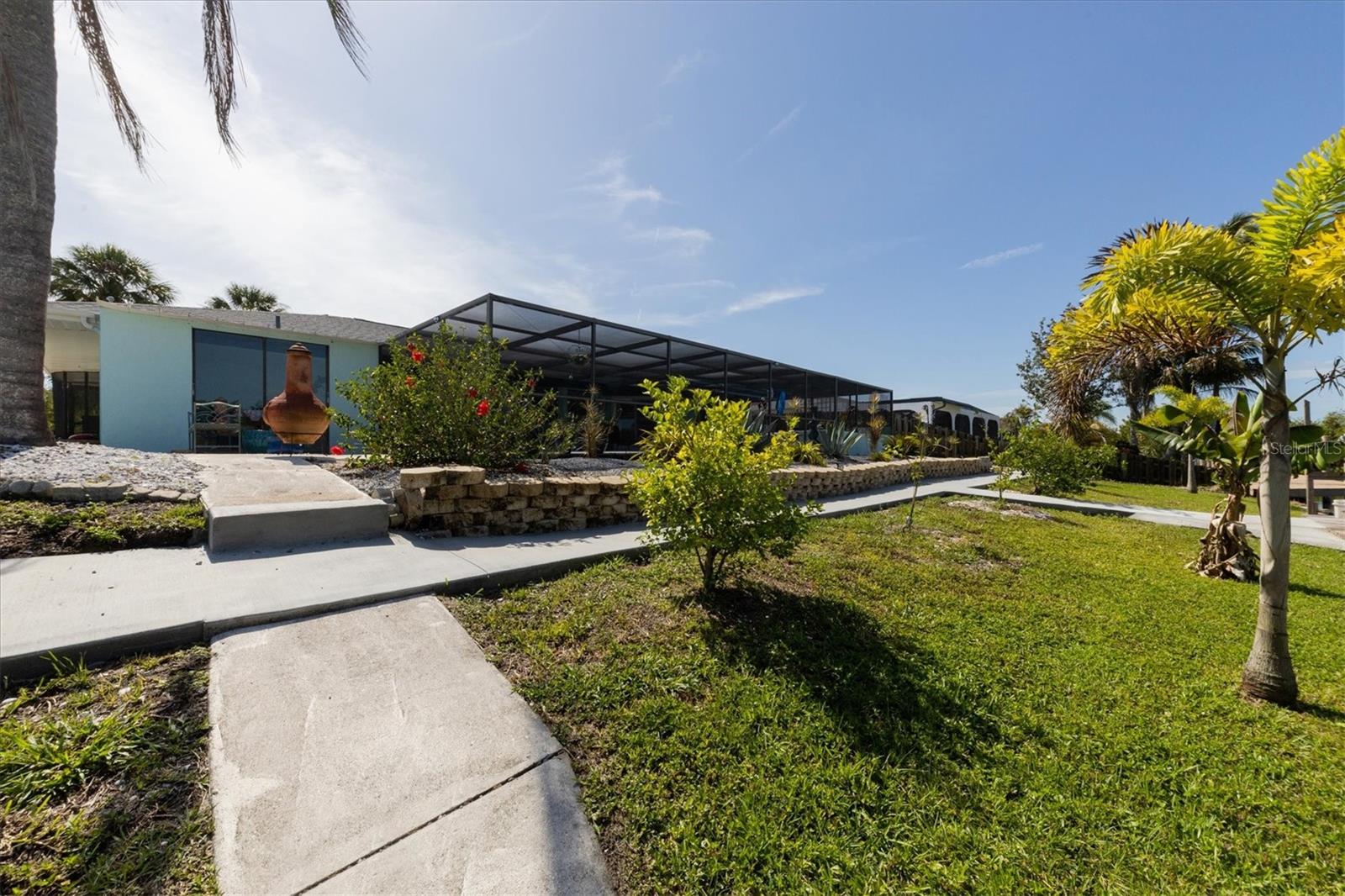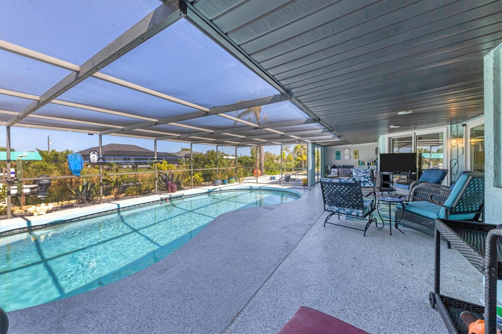 It's time to call this slice of Paradise in the beautiful Waterfront Community of South Gulf Cove your own. This amazing property has it all. This 3/2 waterfront home sits on a double lot with 160 ft. of water frontage with a cement walk way down to your dock and covered boat lift, and boasts a huge 40 x 40 detached garage for that car enthusiast, toy collector, woodworker etc. The possibilities are endless. Enjoy the mature landscaping of your tropical oasis. Walking through the updated decorative etched double front door (hurricane rated) you will notice the natural lighting through out the rooms. The spacious living room is enhanced by the large window and sliders that go out to the lanai/pool area. The beautifully renovated kitchen has been upgraded with gorgeous granite countertops, new tile backsplash, soft close cabinets with pull out shelves, hot water dispenser faucet and soap dispenser and newer stainless steel appliances. The natural light to the kitchen comes from the 3 large windows in the breakfast nook that overlook the pool/lanai area. The popular Florida split floor plan takes you into two nice size guest bedrooms on one side of the home that share the newly renovated oversized bath with a gorgeous tiled walk in shower and tiled bench that is accessible from the pool lanai. The oversized main bedroom is located on the opposite side of the home and features two sliders that take you out to the pool/lanai area. Off the main bedroom you walk into your newly remodeled main bath featuring a newly tiled walk in shower with a tiled bench. The laundry area is located down the hall from the Main Bedroom. If you are looking for an outdoor oasis, possibilities are endless with this property both in the lanai and outside of the lanai. The oversized lanai features a 14 x 28 size pool with an upgraded high efficiency pool heater. There is plenty of entertaining space to envision an outdoor bar area, outdoor kitchen, outside tiki bar area etc. There is plenty of parking with the added cement driveway for the detached garage, and additional storage in the 120 sq.ft. pre-built shed. Some of the additional upgrades to this property are: New roof (3/22), replaced AC (2017), Hurricane sliding doors (2019), New cement sidewalks across and behind the house, garage & Dock (2022), whole house repiped with PVC PEX tubing and fittings (2021), Garage and House painted (2020), Hot water heater (2019) This property has a lot to offer, make your appointment today.