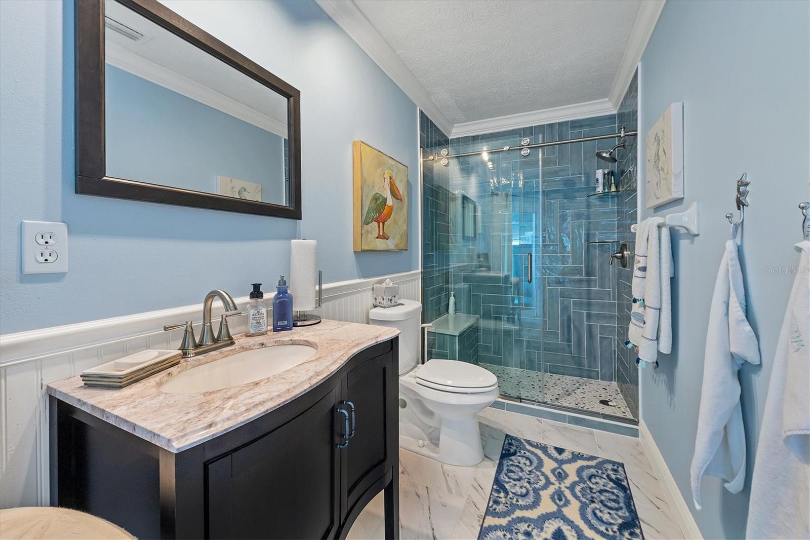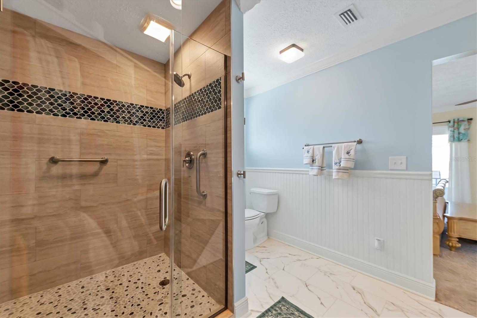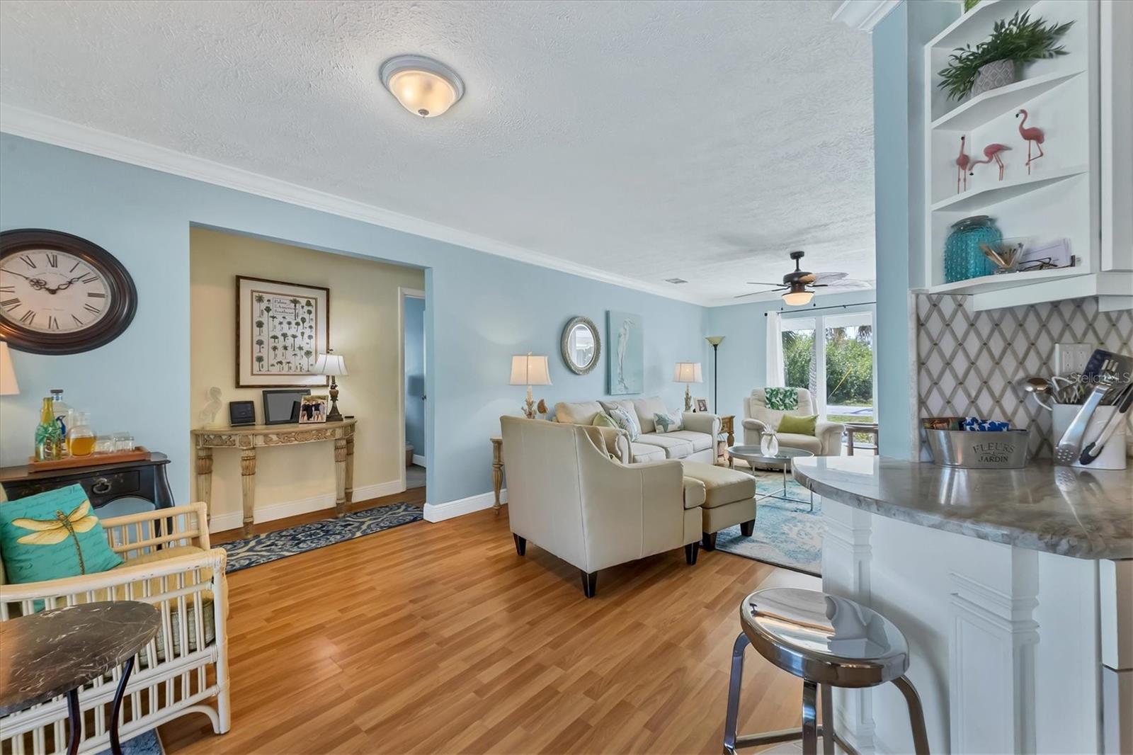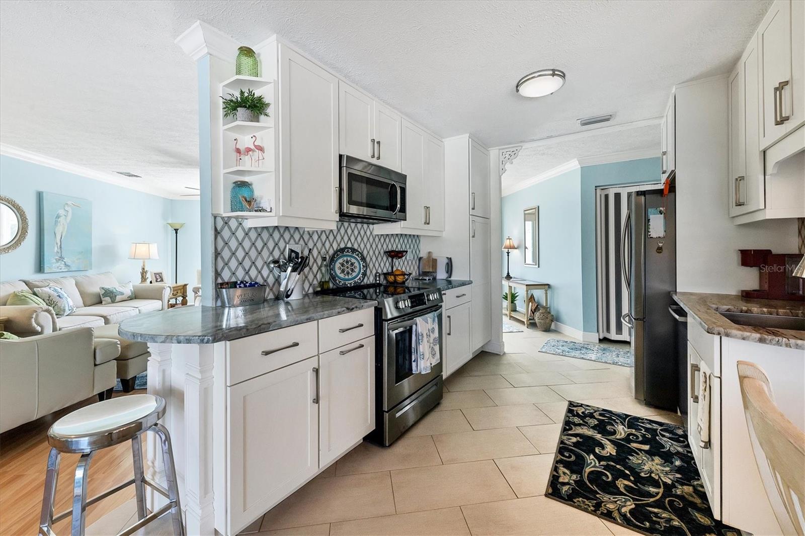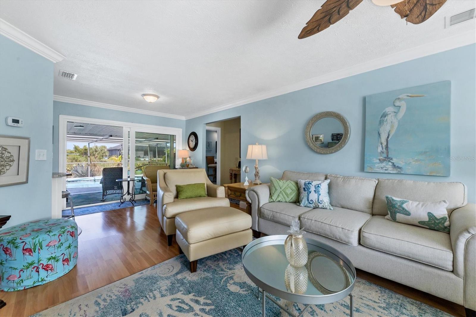 It's time to call this slice of Paradise in the beautiful Waterfront Community of South Gulf Cove your own. This amazing property has it all. This 3/2 waterfront home sits on a double lot with 160 ft. of water frontage with a cement walk way down to your dock and covered boat lift, and boasts a huge 40 x 40 detached garage for that car enthusiast, toy collector, woodworker etc. The possibilities are endless. Enjoy the mature landscaping of your tropical oasis. Walking through the updated decorative etched double front door (hurricane rated) you will notice the natural lighting through out the rooms. The spacious living room is enhanced by the large window and sliders that go out to the lanai/pool area. The beautifully renovated kitchen has been upgraded with gorgeous granite countertops, new tile backsplash, soft close cabinets with pull out shelves, hot water dispenser faucet and soap dispenser and newer stainless steel appliances. The natural light to the kitchen comes from the 3 large windows in the breakfast nook that overlook the pool/lanai area. The popular Florida split floor plan takes you into two nice size guest bedrooms on one side of the home that share the newly renovated oversized bath with a gorgeous tiled walk in shower and tiled bench that is accessible from the pool lanai. The oversized main bedroom is located on the opposite side of the home and features two sliders that take you out to the pool/lanai area. Off the main bedroom you walk into your newly remodeled main bath featuring a newly tiled walk in shower with a tiled bench. The laundry area is located down the hall from the Main Bedroom. If you are looking for an outdoor oasis, possibilities are endless with this property both in the lanai and outside of the lanai. The oversized lanai features a 14 x 28 size pool with an upgraded high efficiency pool heater. There is plenty of entertaining space to envision an outdoor bar area, outdoor kitchen, outside tiki bar area etc. There is plenty of parking with the added cement driveway for the detached garage, and additional storage in the 120 sq.ft. pre-built shed. Some of the additional upgrades to this property are: New roof (3/22), replaced AC (2017), Hurricane sliding doors (2019), New cement sidewalks across and behind the house, garage & Dock (2022), whole house repiped with PVC PEX tubing and fittings (2021), Garage and House painted (2020), Hot water heater (2019) This property has a lot to offer, make your appointment today.