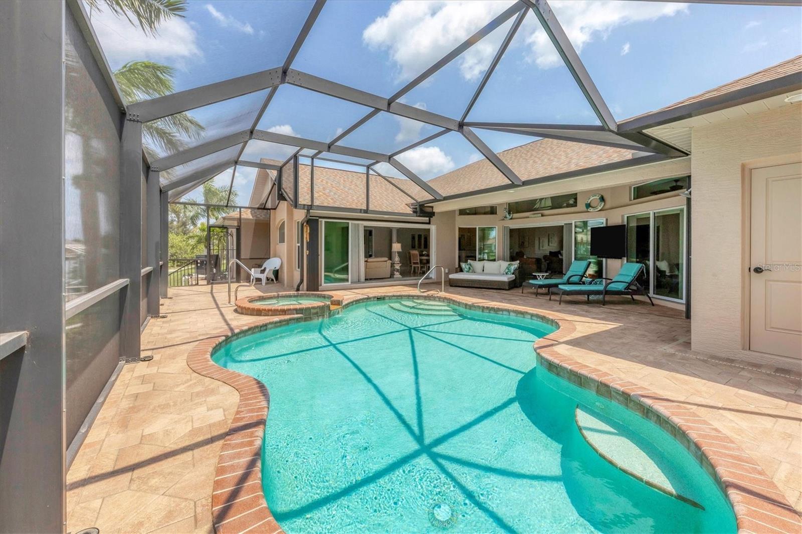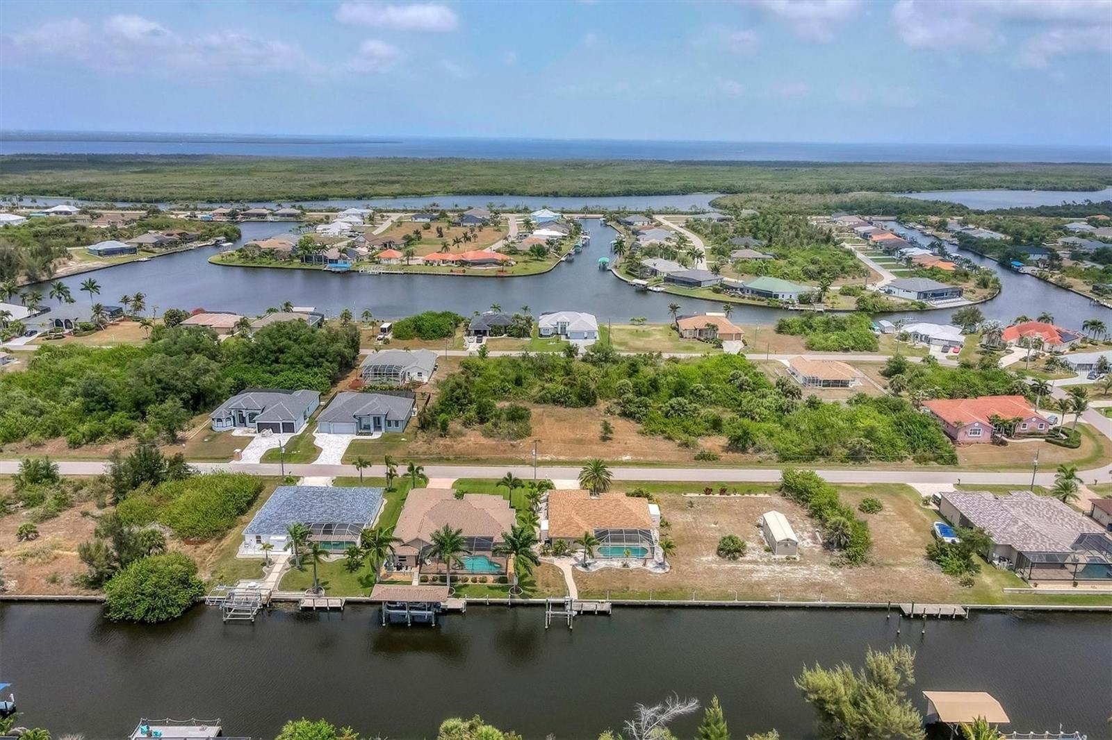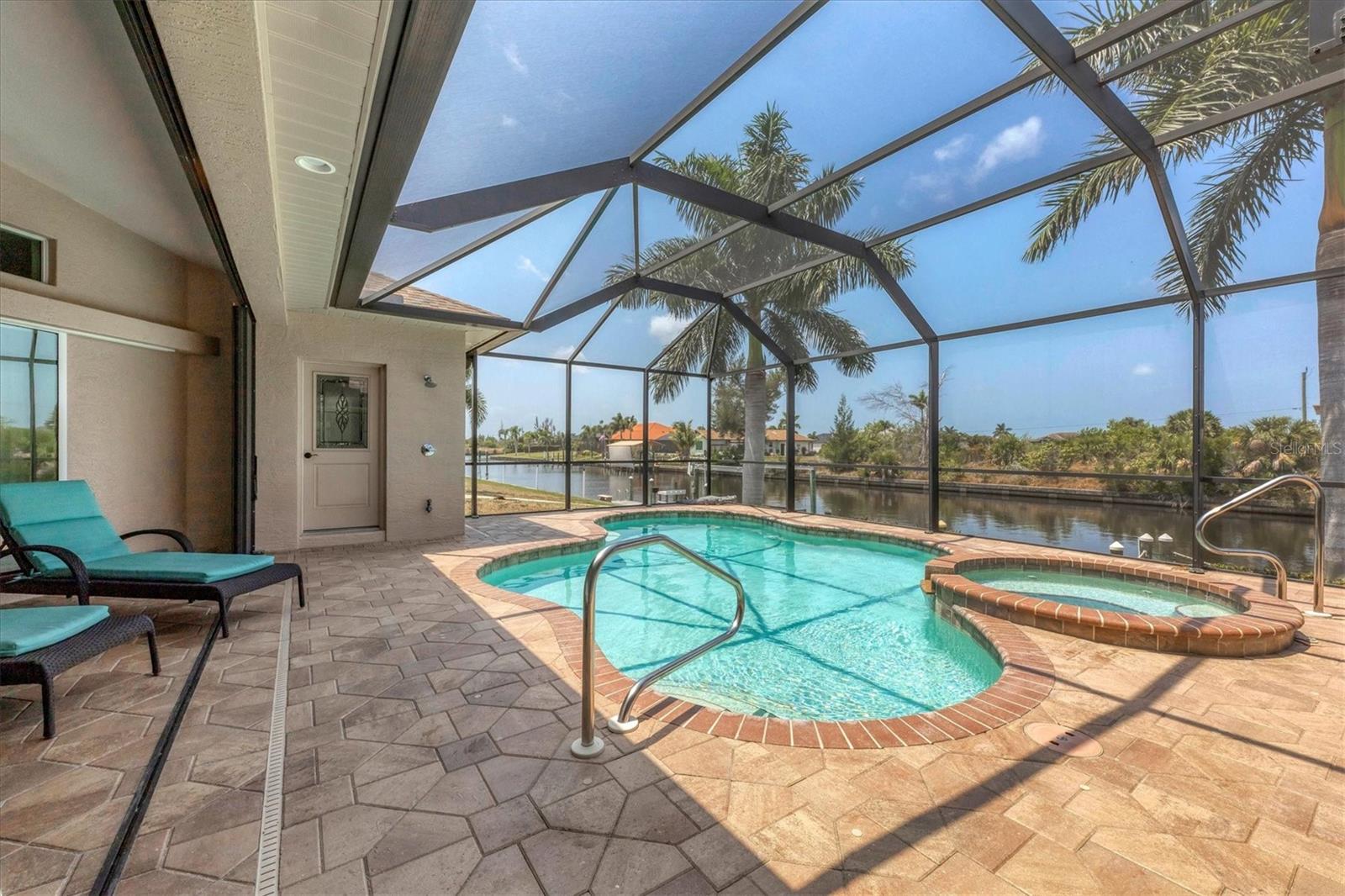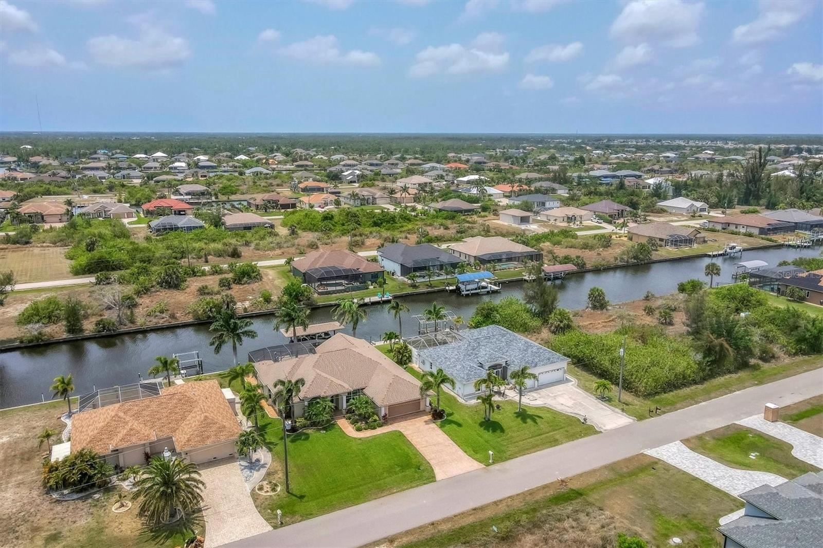This luxurious home in the quiet neighborhood of South Gulf Cove has everything you need to experience waterfront living at its finest. This property features a seawall, concrete dock with fish cleaning station, water and electric, and the custom built covered 15,000 lb. boat lift roof matches the home roof and both were replaced in 2022. At first glance, this home welcomes you with its beautiful mature landscaping surrounding the home with a stamped concrete driveway and walkway. As you walk through the double entry doors the natural light that engulfs this home will highlight the spacious open concept with exquisite polished tile flooring. There is plenty of room for entertaining friends and family utilizing the two living room areas, formal dining area and breakfast nook all surrounded by the magnificent waterfront views and detailed Architecture. The kitchen is a culinary dream and is sure to impress featuring a kitchen bar, granite counter tops, wood cabinets, under cabinet lighting, built in wine rack, wine refrigerator, double ovens, an island Bosch cooktop with down draft, matching Bosch appliances and central vac system. The popular Florida split floor plan features the privacy of the main bedroom being separated from the guest bedrooms. The oversized main bedroom features a tray ceiling, a walk in closet and reach in closet with sliders that go out to the lanai. The main bathroom highlights dual vanities with granite countertops, private water closet, a glass enclosed walk in shower and relaxing garden soaking tub to unwind after a long day. The guest bedrooms both have reach in closets and share the guest bathroom which features a large walk in tiled shower and granite counters. The laundry room can be accessed both by the kitchen and through the garage which is perfect when working outside and includes a cabinet with sink and granite top, and shelving. The oversized double garage features an epoxy floor, cobalt metal cabinets, built in work area and extra space needed to store your toys. When the work is done and you are ready to mellow down and get some sun, your outdoor lanai space is where it's at. Float in your saltwater heated pool with upgraded wifi pool controls or relax those tired muscles in the attached saltwater hot tub. Sit under the cover of your lanai to read a book, or just watch your favorite tv show. It's your own slice of paradise including an outdoor shower, separate pool bath and pool storage room. You are located near some of the most beautiful beaches, Boca Grande, golf courses and you have access to some of the best fishing in Charlotte Harbor and the Gulf of Mexico.