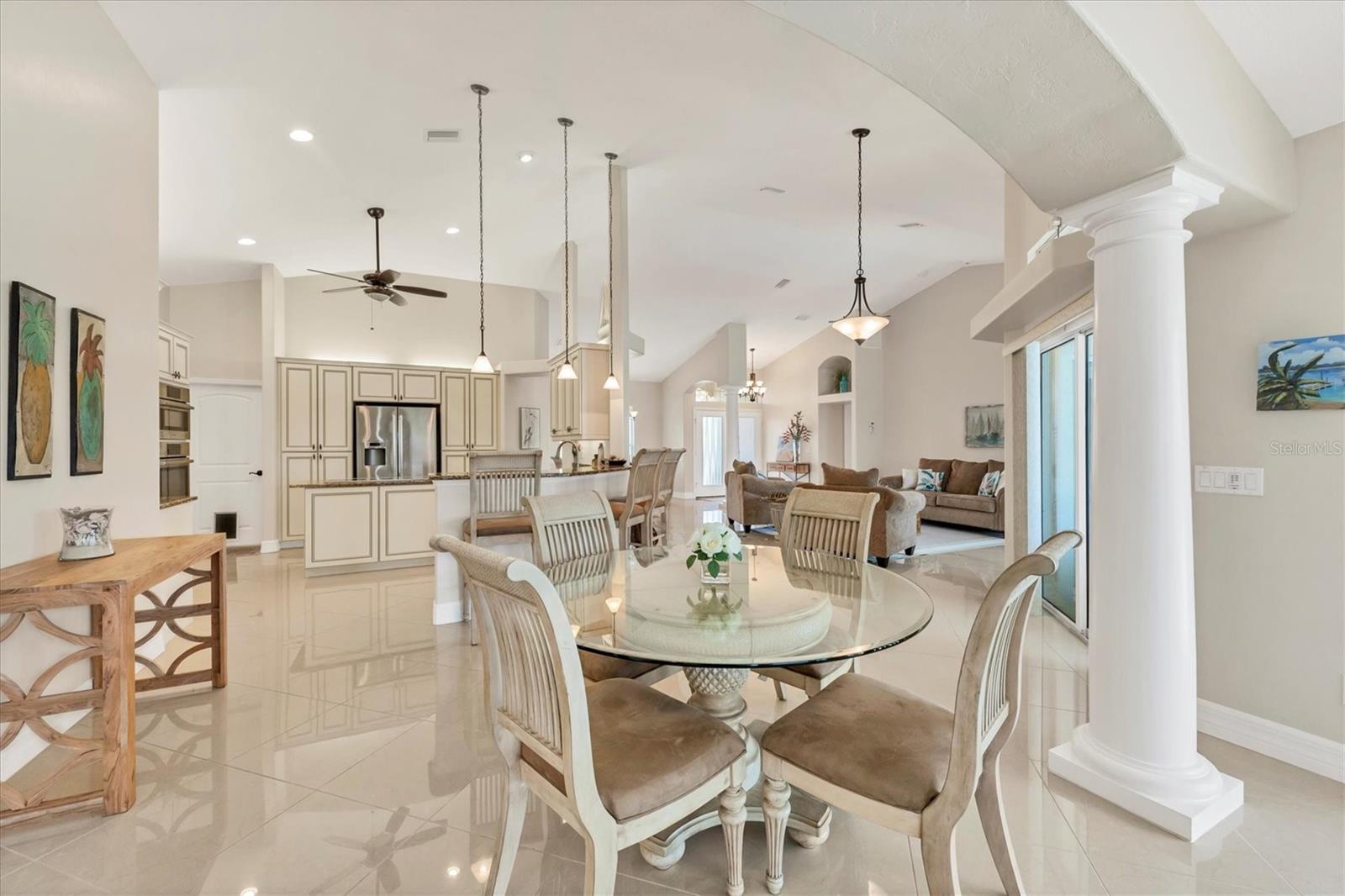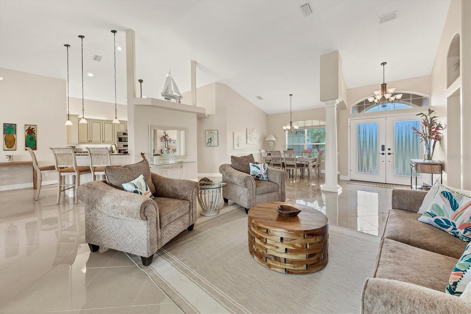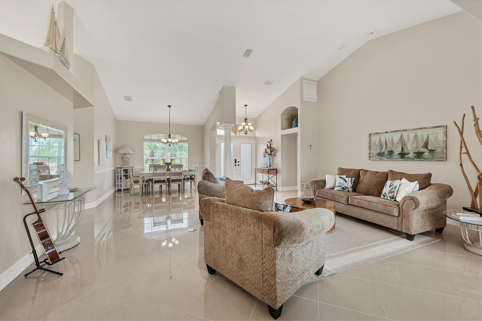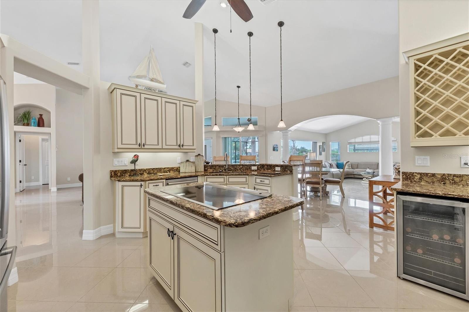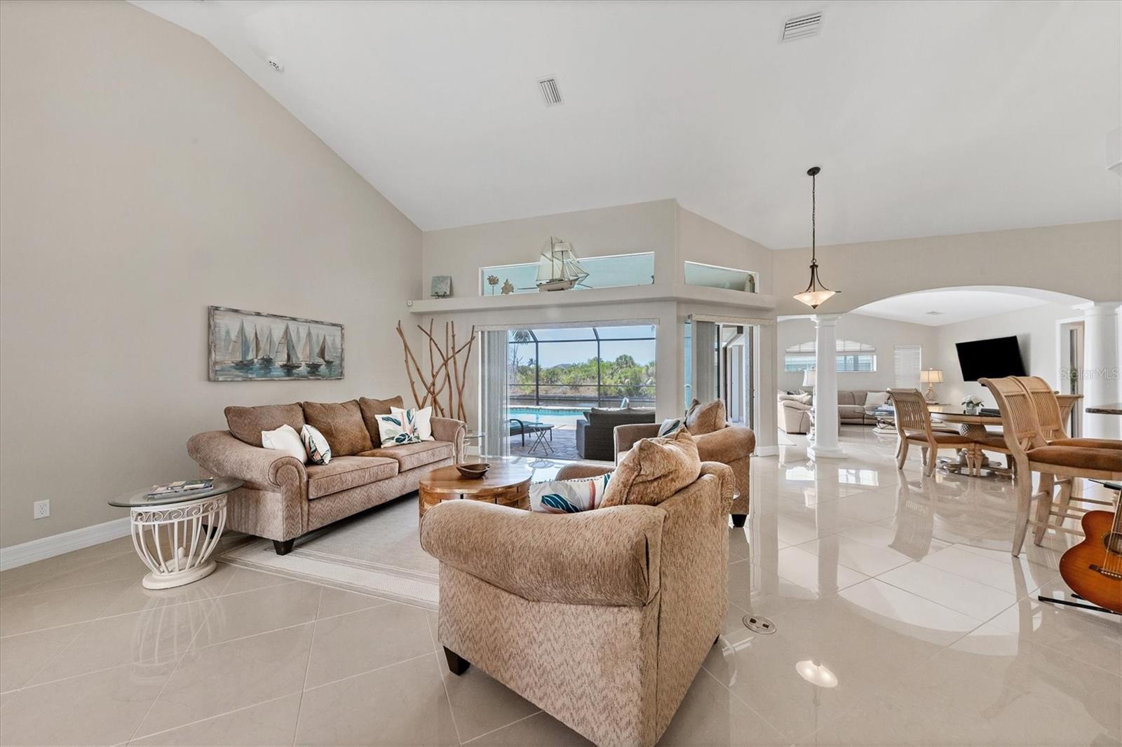 This luxurious home in the quiet neighborhood of South Gulf Cove has everything you need to experience waterfront living at its finest. This property features a seawall, concrete dock with fish cleaning station, water and electric, and the custom built covered 15,000 lb. boat lift roof matches the home roof and both were replaced in 2022. At first glance, this home welcomes you with its beautiful mature landscaping surrounding the home with a stamped concrete driveway and walkway. As you walk through the double entry doors the natural light that engulfs this home will highlight the spacious open concept with exquisite polished tile flooring. There is plenty of room for entertaining friends and family utilizing the two living room areas, formal dining area and breakfast nook all surrounded by the magnificent waterfront views and detailed Architecture. The kitchen is a culinary dream and is sure to impress featuring a kitchen bar, granite counter tops, wood cabinets, under cabinet lighting, built in wine rack, wine refrigerator, double ovens, an island Bosch cooktop with down draft, matching Bosch appliances and central vac system. The popular Florida split floor plan features the privacy of the main bedroom being separated from the guest bedrooms. The oversized main bedroom features a tray ceiling, a walk in closet and reach in closet with sliders that go out to the lanai. The main bathroom highlights dual vanities with granite countertops, private water closet, a glass enclosed walk in shower and relaxing garden soaking tub to unwind after a long day. The guest bedrooms both have reach in closets and share the guest bathroom which features a large walk in tiled shower and granite counters. The laundry room can be accessed both by the kitchen and through the garage which is perfect when working outside and includes a cabinet with sink and granite top, and shelving. The oversized double garage features an epoxy floor, cobalt metal cabinets, built in work area and extra space needed to store your toys. When the work is done and you are ready to mellow down and get some sun, your outdoor lanai space is where it's at. Float in your saltwater heated pool with upgraded wifi pool controls or relax those tired muscles in the attached saltwater hot tub. Sit under the cover of your lanai to read a book, or just watch your favorite tv show. It's your own slice of paradise including an outdoor shower, separate pool bath and pool storage room. You are located near some of the most beautiful beaches, Boca Grande, golf courses and you have access to some of the best fishing in Charlotte Harbor and the Gulf of Mexico.