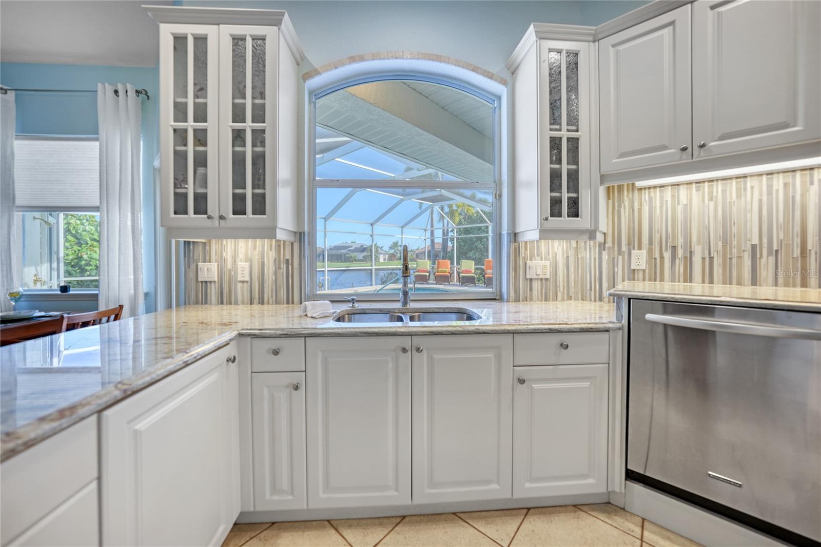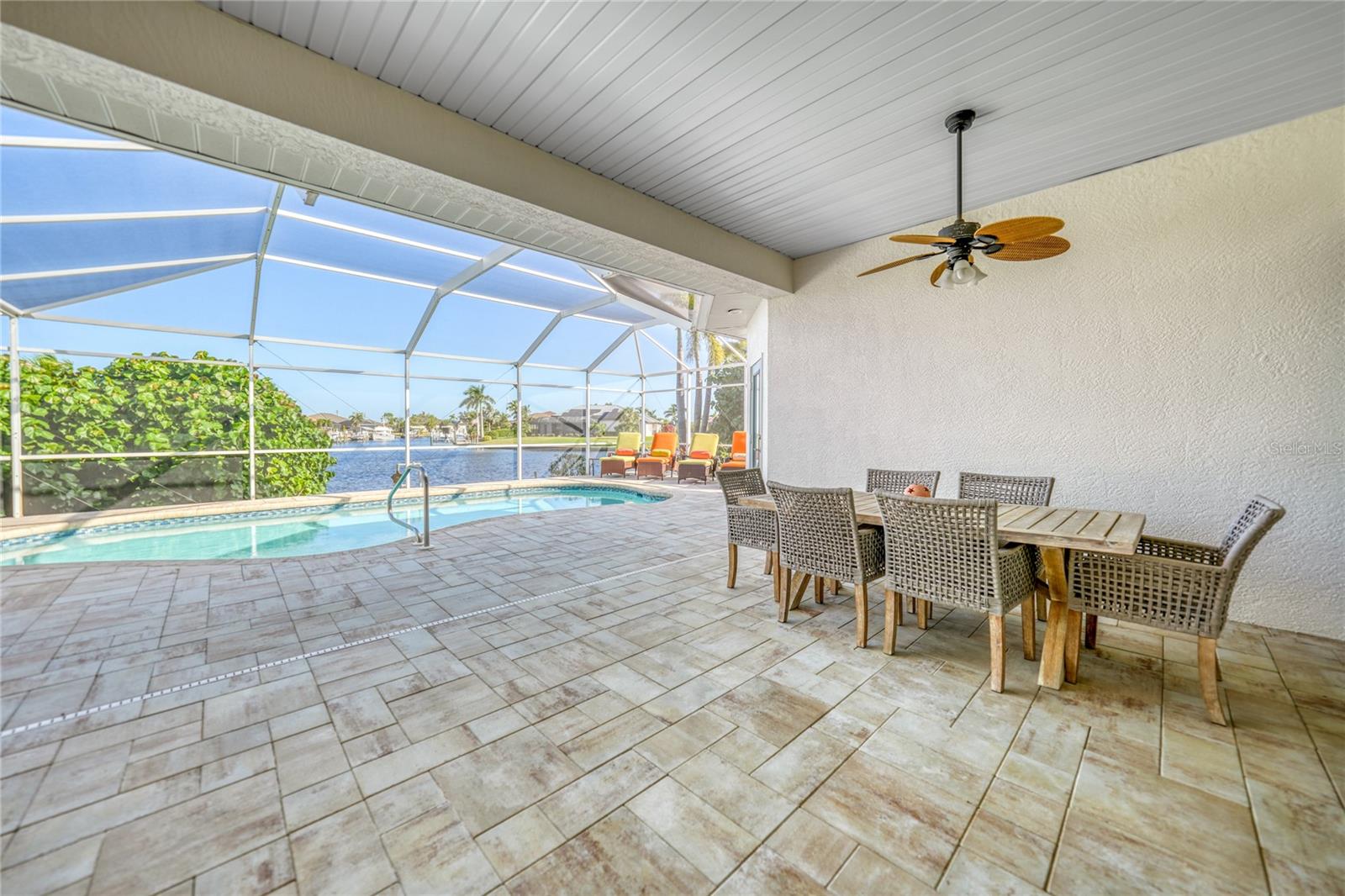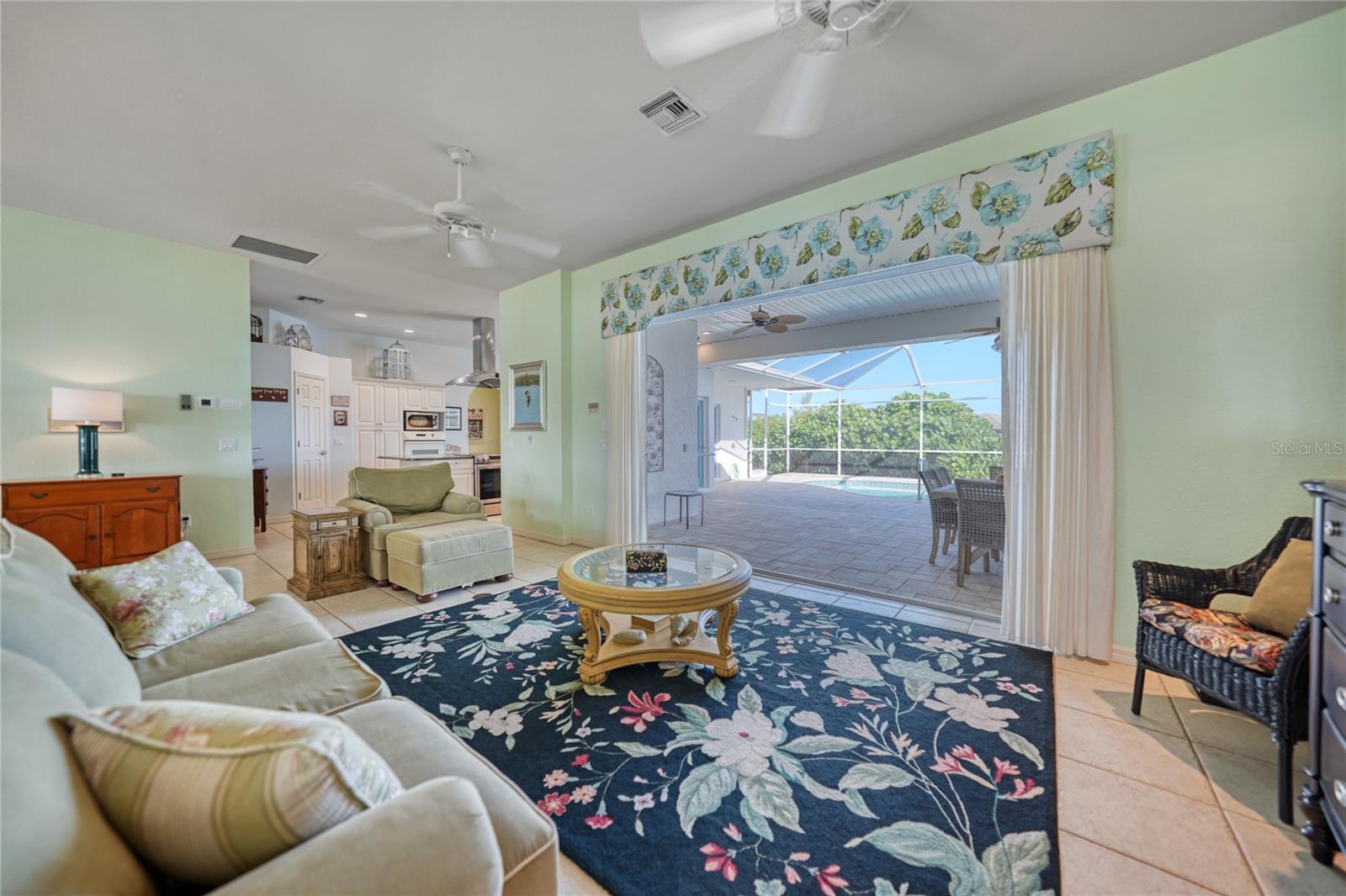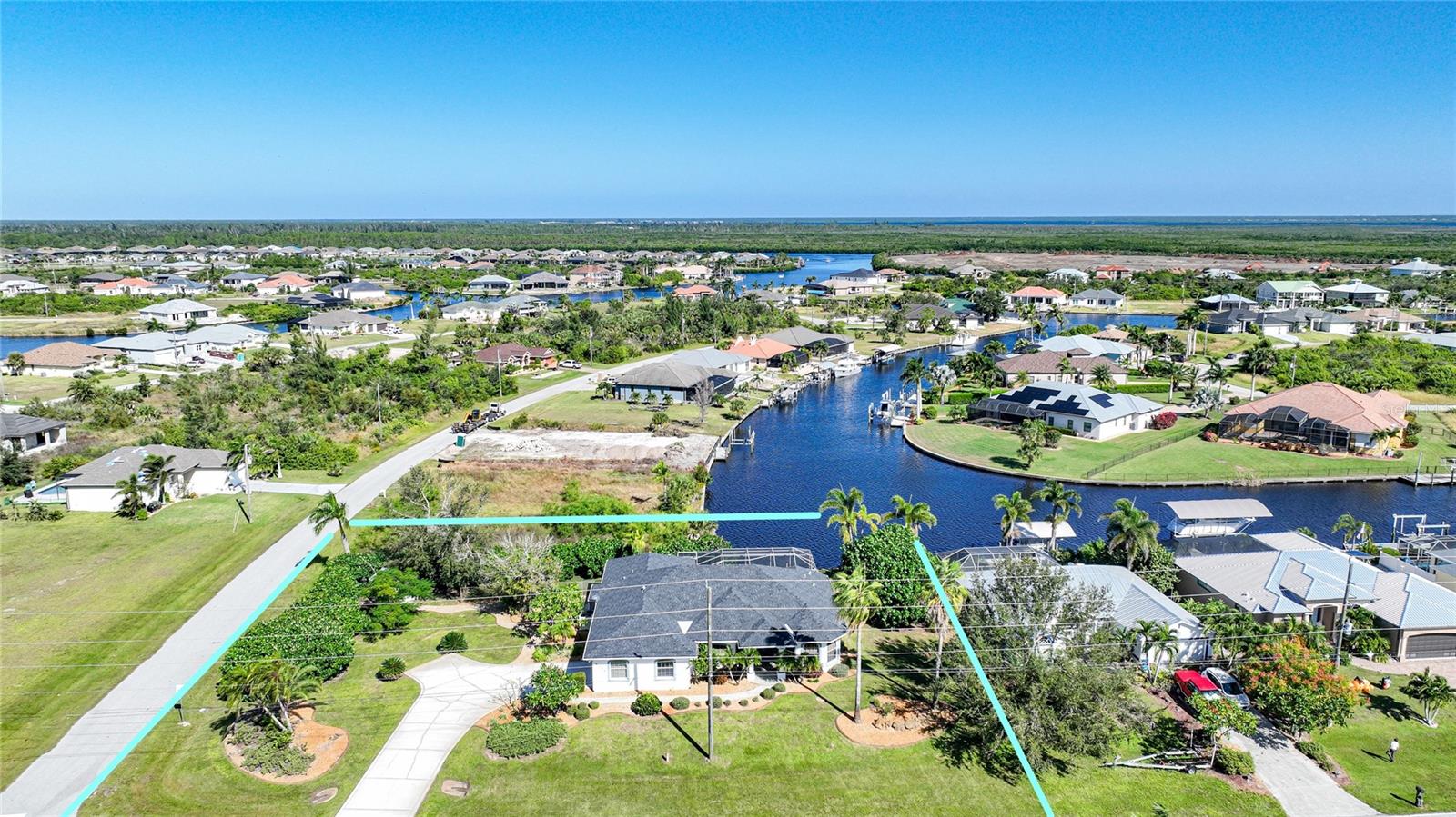 SAILBOAT WATER on DOUBLE LOT on over 1/2 an acre with 2628 heated living sq ft and a total sq ft of 3580. Enjoy the views down the canal. This heated swimming pool home features 3 bedrooms + OFFICE/4th bedroom or In-Law Suite and 2 1/2 bathrooms. The kitchen has a walk-in pantry and a pass-through window overlooking lanai-pool and canal. The kitchen also has a large center island, granite counters and glass backsplash, new french door refrigerator, glass top range and convection oven never used. Living room has 9 ft ceilings with a wall of windows that show off the lanai, pool and canal views. The primary suite is located on one side of the home with a private entrance/exit to the pool/lanai/canal. The primary suite also includes TWO walk-in closets, views of the waterway in the front of the home and canal in the back of the home. The primary ensuite offers large walk-in shower with dual shower heads, built-in dressing table, dual vanities and private toilet area. The bonus/flex room is a great office/workout room utilizing the private entrance. The additional 2 bedrooms are on the opposite side of the home along with 2nd full bathroom. The amazing screened in lanai and pool area have a 1/2 bath, newer paved deck and refurbished pool with glass tile. This double lot also has a shed for additional storage. A 30x60 fenced yard great for the little ones or dogs and even has a separate door office area. (2023) New Roof, new A/C, On-Demand hot water heater, pool cage new screens, (2022) pool heat pump, paddle fans through home. Additional assets all toilets are 1 piece, sprinkler system by well for irrigation. South Gulf Cove offers several parks, community center and more. Located about 12 miles to Englewood Beach, about 6 miles to 5 public golf courses and several restaurants, shops and more all within 10 miles.