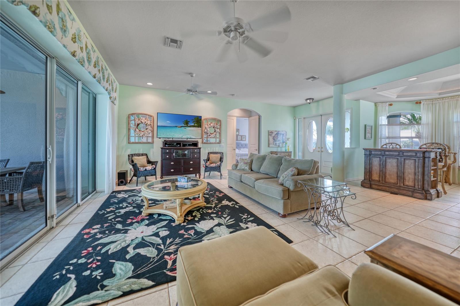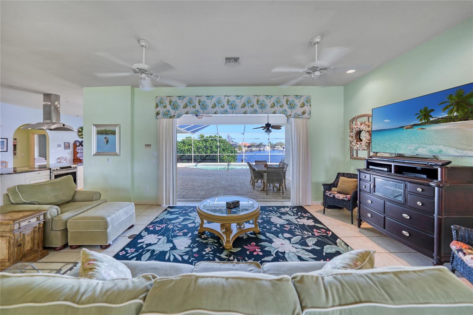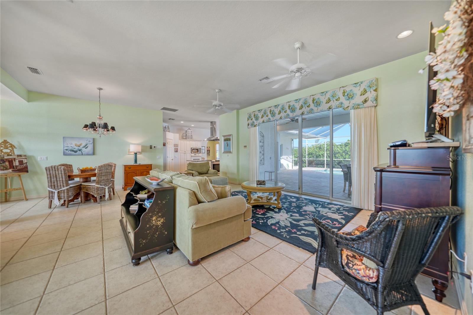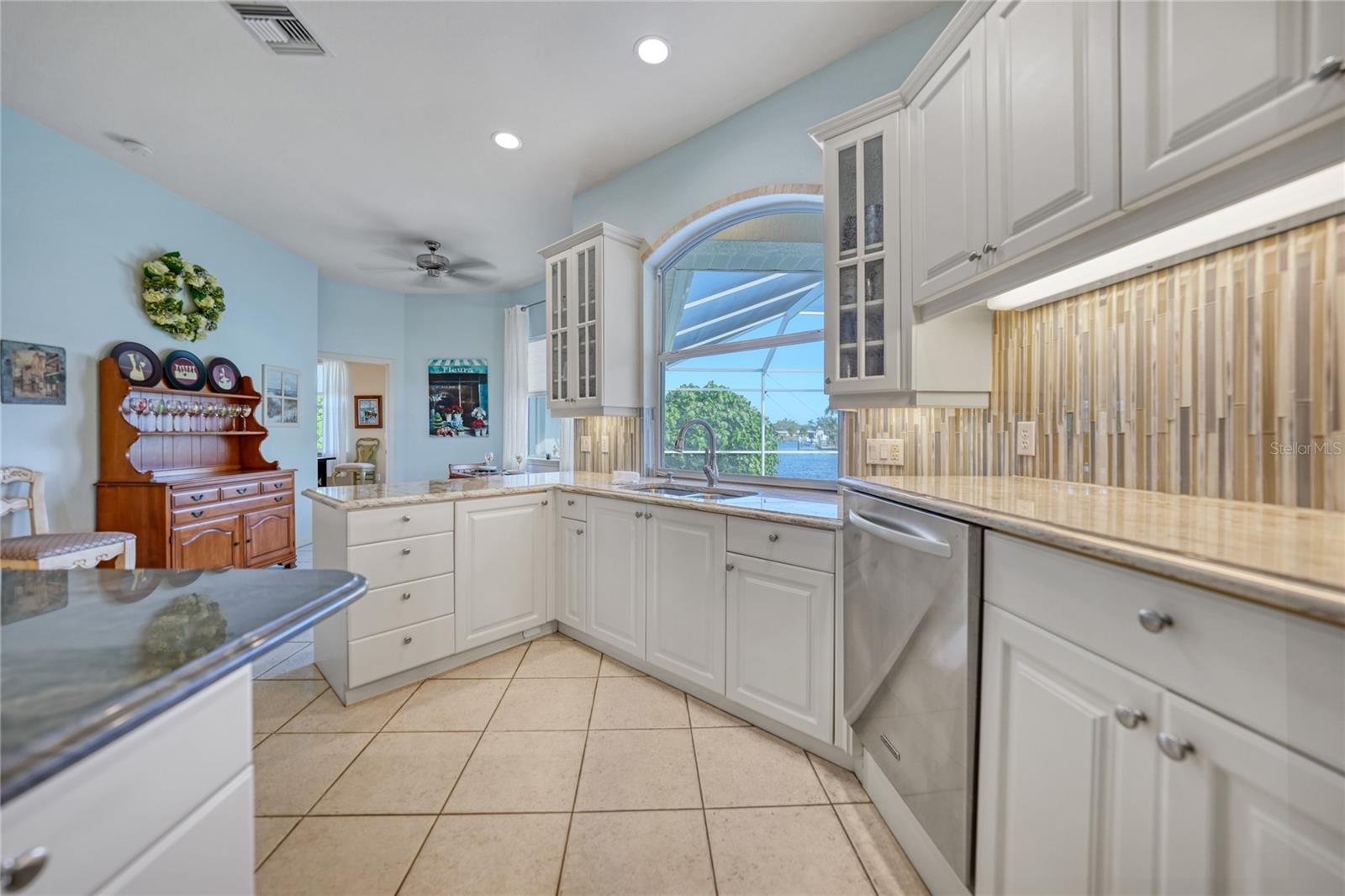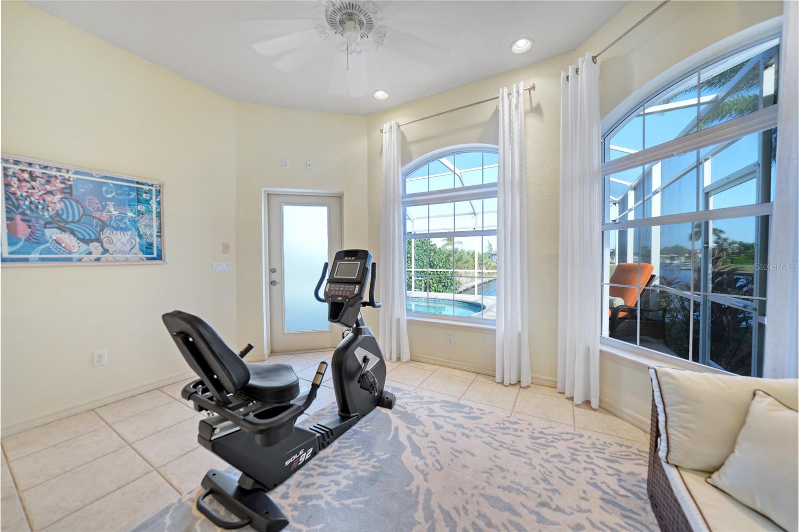 SAILBOAT WATER on DOUBLE LOT on over 1/2 an acre with 2628 heated living sq ft and a total sq ft of 3580. Enjoy the views down the canal. This heated swimming pool home features 3 bedrooms + OFFICE/4th bedroom or In-Law Suite and 2 1/2 bathrooms. The kitchen has a walk-in pantry and a pass-through window overlooking lanai-pool and canal. The kitchen also has a large center island, granite counters and glass backsplash, new french door refrigerator, glass top range and convection oven never used. Living room has 9 ft ceilings with a wall of windows that show off the lanai, pool and canal views. The primary suite is located on one side of the home with a private entrance/exit to the pool/lanai/canal. The primary suite also includes TWO walk-in closets, views of the waterway in the front of the home and canal in the back of the home. The primary ensuite offers large walk-in shower with dual shower heads, built-in dressing table, dual vanities and private toilet area. The bonus/flex room is a great office/workout room utilizing the private entrance. The additional 2 bedrooms are on the opposite side of the home along with 2nd full bathroom. The amazing screened in lanai and pool area have a 1/2 bath, newer paved deck and refurbished pool with glass tile. This double lot also has a shed for additional storage. A 30x60 fenced yard great for the little ones or dogs and even has a separate door office area. (2023) New Roof, new A/C, On-Demand hot water heater, pool cage new screens, (2022) pool heat pump, paddle fans through home. Additional assets all toilets are 1 piece, sprinkler system by well for irrigation. South Gulf Cove offers several parks, community center and more. Located about 12 miles to Englewood Beach, about 6 miles to 5 public golf courses and several restaurants, shops and more all within 10 miles.