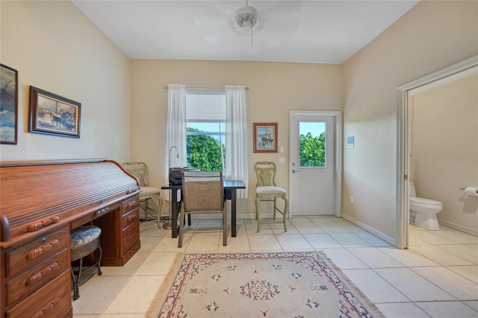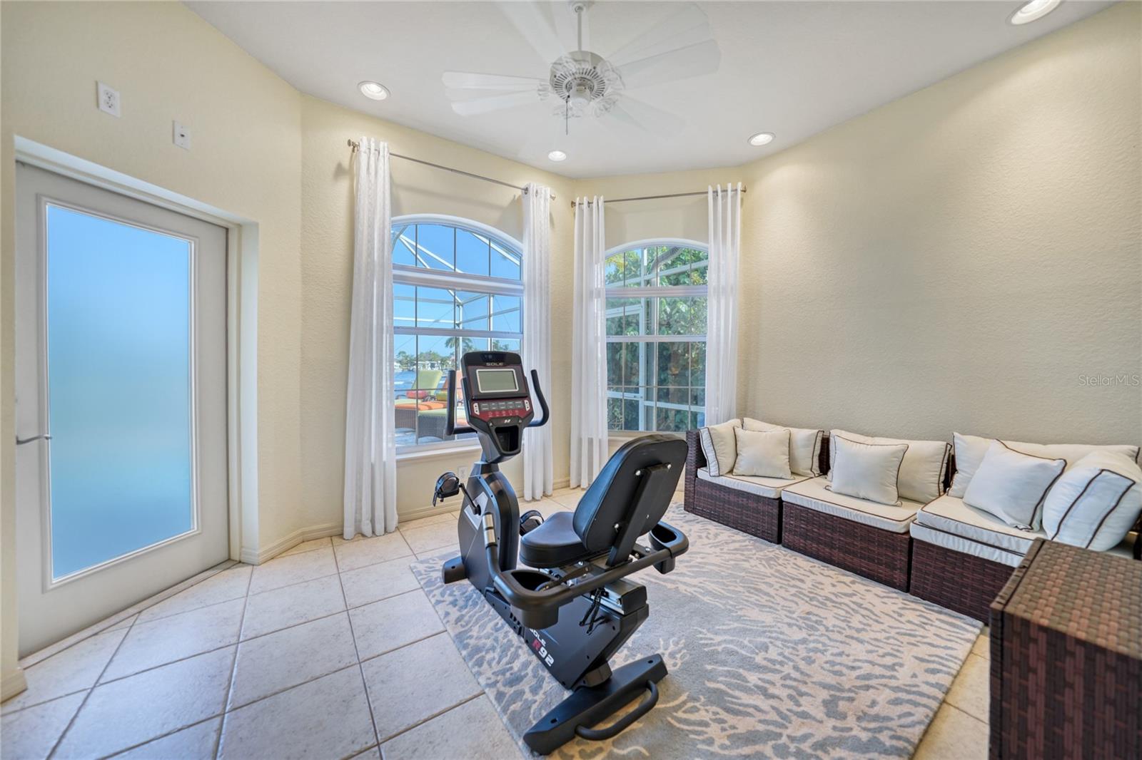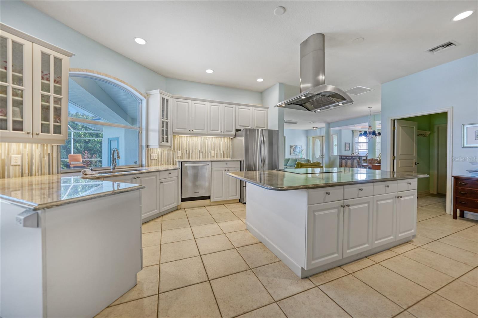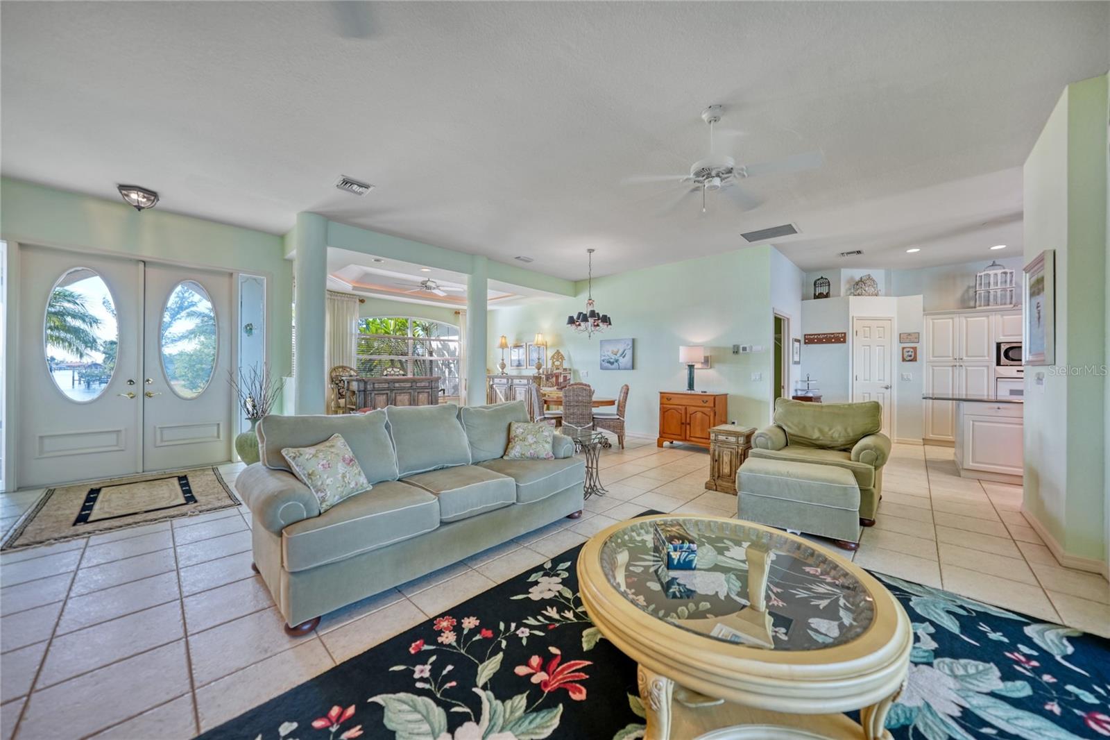 SAILBOAT WATER on DOUBLE LOT on over 1/2 an acre with 2628 heated living sq ft and a total sq ft of 3580. Enjoy the views down the canal. This heated swimming pool home features 3 bedrooms + OFFICE/4th bedroom or In-Law Suite and 2 1/2 bathrooms. The kitchen has a walk-in pantry and a pass-through window overlooking lanai-pool and canal. The kitchen also has a large center island, granite counters and glass backsplash, new french door refrigerator, glass top range and convection oven never used. Living room has 9 ft ceilings with a wall of windows that show off the lanai, pool and canal views. The primary suite is located on one side of the home with a private entrance/exit to the pool/lanai/canal. The primary suite also includes TWO walk-in closets, views of the waterway in the front of the home and canal in the back of the home. The primary ensuite offers large walk-in shower with dual shower heads, built-in dressing table, dual vanities and private toilet area. The bonus/flex room is a great office/workout room utilizing the private entrance. The additional 2 bedrooms are on the opposite side of the home along with 2nd full bathroom. The amazing screened in lanai and pool area have a 1/2 bath, newer paved deck and refurbished pool with glass tile. This double lot also has a shed for additional storage. A 30x60 fenced yard great for the little ones or dogs and even has a separate door office area. (2023) New Roof, new A/C, On-Demand hot water heater, pool cage new screens, (2022) pool heat pump, paddle fans through home. Additional assets all toilets are 1 piece, sprinkler system by well for irrigation. South Gulf Cove offers several parks, community center and more. Located about 12 miles to Englewood Beach, about 6 miles to 5 public golf courses and several restaurants, shops and more all within 10 miles.