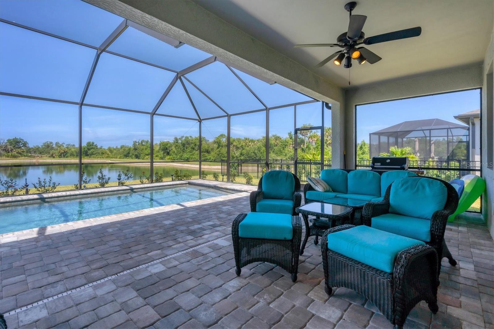 Welcome to this Stunning Marsala Floor Plan with 3 Beds & 3 Baths Plus a Den/Office in the Exciting Newer Community of Biscayne Landing. With all the Upgrades it Just Doesn't Make Sense to Buy New. This Home has Custom Interior Paint with Crown Molding throughout. Your Own Private Pool & Spa all Overlooking a Large Pond with Protected Lands on one side. As you Enter this home your Eyes are Drawn through to the Open Floorplan of the Kitchen, Great Room And Dining Area. The Kitchen has a Large Granite Island with Plenty of Counter Space for Entertaining and a Walk-In Pantry. The Dining area will accomodate a sizeable table for 6-8. A 24x16 Great Room allows enough room to Host Sporting Event watch parties or just enjoy casual time with family & friends. The View of the Pond, Pool & Lanai give a calm peaceful feeling while keeping everything bright. Checking out the rooms as you Enter the Home the 1st Bedroom is a spacious 12x12 with Walk in Closet, the Guest Bath is conveniently located adjacent to it. Just past the Foyer is the Den/Office 13x11 with Double Entry Doors. The 3rd Bedroom is 11x11 and is located across the hallway with it's own EnSuite Bathroom. The Entry from the Garage & Large Laundry room with Sink is also located in this area. Access to the Owners Suite 14x15 is off of the Great Room with 2 Large Walk-In Closets. The Owners Bath is Nicely Appointed with Double Sinks, Separate Shower and Soaking Tub. The Flooring is Tile throughout and all counters are Granite. Lets Venture Outside to the Lanai & Pool Area. This is one of the Few Remaining Lots that will Accomodate a Private Pool. The Views of the Pond with the Natural Surroundings & Wildlife are Amazing and Can't be Duplicated. The Salt Water Pool & Spa are Heated with a Pebble Tec Interior, All Remote Controlled and surrounded with Pavers and Screened In. This is a very Active Community with Pool, Exercise Room & Pickle Ball Courts. All underground Utilities and sidewalks. No CDD Fees and a low HOA Fee are just some of the Reasons to Check out this Home. Location is Key and Access to Major Routes, Restaurants, Shopping and Beaches are all Nearby. Put this Home on your List to View and See what all the Buzz is about.