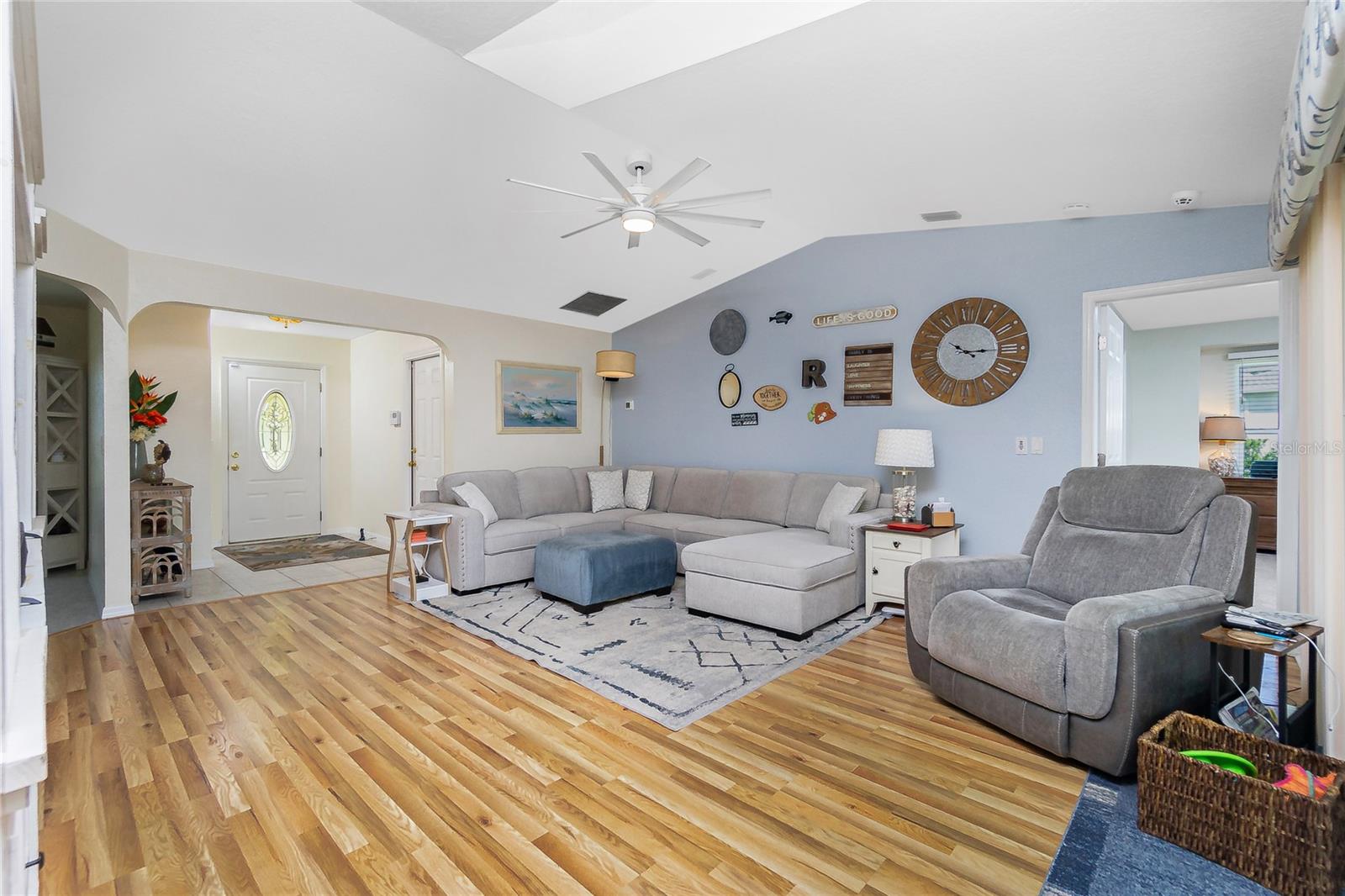 MOTIVATED SELLER! PRICE REDUCTION! BEAUTIFUL GULF COVE POOL HOME with upgrades galore! New sliding glass doors, impact windows, remodeled kitchen, remodeled bathrooms, new ceiling fans throughout, new pool heater and salt system, new garage door opener, fresh epoxy on garage floor, not to mention NEW ROOF and NEW SKYLIGHTS! (Full list of upgrades is attached.) All the perks of new construction! No upgrade needed for this location. With a peekaboo water view, fenced yard and oversized lot, this is an ideal spot. The community of Gulf Cove offers a voluntary HOA, which includes use of the clubhouse and community boat ramp. This home is close to beaches, golf courses, shopping and restaurants, while still offering a tranquil, tropical setting. As if there aren’t enough reasons to take a look, Seller is offering a home warranty, AND, flood insurance is transferrable to Buyer! MAKE AN APPOINTMENT TODAY!