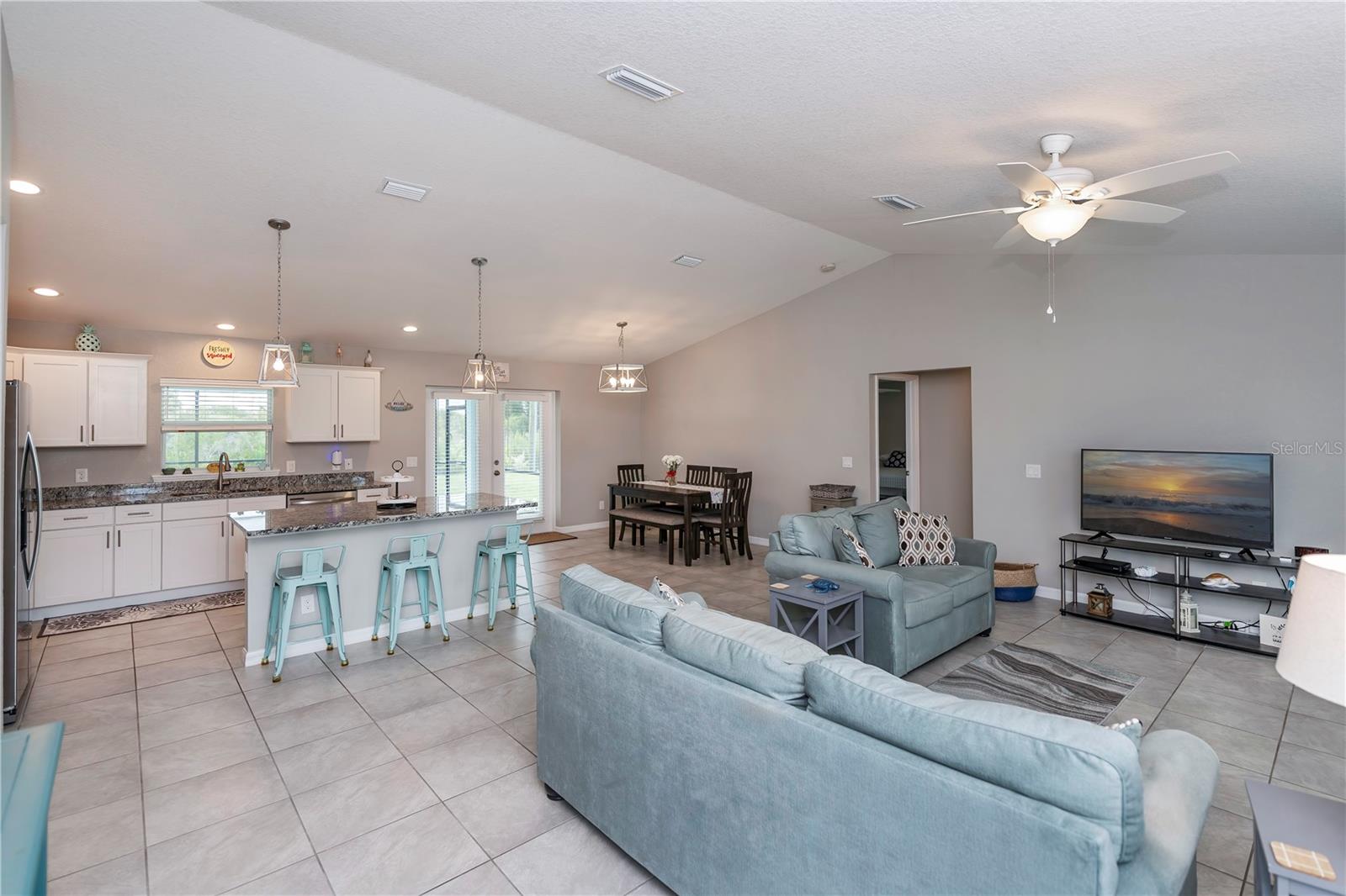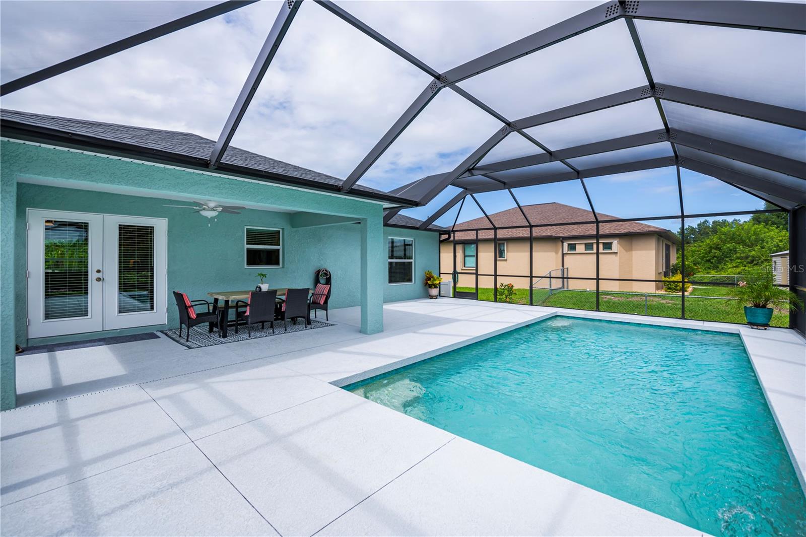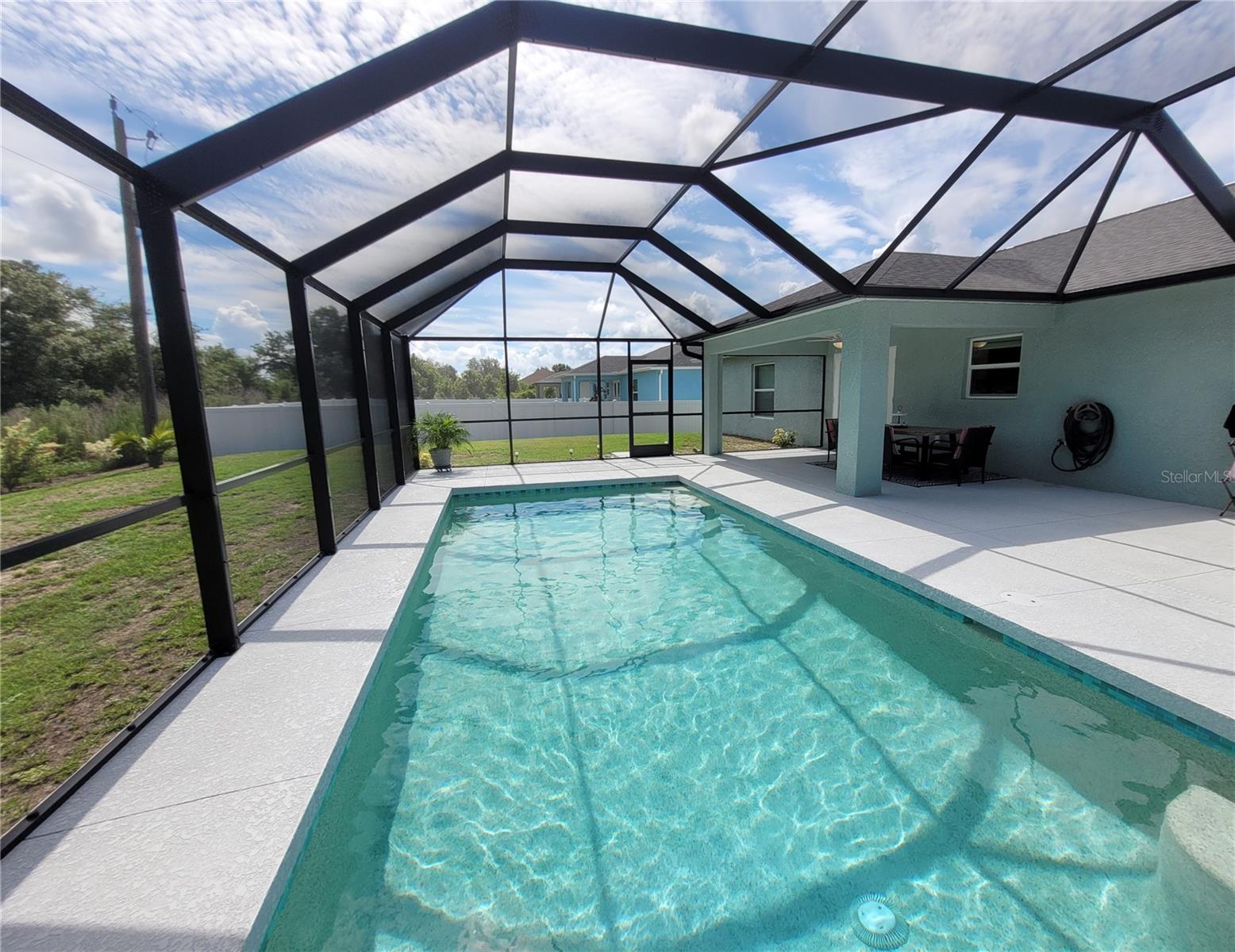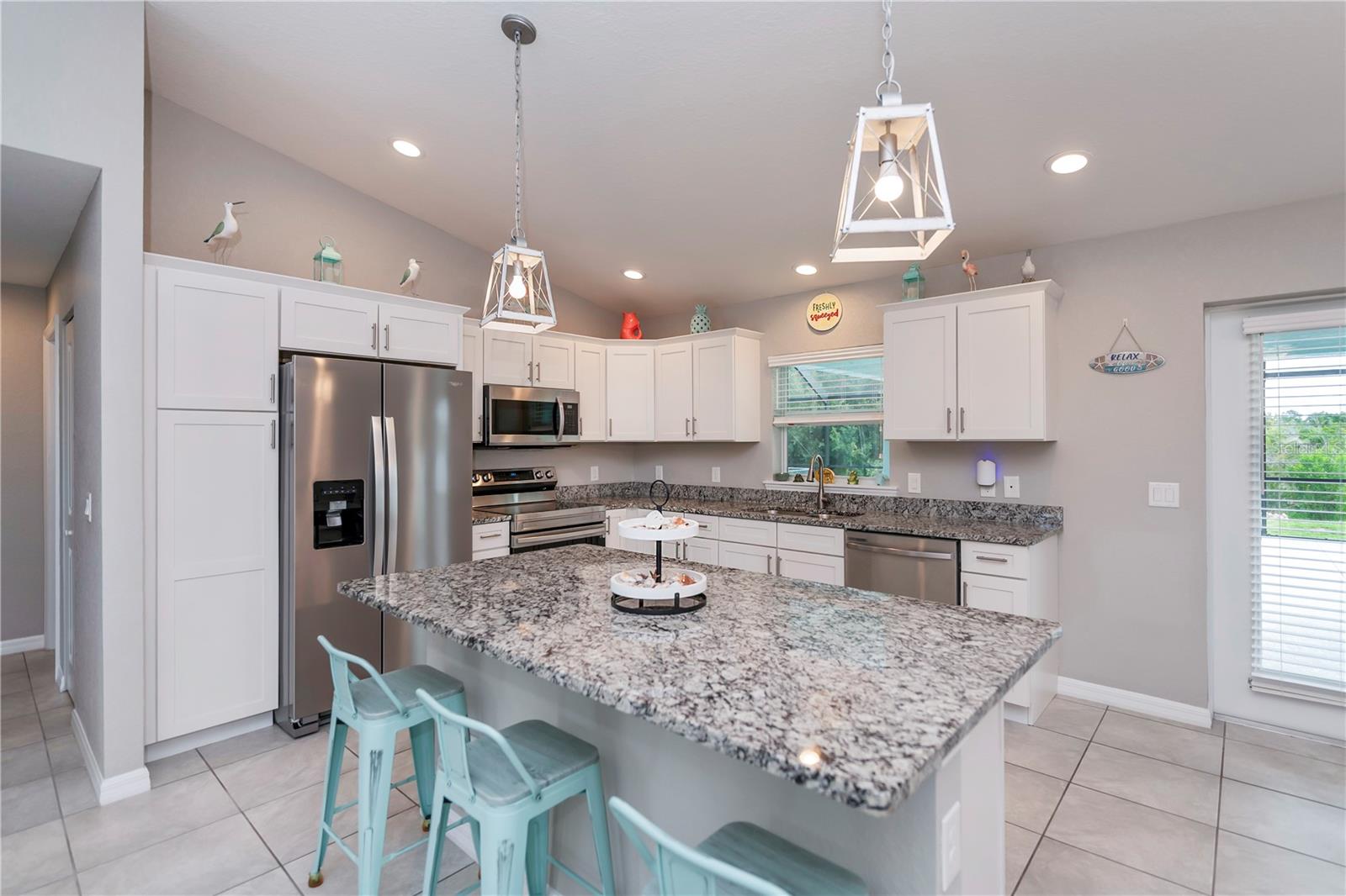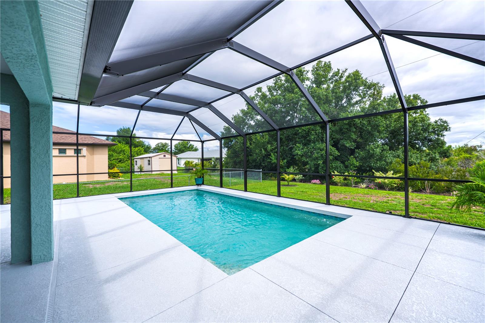 Price adjustment~ Don't wait for a pool to be built this home comes with a pool ! Located in an X Flood Zone, with No CDD and No HOA. This Coastal Oasis has 3 bedrooms, 2 bathrooms, 2 car garage, that offers a split plan perfect for guests. The open-concept floor plan includes a light and bright kitchen with white cabinets ,vaulted ceilings, an oversized primary bedroom, granite countertops in the kitchen and bathrooms, recessed lights, ceiling fans, tile throughout, and stainless steel appliances. The Crystal-Clear Pool provides a peaceful retreat perfect escape from the heat, where friends, family can create memories. This home comes with hurricane/storm shutters and a generator outlet for extra piece of mind and security. It's only a short 10-minute drive away from several beaches, restaurants, and golf courses. Don't miss out on this exceptional opportunity to own a piece of paradise in sunny Florida! Schedule your showing today!