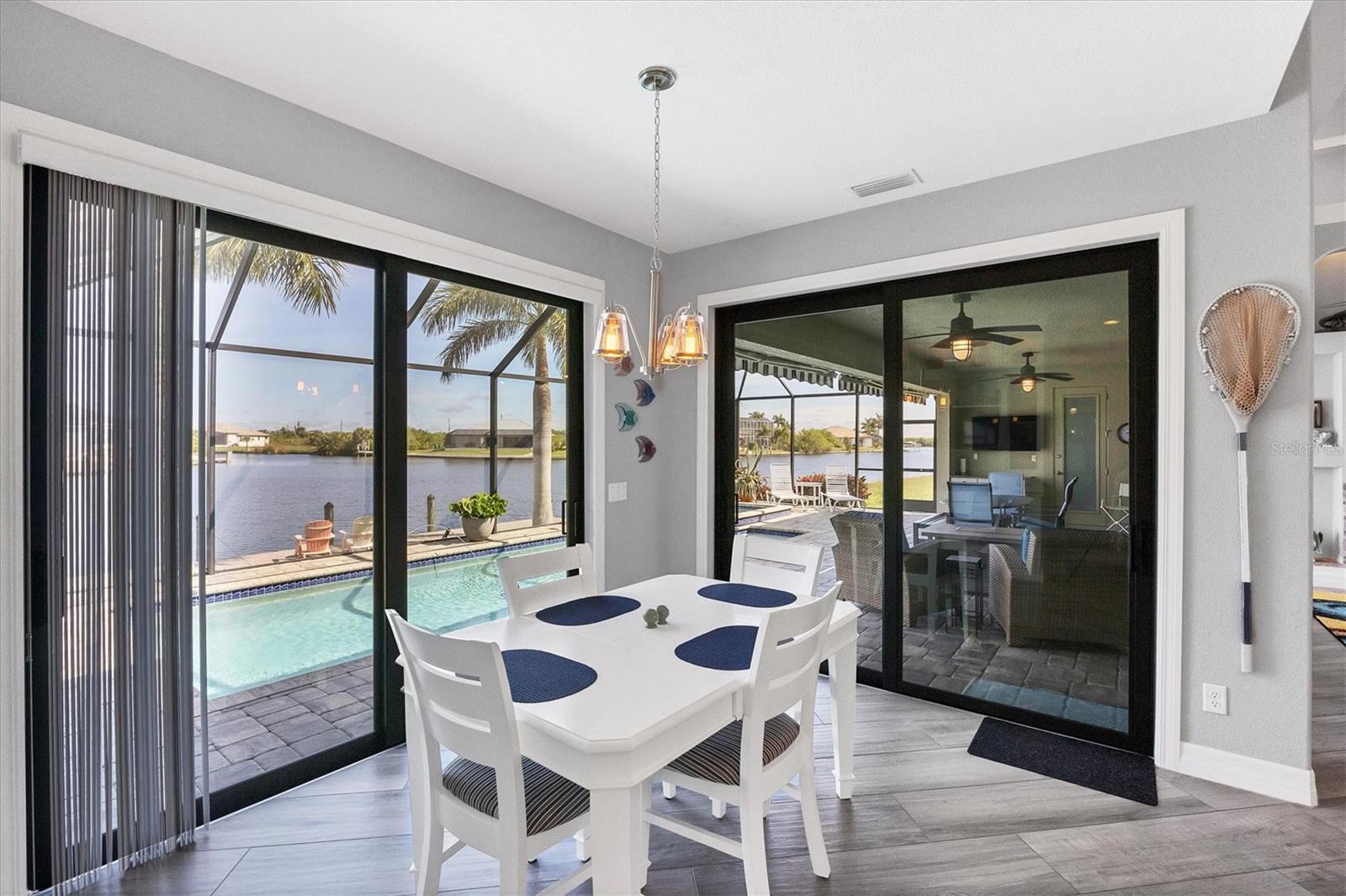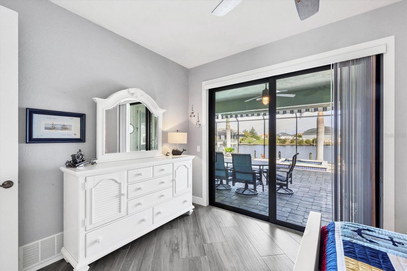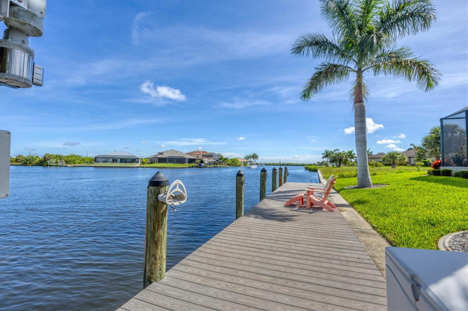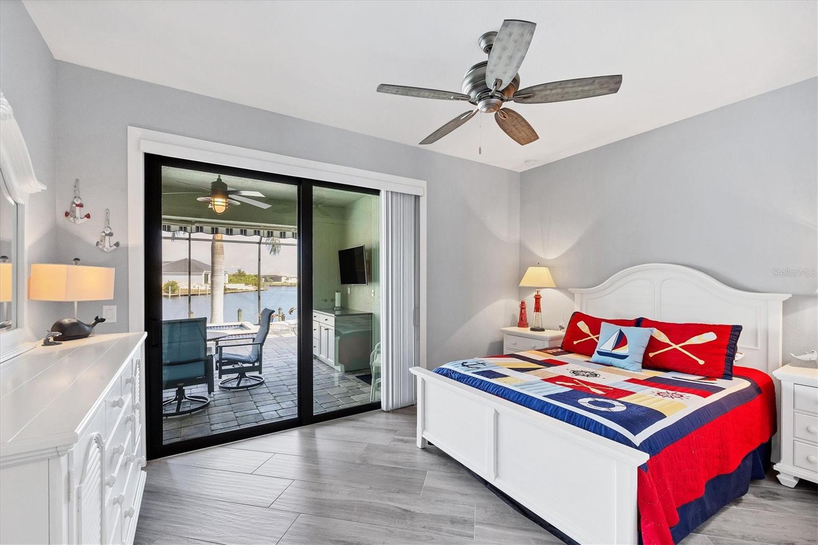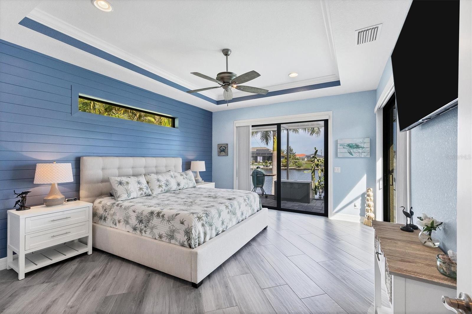 Welcome to paradise in this stunning executive home nestled in a prime Gulf access location with coveted western exposure and intersecting canal views! Sailboat water enthusiasts will delight in the 3-bedroom, 2.5-bath retreat featuring a luxurious pool and spa, complemented by plank tile floors throughout. Step inside to discover a family room adorned with a coffered ceiling, custom built-ins, and a cozy fireplace, all illuminated by an expansive 8-foot zero-degree slider. The gourmet kitchen boasts custom cabinetry, quartz counters and an island, a propane range, a walk-in pantry, and a stylish subway tile backsplash. The primary bedroom is a sanctuary with its tray ceiling, shiplap accent wall, and dual sets of sliding glass doors leading outdoors. The ensuite bath features quartz counters, a walk-in shower, a bidet, upgraded tiles, and a colossal (12x10) custom walk-in closet. Two sizable guest suites offer comfort and privacy, with the guest bathroom showcasing quartz counters. A private den is thoughtfully equipped with a 2-built-in desk and cabinets, perfect for remote work or study. Outside, the lanai beckons with its paver deck, heated pool, and spa. Remote Sunseeker awnings offer extra sun protection and a convenient pool bath for all guests. A 54-foot composite dock along the seawall includes water and electric service, complemented by a 16k boat lift. Additional features abound, including impact glass throughout, roof 2023, spray foam insulation over the house and garage for energy efficiency, surround sound, Ring doorbell and 6 cameras, central vacuum system, irrigation, a mini-split AC in the garage with an 18-foot-wide door for ample space, two outdoor storage sheds, and a generator hookup. This exceptional property blends luxury with functionality, offering the quintessential Florida lifestyle with every imaginable amenity for discerning homeowners. Discover waterfront living at its finest in this meticulously crafted residence. Schedule your private tour today and envision life in this coastal dream home.