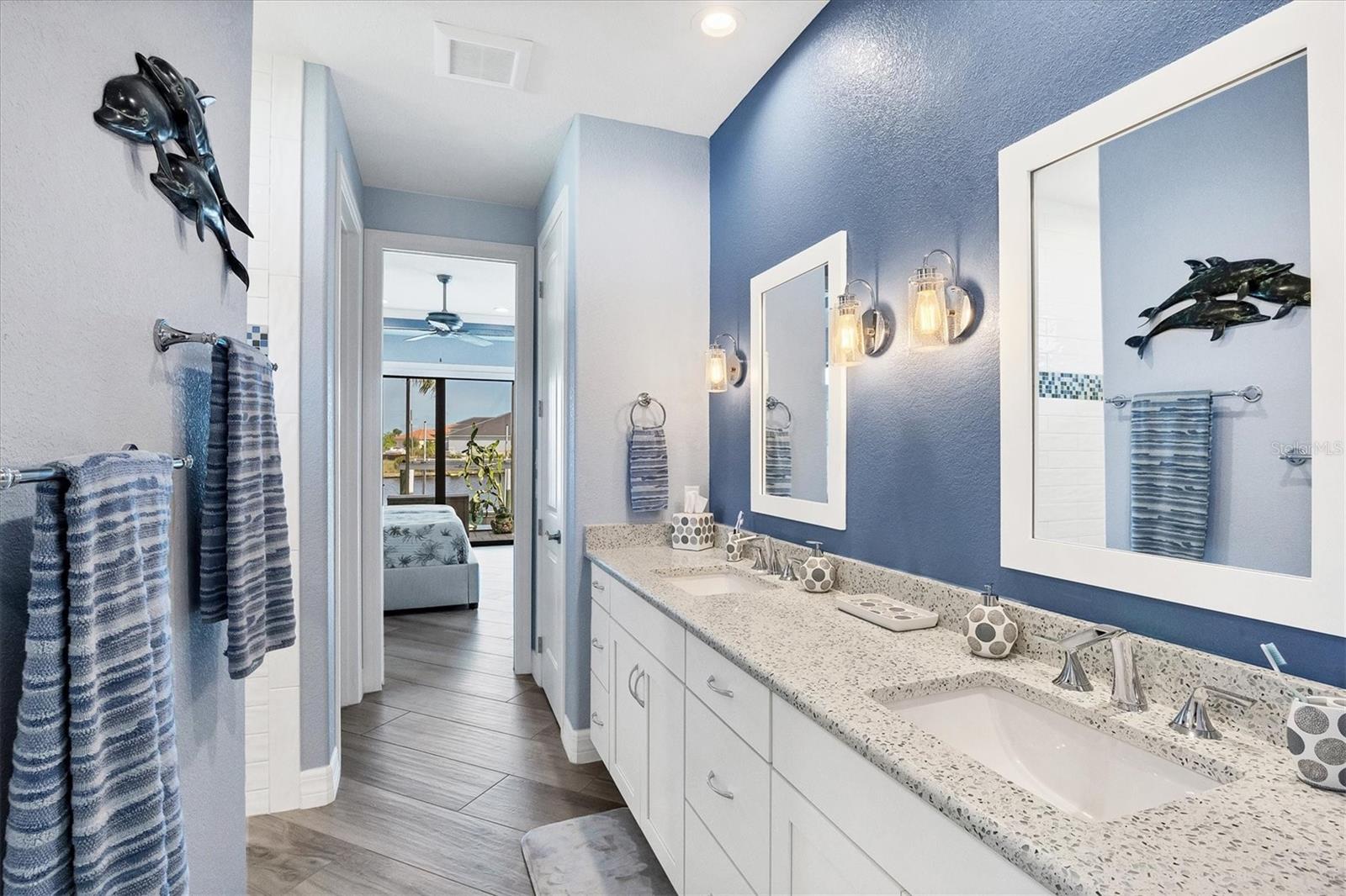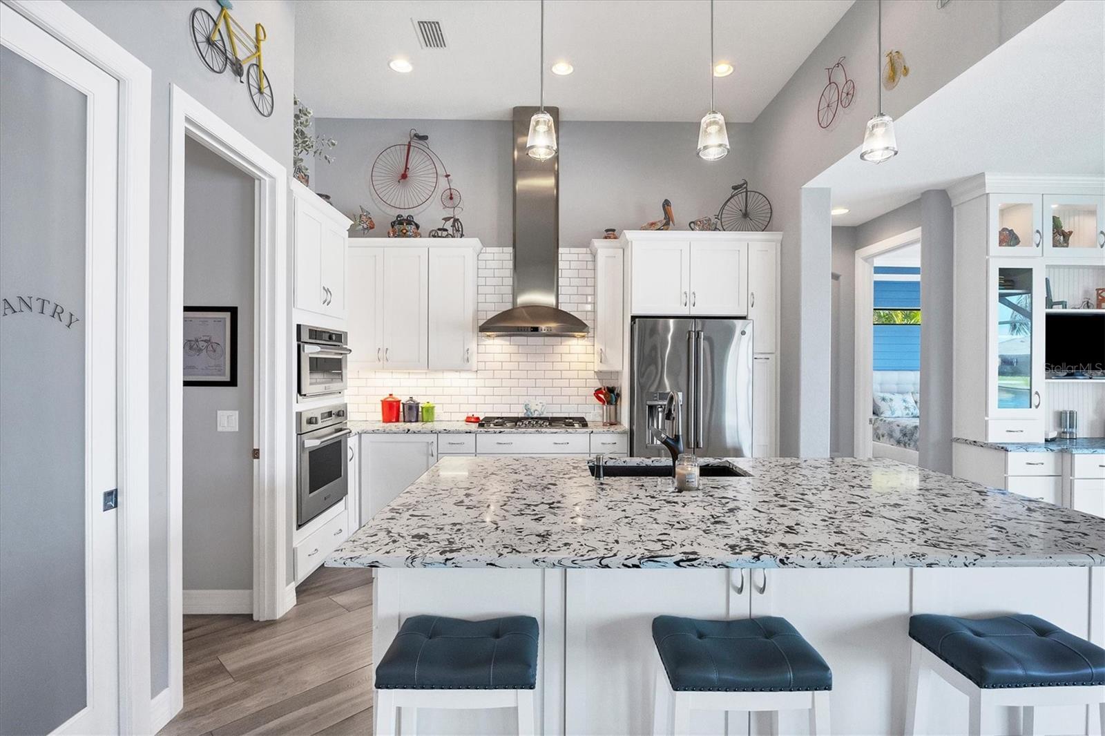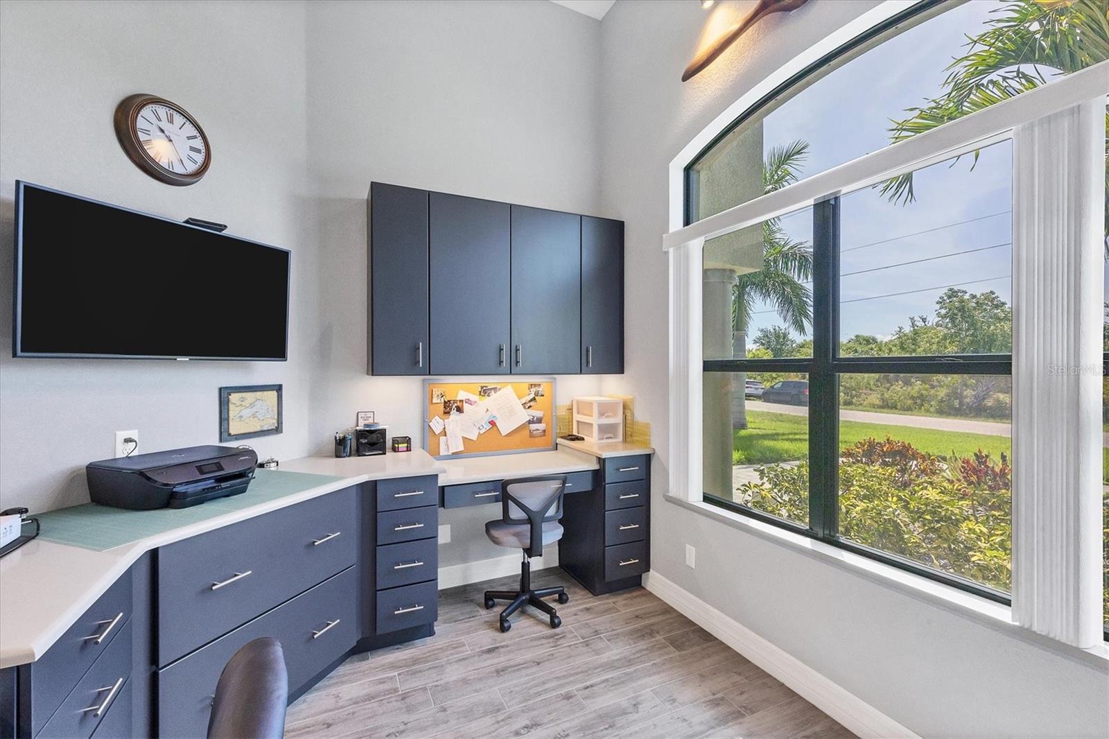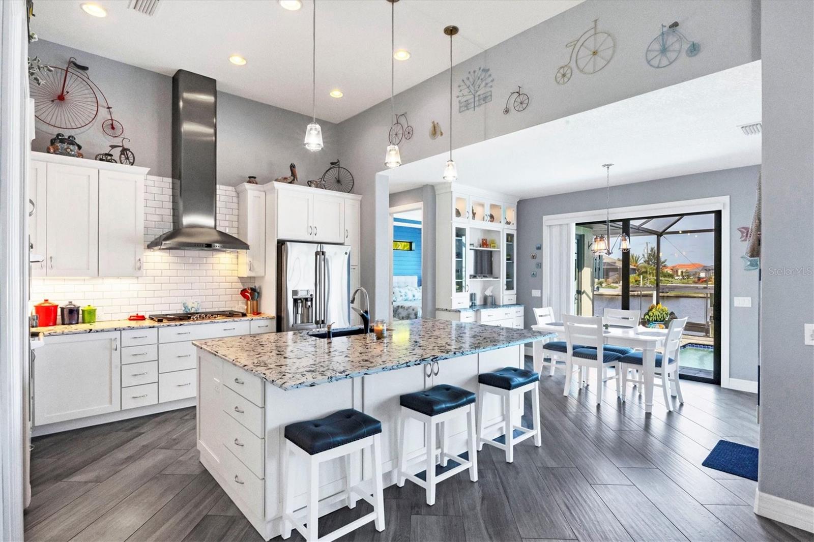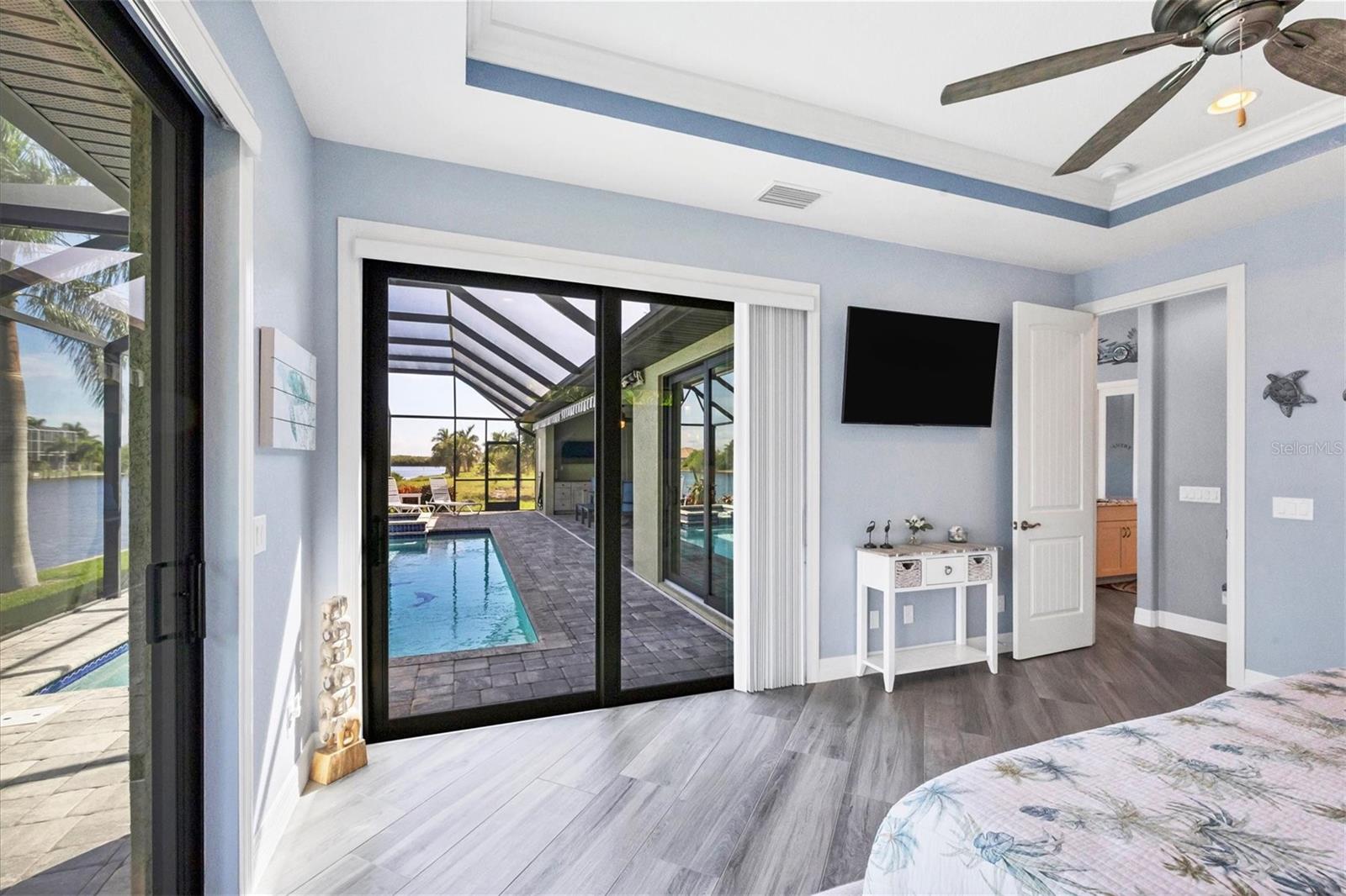 Welcome to paradise in this stunning executive home nestled in a prime Gulf access location with coveted western exposure and intersecting canal views! Sailboat water enthusiasts will delight in the 3-bedroom, 2.5-bath retreat featuring a luxurious pool and spa, complemented by plank tile floors throughout. Step inside to discover a family room adorned with a coffered ceiling, custom built-ins, and a cozy fireplace, all illuminated by an expansive 8-foot zero-degree slider. The gourmet kitchen boasts custom cabinetry, quartz counters and an island, a propane range, a walk-in pantry, and a stylish subway tile backsplash. The primary bedroom is a sanctuary with its tray ceiling, shiplap accent wall, and dual sets of sliding glass doors leading outdoors. The ensuite bath features quartz counters, a walk-in shower, a bidet, upgraded tiles, and a colossal (12x10) custom walk-in closet. Two sizable guest suites offer comfort and privacy, with the guest bathroom showcasing quartz counters. A private den is thoughtfully equipped with a 2-built-in desk and cabinets, perfect for remote work or study. Outside, the lanai beckons with its paver deck, heated pool, and spa. Remote Sunseeker awnings offer extra sun protection and a convenient pool bath for all guests. A 54-foot composite dock along the seawall includes water and electric service, complemented by a 16k boat lift. Additional features abound, including impact glass throughout, roof 2023, spray foam insulation over the house and garage for energy efficiency, surround sound, Ring doorbell and 6 cameras, central vacuum system, irrigation, a mini-split AC in the garage with an 18-foot-wide door for ample space, two outdoor storage sheds, and a generator hookup. This exceptional property blends luxury with functionality, offering the quintessential Florida lifestyle with every imaginable amenity for discerning homeowners. Discover waterfront living at its finest in this meticulously crafted residence. Schedule your private tour today and envision life in this coastal dream home.