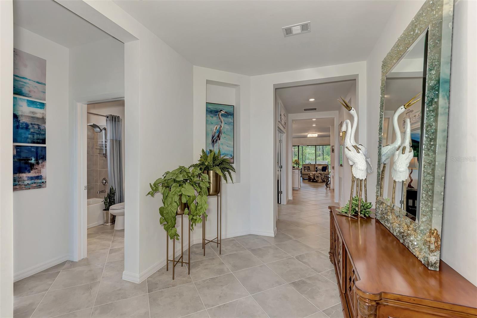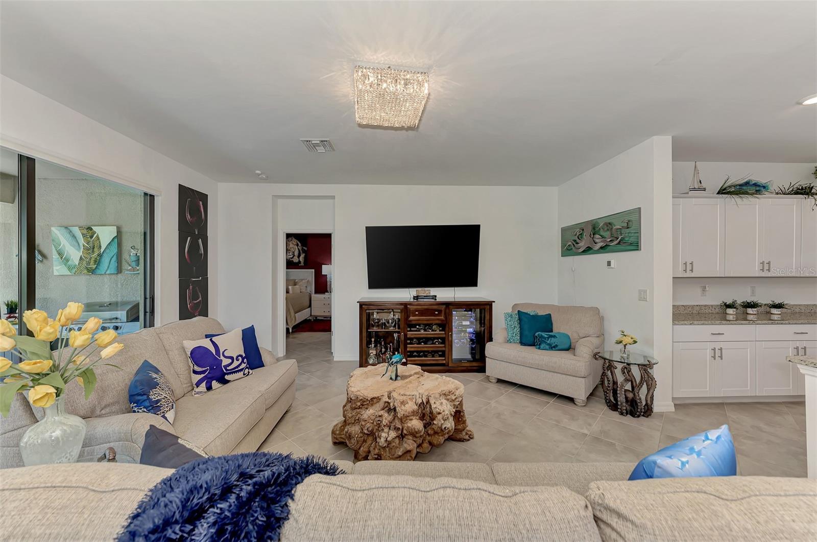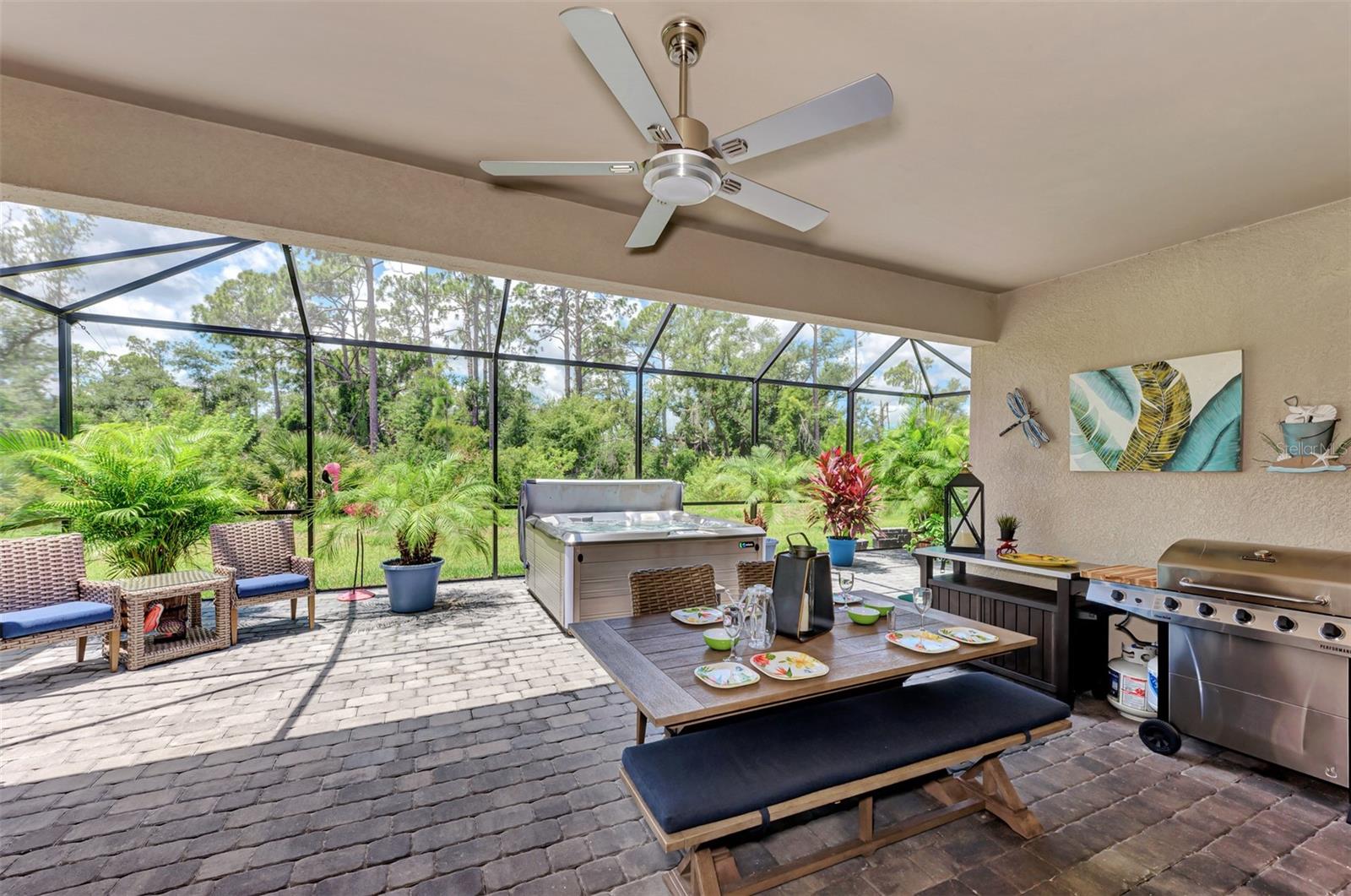 Welcome Home to your Executive Home in the Isles Neighborhood of West Port! This Marsala Floor Plan offers 3 Bedrooms, 3 Baths, plus a Den/Office that can serve as a 4th Bedroom. The owners spared no expense on upgrades in this home. The Outdoor Features a Large lanai with a 6-person spa, dog run, and large potted plants, giving this space an atmosphere of relaxation and privacy. The Interior Features an open floor plan, with large kitchen and upgraded refrigerator with an expansive island that accommodates extra seating. Exquisite, upgraded chandelier-style lights throughout. Custom electric curtains in the living room, master bedroom, and master bathroom. Washer and dryer included. There is an Express RO faucet in the kitchen for great-tasting water. This home offers an elegant and private environment, perfect for both relaxation and entertaining. NO FLOOD INSURANCE required. Within the Westport community, you’ll find a brand-new recreation center with a pool, playground, and multi-use ball fields for year-round outdoor enjoyment. Just outside the community, you’ll discover the new Sunseekers Resort, Rays spring training facility, the Atlanta Braves spring training facility, fishing, trails, kayaking, and canoeing. Some of Florida’s most beautiful beaches are less than 30 minutes away!
