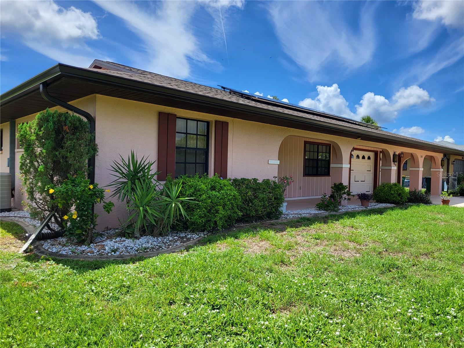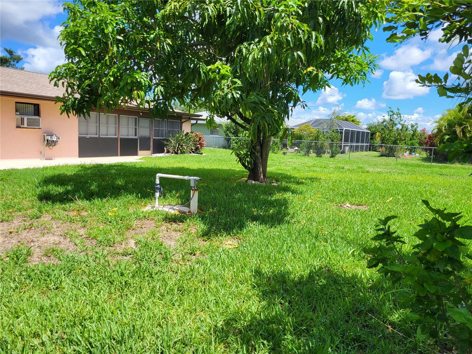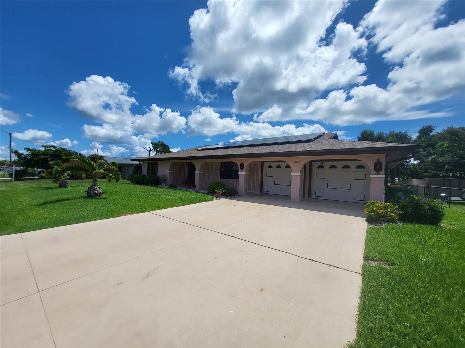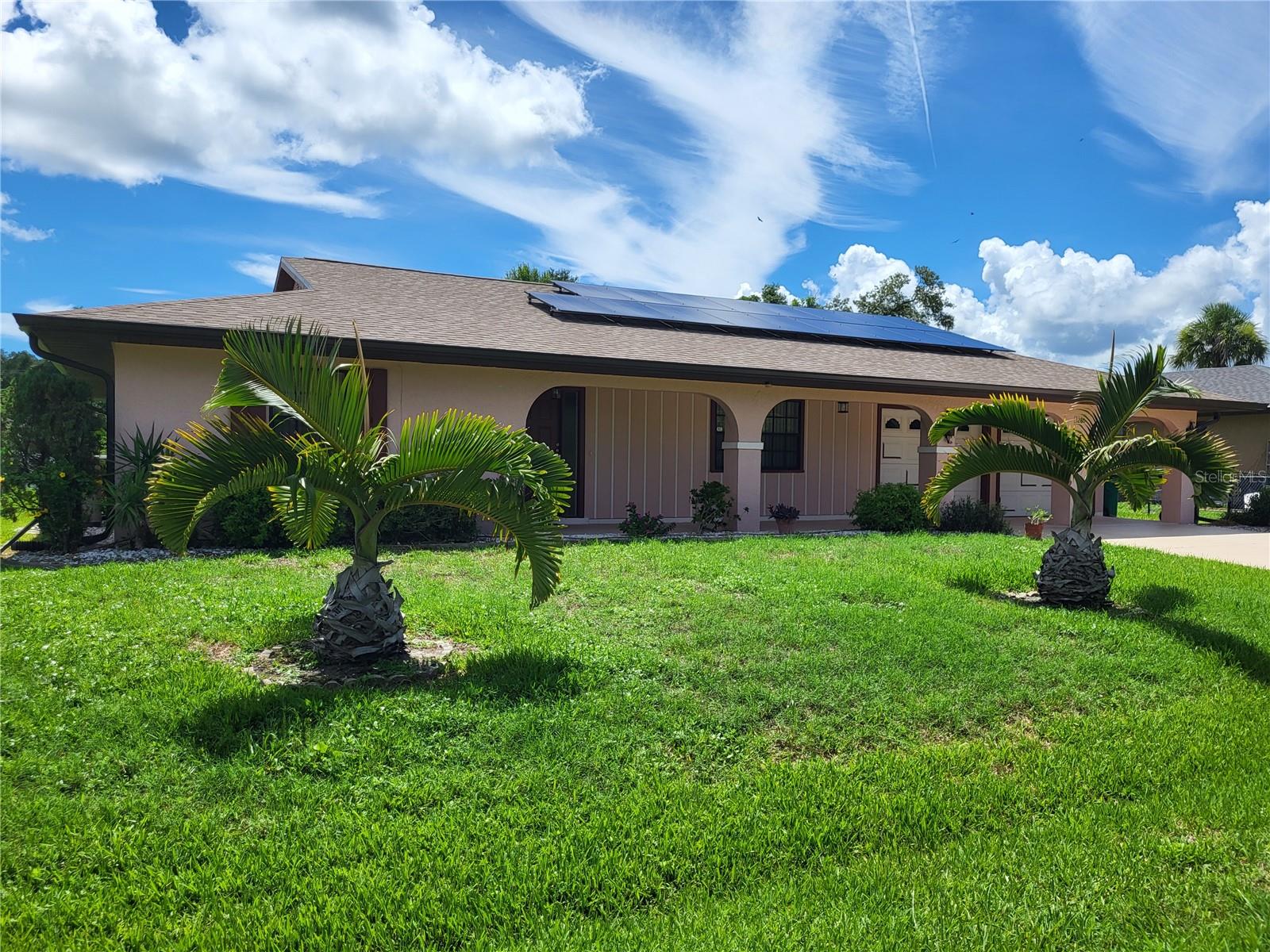 Perfect Port Charlotte retreat or family home! This well-maintained and spacious floor plan features 3 bedrooms, 3 bathrooms, plus a large private bonus room complete with a walk-in closet, perfect for use as a home office, 4th bedroom, or den. The layout offers multiple "Primary" bedroom opportunities and privacy for all. French doors lead to a generous Florida Room with a pass-thru bar from the kitchen. The large fenced yard boasts a patio, mature fruit trees, and an irrigation system with a private well, yet still has plenty of room for a pool. The whole-house solar system will save on energy costs! See listing agent for the solar details. Newer roof (2023) and freshly painted interior add even more value to this home. Located in a quaint neighborhood, this property is easily accessible to shopping, dining, and entertainment. Turn-key furnished and ready for you to move in at closing. This house is a must-see!