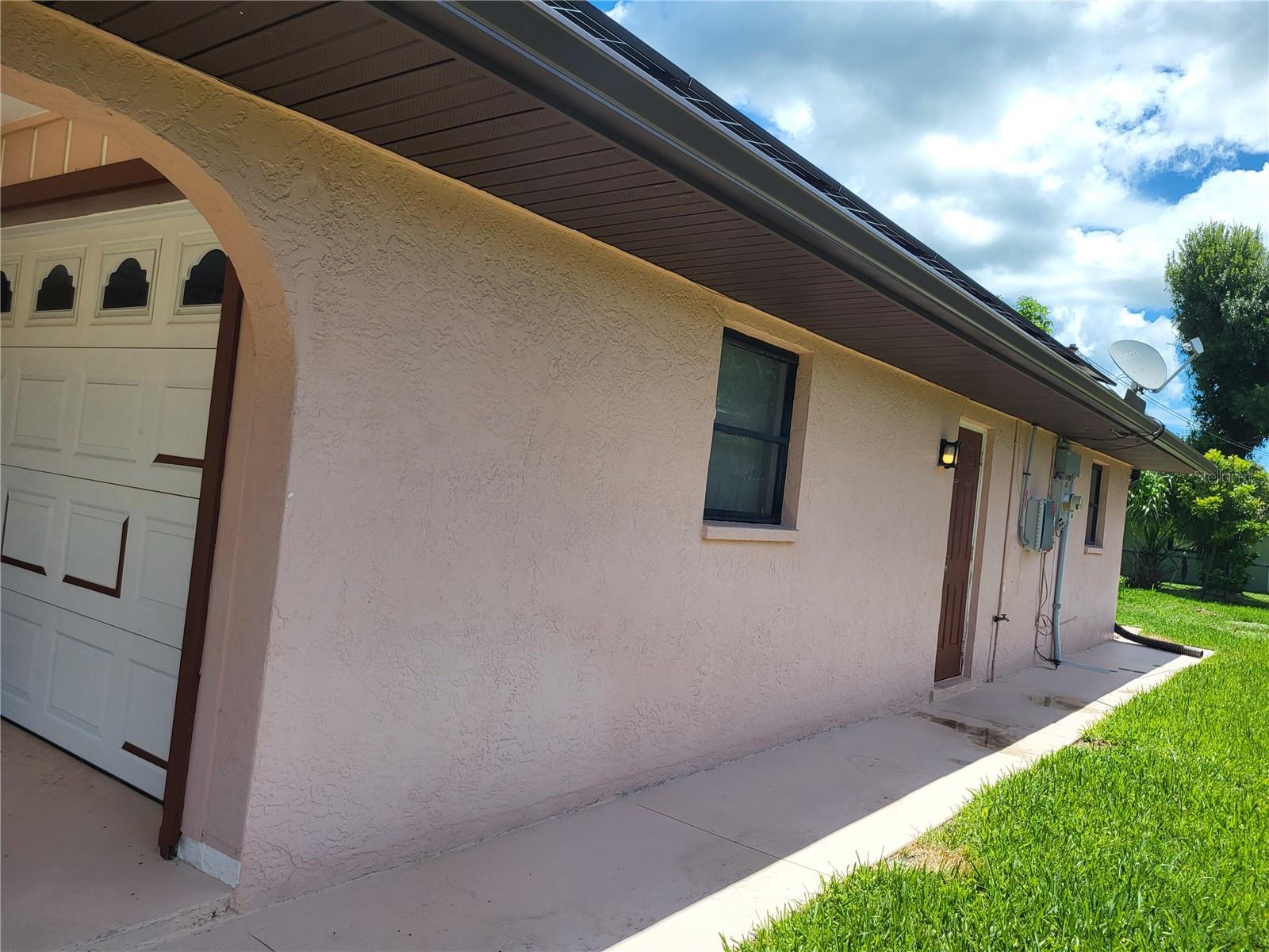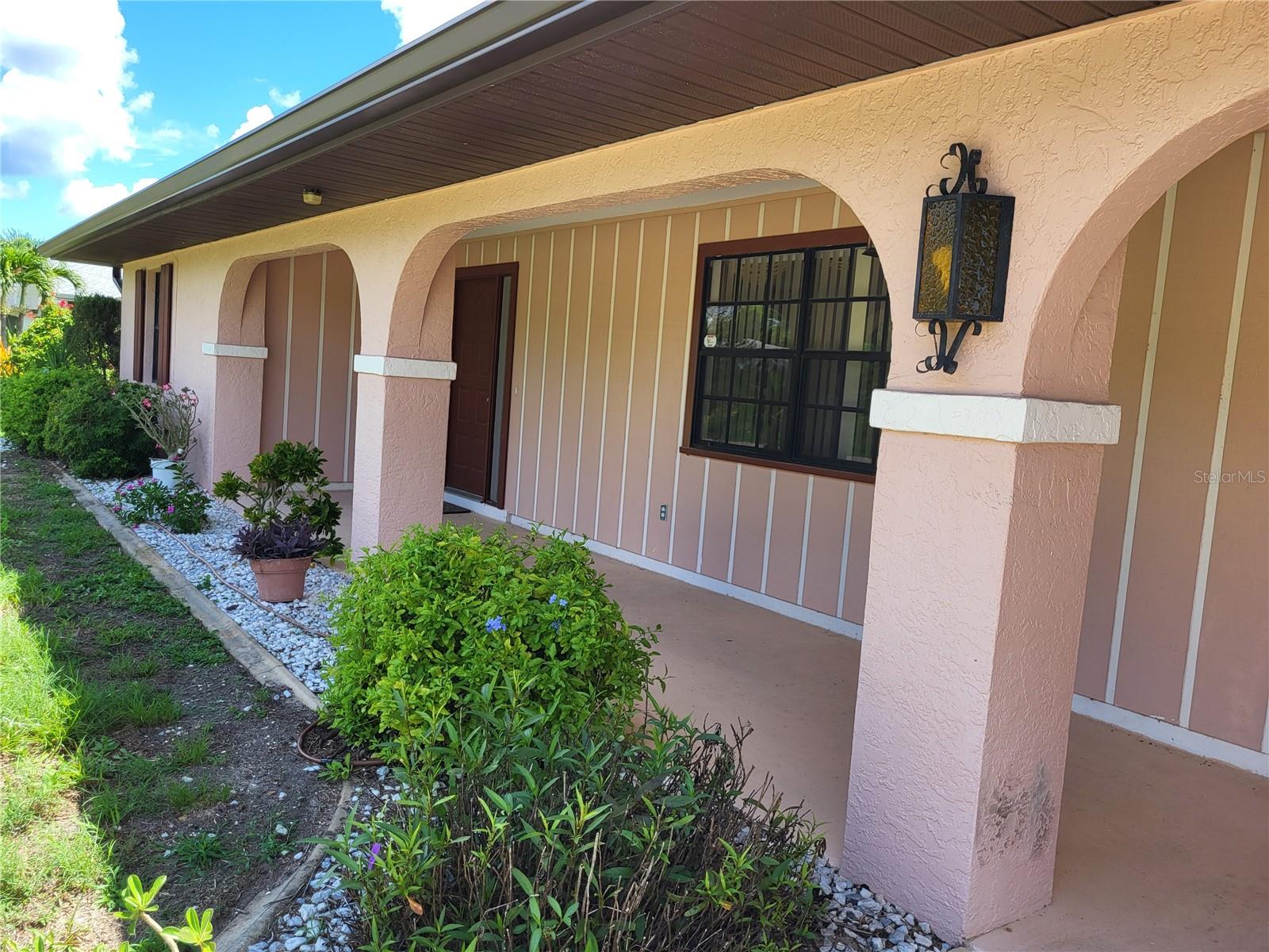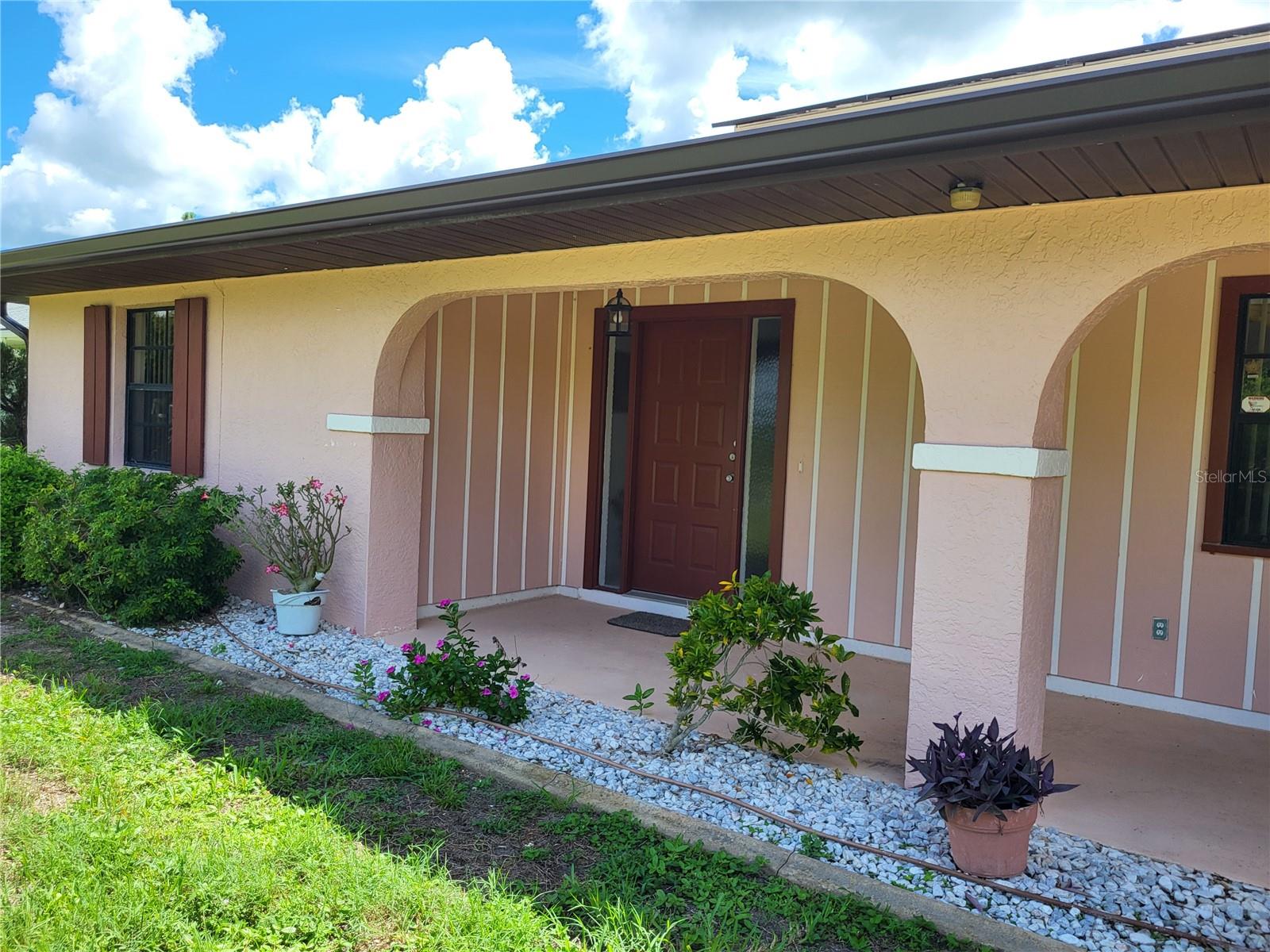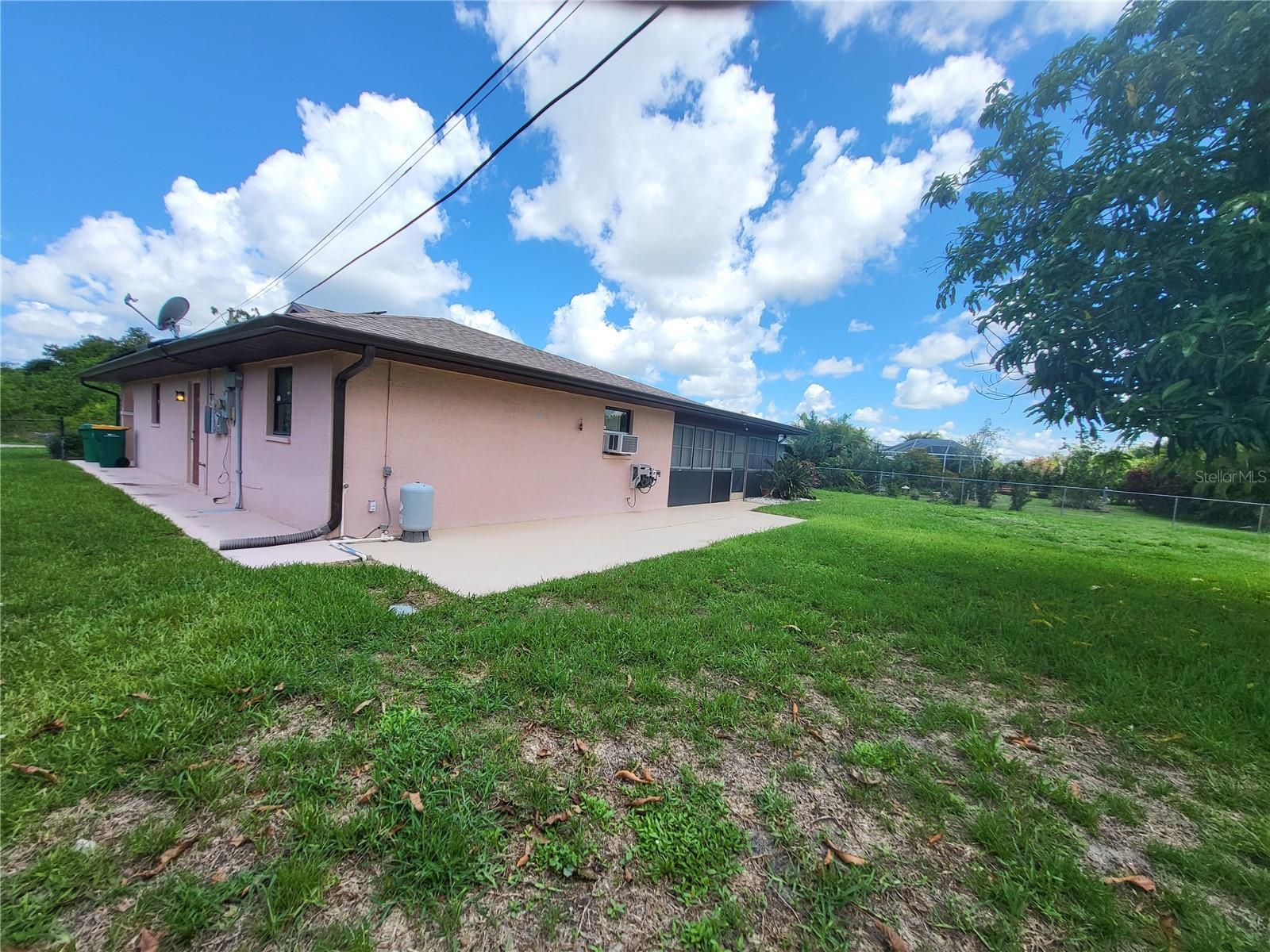 Perfect Port Charlotte retreat or family home! This well-maintained and spacious floor plan features 3 bedrooms, 3 bathrooms, plus a large private bonus room complete with a walk-in closet, perfect for use as a home office, 4th bedroom, or den. The layout offers multiple "Primary" bedroom opportunities and privacy for all. French doors lead to a generous Florida Room with a pass-thru bar from the kitchen. The large fenced yard boasts a patio, mature fruit trees, and an irrigation system with a private well, yet still has plenty of room for a pool. The whole-house solar system will save on energy costs! See listing agent for the solar details. Newer roof (2023) and freshly painted interior add even more value to this home. Located in a quaint neighborhood, this property is easily accessible to shopping, dining, and entertainment. Turn-key furnished and ready for you to move in at closing. This house is a must-see!