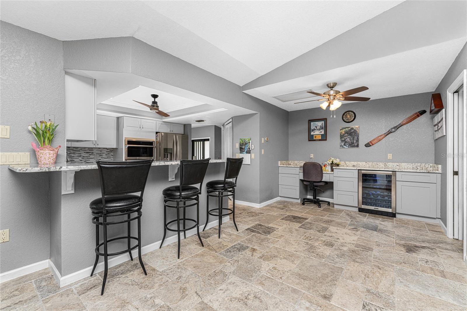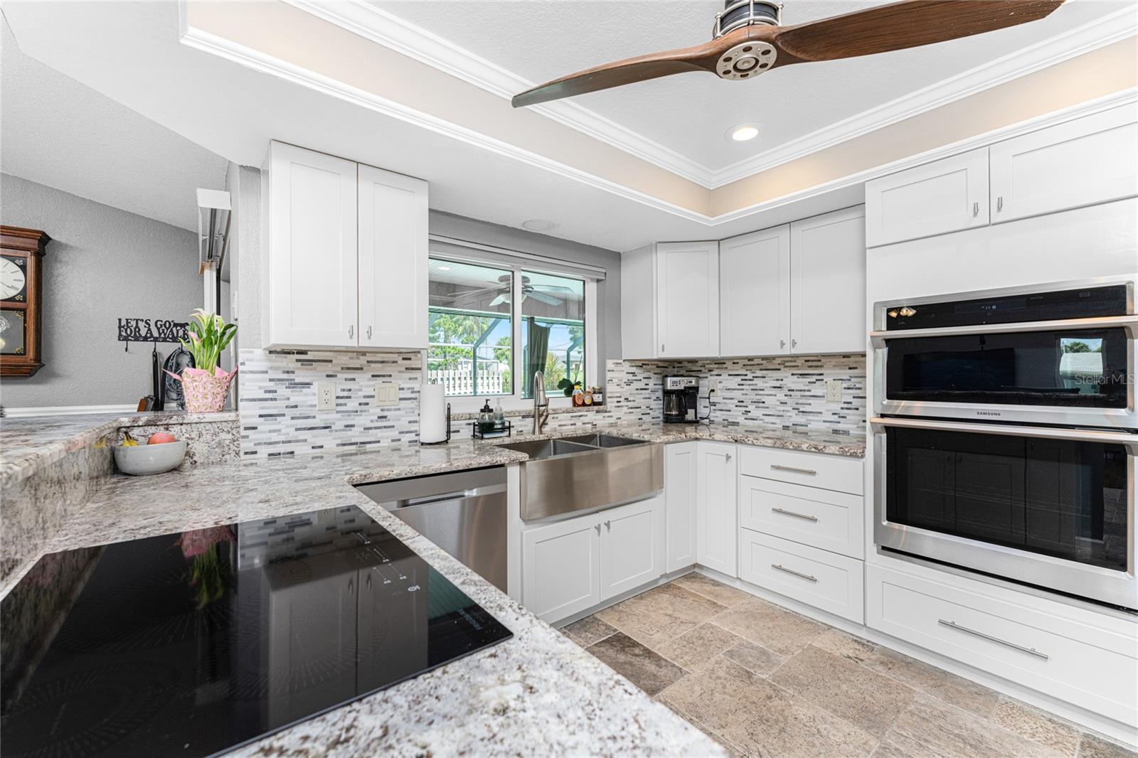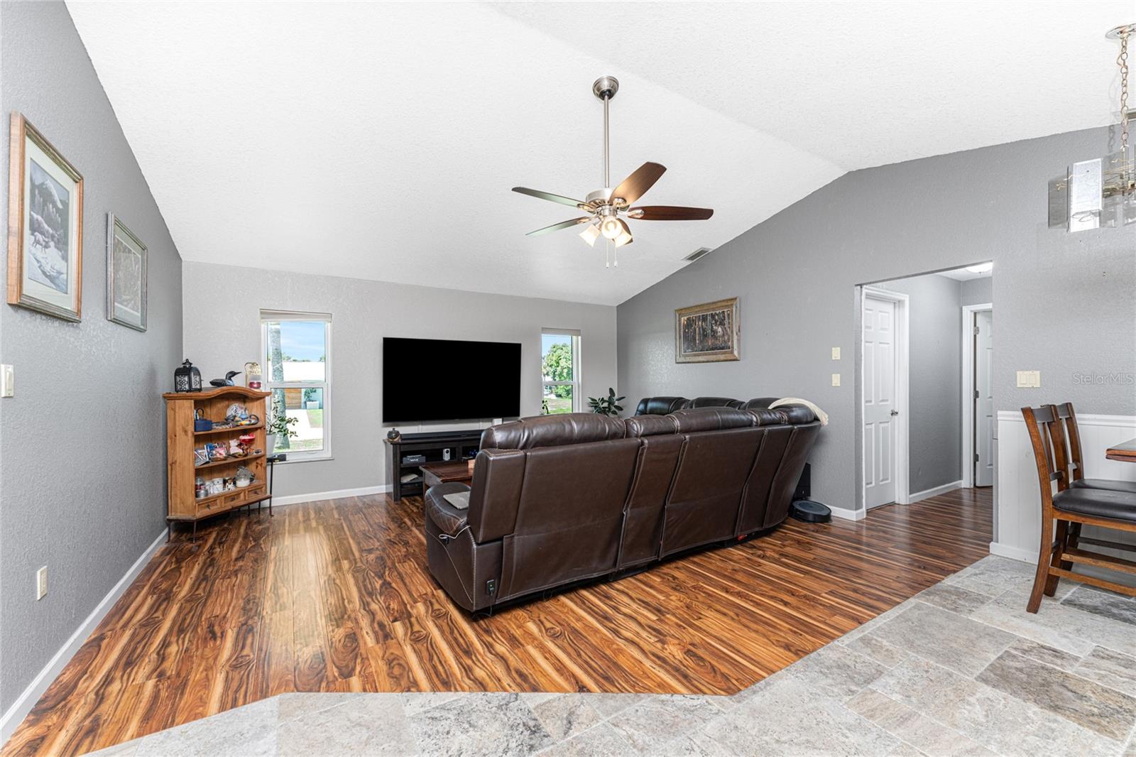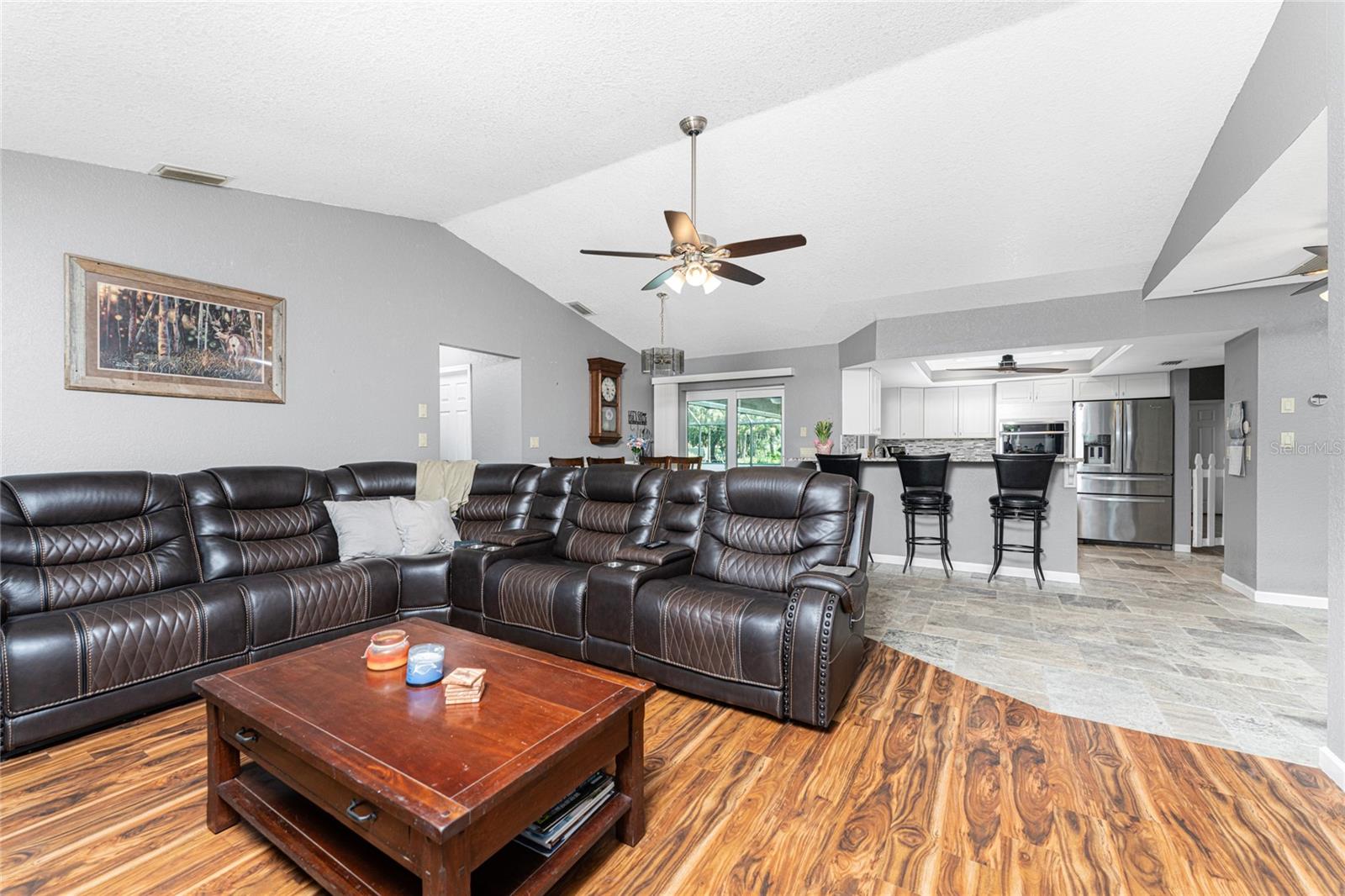NO STORM DAMAGE WHATSOEVER! Discover the epitome of Florida living in this captivating 3-bedroom, 2-bathroom home complete with a refreshing pool and in-ground hot tub/spa. Sitting on a generously oversized corner lot, this property combines a fantastic location with ample space for all your recreational gear. Upon arrival, you're greeted by lush, mature landscaping and a recently upgraded kitchen that sets the tone for modern elegance throughout. The primary bedroom and bathroom feature stylish updates with contemporary fixtures, offering a serene retreat. For those who love to entertain, the home's layout is ideal. A spacious living room flows seamlessly into a combined kitchen and family room, complete with a built-in bar and wine fridge—a perfect setup for hosting gatherings. The kitchen dazzles with real travertine floors, granite countertops, and high-end appliances, including a double oven and convection microwave. Vaulted ceilings and sliders leading to the lanai enhance the living room's spacious feel, while the second and third bedrooms, both with walk-in closets, provide comfort and privacy. The second bathroom conveniently opens to the pool deck, making it ideal for outdoor entertaining. The primary bedroom is a sanctuary unto itself, boasting views of the hot tub on the lanai, dual walk-in closets, and a beautifully updated en-suite bathroom with granite countertops and a luxurious tiled walk-in shower. Additional highlights include impact glass windows throughout (2021), a metal roof (2021), plumbing repipe (2015), HVAC (2017), and the imminent availability of fiber optic cable for enhanced connectivity. The laundry room, complete with a washer/dryer and utility sink, offers practical convenience. Outside, the oversized pool and built-in hot tub on the expansive lanai beckon for relaxation and social gatherings. A fenced backyard and privacy wall ensure privacy, while the generous 130' x 125' corner lot provides ample space for outdoor activities and storage of recreational vehicles. Conveniently located minutes from dining, shopping, golfing, and a public boat ramp, this home offers easy access to everything Southwest Florida has to offer. With the region's stunning beaches just a short drive away, this property is perfectly positioned for year-round enjoyment or as a vacation retreat. Don't miss out on this rare opportunity to own a meticulously maintained, well-priced pool home in a desirable location. Schedule your showing today and envision yourself living the Florida lifestyle to the fullest!
