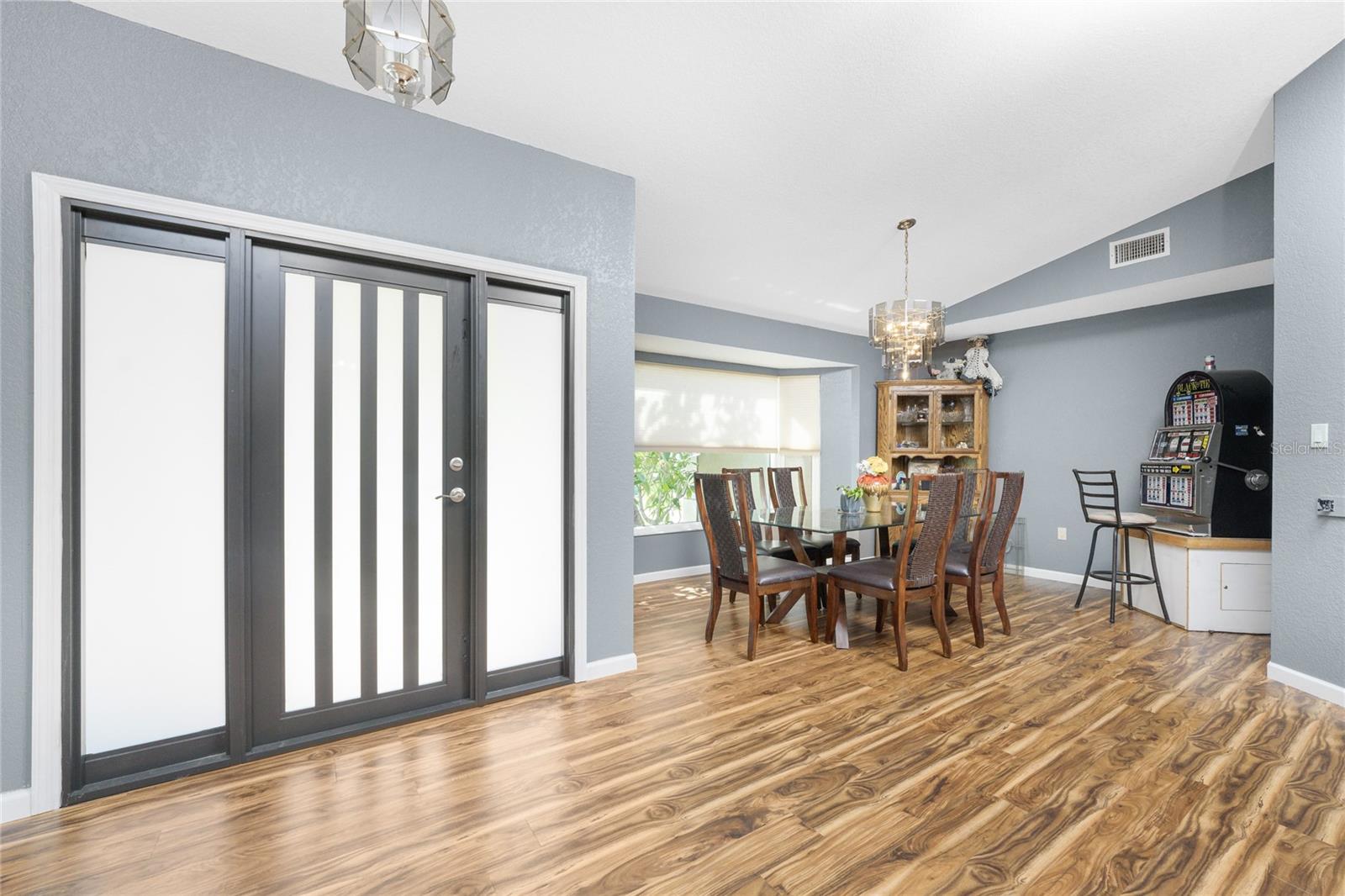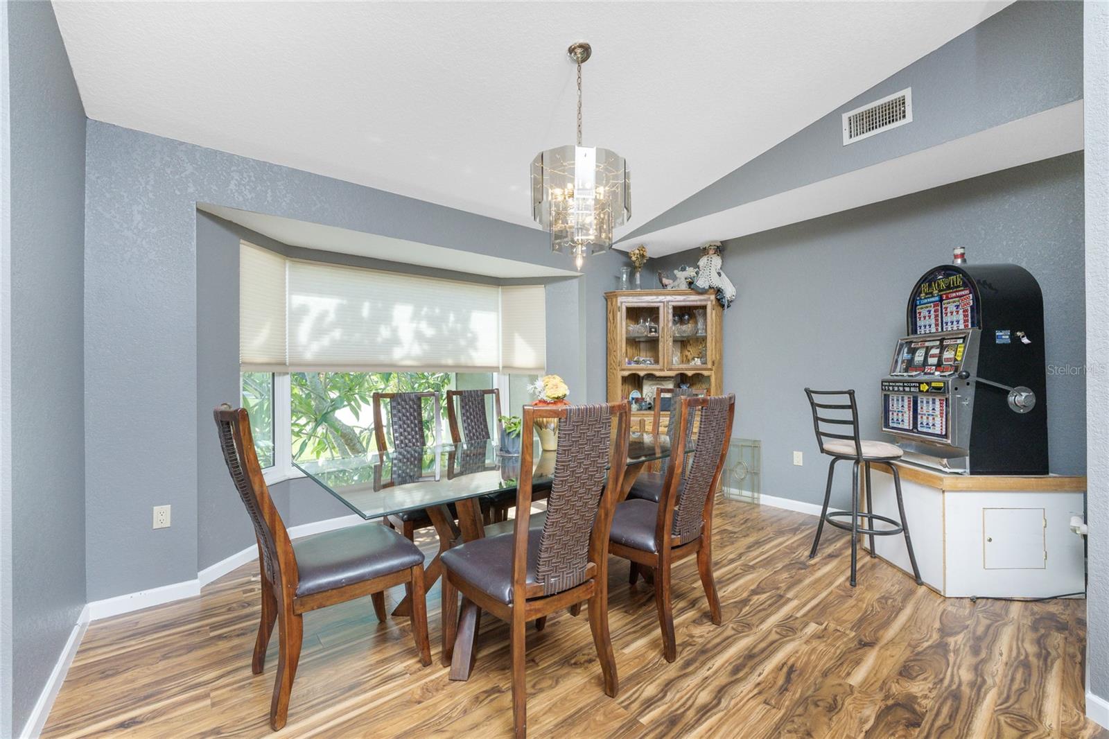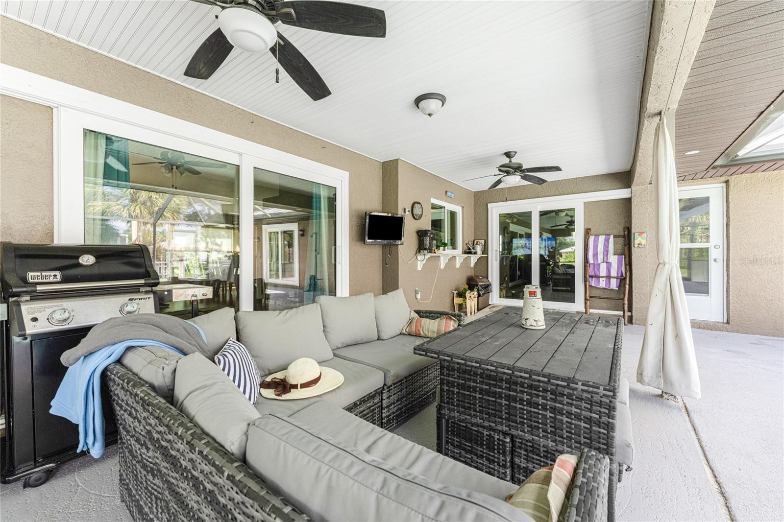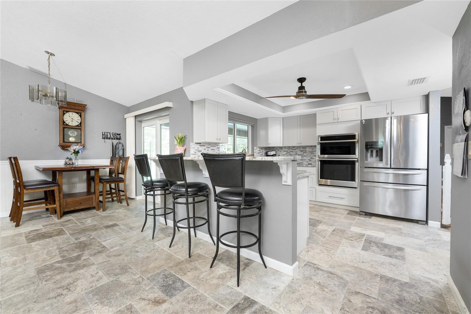 NO STORM DAMAGE WHATSOEVER! Discover the epitome of Florida living in this captivating 3-bedroom, 2-bathroom home complete with a refreshing pool and in-ground hot tub/spa. Sitting on a generously oversized corner lot, this property combines a fantastic location with ample space for all your recreational gear. Upon arrival, you're greeted by lush, mature landscaping and a recently upgraded kitchen that sets the tone for modern elegance throughout. The primary bedroom and bathroom feature stylish updates with contemporary fixtures, offering a serene retreat. For those who love to entertain, the home's layout is ideal. A spacious living room flows seamlessly into a combined kitchen and family room, complete with a built-in bar and wine fridge—a perfect setup for hosting gatherings. The kitchen dazzles with real travertine floors, granite countertops, and high-end appliances, including a double oven and convection microwave. Vaulted ceilings and sliders leading to the lanai enhance the living room's spacious feel, while the second and third bedrooms, both with walk-in closets, provide comfort and privacy. The second bathroom conveniently opens to the pool deck, making it ideal for outdoor entertaining. The primary bedroom is a sanctuary unto itself, boasting views of the hot tub on the lanai, dual walk-in closets, and a beautifully updated en-suite bathroom with granite countertops and a luxurious tiled walk-in shower. Additional highlights include impact glass windows throughout (2021), a metal roof (2021), plumbing repipe (2015), HVAC (2017), and the imminent availability of fiber optic cable for enhanced connectivity. The laundry room, complete with a washer/dryer and utility sink, offers practical convenience. Outside, the oversized pool and built-in hot tub on the expansive lanai beckon for relaxation and social gatherings. A fenced backyard and privacy wall ensure privacy, while the generous 130' x 125' corner lot provides ample space for outdoor activities and storage of recreational vehicles. Conveniently located minutes from dining, shopping, golfing, and a public boat ramp, this home offers easy access to everything Southwest Florida has to offer. With the region's stunning beaches just a short drive away, this property is perfectly positioned for year-round enjoyment or as a vacation retreat. Don't miss out on this rare opportunity to own a meticulously maintained, well-priced pool home in a desirable location. Schedule your showing today and envision yourself living the Florida lifestyle to the fullest!