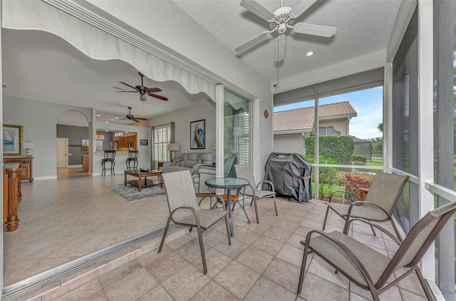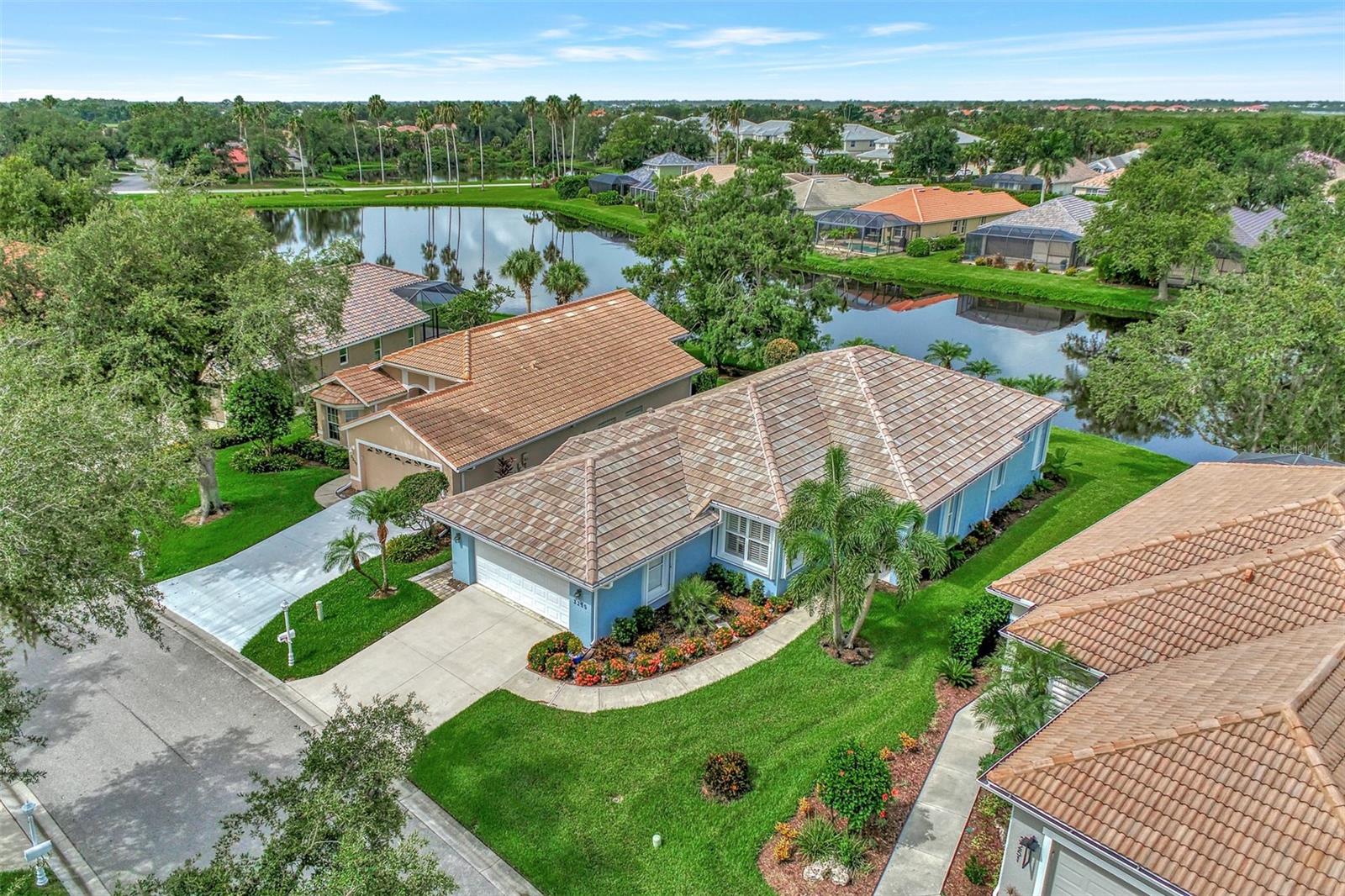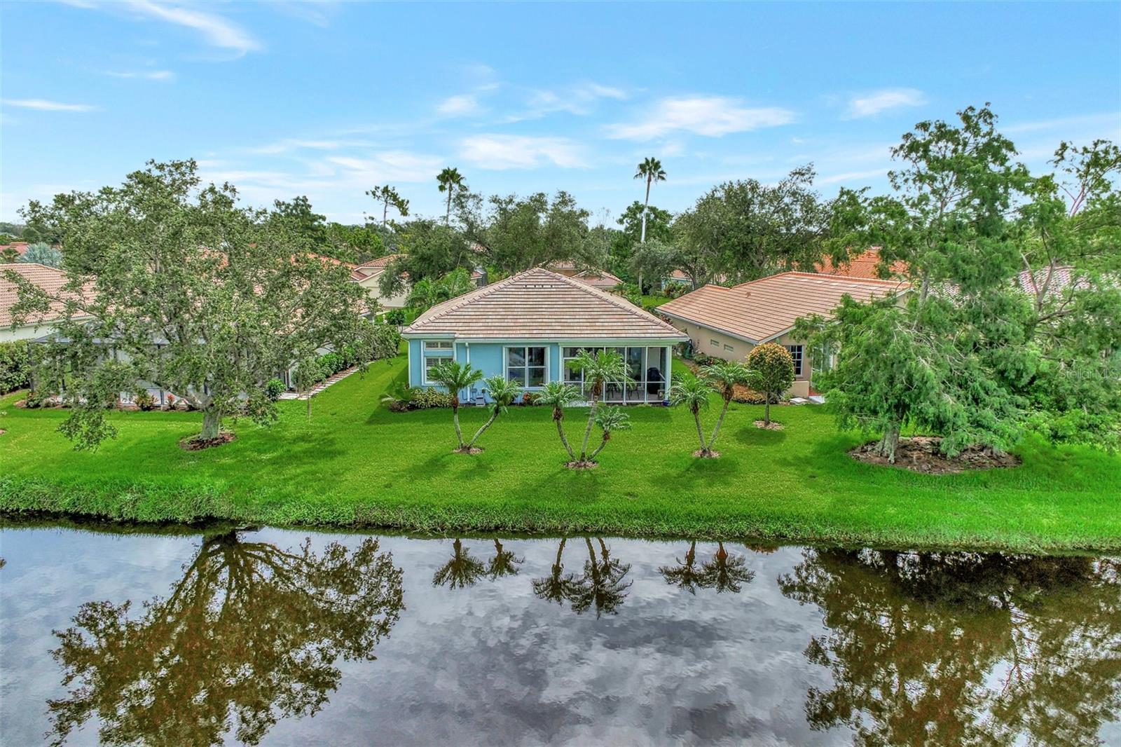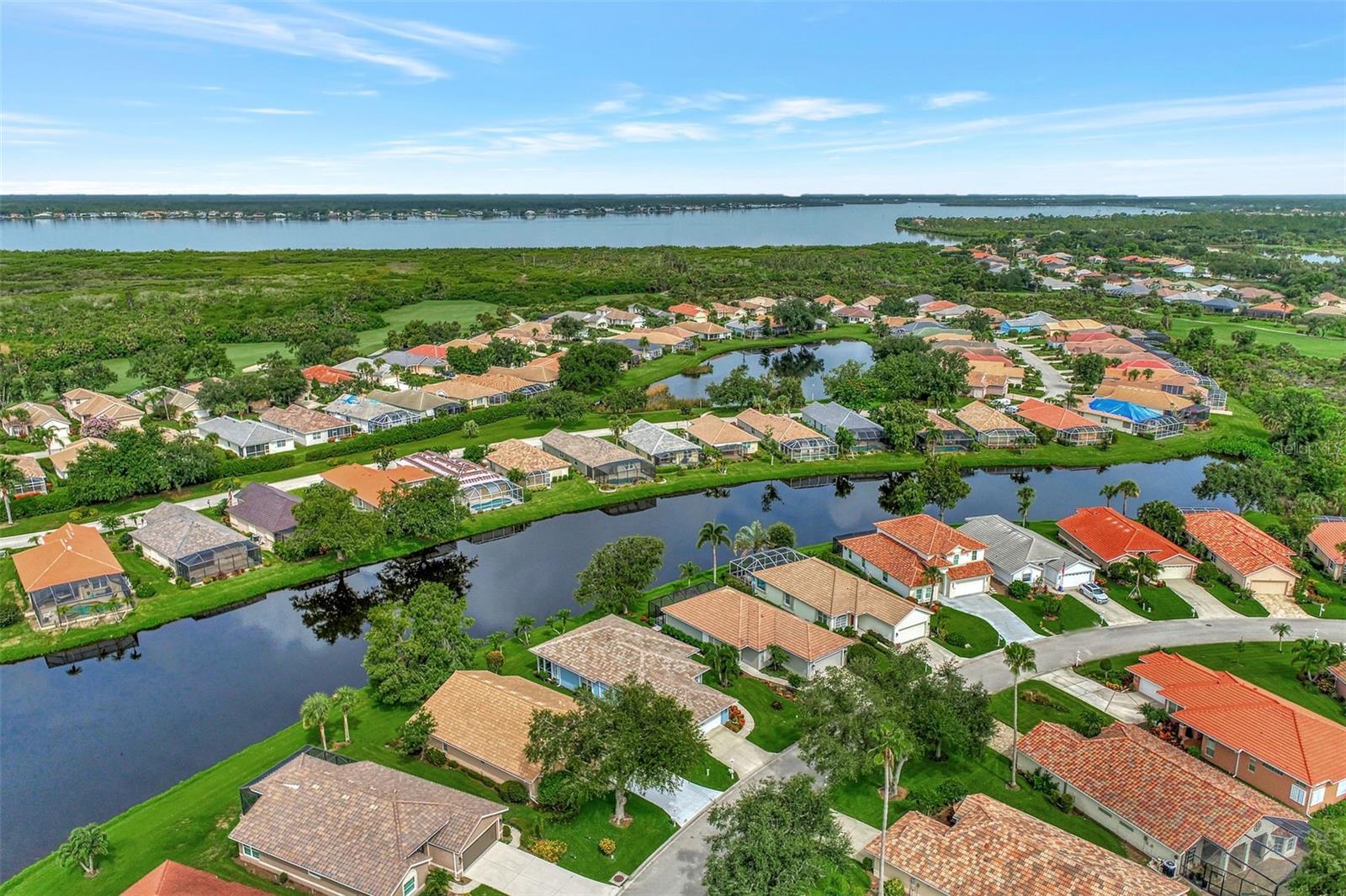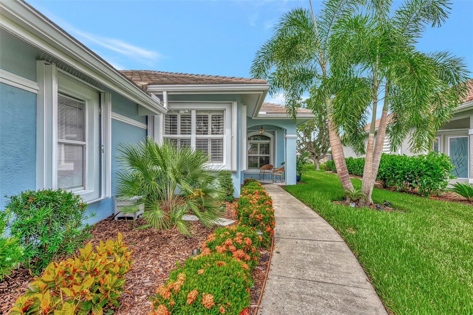 Experience the pinnacle of Florida living owning this exquisite Custom Built Rutenberg 2 Bedroom, 2 Bath plus Flex room Home nestled on the serene, tree-lined streets of Village Lane in Riverwood. This well-appointed residence features a desirable open floor plan with architectural charm, voluminous ceilings, abundant natural light, plantation shutters, porcelain tile flooring, and designer light fixtures throughout. The spacious updated kitchen, complete with an island, showcases quality cabinetry, countertops, and appliances. Both the primary and guest bathrooms have been tastefully remodeled to incorporate the latest design trends, highlighted by stylish new cabinets, hardware and sprawling quartz counters. Enjoy the Florida outdoors from the covered, screened tiled lanai offering picturesque views of the water and wildlife. Additional enhancements include exterior and interior paint (2023) replaced Stove and Dishwasher (2023) New Tile Roof (2022) Air Conditioner (2018), plus upgraded storm shutters, and more. Riverwood beckons as a gated, golf-centric, resort-style community inviting residents to fully embrace the Florida lifestyle. Take leisurely walks or bike rides along lush, landscape streets, indulge in invigorating tennis or pickleball matches, cool off in the Jr. Olympic pool or relax in the hot tub. Residents can engage in numerous programs and social events at the Activity Center and Fitness enthusiasts can participate in a variety of classes at the Fitness Center. Recognized as an Audubon Green Community award winner, Riverwood boasts a natural habitat that supports Florida wildlife. Additional amenities include lawn croquet, bocce courts, an art classroom, library, and a dedicated dog park. Memberships for Riverwood Golf Club and the Riverwood Private Beach Club on Manasota Key are available based on availability and require fees. Conveniently located between Sarasota and Fort Myers on Florida’s West Coast, this home is just minutes away from dining, shopping, boating, cultural events, and the pristine beaches of Southwest Florida. Discover this move-in ready Florida home today—call for a showing and embrace the essence of Florida living at its finest!