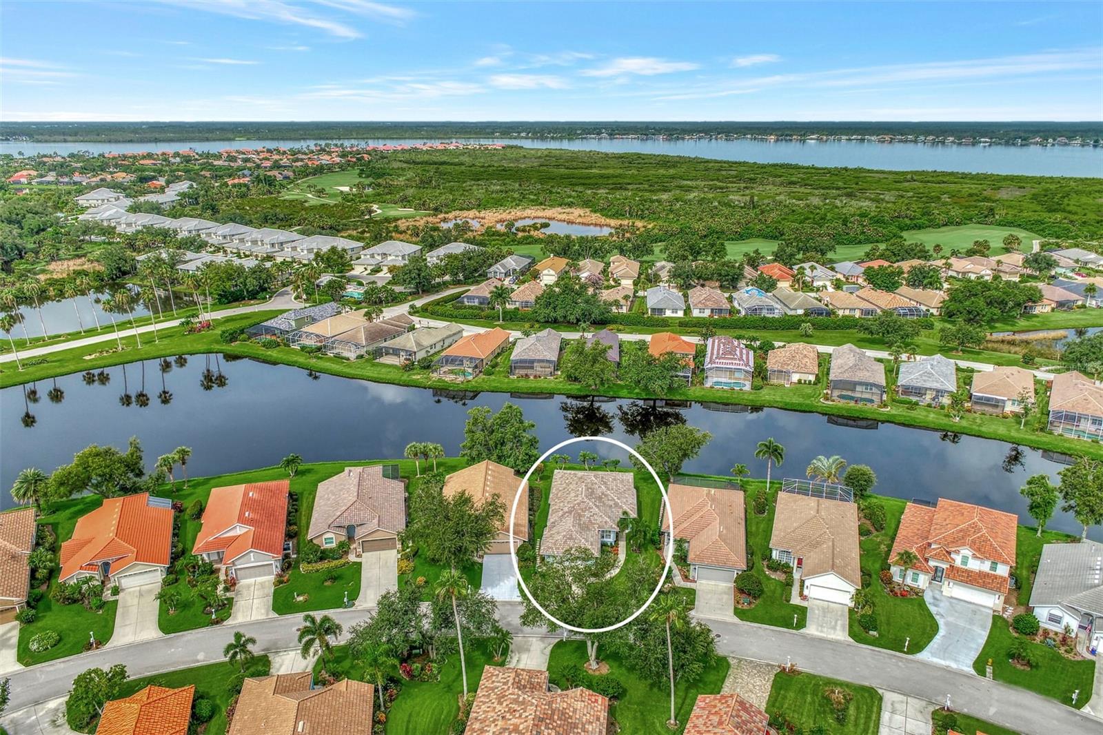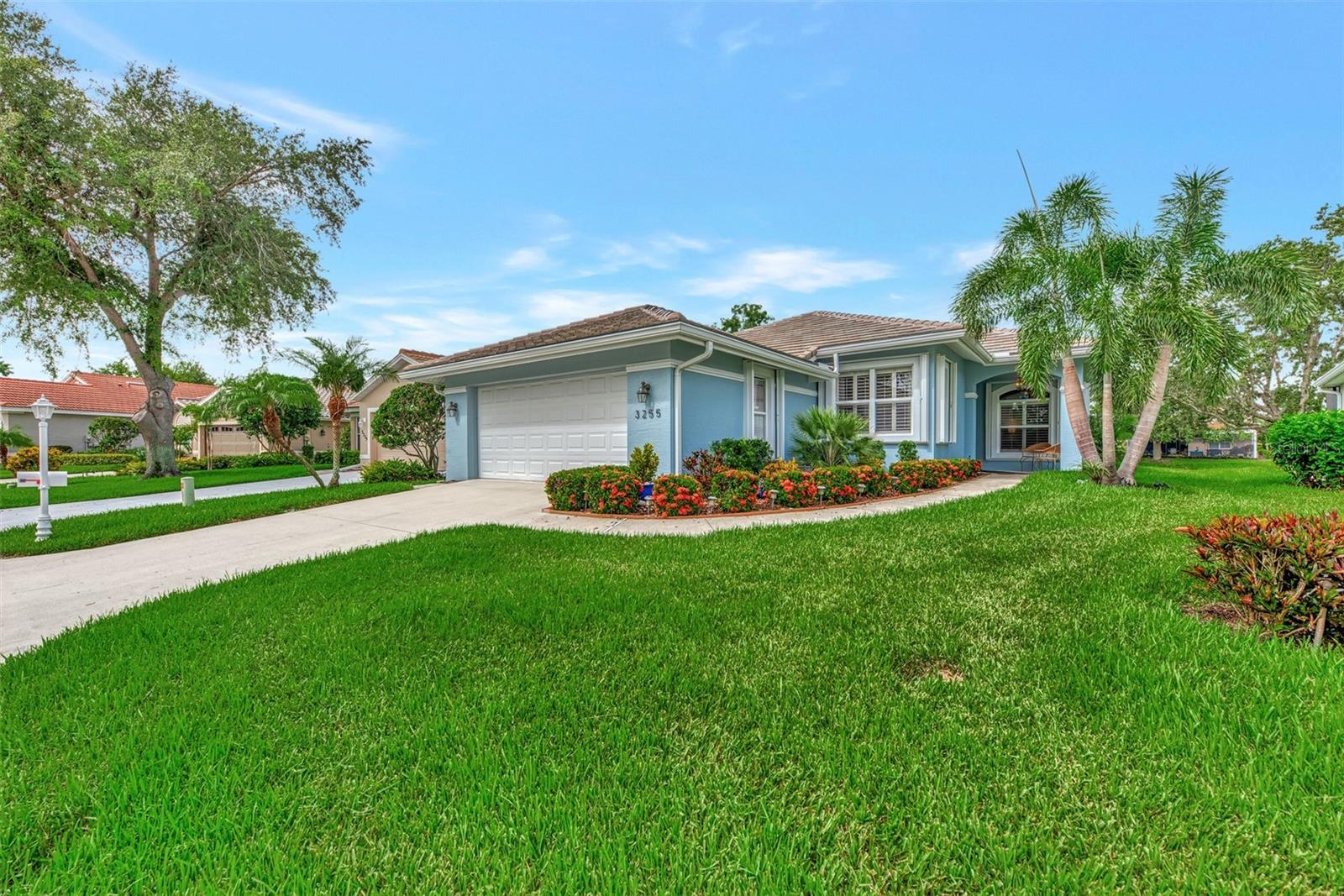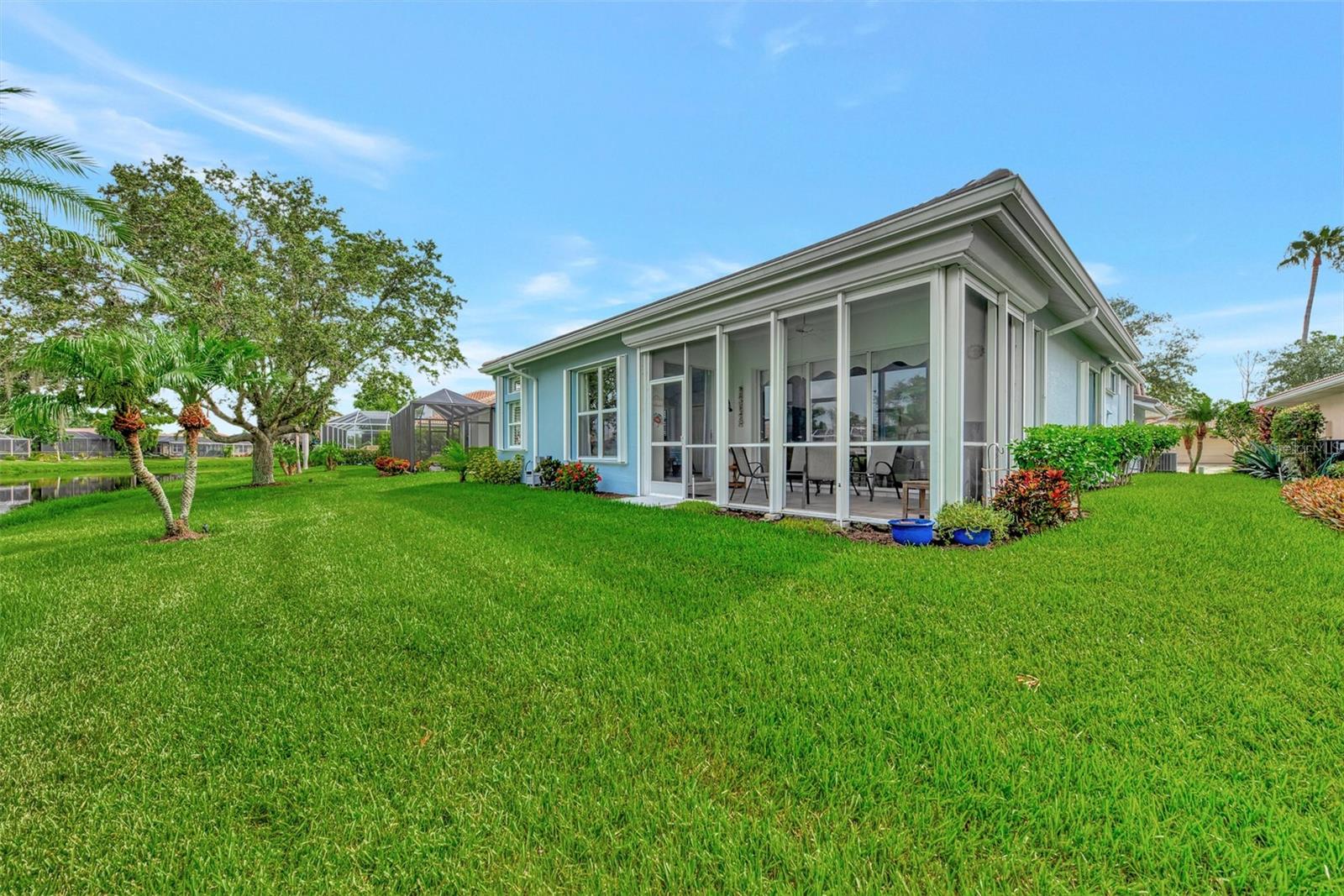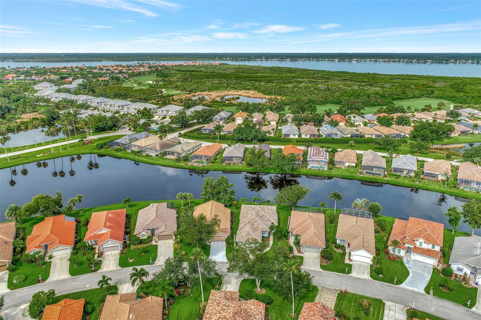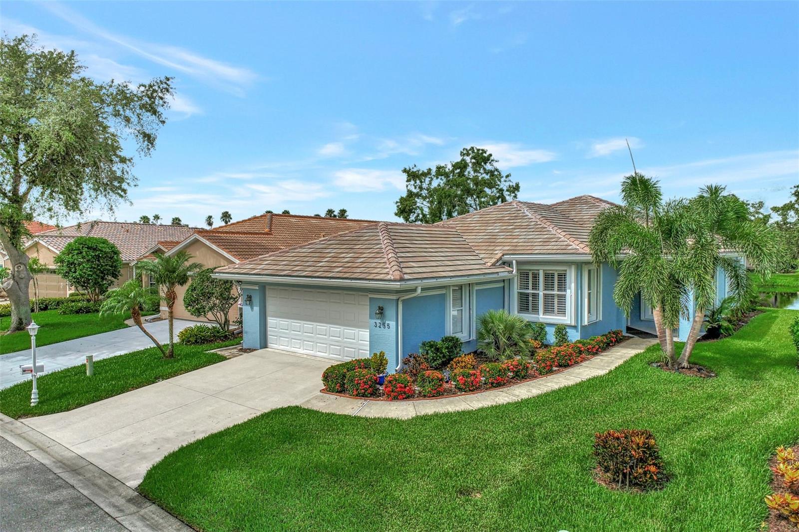 Experience the pinnacle of Florida living owning this exquisite Custom Built Rutenberg 2 Bedroom, 2 Bath plus Flex room Home nestled on the serene, tree-lined streets of Village Lane in Riverwood. This well-appointed residence features a desirable open floor plan with architectural charm, voluminous ceilings, abundant natural light, plantation shutters, porcelain tile flooring, and designer light fixtures throughout. The spacious updated kitchen, complete with an island, showcases quality cabinetry, countertops, and appliances. Both the primary and guest bathrooms have been tastefully remodeled to incorporate the latest design trends, highlighted by stylish new cabinets, hardware and sprawling quartz counters. Enjoy the Florida outdoors from the covered, screened tiled lanai offering picturesque views of the water and wildlife. Additional enhancements include exterior and interior paint (2023) replaced Stove and Dishwasher (2023) New Tile Roof (2022) Air Conditioner (2018), plus upgraded storm shutters, and more. Riverwood beckons as a gated, golf-centric, resort-style community inviting residents to fully embrace the Florida lifestyle. Take leisurely walks or bike rides along lush, landscape streets, indulge in invigorating tennis or pickleball matches, cool off in the Jr. Olympic pool or relax in the hot tub. Residents can engage in numerous programs and social events at the Activity Center and Fitness enthusiasts can participate in a variety of classes at the Fitness Center. Recognized as an Audubon Green Community award winner, Riverwood boasts a natural habitat that supports Florida wildlife. Additional amenities include lawn croquet, bocce courts, an art classroom, library, and a dedicated dog park. Memberships for Riverwood Golf Club and the Riverwood Private Beach Club on Manasota Key are available based on availability and require fees. Conveniently located between Sarasota and Fort Myers on Florida’s West Coast, this home is just minutes away from dining, shopping, boating, cultural events, and the pristine beaches of Southwest Florida. Discover this move-in ready Florida home today—call for a showing and embrace the essence of Florida living at its finest!