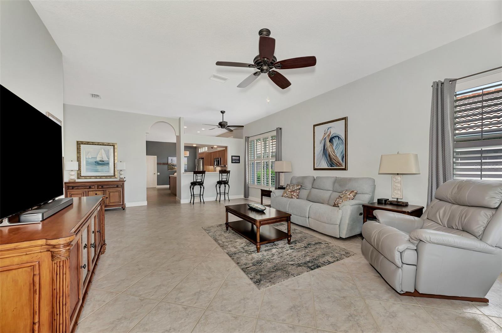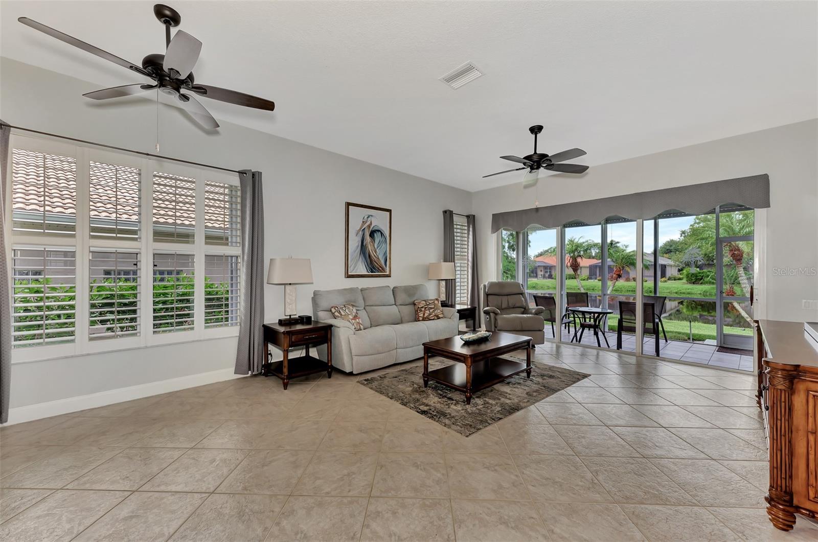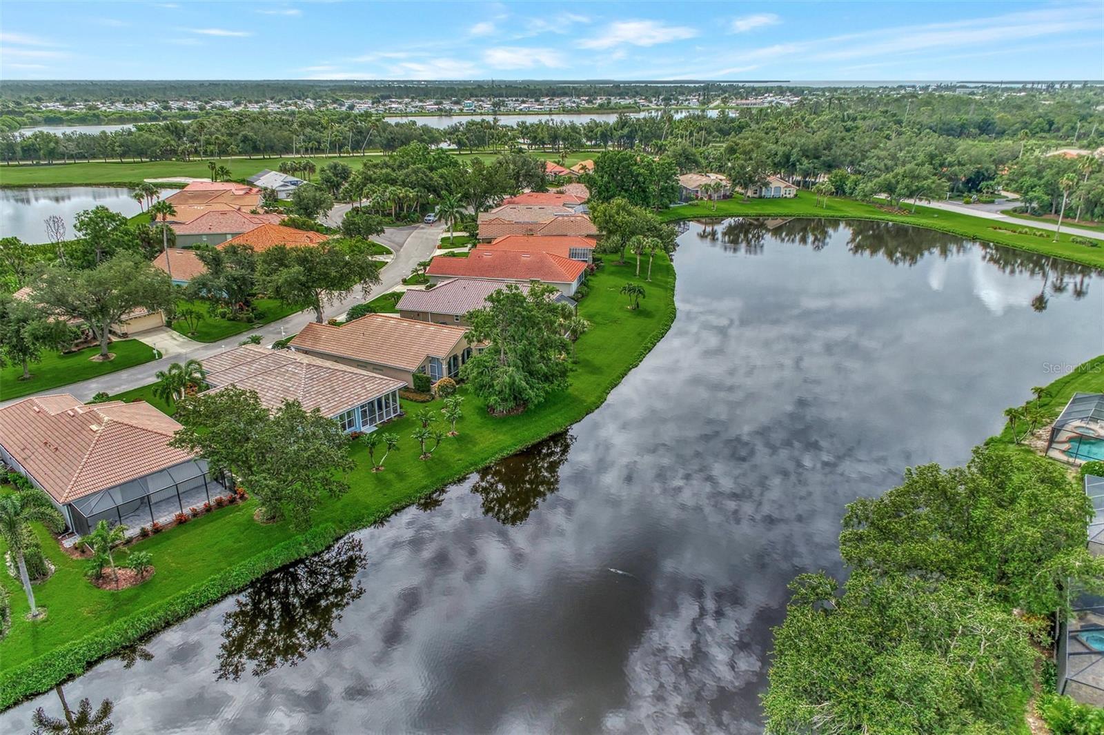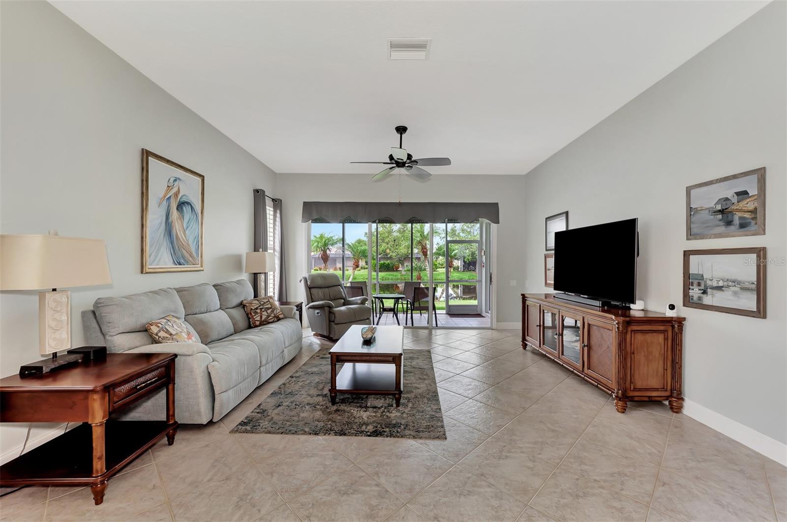 Experience the pinnacle of Florida living owning this exquisite Custom Built Rutenberg 2 Bedroom, 2 Bath plus Flex room Home nestled on the serene, tree-lined streets of Village Lane in Riverwood. This well-appointed residence features a desirable open floor plan with architectural charm, voluminous ceilings, abundant natural light, plantation shutters, porcelain tile flooring, and designer light fixtures throughout. The spacious updated kitchen, complete with an island, showcases quality cabinetry, countertops, and appliances. Both the primary and guest bathrooms have been tastefully remodeled to incorporate the latest design trends, highlighted by stylish new cabinets, hardware and sprawling quartz counters. Enjoy the Florida outdoors from the covered, screened tiled lanai offering picturesque views of the water and wildlife. Additional enhancements include exterior and interior paint (2023) replaced Stove and Dishwasher (2023) New Tile Roof (2022) Air Conditioner (2018), plus upgraded storm shutters, and more. Riverwood beckons as a gated, golf-centric, resort-style community inviting residents to fully embrace the Florida lifestyle. Take leisurely walks or bike rides along lush, landscape streets, indulge in invigorating tennis or pickleball matches, cool off in the Jr. Olympic pool or relax in the hot tub. Residents can engage in numerous programs and social events at the Activity Center and Fitness enthusiasts can participate in a variety of classes at the Fitness Center. Recognized as an Audubon Green Community award winner, Riverwood boasts a natural habitat that supports Florida wildlife. Additional amenities include lawn croquet, bocce courts, an art classroom, library, and a dedicated dog park. Memberships for Riverwood Golf Club and the Riverwood Private Beach Club on Manasota Key are available based on availability and require fees. Conveniently located between Sarasota and Fort Myers on Florida’s West Coast, this home is just minutes away from dining, shopping, boating, cultural events, and the pristine beaches of Southwest Florida. Discover this move-in ready Florida home today—call for a showing and embrace the essence of Florida living at its finest!