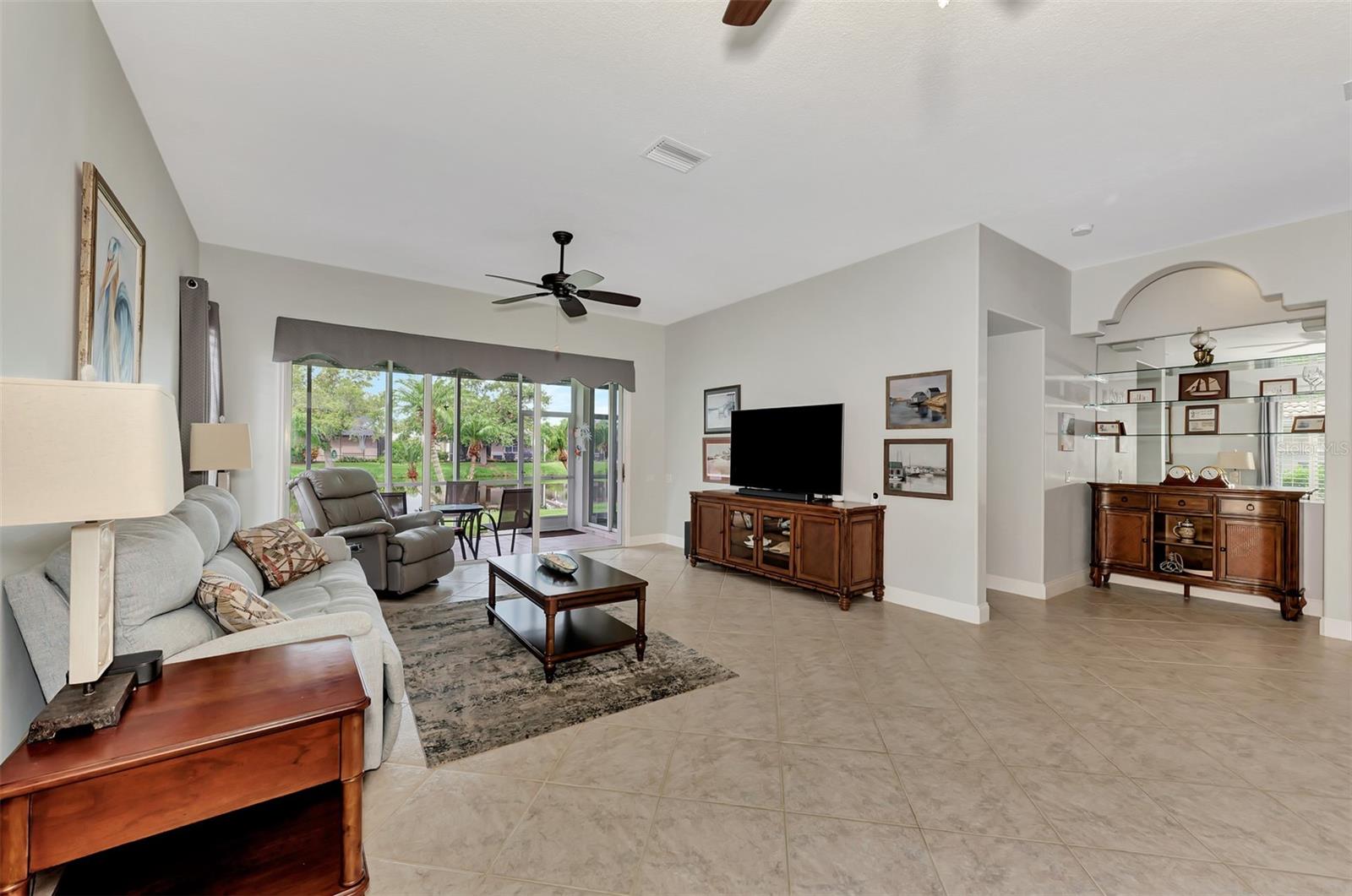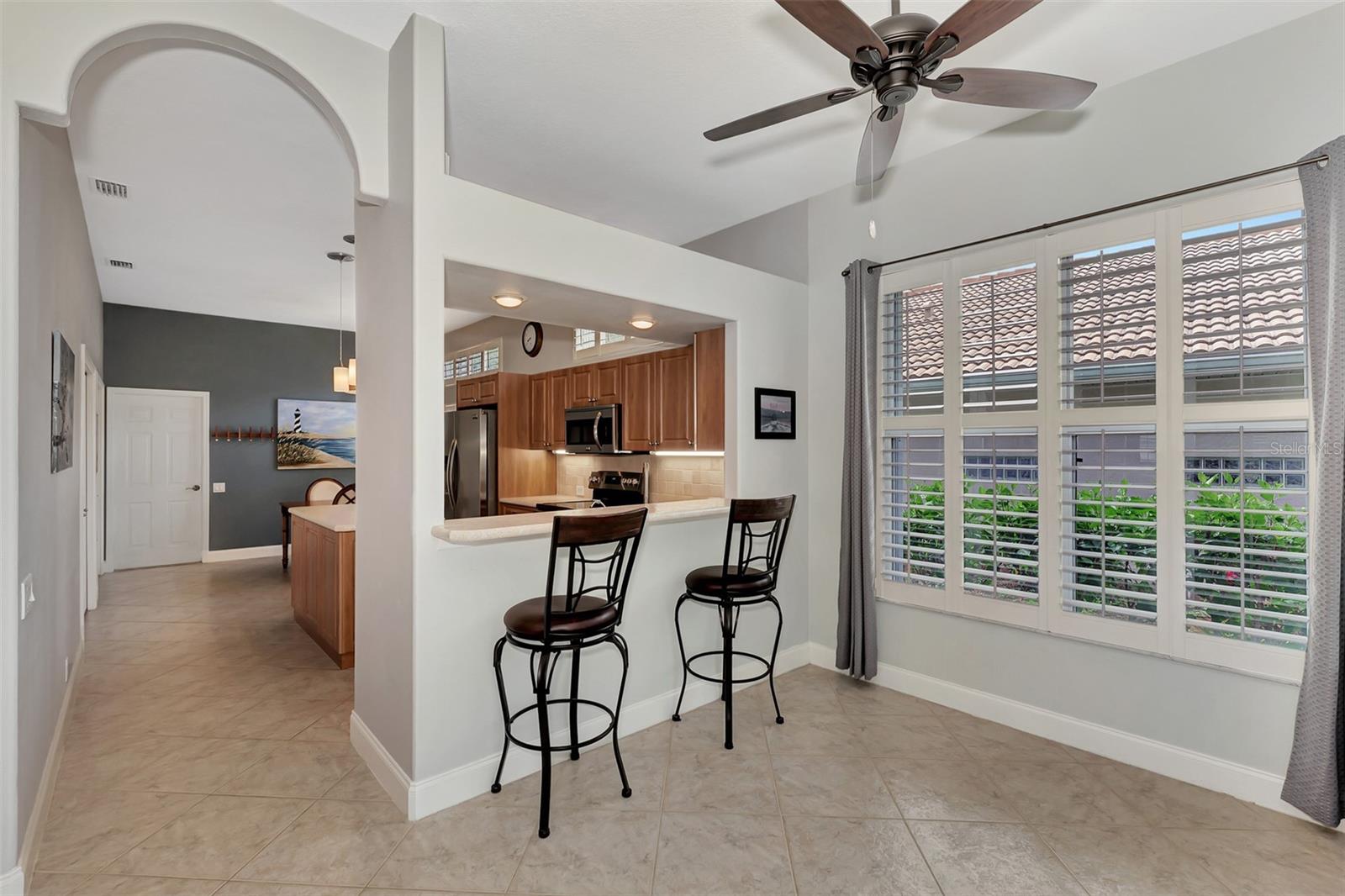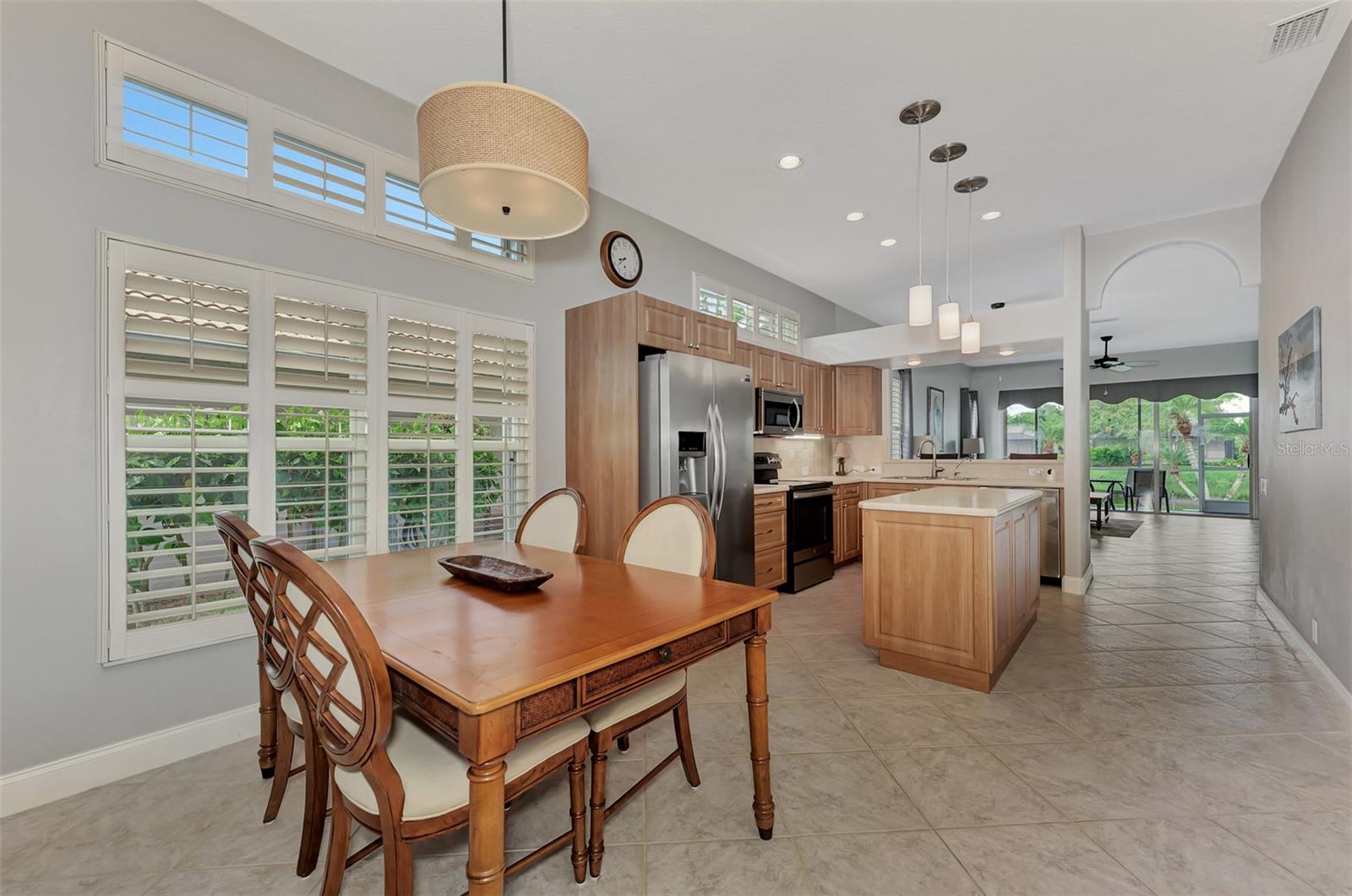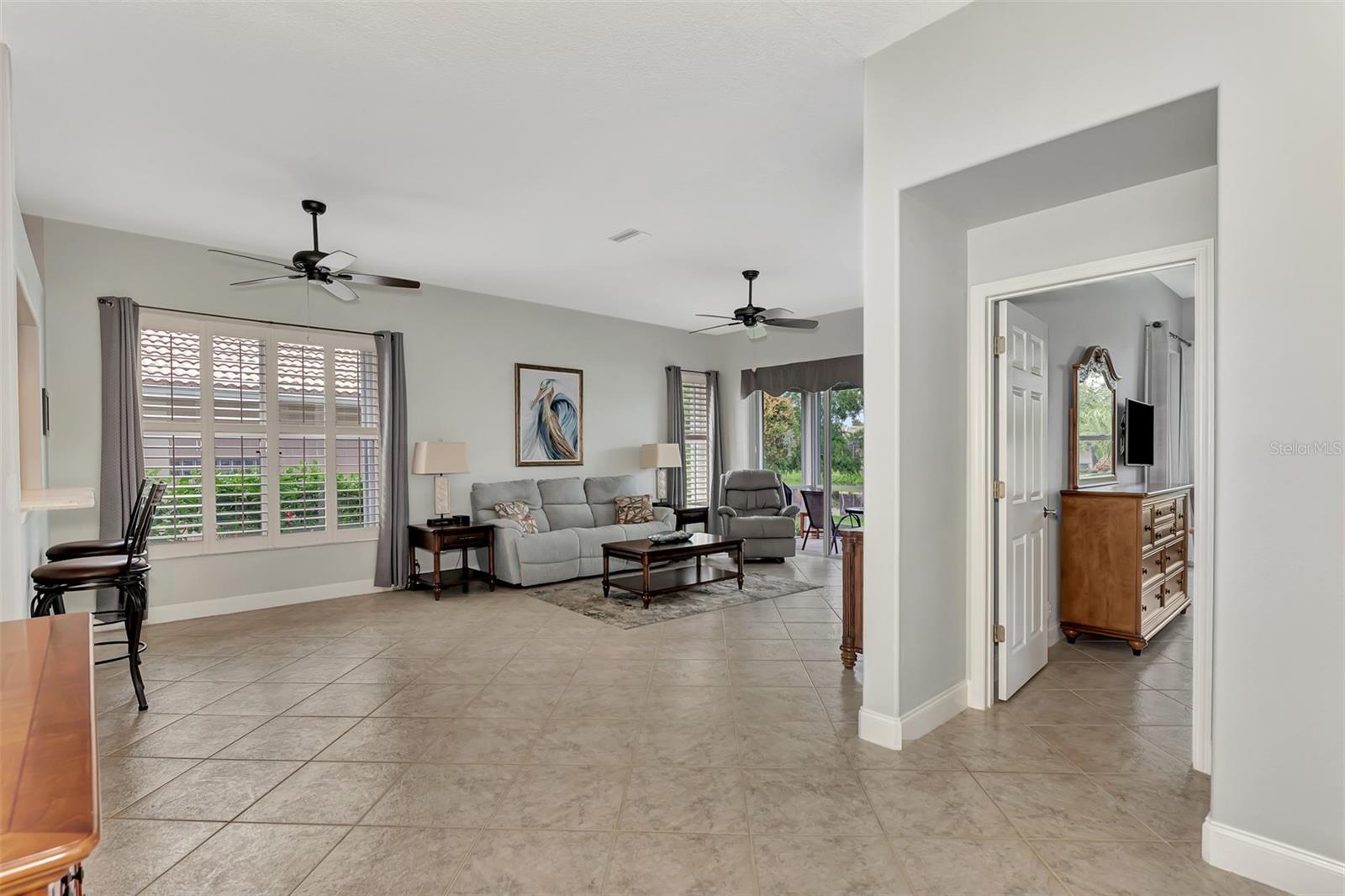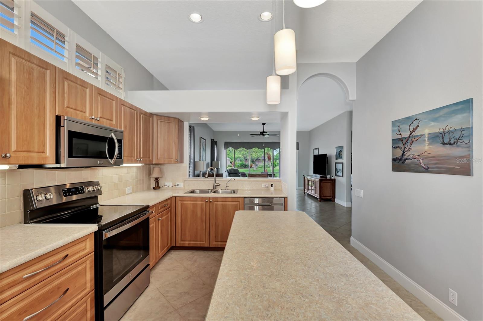 Experience the pinnacle of Florida living owning this exquisite Custom Built Rutenberg 2 Bedroom, 2 Bath plus Flex room Home nestled on the serene, tree-lined streets of Village Lane in Riverwood. This well-appointed residence features a desirable open floor plan with architectural charm, voluminous ceilings, abundant natural light, plantation shutters, porcelain tile flooring, and designer light fixtures throughout. The spacious updated kitchen, complete with an island, showcases quality cabinetry, countertops, and appliances. Both the primary and guest bathrooms have been tastefully remodeled to incorporate the latest design trends, highlighted by stylish new cabinets, hardware and sprawling quartz counters. Enjoy the Florida outdoors from the covered, screened tiled lanai offering picturesque views of the water and wildlife. Additional enhancements include exterior and interior paint (2023) replaced Stove and Dishwasher (2023) New Tile Roof (2022) Air Conditioner (2018), plus upgraded storm shutters, and more. Riverwood beckons as a gated, golf-centric, resort-style community inviting residents to fully embrace the Florida lifestyle. Take leisurely walks or bike rides along lush, landscape streets, indulge in invigorating tennis or pickleball matches, cool off in the Jr. Olympic pool or relax in the hot tub. Residents can engage in numerous programs and social events at the Activity Center and Fitness enthusiasts can participate in a variety of classes at the Fitness Center. Recognized as an Audubon Green Community award winner, Riverwood boasts a natural habitat that supports Florida wildlife. Additional amenities include lawn croquet, bocce courts, an art classroom, library, and a dedicated dog park. Memberships for Riverwood Golf Club and the Riverwood Private Beach Club on Manasota Key are available based on availability and require fees. Conveniently located between Sarasota and Fort Myers on Florida’s West Coast, this home is just minutes away from dining, shopping, boating, cultural events, and the pristine beaches of Southwest Florida. Discover this move-in ready Florida home today—call for a showing and embrace the essence of Florida living at its finest!