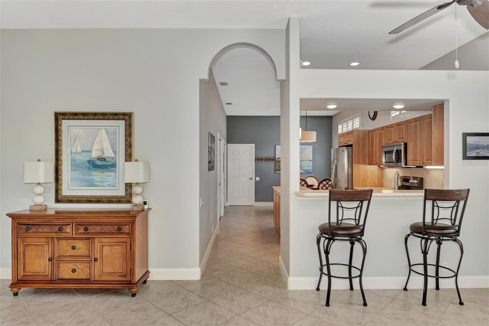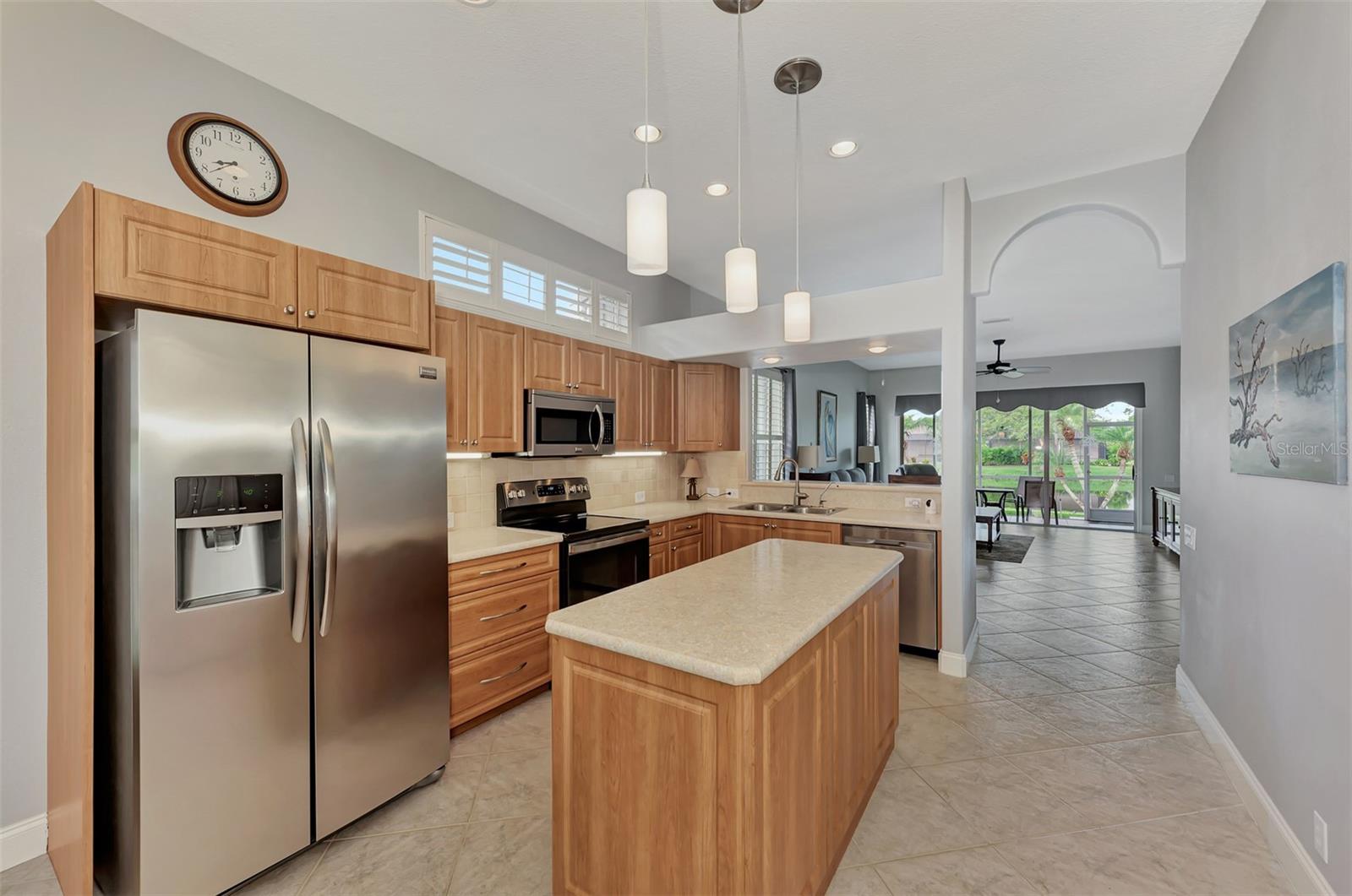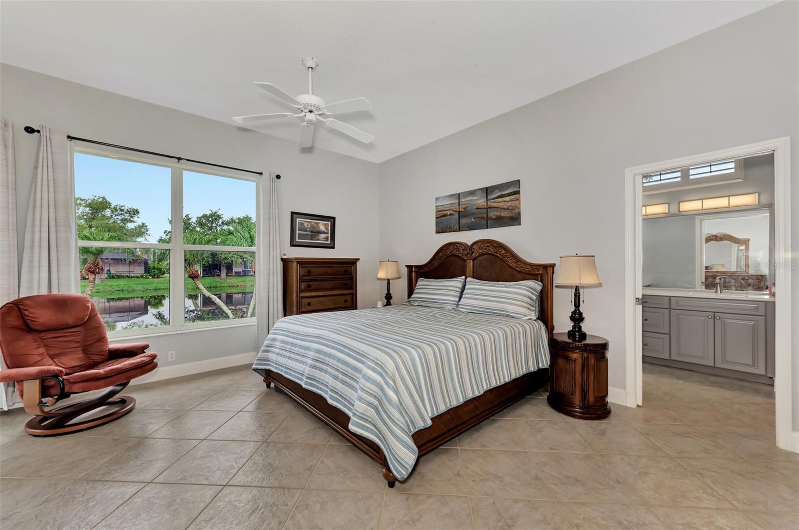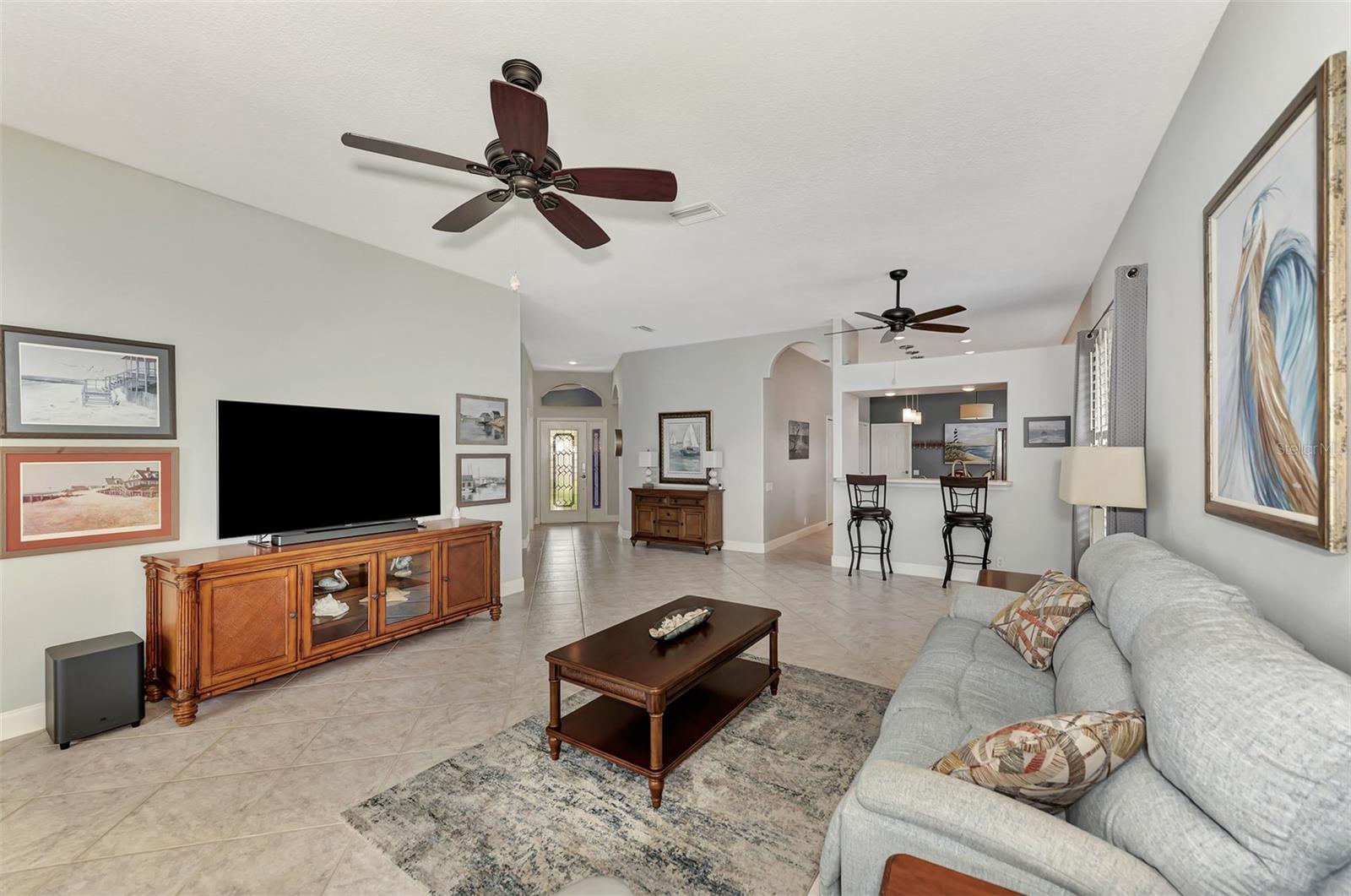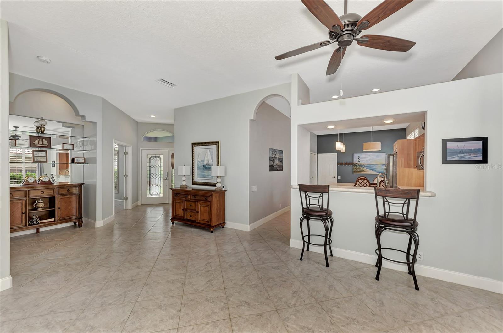 Experience the pinnacle of Florida living owning this exquisite Custom Built Rutenberg 2 Bedroom, 2 Bath plus Flex room Home nestled on the serene, tree-lined streets of Village Lane in Riverwood. This well-appointed residence features a desirable open floor plan with architectural charm, voluminous ceilings, abundant natural light, plantation shutters, porcelain tile flooring, and designer light fixtures throughout. The spacious updated kitchen, complete with an island, showcases quality cabinetry, countertops, and appliances. Both the primary and guest bathrooms have been tastefully remodeled to incorporate the latest design trends, highlighted by stylish new cabinets, hardware and sprawling quartz counters. Enjoy the Florida outdoors from the covered, screened tiled lanai offering picturesque views of the water and wildlife. Additional enhancements include exterior and interior paint (2023) replaced Stove and Dishwasher (2023) New Tile Roof (2022) Air Conditioner (2018), plus upgraded storm shutters, and more. Riverwood beckons as a gated, golf-centric, resort-style community inviting residents to fully embrace the Florida lifestyle. Take leisurely walks or bike rides along lush, landscape streets, indulge in invigorating tennis or pickleball matches, cool off in the Jr. Olympic pool or relax in the hot tub. Residents can engage in numerous programs and social events at the Activity Center and Fitness enthusiasts can participate in a variety of classes at the Fitness Center. Recognized as an Audubon Green Community award winner, Riverwood boasts a natural habitat that supports Florida wildlife. Additional amenities include lawn croquet, bocce courts, an art classroom, library, and a dedicated dog park. Memberships for Riverwood Golf Club and the Riverwood Private Beach Club on Manasota Key are available based on availability and require fees. Conveniently located between Sarasota and Fort Myers on Florida’s West Coast, this home is just minutes away from dining, shopping, boating, cultural events, and the pristine beaches of Southwest Florida. Discover this move-in ready Florida home today—call for a showing and embrace the essence of Florida living at its finest!