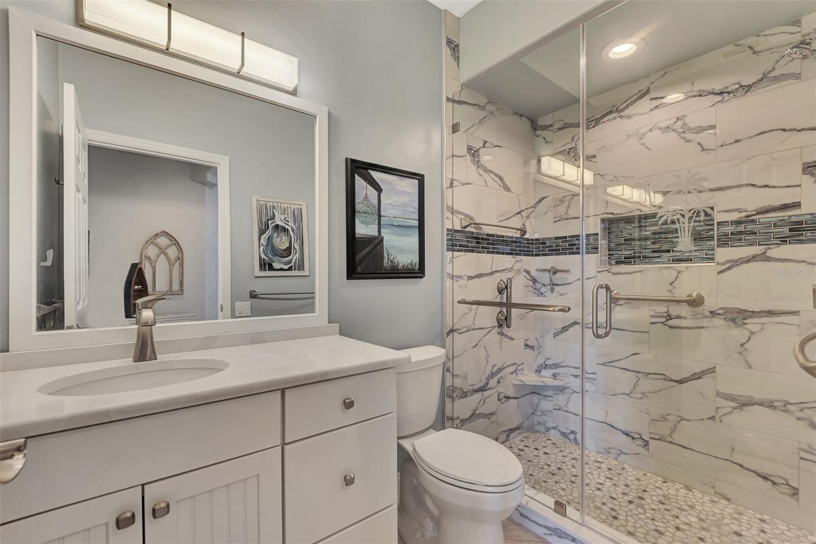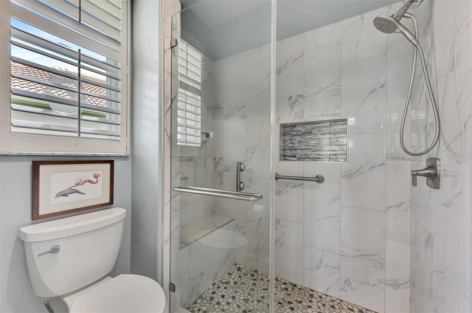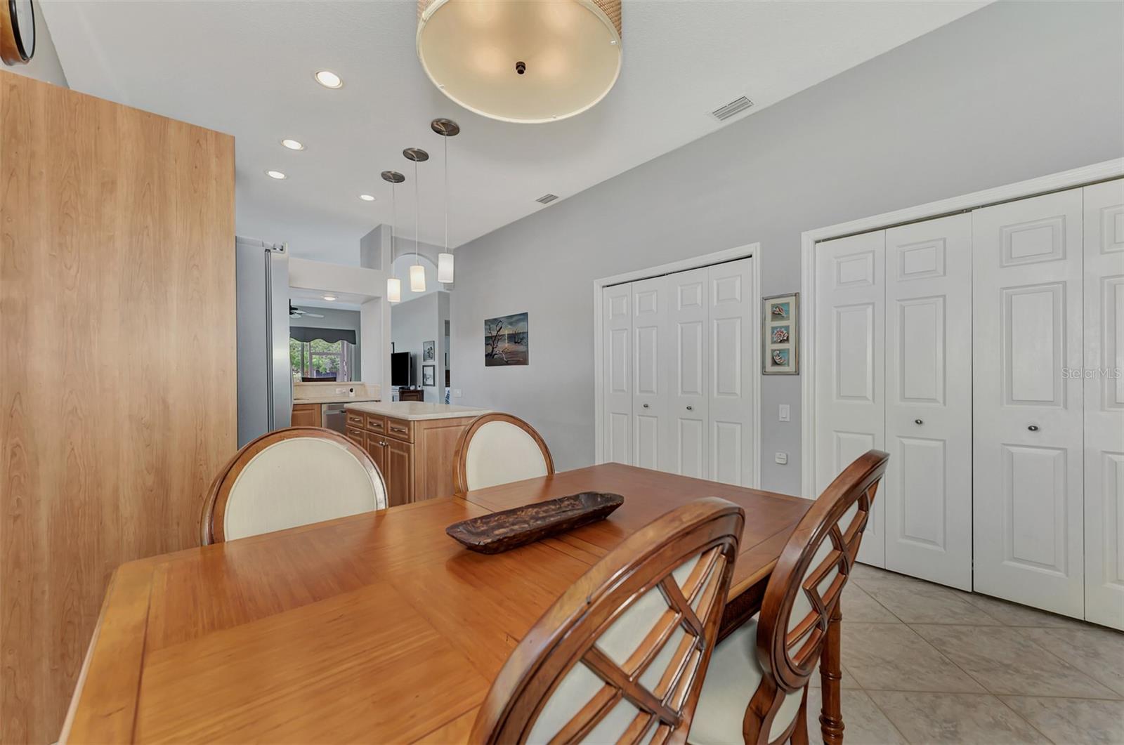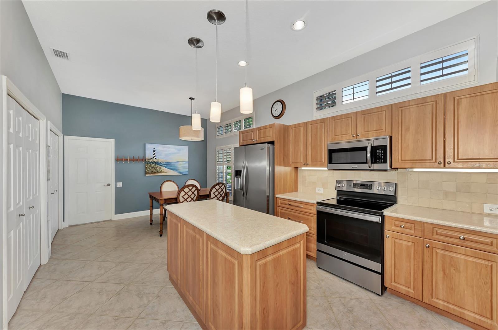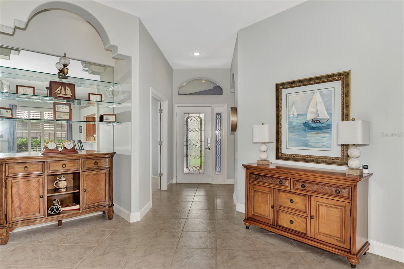 Experience the pinnacle of Florida living owning this exquisite Custom Built Rutenberg 2 Bedroom, 2 Bath plus Flex room Home nestled on the serene, tree-lined streets of Village Lane in Riverwood. This well-appointed residence features a desirable open floor plan with architectural charm, voluminous ceilings, abundant natural light, plantation shutters, porcelain tile flooring, and designer light fixtures throughout. The spacious updated kitchen, complete with an island, showcases quality cabinetry, countertops, and appliances. Both the primary and guest bathrooms have been tastefully remodeled to incorporate the latest design trends, highlighted by stylish new cabinets, hardware and sprawling quartz counters. Enjoy the Florida outdoors from the covered, screened tiled lanai offering picturesque views of the water and wildlife. Additional enhancements include exterior and interior paint (2023) replaced Stove and Dishwasher (2023) New Tile Roof (2022) Air Conditioner (2018), plus upgraded storm shutters, and more. Riverwood beckons as a gated, golf-centric, resort-style community inviting residents to fully embrace the Florida lifestyle. Take leisurely walks or bike rides along lush, landscape streets, indulge in invigorating tennis or pickleball matches, cool off in the Jr. Olympic pool or relax in the hot tub. Residents can engage in numerous programs and social events at the Activity Center and Fitness enthusiasts can participate in a variety of classes at the Fitness Center. Recognized as an Audubon Green Community award winner, Riverwood boasts a natural habitat that supports Florida wildlife. Additional amenities include lawn croquet, bocce courts, an art classroom, library, and a dedicated dog park. Memberships for Riverwood Golf Club and the Riverwood Private Beach Club on Manasota Key are available based on availability and require fees. Conveniently located between Sarasota and Fort Myers on Florida’s West Coast, this home is just minutes away from dining, shopping, boating, cultural events, and the pristine beaches of Southwest Florida. Discover this move-in ready Florida home today—call for a showing and embrace the essence of Florida living at its finest!